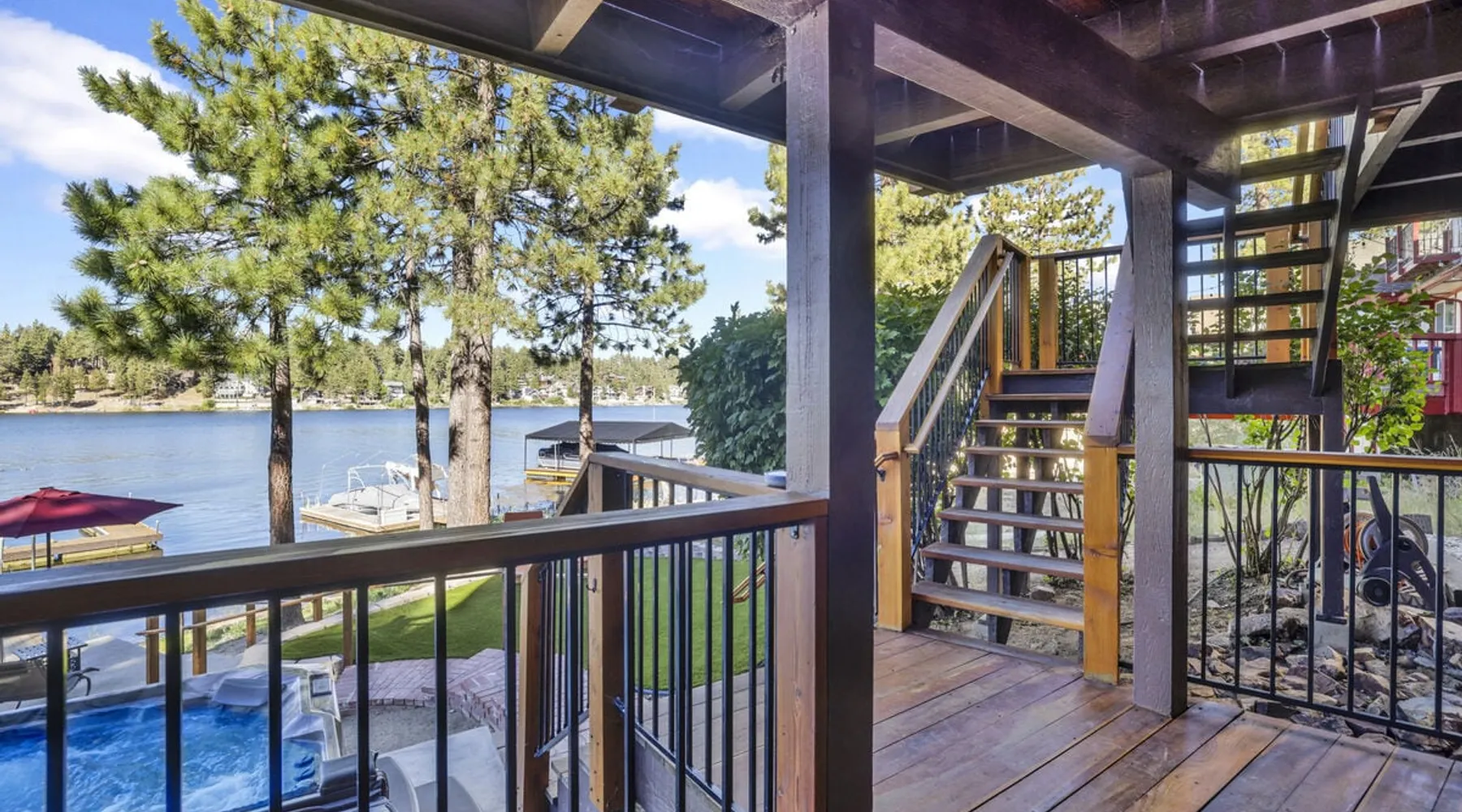 Looking to experience the ultimate Big Bear vacation right from the shoreline!? Cove Lakefront Chalet is the perfect vacation home for just that! This ultra quiet Boulder Bay neighborhood offers your group an abundance of activities right at your fingertips while still within a ten-minute car ride to the ski resorts or downtown Village shops. Challenge each other in the game room or soak your muscles in the private hot tub after a fun day on the lake, this home truly has everything you need! The space Cove Lakefront Chalet | Hot Tub | Boat Dock |Views Looking to experience the ultimate Big Bear vacation right from the shoreline!? Cove Lakefront Chalet is the perfect vacation home for just that! Sitting on the shoreline in the quiet Boulder Bay neighborhood of the valley, your group will have an abundance of activities right at your fingertips while still within a ten-minute car ride to the ski resorts or downtown Village shops. Sprawling in fully furnished spaces for your group to enjoy our two-story home has all that you need for a memorable visit to the mountains including entertaining games, kitchen essentials, and a new private hot tub under the stars! Enter into a grand living room area upon entry with vaulted knotty pine cathedral ceilings and soaring picture windows to take in the panoramic lake views surrounding you. Comfortable sitting couches offer great spaces to sit and make memories around a toasty rock wood-burning fireplace. Enjoy your favorite movie on the massive flat-screen Streaming TV or just snuggle up and watch the snow falling outside. (Guests must have their own accounts to use Streaming services.) There are two separate lake view dining areas that each offer a custom formal log dining table for your group or holiday meals together along with deck access and more fantastic lake views. The breakfast bar pairs stool seats and gorgeous granite countertops for your chef to prepare your home-cooked meals. The oak cabinets are stocked with cookware and utensils for your convenience while general appliances and a dishwasher ensure that your meals are a breeze here! Head downstairs to the cozy family room for more added fun where you will find sitting couches around one more natural wood fireplace and another huge TV. Enjoy a game of pool on the full-size billiards table, foosball table, arcade basketball, or just watch all the action from the mini bar. This is a great space to make wonderful memories together. A separate laundry room area offers a washer and dryer for your extended stays or wet snow clothes to keep things convenient. All four bedrooms and bathrooms are made up for your visit with warm linens, blankets, pillows, and fresh shower towels plus offer deck views. Venture outside to enjoy the expansive wrapped sun decks and expansive lakefront property with a seasonal boat dock. (Water levels pending access) Enjoying grilling up your freshly caught dinner on the natural gas BBQ as you enjoy the patio furnishings or take a soak in the new private hot tub under the stars as you unwind after a fun day of adventures out on the lake. Cove Lakefront Chalet truly has it all ensuring groups and families have the very best of Big Bear at their fingertips our furnished mountain chalet has all that you need for a memorable and relaxing lakeside vacation. Don't miss your chance to book this spectacular chalet for your upcoming mountain vacation today! Sleeping Arrangements: Bedroom 1: King Bed, Streaming TV, Deck Access, Private Full Bath w/ Steam Shower + Soaker Tub - Upstairs 3rd Level Bedroom 2: Queen Bed + Twin Bed- Upstairs 3rd Level Bedroom 3: King Bed - Middle Entry Level Bedroom 4: Queen + Twin Bed - Middle Entry Level Game Room: Full Futon , Fireplace, Streaming TV, Game Table, Pool Table, Foosball, Basketball, Deck Access- Downstairs 1st Level Bathroom Arrangements: Private Full Bath - Bedroom 1- Upstairs 3rd level Hallway Full Bath- Middle Entry Level Hallway 3/4 Bath (Shower Only)- Middle Entry Level Hallway Half Bath - Downstairs 1st Level -Sleeps 12 Max | 10 Adults & 2 Children -4 Cars Driveway Parking -NO PETS ALLOWED- Fines Imposed For Pets Found On Site -3,788 Total Square Feet City Permit #: VRR-2024-0766 Registration Details 2024-0766