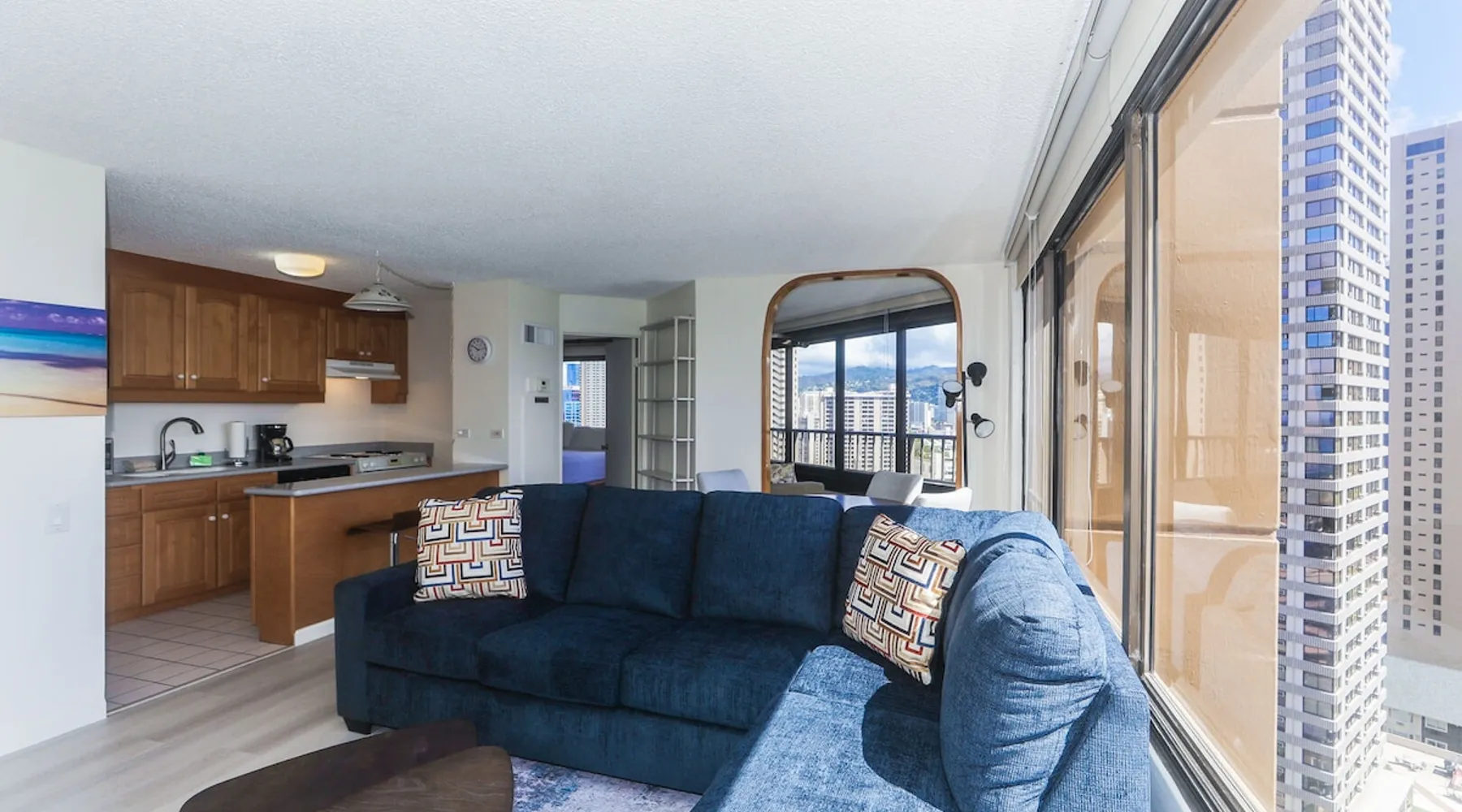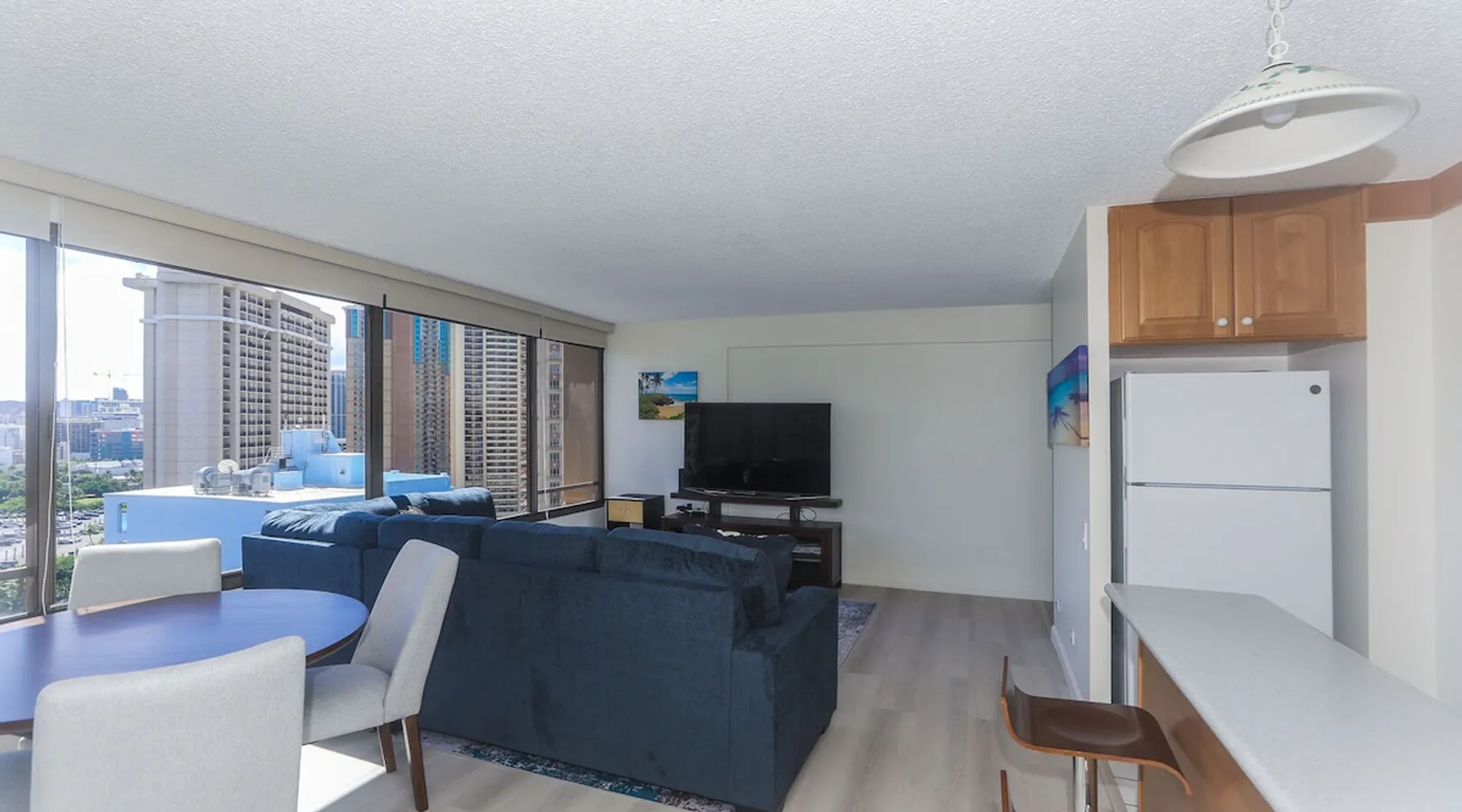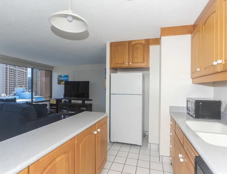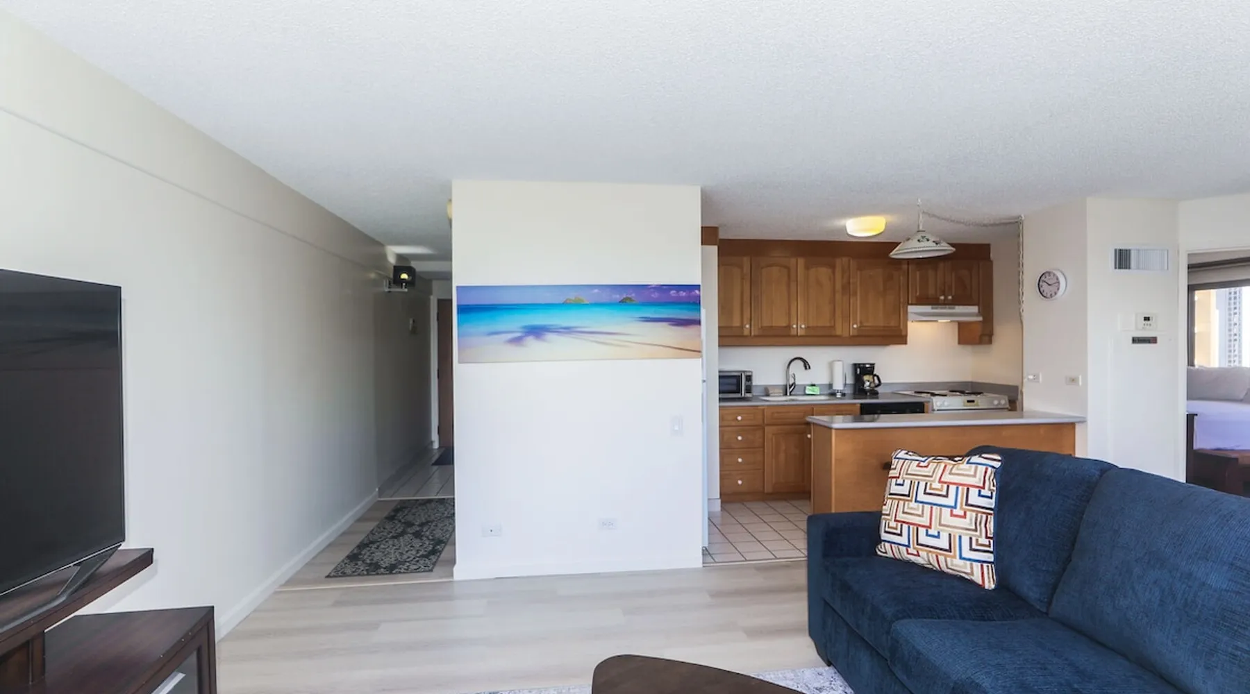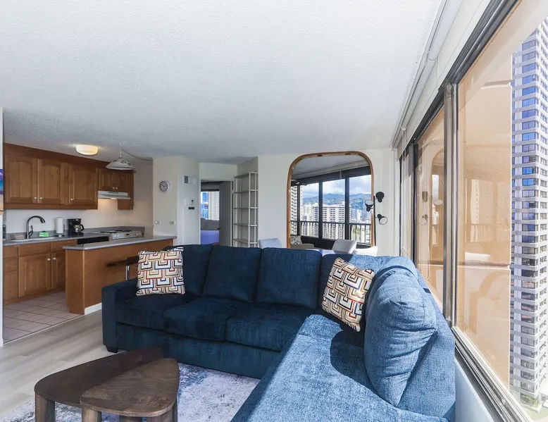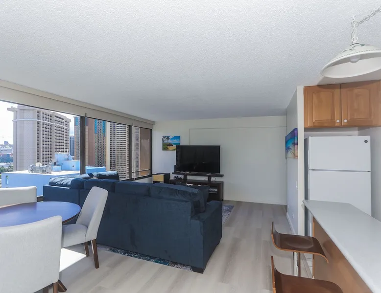 Located on the 22nd floor of Discovery Bay, this spacious condo of 852 sq ft offers a full kitchen and is fully furnished. There is a king bed in the bedroom and you'll have views of the Pacific Ocean from the condo. Condo includes central A/C, washer/dryer, cable TV, FREE WIFI, and one assigned parking stall. Whether you're here for work or leisure, this condo provides a relaxing and convenient stay in the heart of Waikiki! Registration Details 260120100468, 2216, TA-210-168-4224-01
