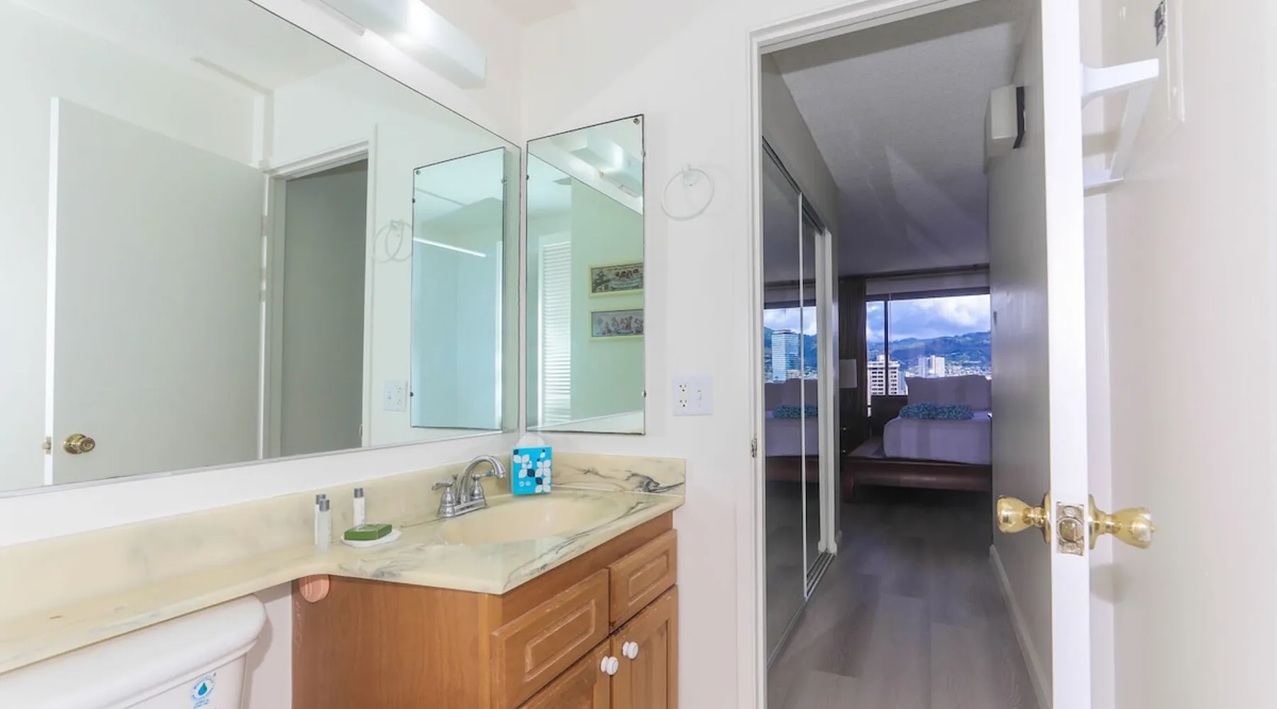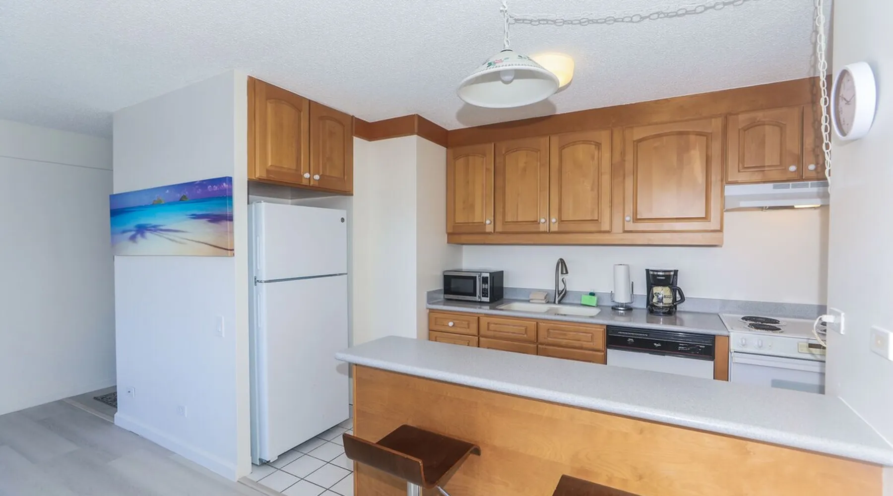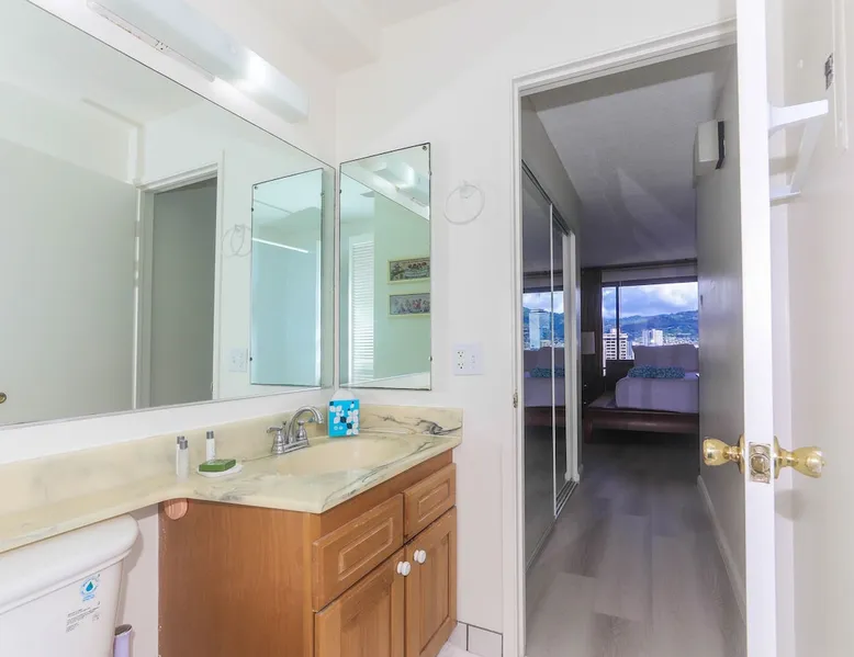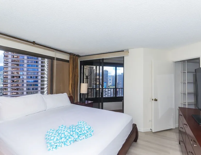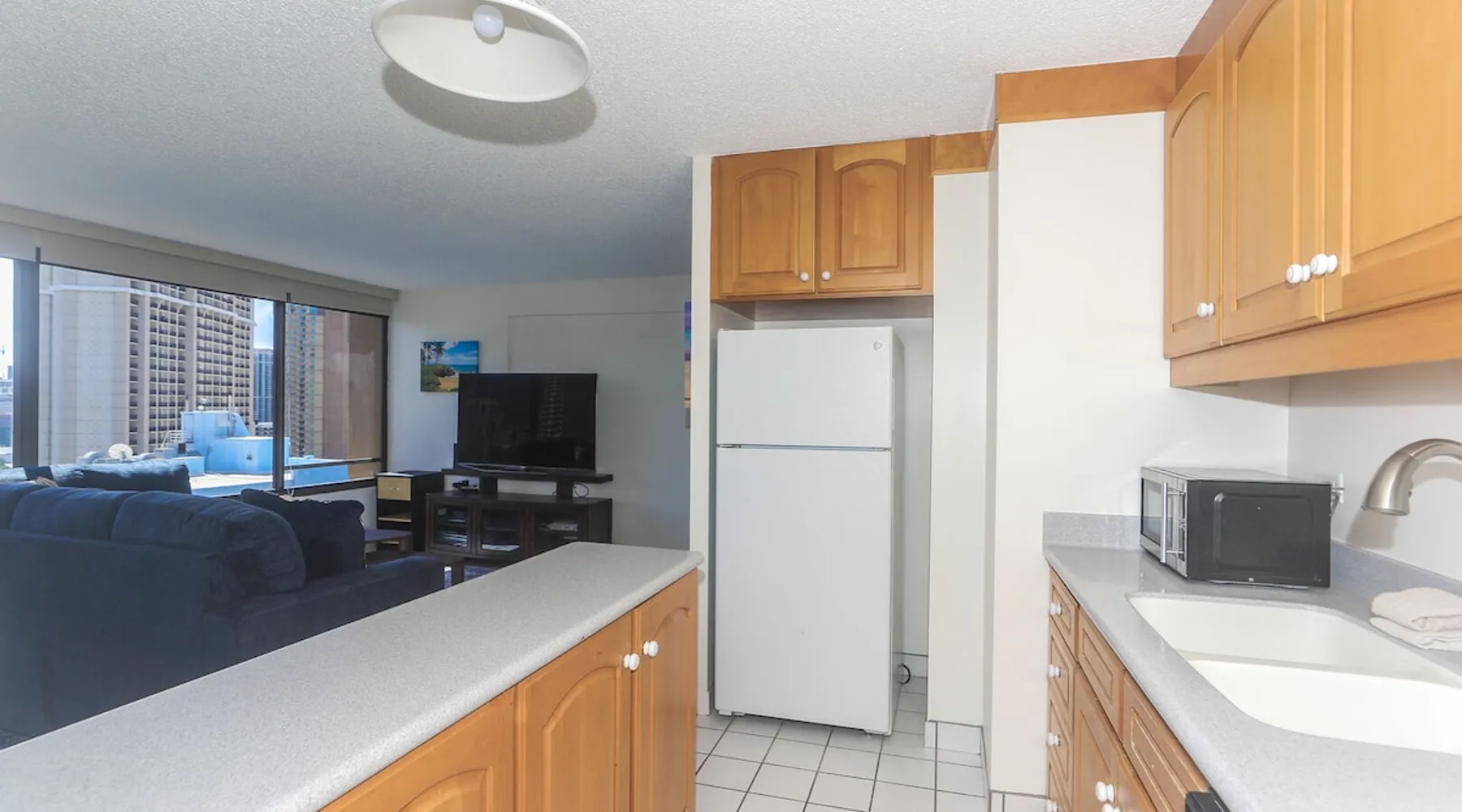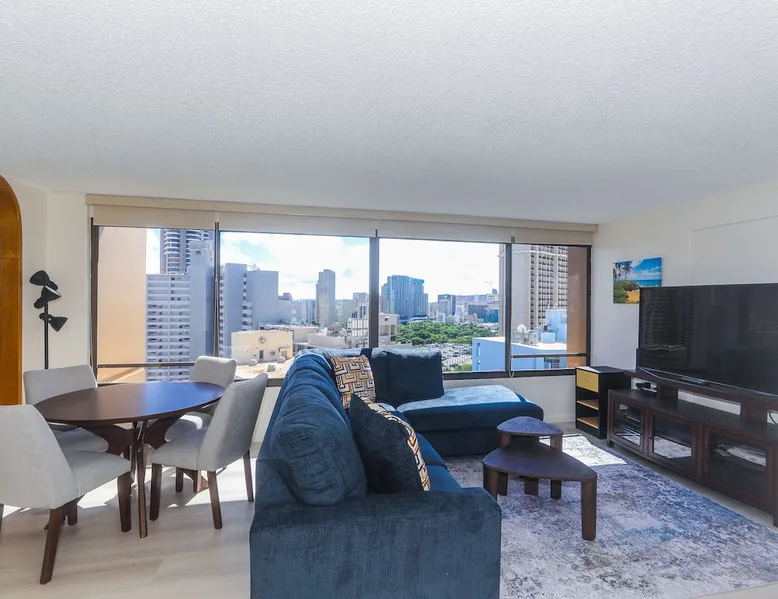 Located on the 22nd floor of Discovery Bay, this spacious condo of 852 sq ft offers a full kitchen and is fully furnished. There is a king bed in the bedroom and you'll have views of the Pacific Ocean from the condo. Condo includes central A/C, washer/dryer, cable TV, FREE WIFI, and one assigned parking stall. Whether you're here for work or leisure, this condo provides a relaxing and convenient stay in the heart of Waikiki! Registration Details 260120100468, 2216, TA-210-168-4224-01