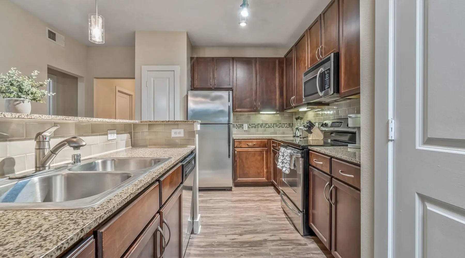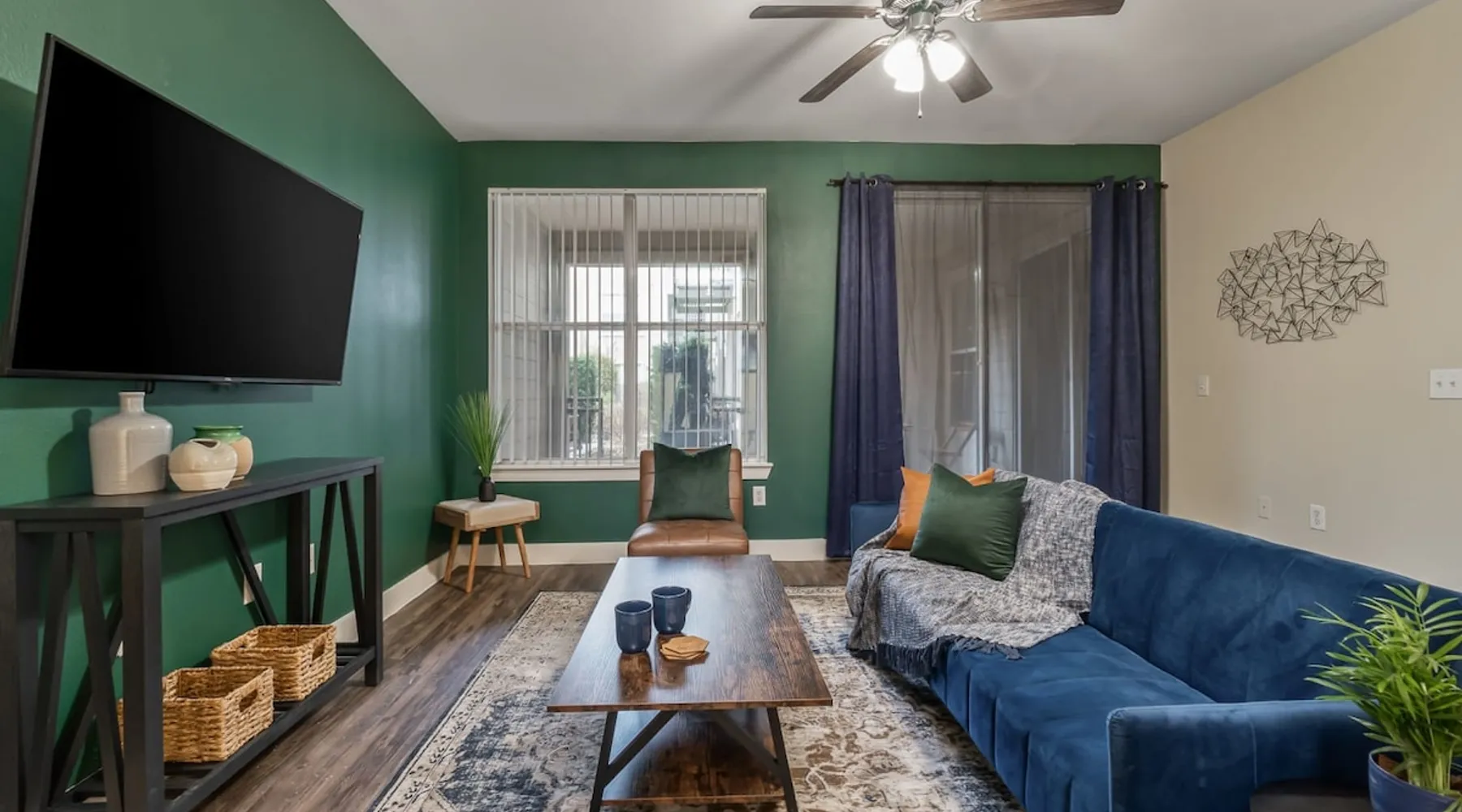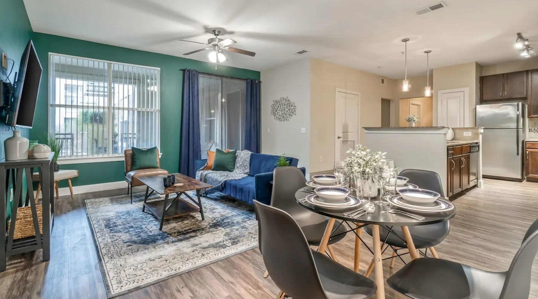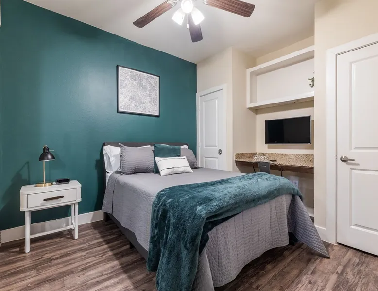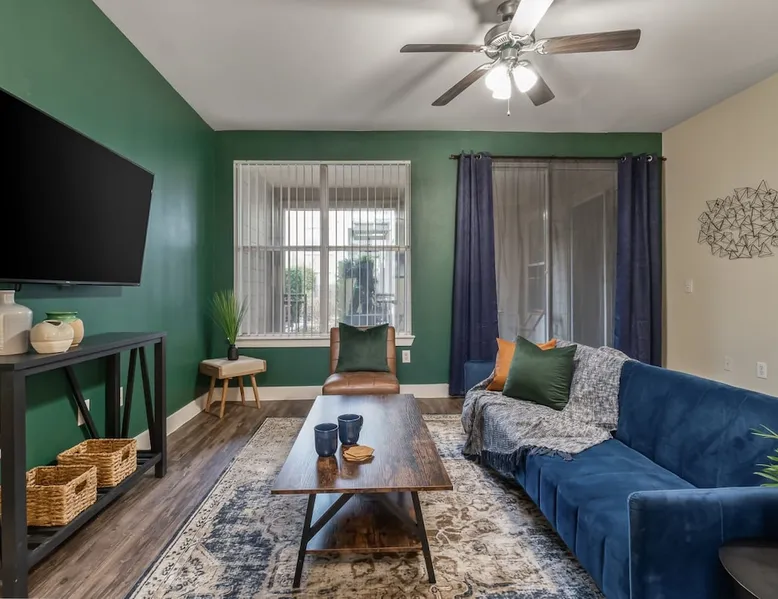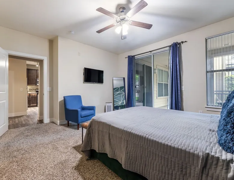 One step inside this luxury apartment and you know you've found your world. Here, all is in balance - lush, natural surroundings outside; tech-savvy everything inside. Recharge in lavish gardens and green spaces or play frisbee in the Bark Park or Wii in the lounge or relax by the infinity-edge pool. This large apartment also includes a study for working remote. This is a fully serviced apartment that is pet friendly and very close to the Galleria Mall and other popular restaurants and retail. The space Everything you need is within easy reach. Interior features include built-in USB ports, stainless steel appliances, washers and dryers, keyless entry, spacious closets, quartz counters, and more. Our building has a fireside lounge, bark park, parking garage and game lounge, an unbelievable wellness studio, and a stunning pool plaza. This is a gated complex with free street parking and parking garage. The unit is secured by smart lock entry, welcoming you into a spacious living space. *Carpet and hardwood floors *High ceilings, ceiling fans *WiFi access and Smart TV Bathroom: *Shower with full sized tub *Complimentary toiletries, blow dryer Bedroom: Can be brightly lit from large windows or perfectly darkened for daytime/jet lag naps with room darkening curtains. *Super comfort queen memory foam mattress *Cedar lined closet holds the extra pillows and blankets as well as many hangers for all of your clothes. *Luggage Racks *Plenty of outlets for all your electronic devices Kitchen/Laundry: Fully equipped for anything you might need! *Full sized appliances (dishwasher, electric range/stove, refrigerator, washer and dryer, iron and ironing board) *Microwave, coffee maker (with complimentary coffee), toaster, blender, food processor, pots and pans and basic spices for cooking. Guest access You will have access to the entire unit for your stay. Other things to note Please ensure you are booking with your full legal name. Minimum age requirement of primary person booking should be 21 years old. No weapons or drugs allowed; zero tolerance means police will be called for violating this rule, and the contract will be immediately terminated. Noise policy: Guests must agree to not disturb neighbors at all times during the stay. In addition, guests must agree to observe quiet hours from 10pm-8am each day. The home is proactively monitored with decibel sensors for compliance with this noise policy. Security camera/recording device — exterior of the home/apartment only and records people coming in/out of the listing and safety. By booking you give permission to verify your identity, and check criminal databases in order to confirm your reservation. To abide by all legal requirements and building security rules, you may be asked to provide a copy of your official government-issued photo ID, confirm your contact information, provide a valid credit card with a name that matches your ID, pass through our verification portal and, in some instances, complete a criminal background check (for 28+ day stays). Important note: The information is collected for screening and verification only and is not stored or used for any other purposes. Please be advised that all guests will be asked to sign a rental usage agreement that governs the terms of the stay. By completing the reservation you agree to the following: You agree to be bound by our rental terms and conditions. You acknowledge that you will be required to provide a copy of a valid government-issued ID and matching credit card prior to check-in. You acknowledge that you may be required to undergo a background check if mandated by the property management company or the building, as stated in accordance with your rental agreement and the condition of the booking. You understand that your check-in instructions might be withheld until you have successfully completed our verification portal. Refund & Processing Fee Policy: We understand that plans can change, and we do our best to make the refund process as smooth as possible. Please note that all payments processed through the VRBO platform are subject to a standard 3% payment processing fee charged by Stripe. Because this fee is applied to both incoming and refunded transactions, it is non-refundable. This means that in the event of a cancellation or refund (even when the cancellation falls within the eligible refund window), the refunded amount will be the total paid minus the 3% processing fee. We appreciate your understanding, as this helps us keep our business sustainable while continuing to provide high-quality stays for all our guests.