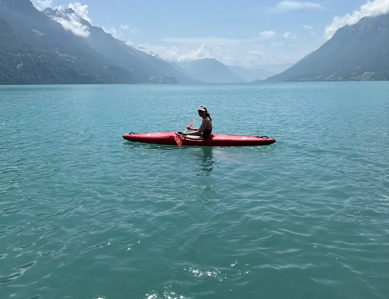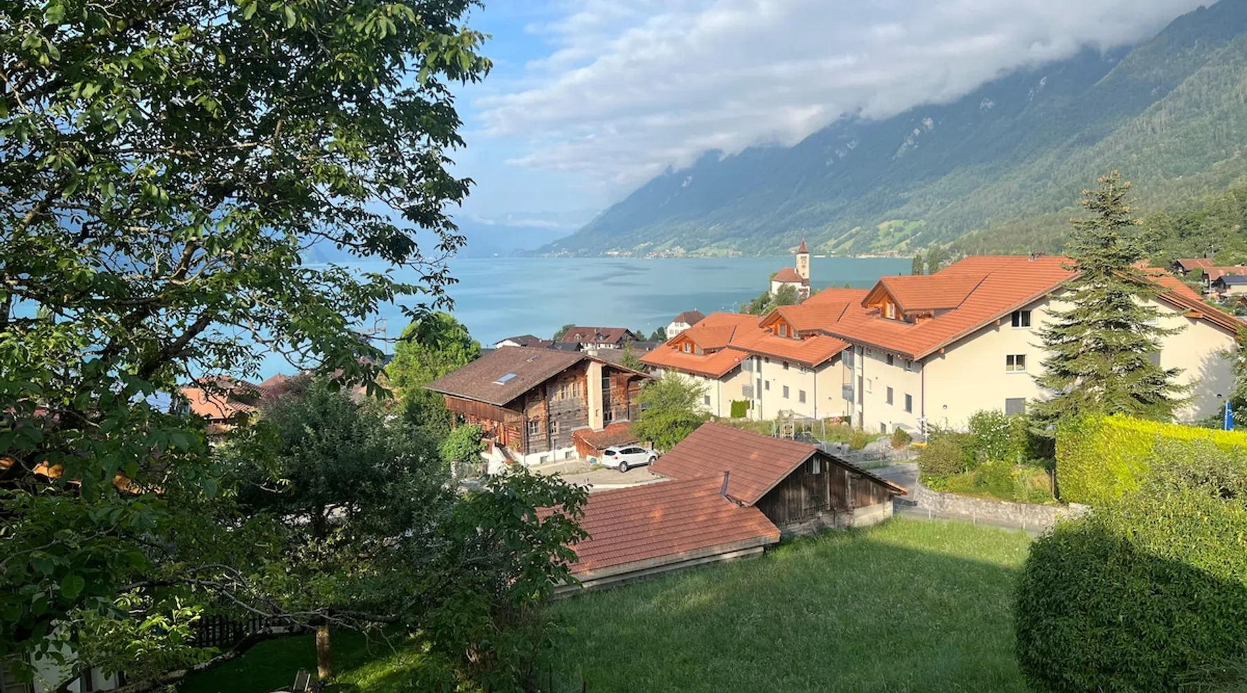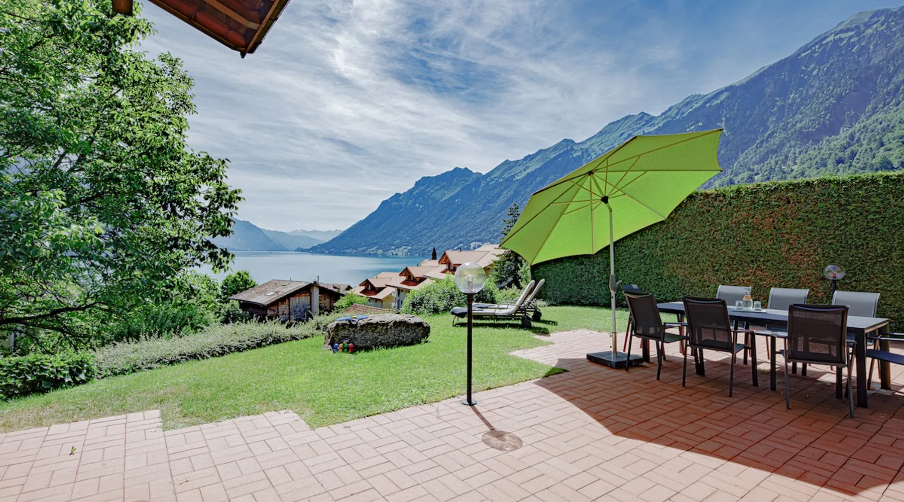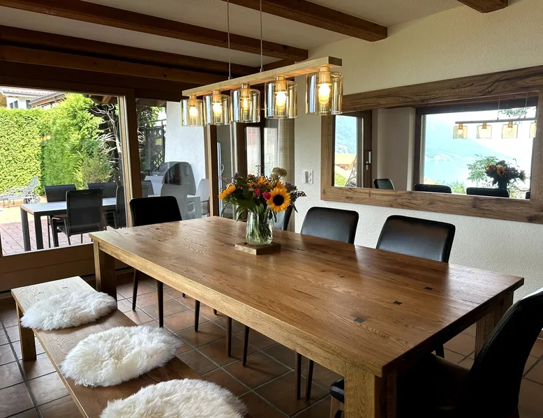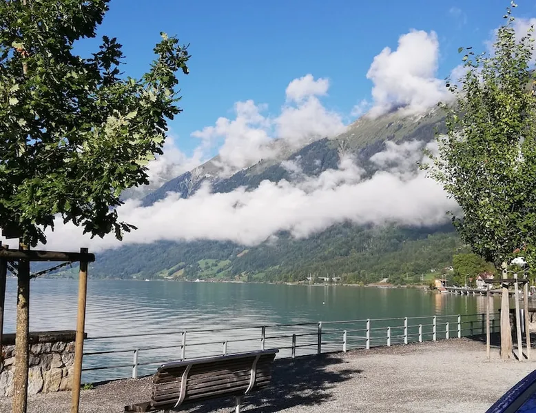 Find serenity in a historic Swiss village by turquoise Lake Brienz! Brienz Villa on Alpgasse is a stylish home with breathtaking views, ideal for 1 or 2 families. It's a 5 min walk to swimming/lakeside restaurants, 15 min to the train/ferry. Treat yourself to a luxurious vacation and discover the Bernese Oberland from here! The Villa has 2 units -you rent the main levels of this beautiful home. A lower apartment, with separate entrance/garden, is also rentable. The space Feel a warm welcome from a family-owned vacation home! Terrasse with dining area, outdoor fireplace, and spectacular views! Well-equipped kitchen Dining room with lake view Spacious living room with large TV 4 bedrooms (King, King, Queen, and 2 Twin beds) 2 full baths, 1 half bath Washer/dryer (on-site, shared) Fast wifi Grill and 1 kayak. Parking for up to 3 cars No pets Local quiet hours 10 pm-7 am Please respect that there is NO SMOKING allowed inside the home. All the furnishings are new and of good quality. Windows have retractable shutters for privacy. On the entrance level is the spacious entryway, guest bathroom, kitchen, dining room, and large living room with fireplace. The kitchen is well-equipped (including microwave, raclette, fondue, rice cooker, kettle, Nespresso machine, milk foamer.) From the kitchen and living room you have direct access to the large private patio with a beautiful view of Lake Brienz and surrounding mountains! The 4 bedrooms are on the upper floor. 1 bathroom with shower, toilet and sink is accessible to all. The other bathroom with corner bath, shower, toilet, double sink is connected to one of the bedrooms w/ King bed. On request we provide a baby bed for toddlers up to 3 years old and a high chair. The washing machine and dryer are in the basement and is shared with the guests of the lower apartment. The lower apartment is also rented on Airbnb. It has own private entrance and garden area. If you prefer to rent both units together, please inquire. Other things to note The walk to the house from the train and ferry stations takes about 15 minutes. The path via Feldstrasse has the easiest, most gradual incline with an elevation gain of about 35 meters or 115 feet.