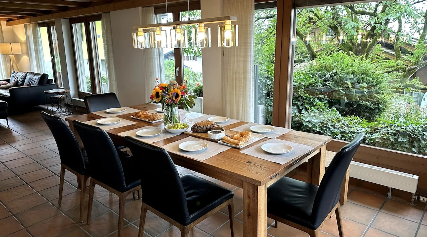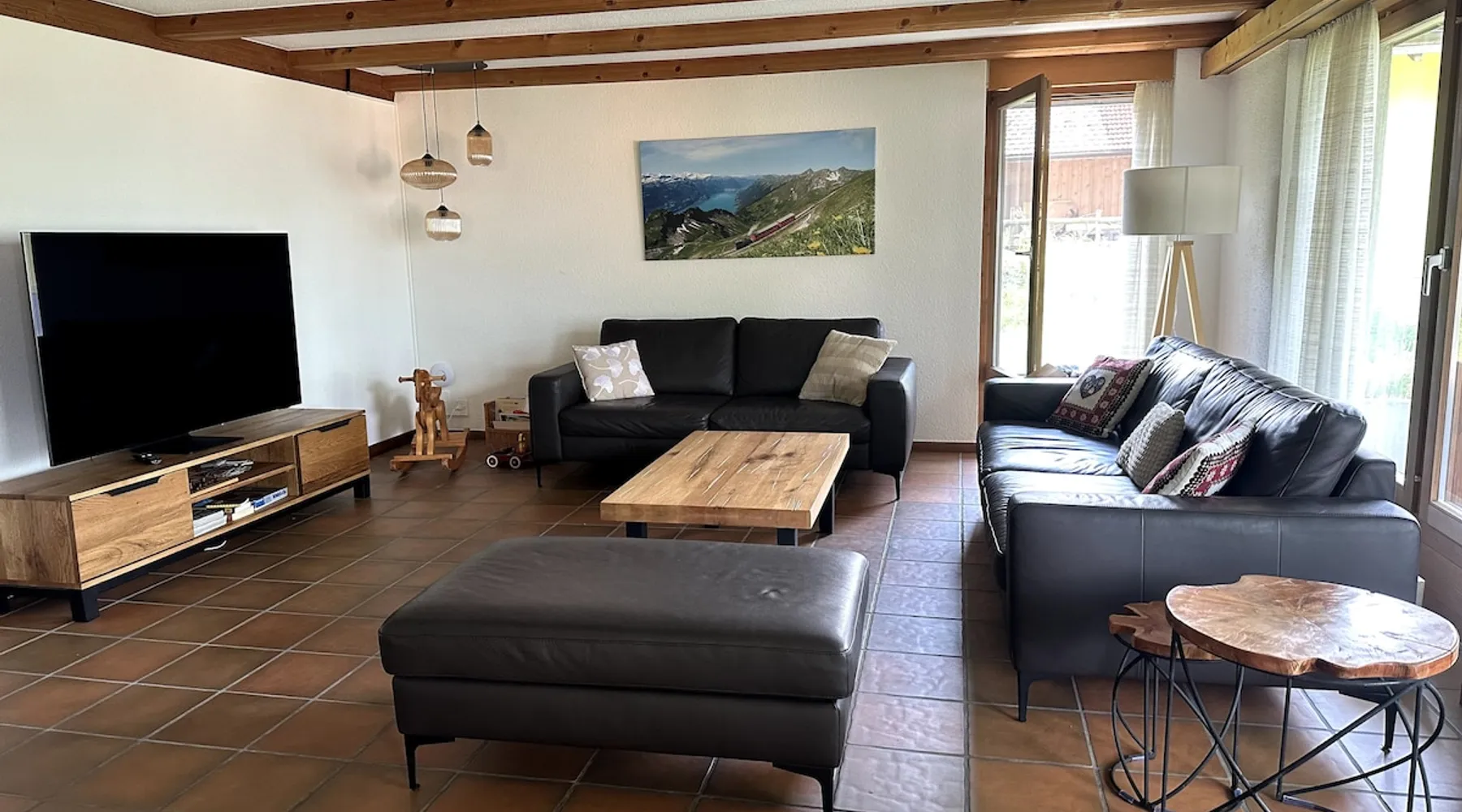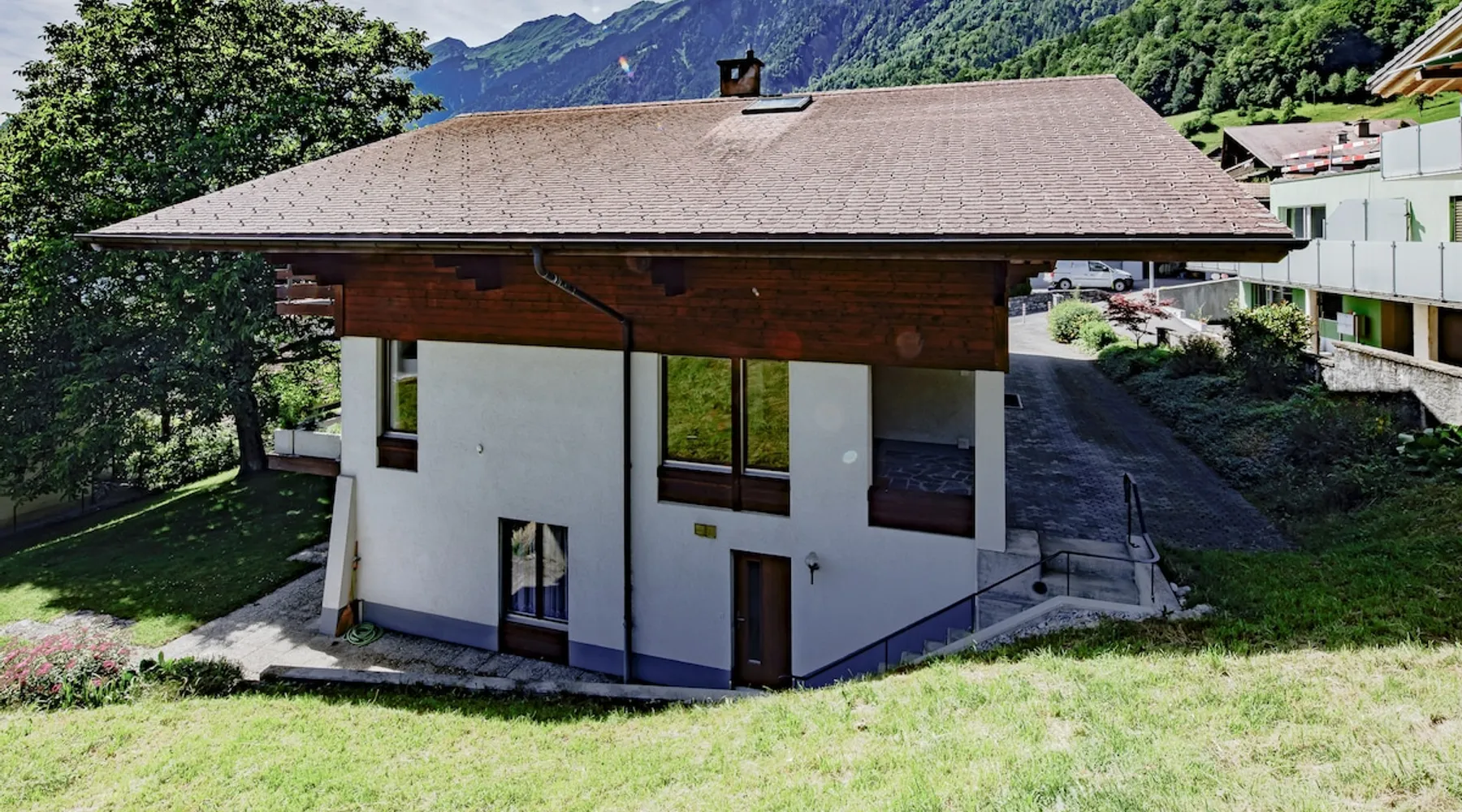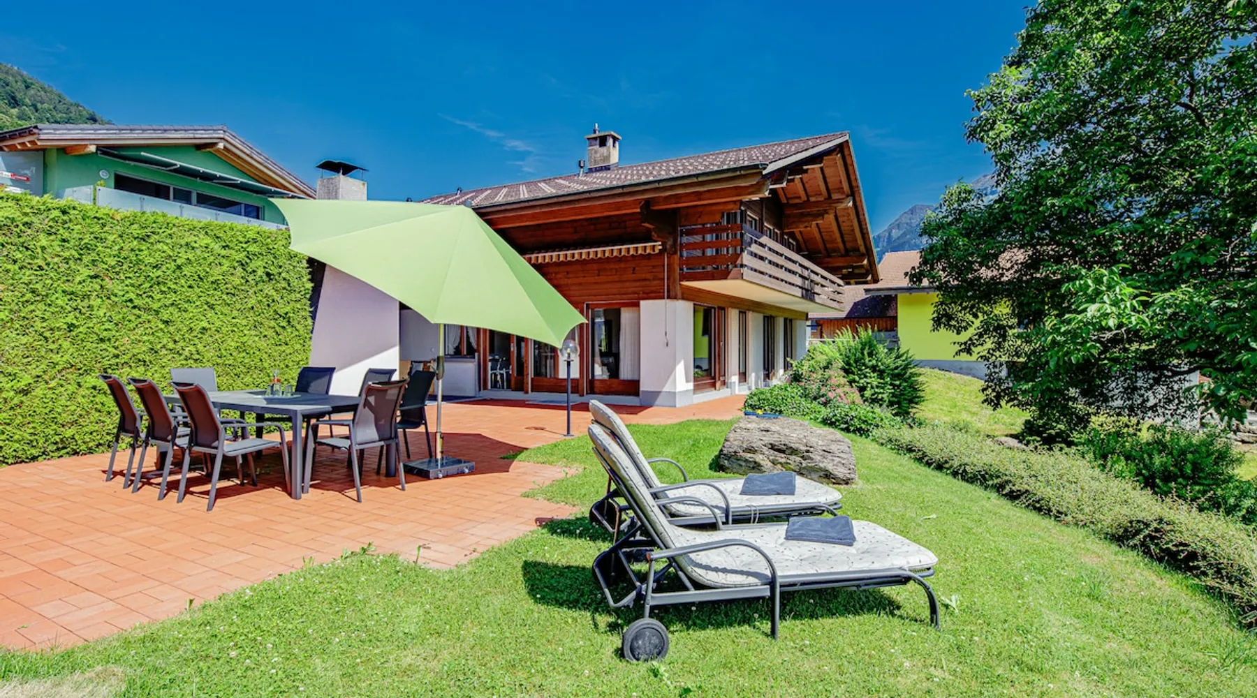 Find serenity in a historic Swiss village by turquoise Lake Brienz! Brienz Villa on Alpgasse is a stylish home with breathtaking views, ideal for 1 or 2 families. It's a 5 min walk to swimming/lakeside restaurants, 15 min to the train/ferry. Treat yourself to a luxurious vacation and discover the Bernese Oberland from here! The Villa has 2 units -you rent the main levels of this beautiful home. A lower apartment, with separate entrance/garden, is also rentable. The space Feel a warm welcome from a family-owned vacation home! Terrasse with dining area, outdoor fireplace, and spectacular views! Well-equipped kitchen Dining room with lake view Spacious living room with large TV 4 bedrooms (King, King, Queen, and 2 Twin beds) 2 full baths, 1 half bath Washer/dryer (on-site, shared) Fast wifi Grill and 1 kayak. Parking for up to 3 cars No pets Local quiet hours 10 pm-7 am Please respect that there is NO SMOKING allowed inside the home. All the furnishings are new and of good quality. Windows have retractable shutters for privacy. On the entrance level is the spacious entryway, guest bathroom, kitchen, dining room, and large living room with fireplace. The kitchen is well-equipped (including microwave, raclette, fondue, rice cooker, kettle, Nespresso machine, milk foamer.) From the kitchen and living room you have direct access to the large private patio with a beautiful view of Lake Brienz and surrounding mountains! The 4 bedrooms are on the upper floor. 1 bathroom with shower, toilet and sink is accessible to all. The other bathroom with corner bath, shower, toilet, double sink is connected to one of the bedrooms w/ King bed. On request we provide a baby bed for toddlers up to 3 years old and a high chair. The washing machine and dryer are in the basement and is shared with the guests of the lower apartment. The lower apartment is also rented on Airbnb. It has own private entrance and garden area. If you prefer to rent both units together, please inquire. Other things to note The walk to the house from the train and ferry stations takes about 15 minutes. The path via Feldstrasse has the easiest, most gradual incline with an elevation gain of about 35 meters or 115 feet.