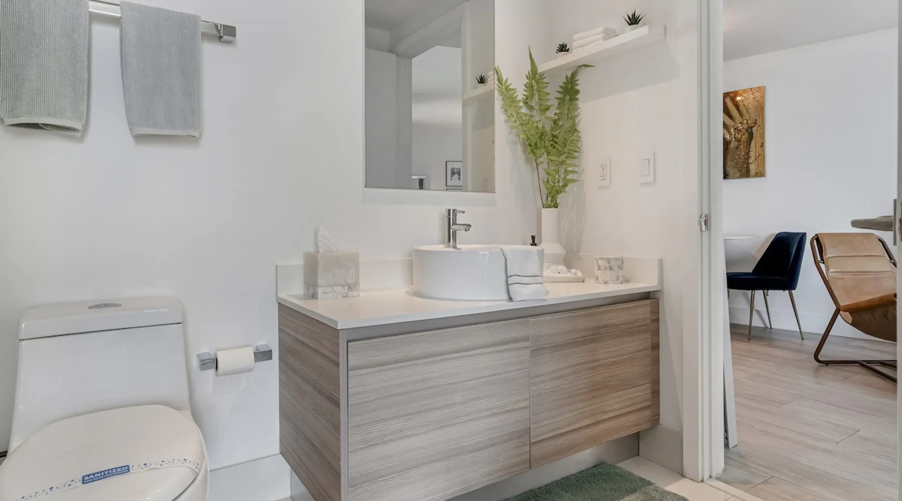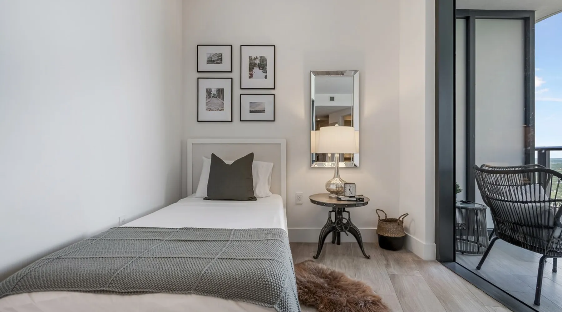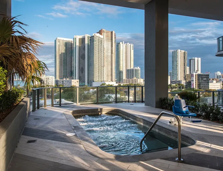 VIEWS, LOCATION & LUXURY AT YOUR DOORSTEP! 🌴In the Heart of Midtown Miami🌴 Experience refined urban living in this modern luxury condo, a serene retreat amid the vibrant city. Thoughtfully designed, the space features one bedroom, two versatile dens, and a fully equipped bathroom. Ideal for business professionals, remote workers, or guests who value comfort, style, and a quiet environment. Close to Miami’s best dining, shopping, and cultural attractions. The space Situated in one of Midtown’s prime locations, you’ll be surrounded by top-tier restaurants, trendy bars, and essential spots like Starbucks, Barry’s Gym, Tap 42, Target, and a nearby convenience and liquor store. And if you're in the mood to explore, you’re just a short stroll away from the iconic Miami Design District, Wynwood’s art scene, and Trader Joe’s. **CHECK-IN WINDOW TIME IS FROM 3:00 PM - 10:00 PM** 🌴 YOUR PRIVATE RETREAT WITH VIEWS! Start your day with a fresh coffee or unwind at sunset with a glass of wine, all while taking in stunning cityscapes and sunset views from the condo’s high-floor balcony. Whether you’re working remotely or simply relaxing, the living room and bedroom offer unbeatable views, creating the perfect balance of work and leisure. 🌴 AN ART LOVER’S PARADISE! For those staying longer, this space offers a monthly retreat like no other! Enjoy designer furniture paired with artwork by local Miami Design District artist Alex Turco, all tastefully curated to complement the luxurious yet cozy atmosphere. 🌴 A COMFORTABLE & QUALITY STAY! Need space for one more? An air mattress is available to accommodate a 4th guest comfortably. The bathroom offers modern conveniences, including a sink, vanity, shower/tub combo, and the added perk of an in-unit washer and dryer for your convenience. INCLUDED WITH YOUR STAY: ➤ Super Comfy King Bed ➤ Blackout shades in the bedroom ➤ Twin Bed ➤ Twin Air Mattress ➤ Portable Playard for babies to sleep/play ➤ Pool ➤ Pool Towels ➤ Private Cabana ➤ Jacuzzi ➤ State-of-the-Art Gym ➤ Steam Room ➤ Conference Room ➤ Game Room/Party Room ➤ Kids Play Room ➤ VIEWS! ➤ Fast WI-FI inside the unit ➤ WI-FI free throughout the property ➤ Multiple rooms for remote working ➤ 55" TV in the living room ➤ Basic cable+FireStick w/HULU, Netflix, etc. ➤ 24" HD Smart Fire TV in the Bedroom ➤ Keurig Coffee Machine ➤ Milk froth Machine ➤ Water Kettle Machine ➤ Coffee Pods and Teas ➤ Brita Water Filter Pitcher ➤ Shampoo ➤ Conditioner ➤ Body Wash ➤ Body Soap ➤ Makeup Towels ➤ Full-length mirror ➤ Private Balcony ➤ First Aid Kit ➤ Accessible unit ➤ Local Recommended Guide ➤ Not included: Laundry Detergent or Parking 🌴 ATTENTION TO DETAIL! Rest easy knowing that all sheets, linens, towels, dinnerware, and utensils are thoroughly sanitized between guests to ensure a fresh and safe experience. BEDS/SLEEPING ARRANGEMENTS: ➤ Main Bedroom: King bed ➤ Den 1: Bonus Room with a twin bed (room has a divider) ➤ Den 2: Can be used for an air mattress and to store extra luggage ➤ Living Room: Sofa with one TV **SLEEPS 4 GUESTS: 1 KING BED, 1 TWIN BED, 1 AIR MATTRESS** Guest access SUPER CONVENIENT AREA! Trendy Restaurant/Bar located inside the building. Experience a resort-like city living with this condo. Suntan during the day at our 5-star pool with cabana access, and at night you’re able to enjoy multi-restaurant and lounges with friends and family. Live, work, play neighborhood. The HOTTEST Zip code in MIAMI. Walking distance to Art Basel exhibits, Design District, and Wynwood. ➤ Airport, South Beach & Brickell are a 15-minute drive. Other things to note Terms and Conditions for Airbnb Rental: ➤ Parking is not included in your reservation. ➤ Check-in Policy: For same-day or last-minute reservations, check-in must occur by 10:00 PM unless otherwise coordinated with the host beforehand. ➤ Extended Stays: For reservations of 14 days or more, cleaning will be required every 14 days at the guest's expense. ➤ Key/FOB Policy: Lost or misplaced keys or FOBs will incur a $150 lost fee. Please take care of all keys and FOBs during your stay. ➤ A starter supply of toiletries and paper products (toilet paper, paper towels, etc.) will be provided to make your arrival comfortable. For longer stays or higher usage, guests are kindly asked to purchase additional supplies for the remainder of their stay. ➤ Pets are not allowed on the premises. Any unauthorized pets found will incur a $100 pet cleaning fee. ➤ Building Amenities: Amenity rooms are available on a first-come, first-served basis. The building’s amenities and common areas may be periodically closed for maintenance or repairs, including but not limited to elevator repairs. Please note that food and drinks are not permitted in any amenity rooms. ➤ Pool Policy: Lost or non-returned towels will incur a $50 fee. Please return towels to the designated areas. ➤ Damages and Missing Items: Guests are responsible for any damages caused to the property or missing items during their stay, including those caused by unauthorized pets. Any such damages will be charged to the guest. ➤ Non-Smoking Policy: This is a non-smoking property. Smoking is strictly prohibited inside the apartment, on balconies, and at the pool. A $150 smoking fee will be applied if this rule is violated. ➤ Quiet Hours and Parties: To respect the neighbors, quiet hours are from 11:00 PM to 9:00 AM. Parties and events are not allowed inside the apartment during these hours or at any time during the stay. ➤ We are not responsible or liable for any luggage left inside the unit if the host permits early luggage drop-offs. Guests leave their luggage at their own risk, and we are not responsible for any lost or missing items. ➤ The unit number will be disclosed upon check-in for security purposes. The key lockbox is located next to the building, and all necessary details