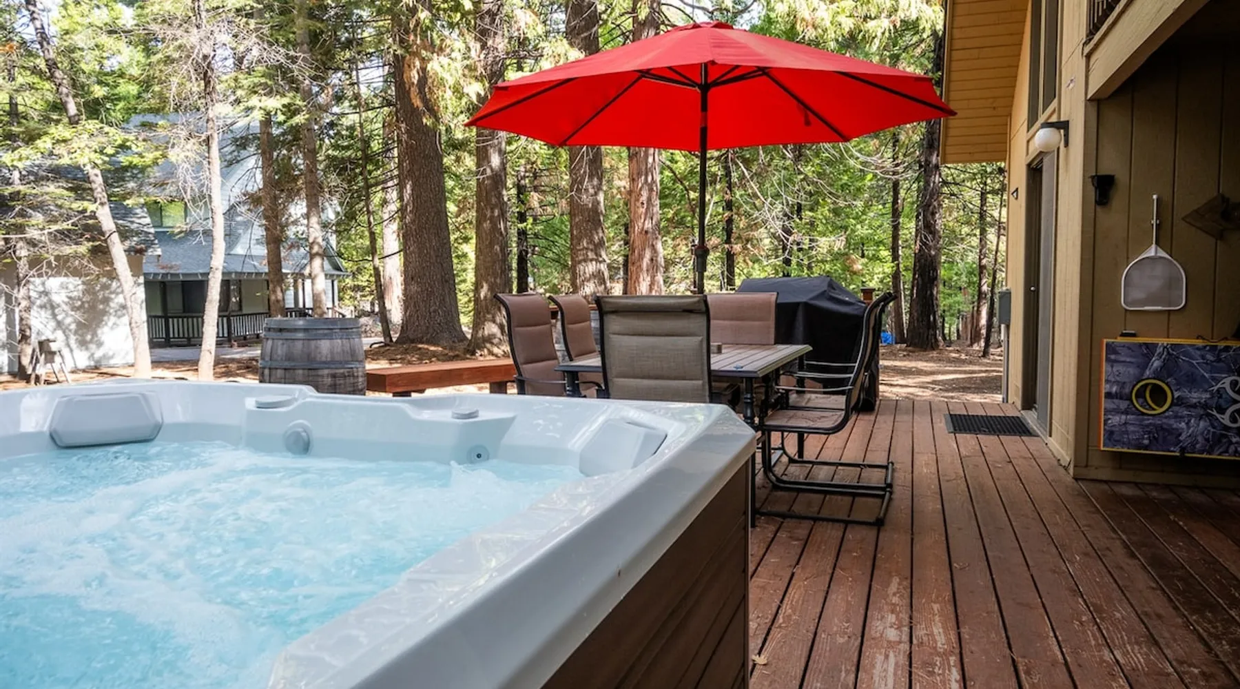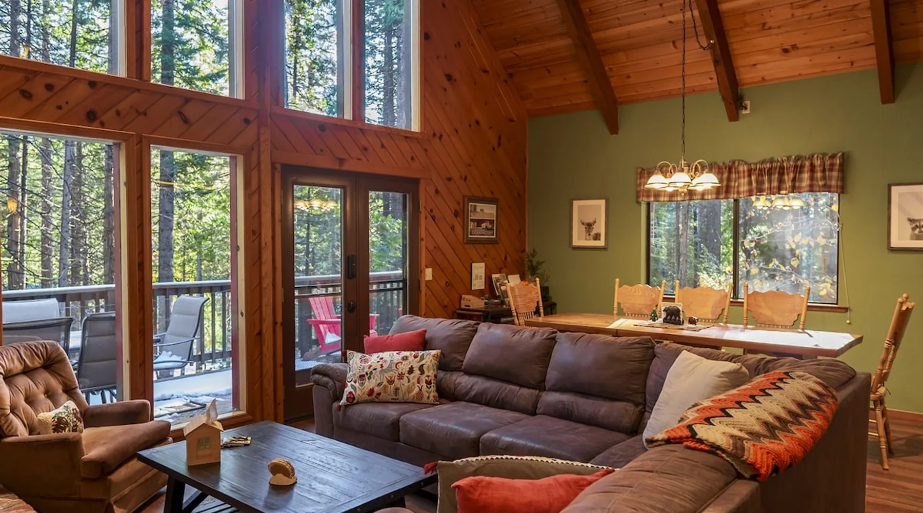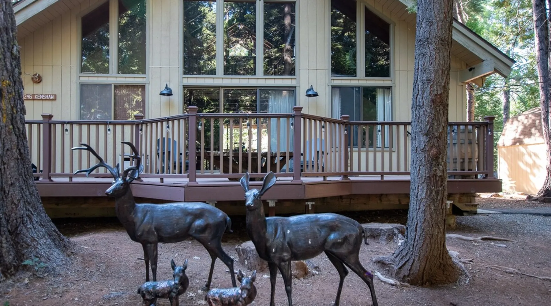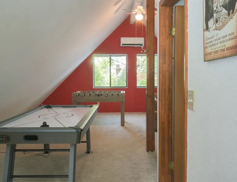 Our inviting cabins are set in a wooded area in the quiet community of Dorrington -- a perfect year-round destination. Visiting Big Trees State Park? Use our pass and one car goes for free! The space Two Cabins right across the street from each other! If you have a larger group and want more room to spread out, our two cabins might be the perfect fit for you. ** More details and photos can be found in the listings for each property: Evergreen Dorrington Chalet and Evergreen Pinecone Cottage. ** We provide our guests seasonal access to the Big Trees Village recreation center and swimming pool. The center is open from Memorial Day through Labor Day. Note: the pool is closed some Tuesdays and Wednesdays, so plan accordingly. One cabin is Evergreen Dorrington Chalet and the other is Pinecone Cottage. Here is a quick summary of what you get with this listing. Sleeping Spaces (maximum 17 guests between the two houses) Evergreen Dorrington Chalet (sleeps up to 11) * 2 Ground Floor Bedrooms (1 King, 1 Queen) * 1 Open Loft (2 Queens, 1 Twin) * 1 Futon in the reading area in the loft * 2 Full bathrooms in the main cabin, and one full bathroom in Game Room Pinecone Cottage (sleeps up to 6) * 2 Ground Floor Bedrooms (1 Queen bed in each) * 1 Open Loft (Trundle bed, with 2 twin mattresses) * 2 Full bathrooms The KITCHENS have a dishwasher, microwave, gas range, and oven, refrigerator, toaster, coffee maker and are equipped with plenty of pots and pans, dishes, silverware, and accessories. The Pinecone Cottage is especially coffee-friendly, with an espresso machine! Both cabins have: EV Charging - see fee below. PARKING: FLAT Driveway FAST WIFI (250+Mbps) - Stream Away! CENTRAL HEAT and AIR CONDITIONING Netflix, Prime Video, Disney+ , HBOMax, ESPN+ INCLUDED Lots of Board games and books (especially kids' books). Highlights of Evergreen Dorrington Chalet include: -Two Kayaks and several life vests -One standup paddleboard -GAME ROOM - Above the detached garage is the Game Room, which includes: * Air Hockey * Smart TV with Roku * Wii Game Console with "Just Dance," "Just Dance 3," "Mario and Sonic London 2012 Olympic Games" * Nintendo Switch with Mario Kart, etc. * Table for cards or puzzles Highlights of Pinecone Cottage include: * Four-Person HOT TUB * Standup Paddleboard * Espresso Machine (Breville Barista Express), Keurig * Roku TV * Nintendo Switch with Mario Kart, etc. CONTACTING US We do not live locally but are available by phone, email, or through listing sites. Our wonderful cleaner is available on-location for immediate needs. SEPARATE RENTAL AGREEMENT Immediately after booking, we'll send a quick link to sign our standard rental agreement (must be completed within 48 hours). TRASH REMOVAL FEE ($150): Like many cabins in the area, we do not have regular trash pickup and we, therefore, require guests to dispose of their own trash either by taking it home or to the local dump on their way out of town. If you choose to leave trash behind we will withhold a $150 trash removal fee from your security deposit or as a payment request through the booking platform. This fee is waived for bookings that check out on Wednesdays, Thursdays, or days when the dump is closed. There is a convenient free trash dump on your way out of town in Avery (more directions/instructions provided after booking). EV CHARGING FEE (per charging station) We charge $0.50/kWh for charging. Depending on your booking platform we will either charge the credit card we have on file or request the payment through the listing site after checkout. PET POLICY: You are welcome to bring along up to two well-behaved, house-trained dogs. We charge a flat $125 for up to two pets. Please describe your furry friends and their behavior/personality when you book! WEATHER AND OUTAGES: No refunds for storms, poor regional air quality, or weather-related outages (Comcast, PG&E, etc). In the winter we strongly encourage you to drive a 4-WHEEL DRIVE (AWD) vehicle and/or be experienced with tire chains. We encourage you to stay informed as best you can about weather forecasts and any planned electric utility outages. Evergreen Dorrington Chalet (not Pinecone Cottage) has an automatic generator to supply power to the house during a power outage. The generator will not, however, maintain broadband internet or cable television if the Comcast substations go down due to a widespread power outage. We may have an emergency internet workaround, but that is not guaranteed. We do the best we can to provide you with full amenities, but rural mountain life has its challenges. We encourage you to consider purchasing a separate low-cost travel insurance policy that can provide you coverage for last-minute cancellations. As part of the Evergreen Dorrington booking process, we provide you the option to purchase trip insurance from a 3rd party provider. CELL PHONE COVERAGE Please note: cell phone reception is limited in the Arnold/Dorrington area. VERIZON (and its partners like Tracfone, and Xfinity Mobile) tends to be the only provider that works.
