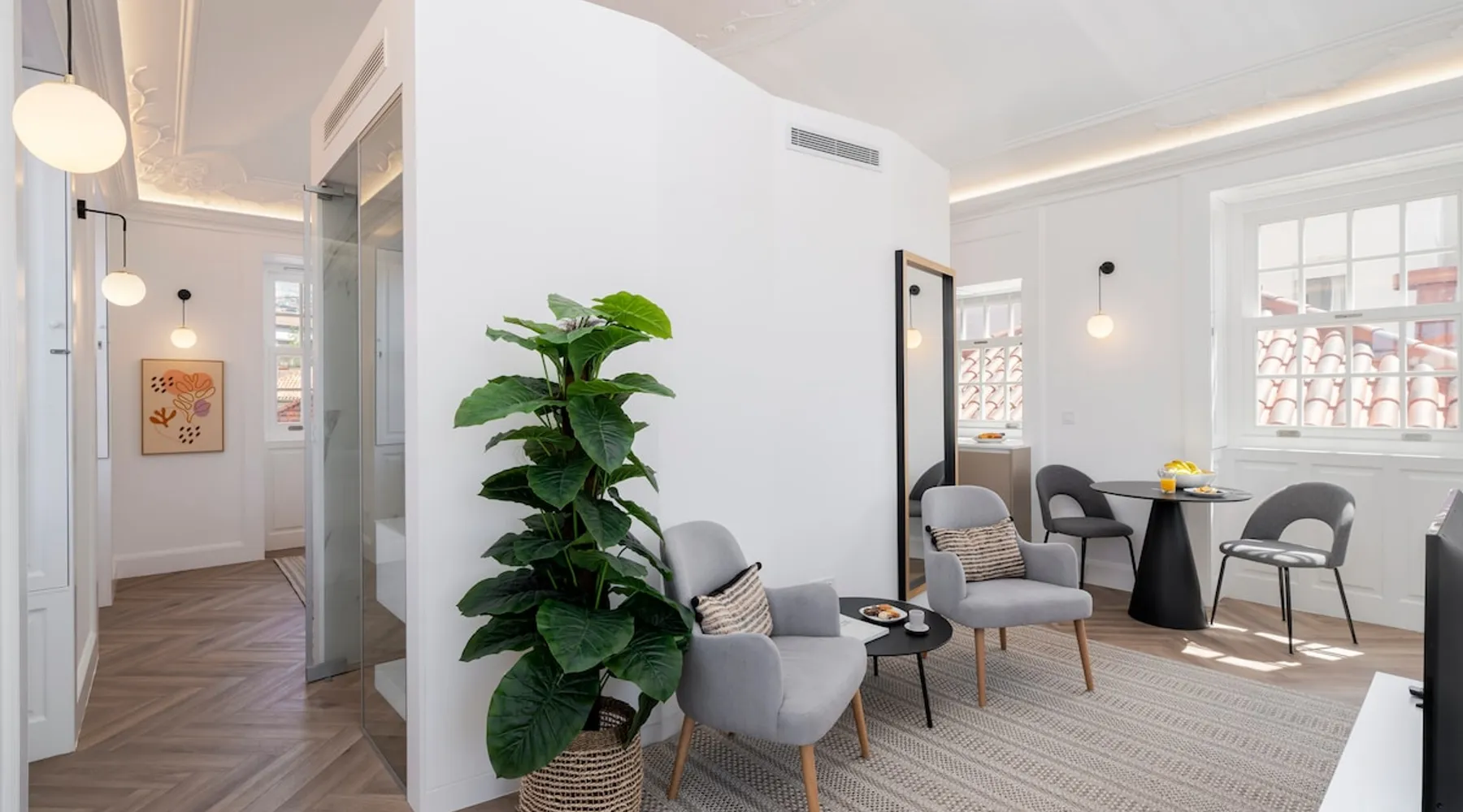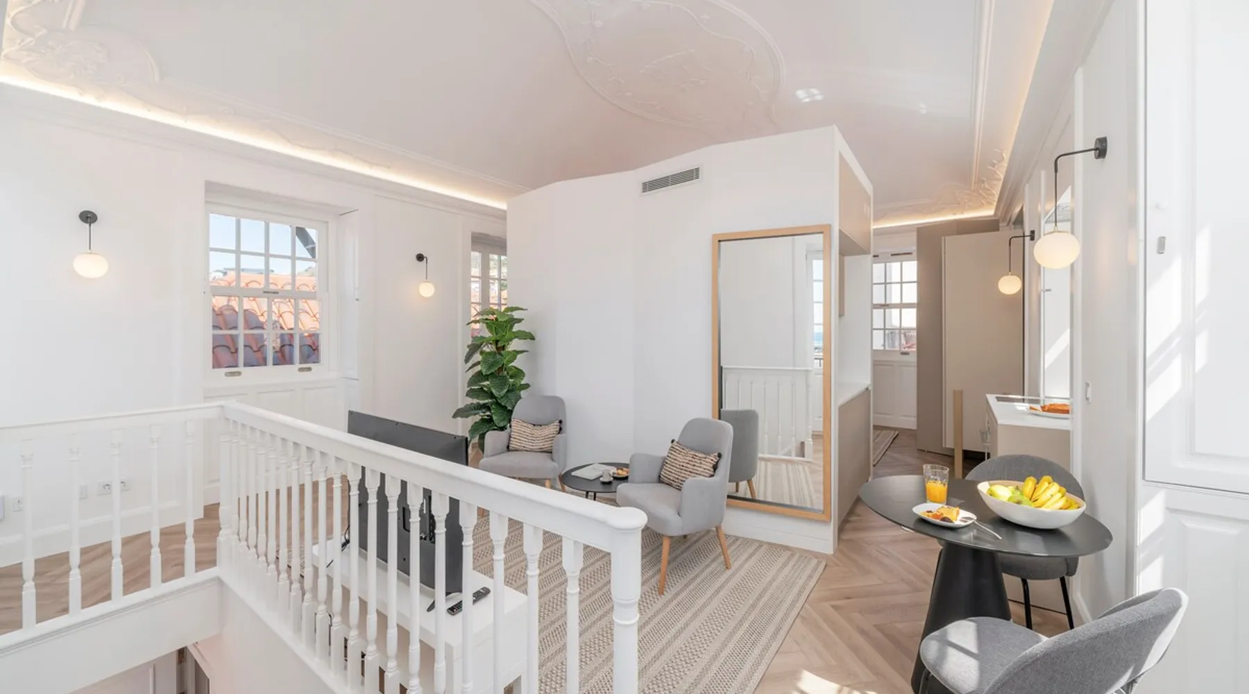 Luxury flat in historic building of the former School of Fine Arts, fully refurbished, located in Funchal city centre. The timeless lines of this building reflect a place where art was made, created and reinvented and where even today all the essence endures, through the contours of elegance prevailing in each space. The space With a decoration thought to detail, where comfort, elegance and luxury are intertwined with all the history of the building, this property presents unparalleled details of art. Flat in open space format, with good natural light, functional, with a contemporary and artistic decoration, ideal for a business or leisure travel context. It offers all the comfort and convenience for a pleasant stay, providing different areas in the same space: living area, TV with cable channels, equipped kitchen, dining area, bathroom with shower and double bed. Maximum capacity for 2 persons. Wi-Fi available in all areas. Building without private parking. The access to this flat can be done through a lift. AREA The building has a common entrance to all the properties and is located in Rua da Carreira, one of the main arteries of Funchal. From this property you will be able to know and visit on foot the main points of interest of the capital of Madeira Island. It is close to restaurants, shopping centres, bars, museums, the Cathedral of Funchal, Funchal Municipal Garden, Marina of Funchal and Municipal Theatre. In the city centre there is plenty of information about all kinds of activities you can do during your holidays: cultural activities, radical activities, nature related activities... whatever the purpose of your visit to Madeira Island! GETTING AROUND The best option to get to the property will be the transfer. Ask us to book one with our local partners. It is cheaper than the taxis you find at the airport. If you rent a car, any navigation app can easily find the address. ACCESS TO PROPERTY You have access to all areas of the property. INTERACTION We are always available to help or answer questions. We do our best to reply all requests. We also have an app for guests with all the important information about the property and other useful information for your stay. OTHER OBSERVATIONS - According to Portuguese law, all guests are required to present a valid ID. (passport or identity card). - Check-in hour must be scheduled in advance. If it is not scheduled within a maximum of 48 hours before, guests will be subject to the availability of our team. - All bed linen and towels are provided. We can also put a baby cot, a high chair and a baby bath if needed, but you should request. There are a first aid kit, extinguishers and fire blanket in the property. ATTENTION Please be advised that a Tourist Fee will be charged to all persons staying overnight in the municipality of Funchal. Thus, all customers staying in tourist resorts and/or accommodation establishments, aged 13 or over, will be charged €2.00 per person/night, up to a maximum of 7 nights and a maximum of €14.00 per person/stay. When you arrive, you will receive a link to pay this municipal tax. RULES We want you to feel at home. We do not ask for more than respect for neighbours and care for the property, in addition to not smoking inside the house. Registration Details 130086/AL
