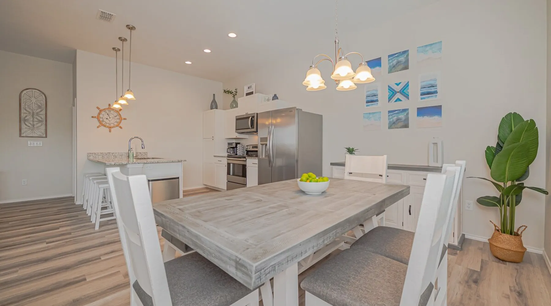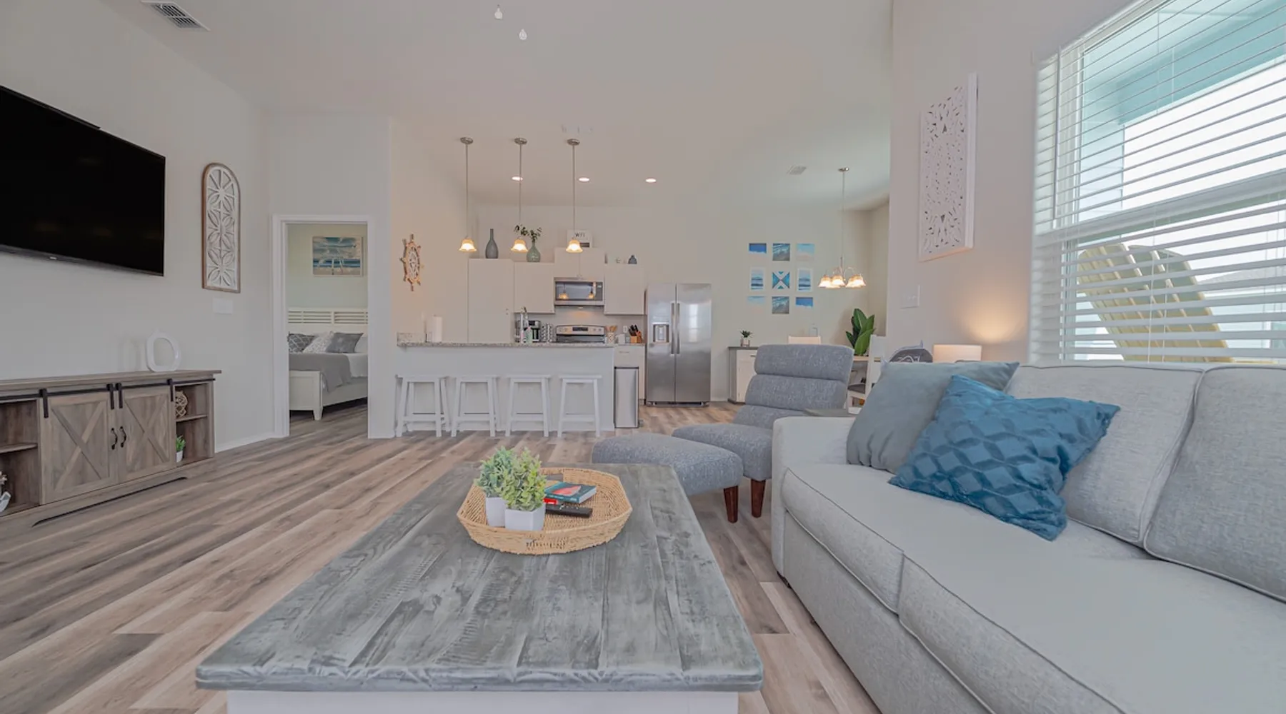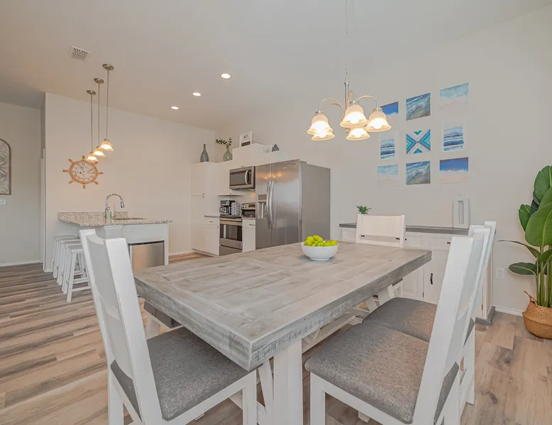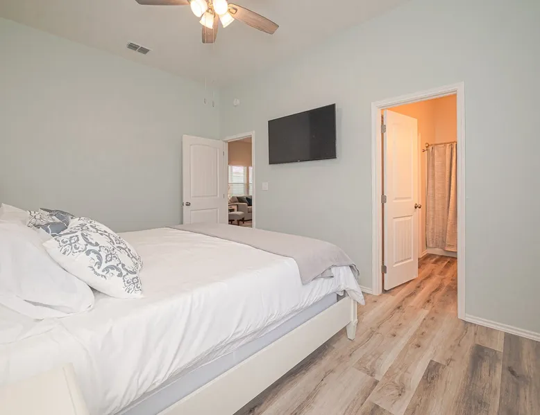 Welcome to Catchin' Paradise! Perfectly located between Rockport Beach & Port Aransas, this spacious home offers comfort and convenience. Features include fully equipped kitchen, premium beds, Smart TVs, and high-speed WiFi. Enjoy outdoor living with upstairs deck and downstairs picnic area with grill. Amenities: EV charger, central AC/heat, community pool. Boat-friendly with nearby launches. Close to restaurants and attractions. Perfect for families - sleeps 8! The space This beautiful, modern beach cottage offers an open floor plan with three spacious bedrooms and two full bathrooms, comfortably sleeping up to eight people. Located just 9 minutes from Rockport Beach and 15 minutes from Port Aransas, Catchin' Paradise provides the perfect home base for exploring the Texas Coast. Imagine relaxing on your deck, watching stars emerge over Redfish Bay while grilling fresh catch. Coastal breezes carry across Estes Flats as the full moon rises over the Gulf of Mexico, with San Jose Island, Mustang Island, and fishing boat lights twinkling in the distance. Where you'll be sleeping: Master Bedroom: King bed and en-suite full bathroom with double vanity. Bedroom 2: Queen bed Bedroom 3: Bunk bed with a full bed on the bottom and a twin bed on top. Common area: Full sofa bed, second full bathroom Your comfort is assured with Smart TVs in every room, high-speed Wi-Fi, and central AC/Heat. The fully stocked kitchen makes meal preparation a breeze, and families will appreciate our thoughtful additions including a beach kit with chairs, kid-friendly games, highchair, and pack-and-play. We've also provided all the essentials: washer/dryer, toiletries, hairdryer, extra blankets, and pillows. Outdoor enthusiasts will love our covered parking area with 12ft ceilings (perfect for boats and trucks), EV charging plug (NEMA 14-50), outdoor BBQ grill, fish-cleaning station, and access to a community swimming pool. The Cove Harbor Marina boat launch is just minutes away. Rockport, ranked as the #3 Best Coastal Small Town in the US (USA Today, 2021), offers world-class year-round fishing and has consistently ranked in TripAdvisor's top 25 destinations. Whether you're hunting for red snapper, speckled sea trout, black drum, or redfish in the bay, or heading to deeper Gulf waters for Tuna, Mackerel, Dorado, Marlin, Sailfish, and Wahoo, you'll find your perfect catch. The area's natural beauty is stunning, with pristine sandy beaches, vibrant sunrises and sunsets, and incredible birdwatching opportunities at the Aransas National Wildlife Refuge - home to rare whooping cranes. The town offers rich cultural attractions, art events, and stellar restaurants. Throughout the year, you can enjoy various events including Market Days, Oysterfest, Whooping Crane Festival, Wine Fest, Sandfest, and LaMardi Gra. Important Note: We recommend purchasing travel insurance through Airbnb or a private carrier, as Rockport is in a hurricane zone (June-December). During such events, we follow Airbnb's Major Disruptive Events policy. Guest access Guests will park below the house and will have to walk upstairs (24 steps) to the main floor. The property is self-check-in, with keyless entry. Guests will receive check in instructions and a unique code prior to check-in Other things to note Spanish translation service is available. No smoking, pets, or parties. The property has four external cameras. Two downstairs covering the parking, one upstairs pointed down at the stairs and one pointed towards the front door. These are for your protection and ours, and we always respect our guest's privacy. Rental agreement required for stays over 28 days.