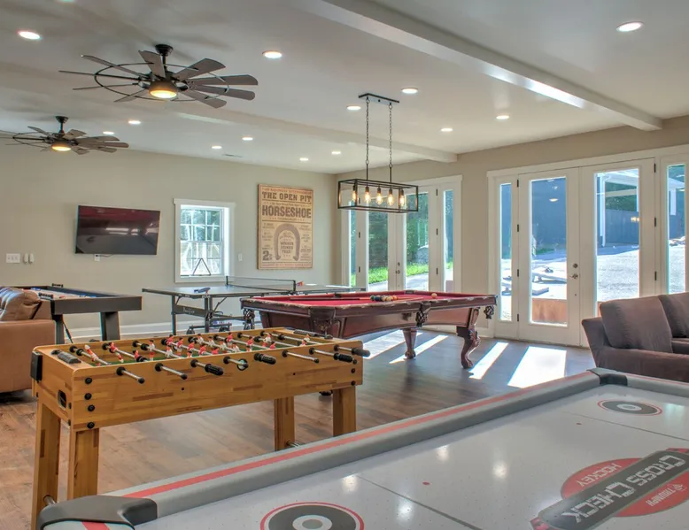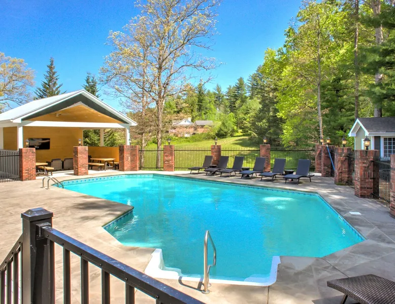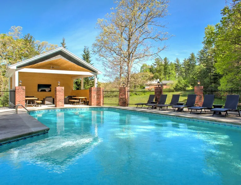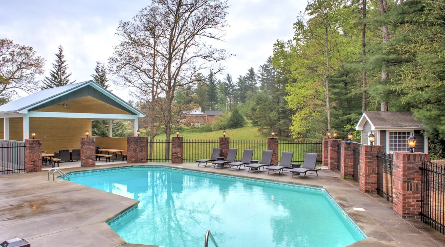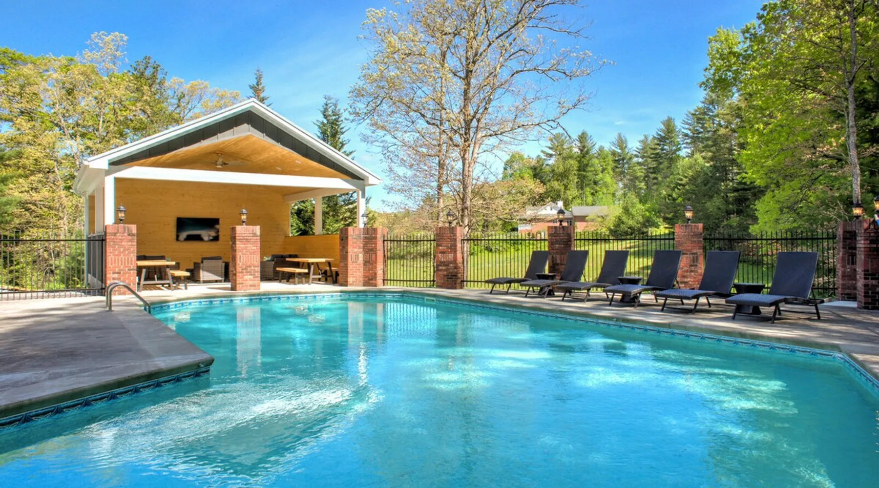 Welcome to Brush Creek Pool House! The grand estate pool house and property have undergone a huge renovation (2022) and it looks spectacular! This is the ultimate luxury vacation spot for your family’s time in the mountains of Western North Carolina. In planning & executing the major renovations, our guests' needs were intensively considered during the designing and decorating of the home. The space You will have a ton of amenities including a seasonal swimming pool, hot tub, game room, stunning waterfall water feature and much more! Come enjoy & truly experience an amazing estate, only 20 minutes to Biltmore Estate and downtown Asheville! You will feel right at home as you enter the grand two-level entryway along with the rustic details and the modern touches. There is plenty of space for all, including a spacious living room with a large sectional, large screen tv and electric fireplace to take in a game or movie. The keeping room off the kitchen is lovely with 2 comfortable leather sofas with tons of natural light. The kitchen is fully equipped, all stainless-steel appliances, including 2 refrigerators, 2 dishwashers. A custom-built dining table and large island with bar seating is where everyone will want to gather and enjoy a meal. This stunning property offers 8 bedrooms, in the main house, all outfitted with brand new mattresses to ensure a restful sleep, each with their own bathroom. The last 2 King ensuite bedrooms are in the detached building near the game room. The game room is huge and has something for everyone, including pool, ping pong, corn hole, etc. Another refrigerator is out there for your convenience. And last but certainly not least, is the amazing outdoor spaces! This is going to be the main attraction whether it’s pool season or not. Brush Creek Pool House is perched on over 3 acres of land, with space to explore. Step out onto the covered deck with comfortable seating, perfect for a morning cup of coffee. The swimming pool is available seasonally with plenty of lounge chairs available. This is such a relaxing space where you are surrounded by the beautiful greenery the Blue Ridge Mountains provide. When you can’t tear yourself away from the pool area, no problem, there are picnic tables for dining outside. You will enjoy your time so much that you may not want to leave! Exclusive Special: When you book Brush Creek Pool House you will receive a special code for discounted tickets to the Biltmore Estate! Contact us for more info. Home Truths: - Sleeps in beds: 26 - Max Occupancy: 28 - 8 bedrooms in the main house, 2 in the detached building with game room - Swimming pool is open approximately Mid May to Mid September; The pool will be maintained weekly in season and may require time out of the pool following treatment - We provide linens for all beds; other occupancy will require guests providing their own linens - Internet Speed: Download 340 Mbps Upload 10 Mbps - Ice Maker is currently not available We openly share our Cleaning Fees in a manner of full disclosure, as we think this is the most honest and forthright approach with respect to our guests. Our Cleaning Fees are backed by our Clean Guarantee, which reflects the highest level of standards, pristine environments for our guests, and a level of clean that surpasses any other vacation homes; we literally guarantee it! Quiet Policy: Parties, loud noise and unruly behavior are absolutely prohibited, and guests are expected to respect the neighbors and the peace this mountain retreat area affords. Early Check In and/or Late Check Out may be possible, depending on cleaning schedules and other reservations. If it is possible, there may be an additional fee that would be determined based on the time that you wish to check in or out and the seasonal rates. Pets: Many of our guests have allergies so we have maintained a pet-free environment so they can enjoy their vacation without the potential of an allergic reaction. If you have a pet we can recommend some alternatives nearby. Early Check In and/or Late Check Out may be possible, depending on cleaning schedules and other reservations. If it is possible, there may be an additional fee that would be determined based on the time that you wish to check in or out and the seasonal rates. Please inquire for details regarding payment, the cancellation policy, military discounts, and trip insurance. Note: Reservations over 30 days are subject for review prior to acceptance. A separate rental agreement will be required for 90+ day stays. Last Minute Bookings: Reservations made within 7 days of check-in require additional documentation before confirmation.