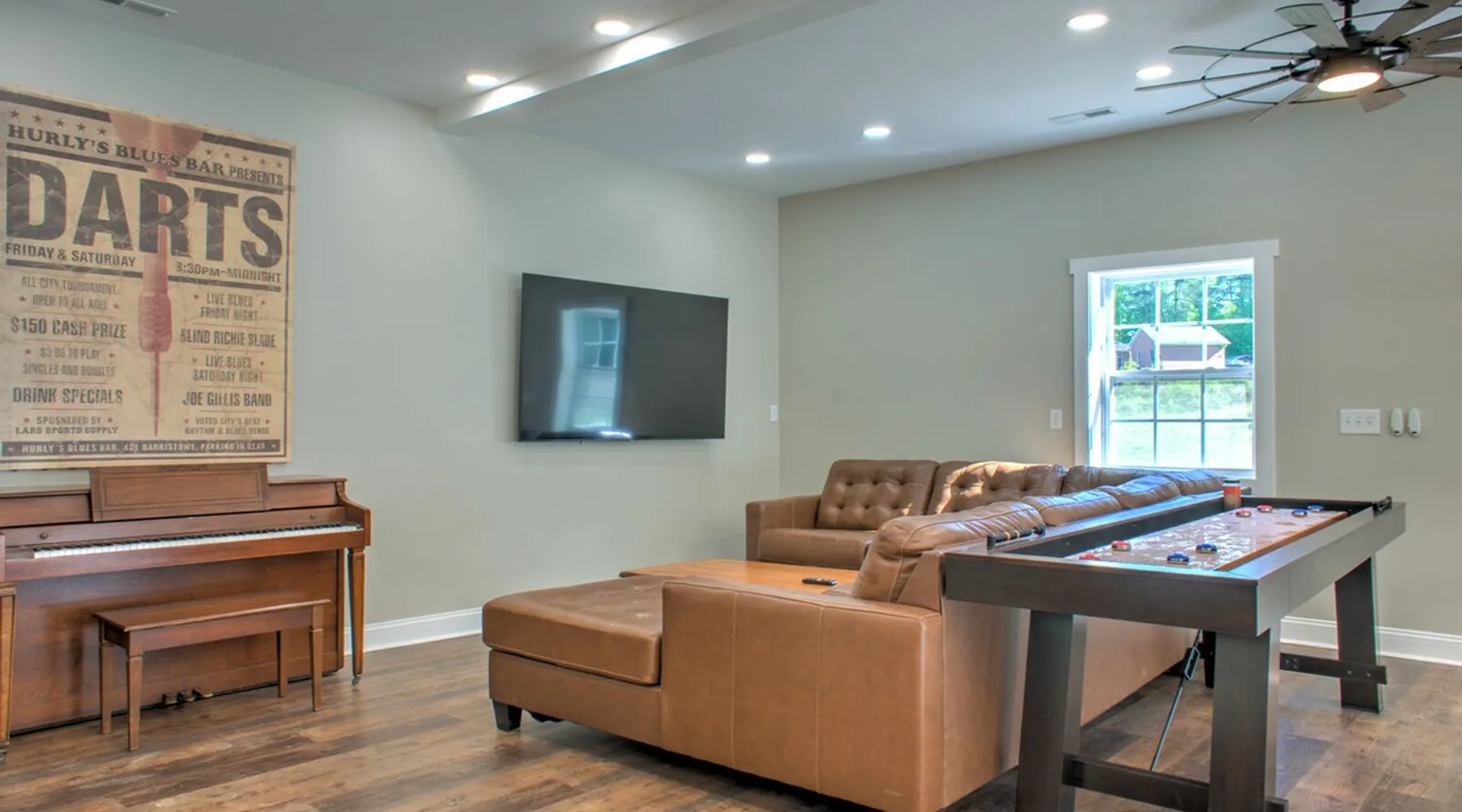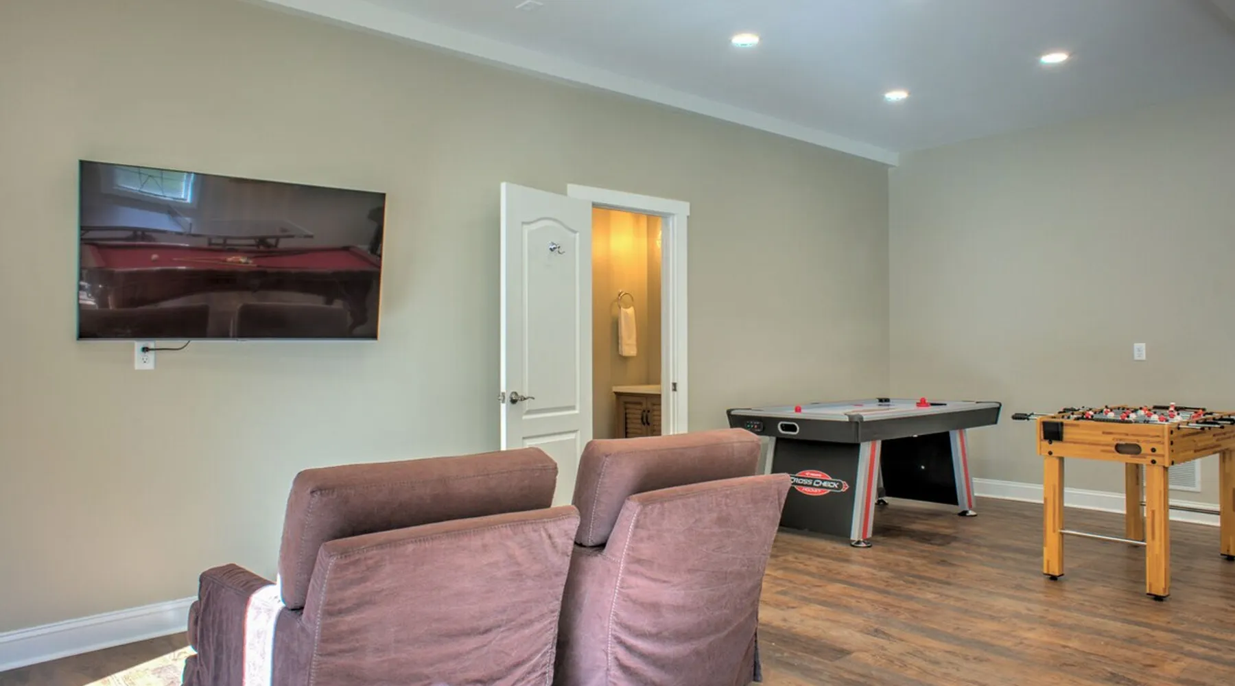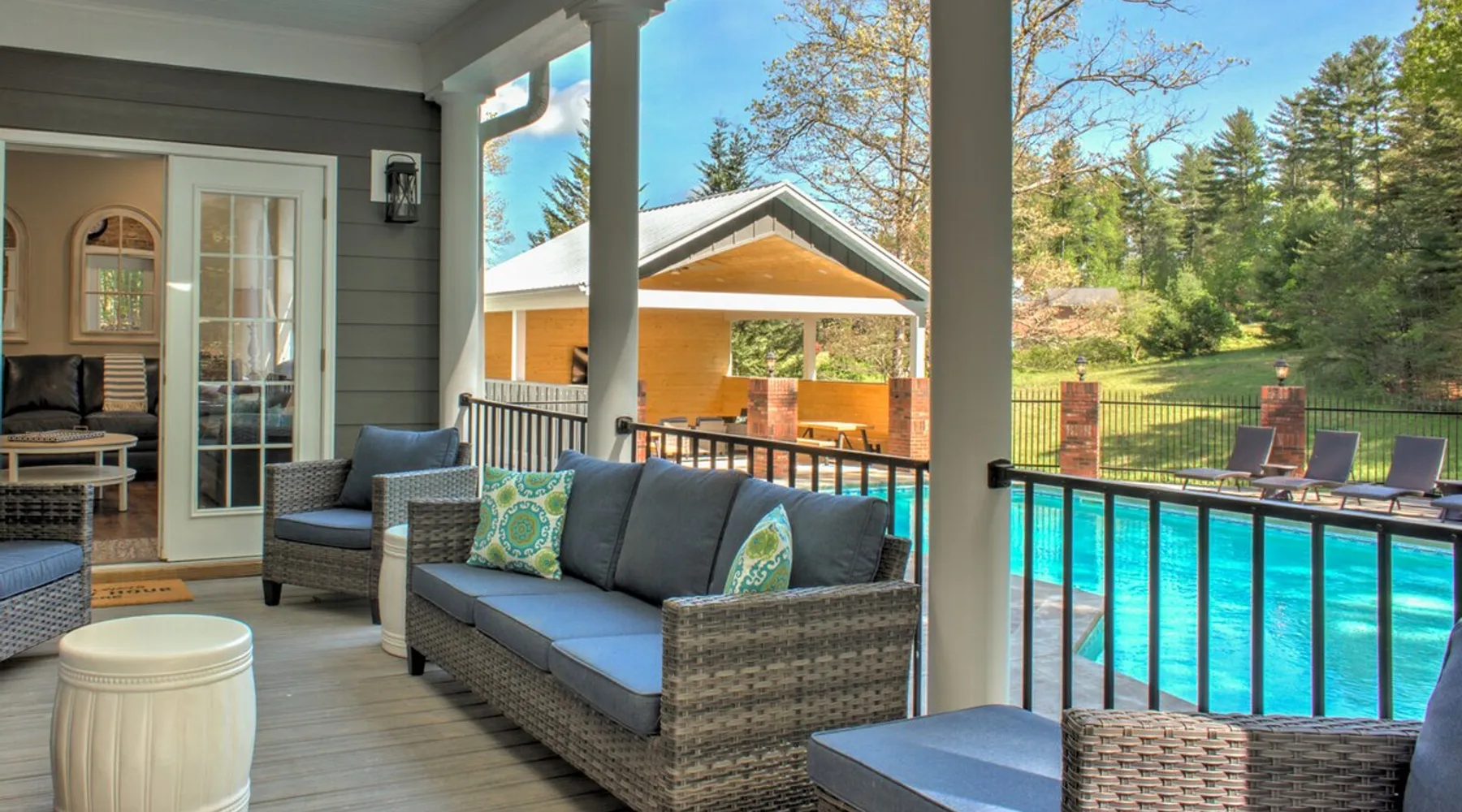 Welcome to Brush Creek Pool House! The grand estate pool house and property have undergone a huge renovation (2022) and it looks spectacular! This is the ultimate luxury vacation spot for your family’s time in the mountains of Western North Carolina. In planning & executing the major renovations, our guests' needs were intensively considered during the designing and decorating of the home. The space You will have a ton of amenities including a seasonal swimming pool, hot tub, game room, stunning waterfall water feature and much more! Come enjoy & truly experience an amazing estate, only 20 minutes to Biltmore Estate and downtown Asheville! You will feel right at home as you enter the grand two-level entryway along with the rustic details and the modern touches. There is plenty of space for all, including a spacious living room with a large sectional, large screen tv and electric fireplace to take in a game or movie. The keeping room off the kitchen is lovely with 2 comfortable leather sofas with tons of natural light. The kitchen is fully equipped, all stainless-steel appliances, including 2 refrigerators, 2 dishwashers. A custom-built dining table and large island with bar seating is where everyone will want to gather and enjoy a meal. This stunning property offers 8 bedrooms, in the main house, all outfitted with brand new mattresses to ensure a restful sleep, each with their own bathroom. The last 2 King ensuite bedrooms are in the detached building near the game room. The game room is huge and has something for everyone, including pool, ping pong, corn hole, etc. Another refrigerator is out there for your convenience. And last but certainly not least, is the amazing outdoor spaces! This is going to be the main attraction whether it’s pool season or not. Brush Creek Pool House is perched on over 3 acres of land, with space to explore. Step out onto the covered deck with comfortable seating, perfect for a morning cup of coffee. The swimming pool is available seasonally with plenty of lounge chairs available. This is such a relaxing space where you are surrounded by the beautiful greenery the Blue Ridge Mountains provide. When you can’t tear yourself away from the pool area, no problem, there are picnic tables for dining outside. You will enjoy your time so much that you may not want to leave! Exclusive Special: When you book Brush Creek Pool House you will receive a special code for discounted tickets to the Biltmore Estate! Contact us for more info. Home Truths: - Sleeps in beds: 26 - Max Occupancy: 28 - 8 bedrooms in the main house, 2 in the detached building with game room - Swimming pool is open approximately Mid May to Mid September; The pool will be maintained weekly in season and may require time out of the pool following treatment - We provide linens for all beds; other occupancy will require guests providing their own linens - Internet Speed: Download 340 Mbps Upload 10 Mbps - Ice Maker is currently not available We openly share our Cleaning Fees in a manner of full disclosure, as we think this is the most honest and forthright approach with respect to our guests. Our Cleaning Fees are backed by our Clean Guarantee, which reflects the highest level of standards, pristine environments for our guests, and a level of clean that surpasses any other vacation homes; we literally guarantee it! Quiet Policy: Parties, loud noise and unruly behavior are absolutely prohibited, and guests are expected to respect the neighbors and the peace this mountain retreat area affords. Early Check In and/or Late Check Out may be possible, depending on cleaning schedules and other reservations. If it is possible, there may be an additional fee that would be determined based on the time that you wish to check in or out and the seasonal rates. Pets: Many of our guests have allergies so we have maintained a pet-free environment so they can enjoy their vacation without the potential of an allergic reaction. If you have a pet we can recommend some alternatives nearby. Early Check In and/or Late Check Out may be possible, depending on cleaning schedules and other reservations. If it is possible, there may be an additional fee that would be determined based on the time that you wish to check in or out and the seasonal rates. Please inquire for details regarding payment, the cancellation policy, military discounts, and trip insurance. Note: Reservations over 30 days are subject for review prior to acceptance. A separate rental agreement will be required for 90+ day stays. Last Minute Bookings: Reservations made within 7 days of check-in require additional documentation before confirmation.