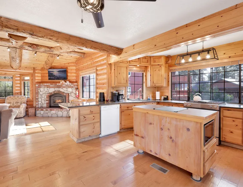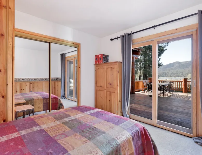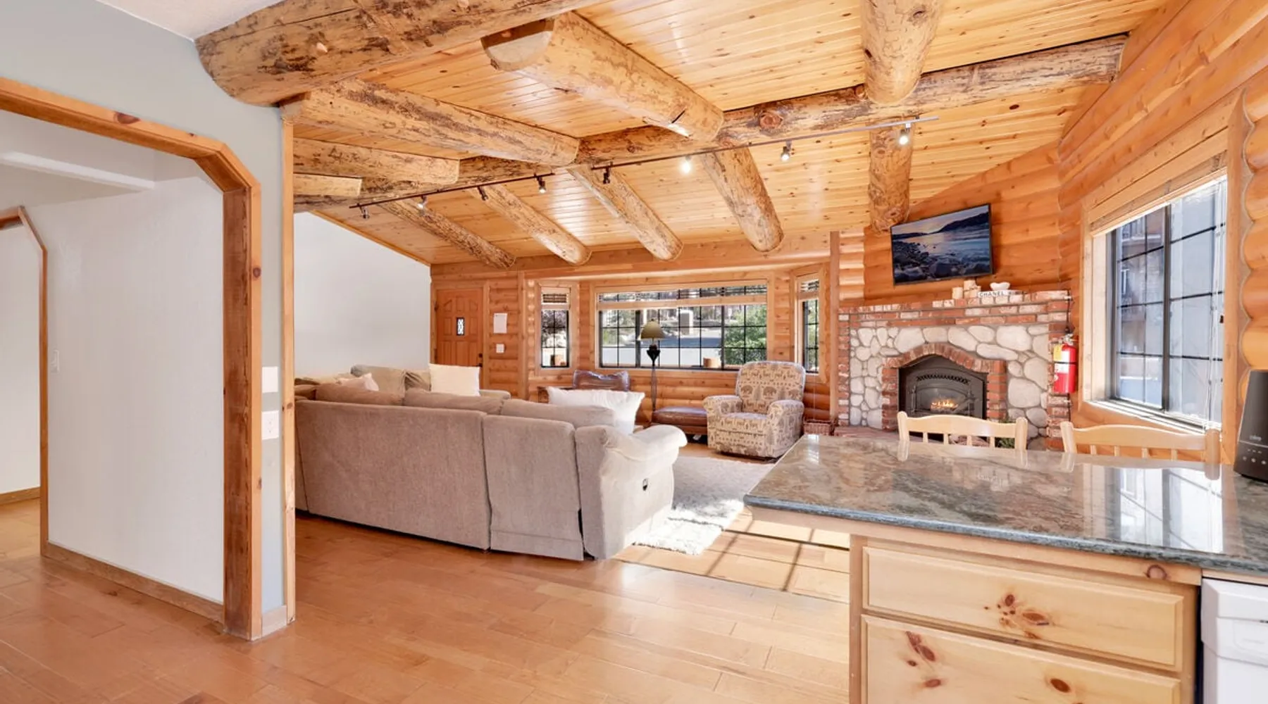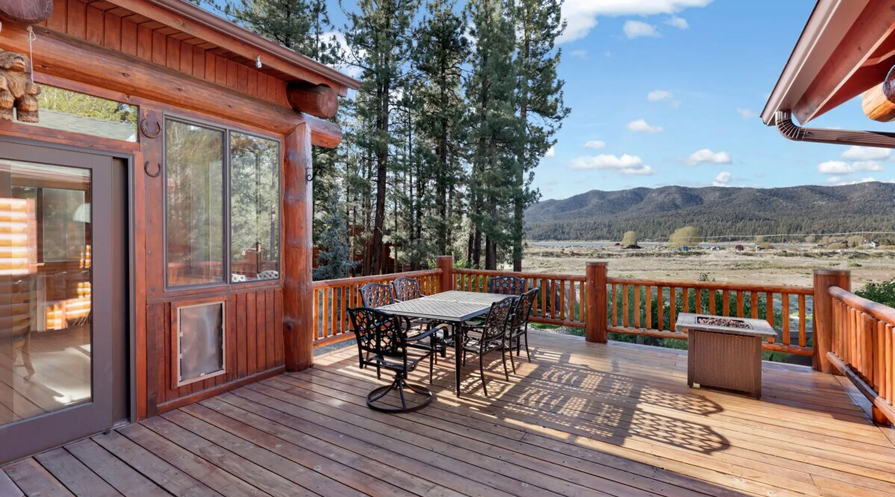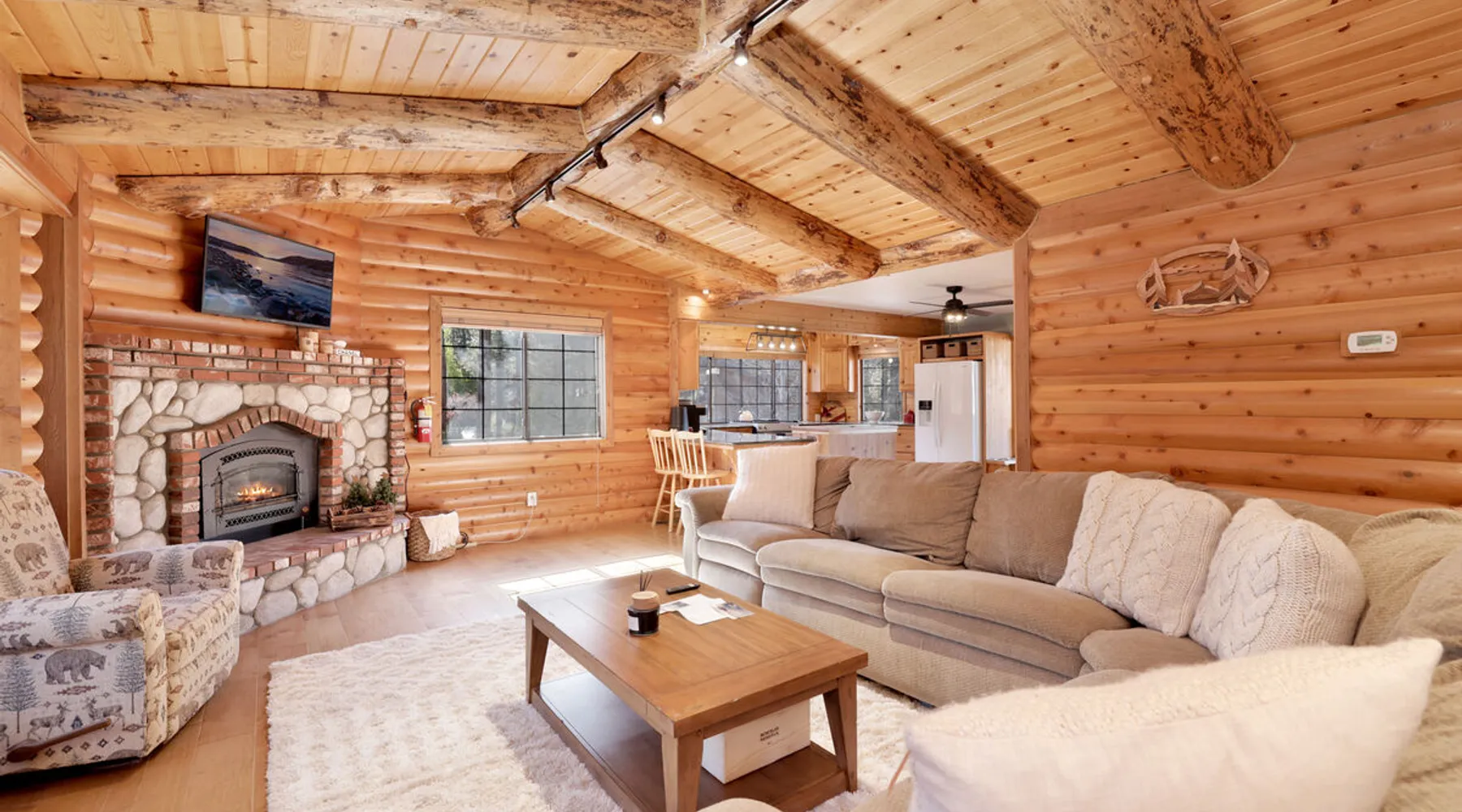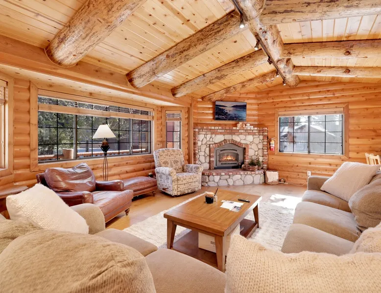 The Alps Lodge is the perfect four-season destination for any group visiting Big Bear, you will have all that you need for a memorable and relaxing visit to the mountains. Our single-story log cabin is the perfect escape for your trip, boasting ultra-modern and comfortable furnishings paired with added relaxation and serenity. The spacious tree-lined central lot sits within a short walk from Lake or a quick drive to the ski slopes or downtown Village area for shopping and dining. The space The Alps Lodge | Central Log Cabin Retreat The Alps Lodge is the perfect four-season destination for any group visiting Big Bear, you will have all that you need for a memorable and relaxing visit to the mountains. Our single-story log cabin is the perfect escape for your trip, boasting ultra-modern and comfortable furnishings paired with added relaxation and serenity. The spacious tree-lined central lot sits within a short walk from Lake or a quick drive to the ski slopes or downtown Village area for shopping and dining. Also features a fully fenced yard providing security and privacy for the kids or Fido. Boasting modern amenities and furnishings you will feel as if you have your own private lodge to yourselves the moment you enter into the warm and relaxing family room area, forced central heat keeps your group cozy no matter the season you choose to visit while the beautiful hardwood floors pair perfectly with the knotty pine vaulted ceilings. You will love the comfortable sitting couches sat in front of the toasty easy to light fireplace, with a flat-screen streaming TV, and complimentary WIFI provided for your convenience, this is the perfect space to snuggle up in front of the fire and enjoy a movie night or watch the snow fall through the big open windows. The awesome open floor plan allows the chef of your group to visit with your family and friends while whipping up your home-cooked meals in the updated kitchen, the oak cabinets are stocked full with all that you will need including cookware and utensils. General appliances and even a dishwasher are available for your convenience making your meal prep and cleanup here a breeze. A breakfast nook bar is a great place for enjoying meals or drinks, and there is a game/dining table in a separate sunroom with its own wood-burning fireplace to keep you toasty as the snow falls all around you outside. All three of your sleeping quarters are made up for your vacation with warm linens, blankets, and fresh shower towels in each bathroom. You will love the spacious master suite which offers an open full bathroom and flat-screen streaming TV. The two other guest rooms boast terrific views of the meadows and mountains. Venture out from the dining room area to find the spacious back sun deck and fenced back yard, boasting outdoor patio furnishings and a fire pit for your enjoyment. You will love relaxing here or firing up the propane BBQ after a day of adventures out on the mountain and enjoying the peaceful, beautiful views. It is the perfect spot for sipping your first cup of coffee in the mornings among the birds. The Alps Lodge has it all pairing the comforts from home with modern cabin décor and bonus amenities plus a prime central location, this cabin is the ultimate destination for your next mountain vacation! Don't miss your chance at the vacation of a lifetime by booking this chalet for your next alpine vacation to Big Bear!! Sleeping Arrangements: Bedroom 1: King Bed, Streaming TV, Private 3/4 Bath (Shower Only) Bedroom 2: King Bed + Full Futon Bedroom 3: Full Murphy Bed Bathroom Arrangements: Bathroom 1: Private 3/4 Bath (Shower Only)- Bedroom 1 Bathroom 2: Hallway Full Bath -Sleeps 7 -3 Cars Driveway Parking -2 Pets Welcome w/ Additional Fee -1,448 Total Square Feet City Permit #: VRR-2024-0550 Registration Details 2024-0550