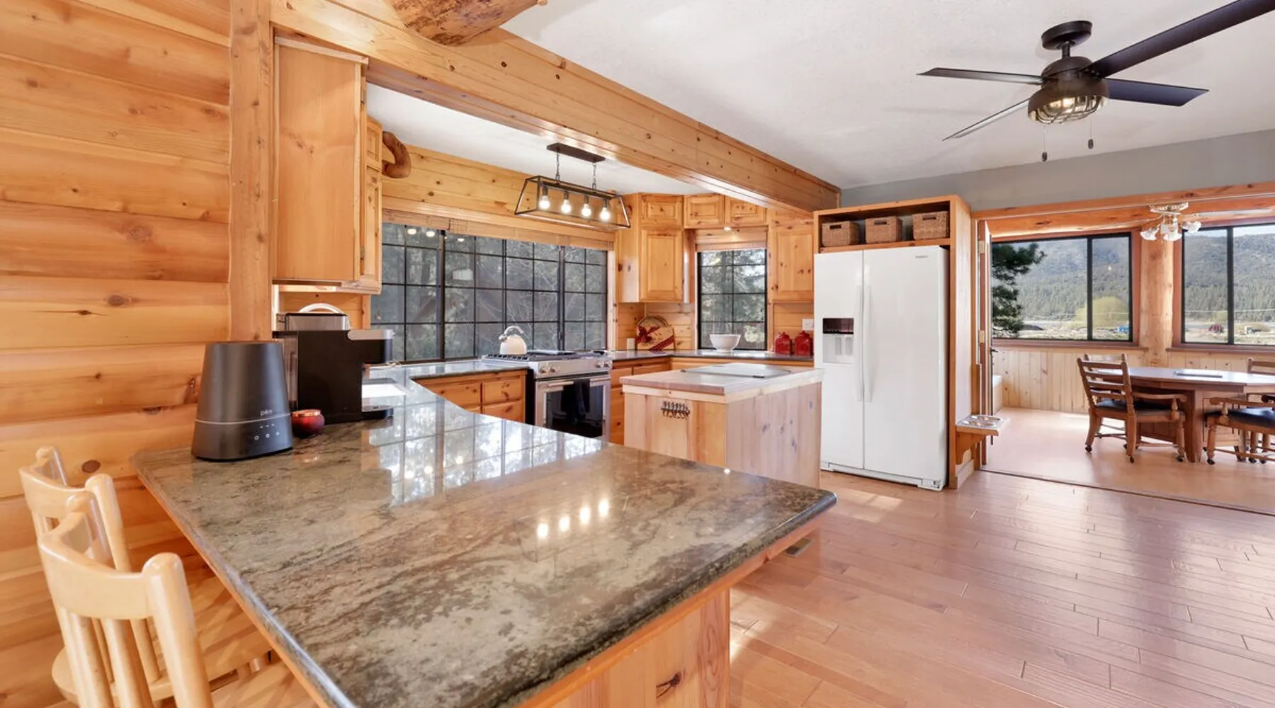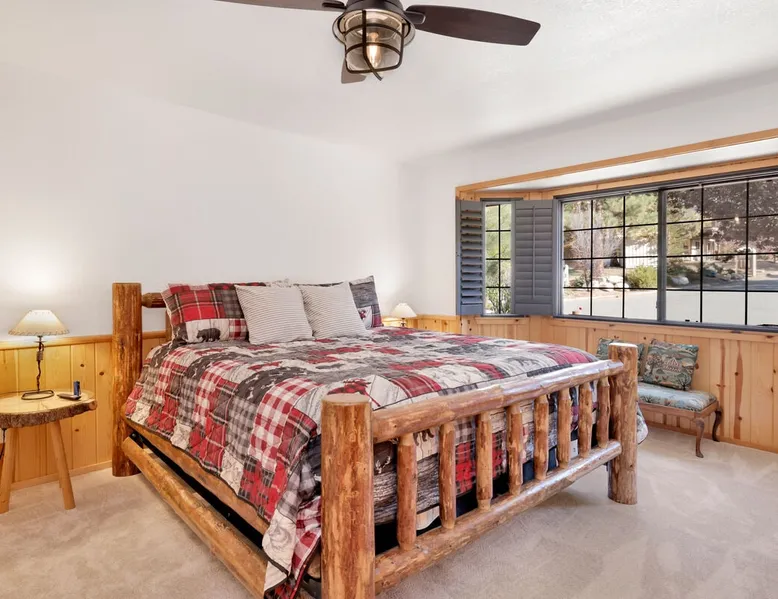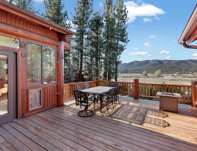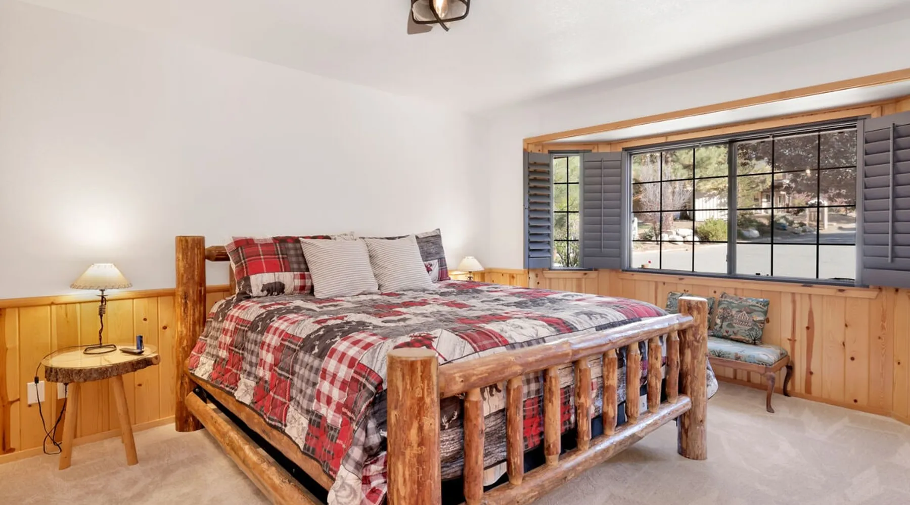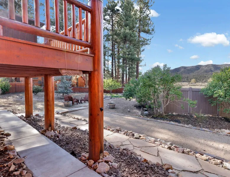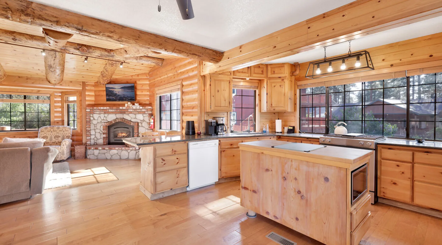 The Alps Lodge is the perfect four-season destination for any group visiting Big Bear, you will have all that you need for a memorable and relaxing visit to the mountains. Our single-story log cabin is the perfect escape for your trip, boasting ultra-modern and comfortable furnishings paired with added relaxation and serenity. The spacious tree-lined central lot sits within a short walk from Lake or a quick drive to the ski slopes or downtown Village area for shopping and dining. The space The Alps Lodge | Central Log Cabin Retreat The Alps Lodge is the perfect four-season destination for any group visiting Big Bear, you will have all that you need for a memorable and relaxing visit to the mountains. Our single-story log cabin is the perfect escape for your trip, boasting ultra-modern and comfortable furnishings paired with added relaxation and serenity. The spacious tree-lined central lot sits within a short walk from Lake or a quick drive to the ski slopes or downtown Village area for shopping and dining. Also features a fully fenced yard providing security and privacy for the kids or Fido. Boasting modern amenities and furnishings you will feel as if you have your own private lodge to yourselves the moment you enter into the warm and relaxing family room area, forced central heat keeps your group cozy no matter the season you choose to visit while the beautiful hardwood floors pair perfectly with the knotty pine vaulted ceilings. You will love the comfortable sitting couches sat in front of the toasty easy to light fireplace, with a flat-screen streaming TV, and complimentary WIFI provided for your convenience, this is the perfect space to snuggle up in front of the fire and enjoy a movie night or watch the snow fall through the big open windows. The awesome open floor plan allows the chef of your group to visit with your family and friends while whipping up your home-cooked meals in the updated kitchen, the oak cabinets are stocked full with all that you will need including cookware and utensils. General appliances and even a dishwasher are available for your convenience making your meal prep and cleanup here a breeze. A breakfast nook bar is a great place for enjoying meals or drinks, and there is a game/dining table in a separate sunroom with its own wood-burning fireplace to keep you toasty as the snow falls all around you outside. All three of your sleeping quarters are made up for your vacation with warm linens, blankets, and fresh shower towels in each bathroom. You will love the spacious master suite which offers an open full bathroom and flat-screen streaming TV. The two other guest rooms boast terrific views of the meadows and mountains. Venture out from the dining room area to find the spacious back sun deck and fenced back yard, boasting outdoor patio furnishings and a fire pit for your enjoyment. You will love relaxing here or firing up the propane BBQ after a day of adventures out on the mountain and enjoying the peaceful, beautiful views. It is the perfect spot for sipping your first cup of coffee in the mornings among the birds. The Alps Lodge has it all pairing the comforts from home with modern cabin décor and bonus amenities plus a prime central location, this cabin is the ultimate destination for your next mountain vacation! Don't miss your chance at the vacation of a lifetime by booking this chalet for your next alpine vacation to Big Bear!! Sleeping Arrangements: Bedroom 1: King Bed, Streaming TV, Private 3/4 Bath (Shower Only) Bedroom 2: King Bed + Full Futon Bedroom 3: Full Murphy Bed Bathroom Arrangements: Bathroom 1: Private 3/4 Bath (Shower Only)- Bedroom 1 Bathroom 2: Hallway Full Bath -Sleeps 7 -3 Cars Driveway Parking -2 Pets Welcome w/ Additional Fee -1,448 Total Square Feet City Permit #: VRR-2024-0550 Registration Details 2024-0550