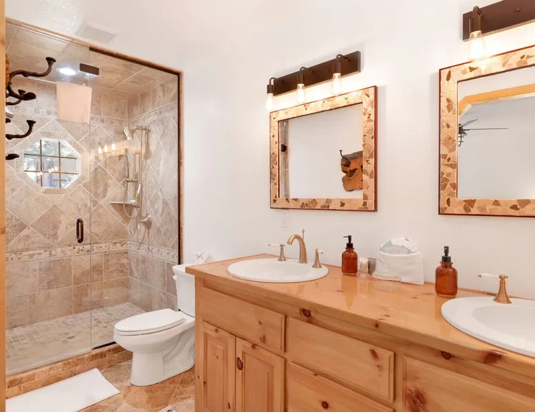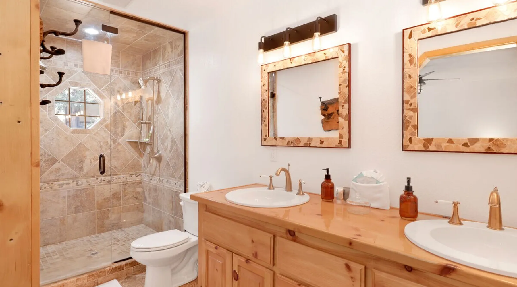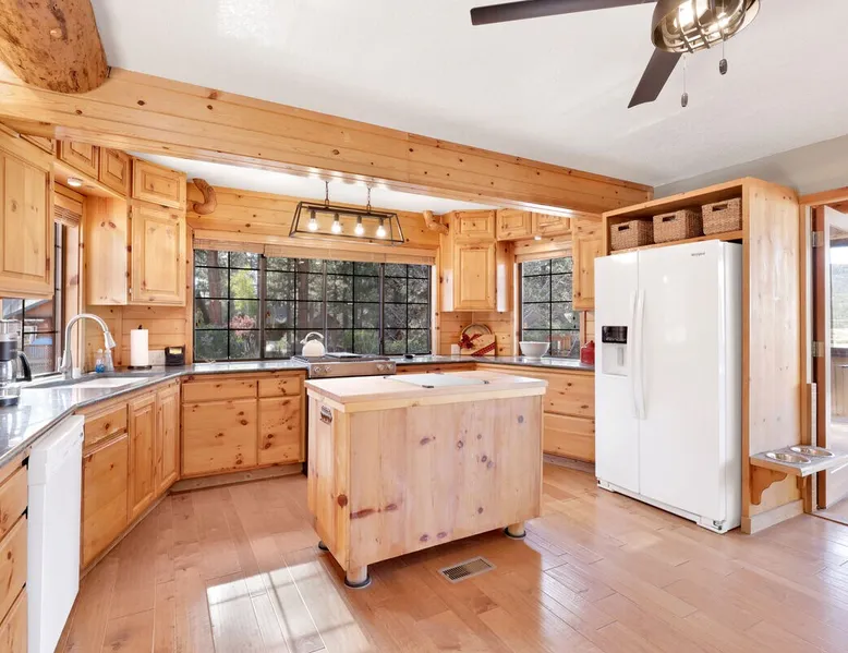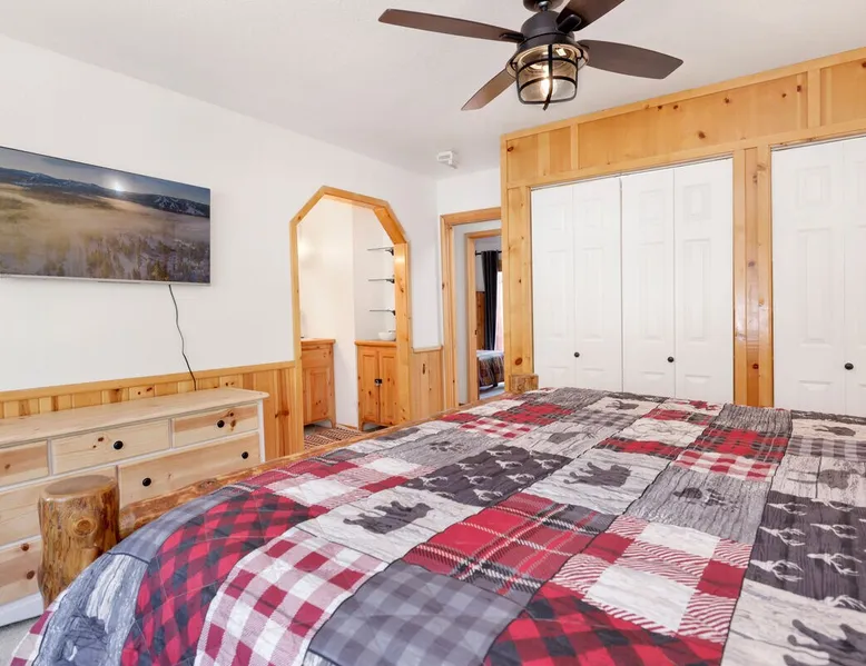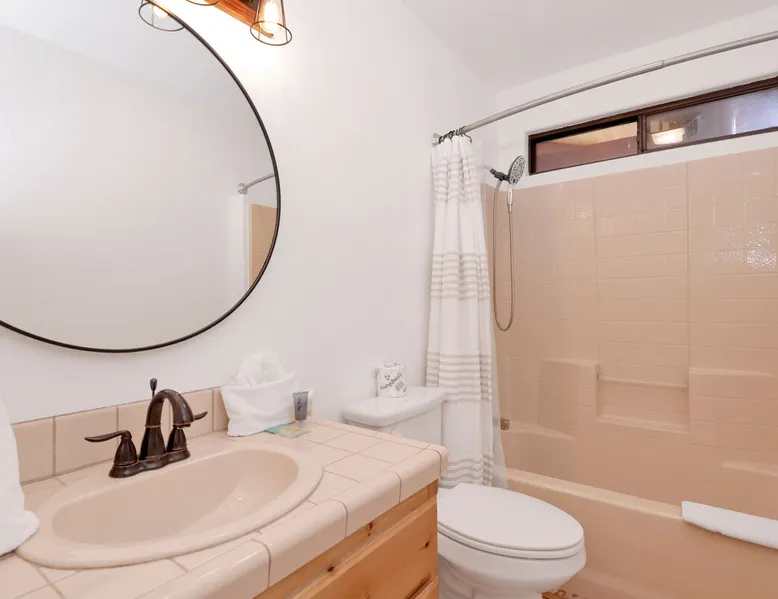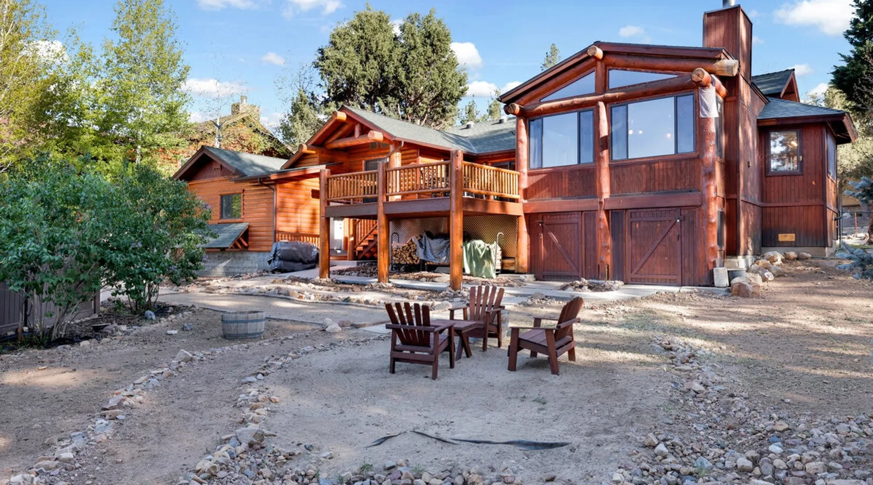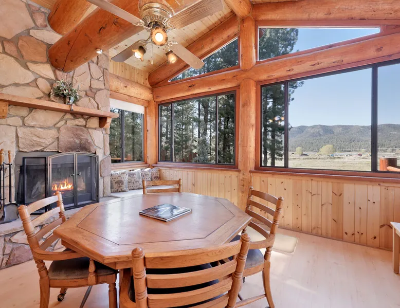 The Alps Lodge is the perfect four-season destination for any group visiting Big Bear, you will have all that you need for a memorable and relaxing visit to the mountains. Our single-story log cabin is the perfect escape for your trip, boasting ultra-modern and comfortable furnishings paired with added relaxation and serenity. The spacious tree-lined central lot sits within a short walk from Lake or a quick drive to the ski slopes or downtown Village area for shopping and dining. The space The Alps Lodge | Central Log Cabin Retreat The Alps Lodge is the perfect four-season destination for any group visiting Big Bear, you will have all that you need for a memorable and relaxing visit to the mountains. Our single-story log cabin is the perfect escape for your trip, boasting ultra-modern and comfortable furnishings paired with added relaxation and serenity. The spacious tree-lined central lot sits within a short walk from Lake or a quick drive to the ski slopes or downtown Village area for shopping and dining. Also features a fully fenced yard providing security and privacy for the kids or Fido. Boasting modern amenities and furnishings you will feel as if you have your own private lodge to yourselves the moment you enter into the warm and relaxing family room area, forced central heat keeps your group cozy no matter the season you choose to visit while the beautiful hardwood floors pair perfectly with the knotty pine vaulted ceilings. You will love the comfortable sitting couches sat in front of the toasty easy to light fireplace, with a flat-screen streaming TV, and complimentary WIFI provided for your convenience, this is the perfect space to snuggle up in front of the fire and enjoy a movie night or watch the snow fall through the big open windows. The awesome open floor plan allows the chef of your group to visit with your family and friends while whipping up your home-cooked meals in the updated kitchen, the oak cabinets are stocked full with all that you will need including cookware and utensils. General appliances and even a dishwasher are available for your convenience making your meal prep and cleanup here a breeze. A breakfast nook bar is a great place for enjoying meals or drinks, and there is a game/dining table in a separate sunroom with its own wood-burning fireplace to keep you toasty as the snow falls all around you outside. All three of your sleeping quarters are made up for your vacation with warm linens, blankets, and fresh shower towels in each bathroom. You will love the spacious master suite which offers an open full bathroom and flat-screen streaming TV. The two other guest rooms boast terrific views of the meadows and mountains. Venture out from the dining room area to find the spacious back sun deck and fenced back yard, boasting outdoor patio furnishings and a fire pit for your enjoyment. You will love relaxing here or firing up the propane BBQ after a day of adventures out on the mountain and enjoying the peaceful, beautiful views. It is the perfect spot for sipping your first cup of coffee in the mornings among the birds. The Alps Lodge has it all pairing the comforts from home with modern cabin décor and bonus amenities plus a prime central location, this cabin is the ultimate destination for your next mountain vacation! Don't miss your chance at the vacation of a lifetime by booking this chalet for your next alpine vacation to Big Bear!! Sleeping Arrangements: Bedroom 1: King Bed, Streaming TV, Private 3/4 Bath (Shower Only) Bedroom 2: King Bed + Full Futon Bedroom 3: Full Murphy Bed Bathroom Arrangements: Bathroom 1: Private 3/4 Bath (Shower Only)- Bedroom 1 Bathroom 2: Hallway Full Bath -Sleeps 7 -3 Cars Driveway Parking -2 Pets Welcome w/ Additional Fee -1,448 Total Square Feet City Permit #: VRR-2024-0550 Registration Details 2024-0550
