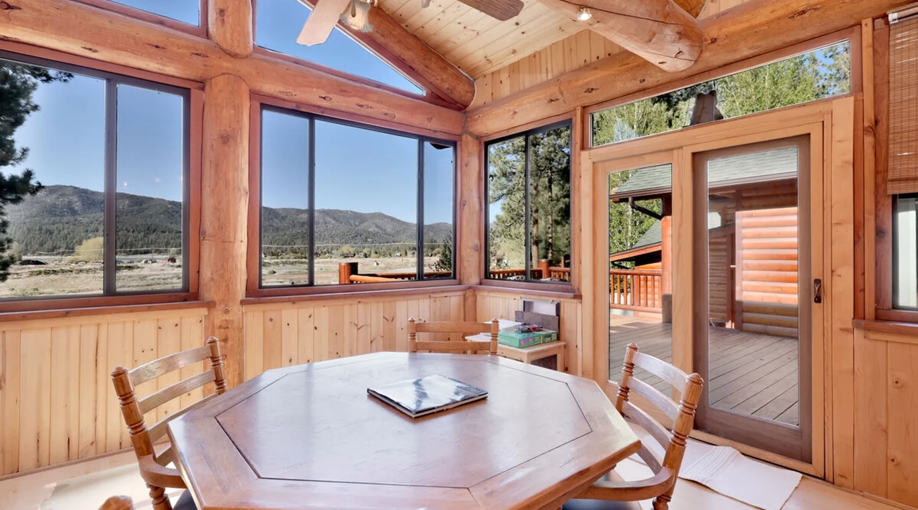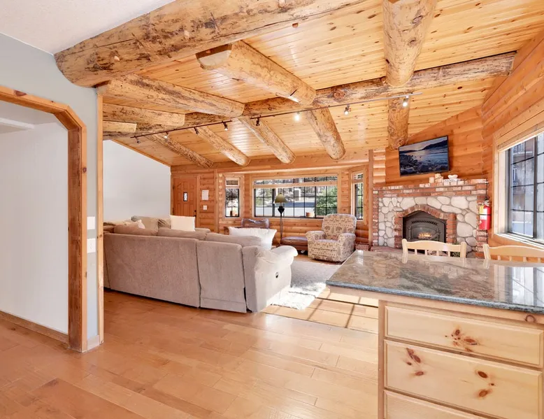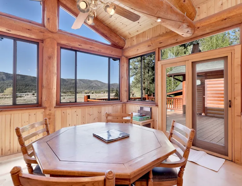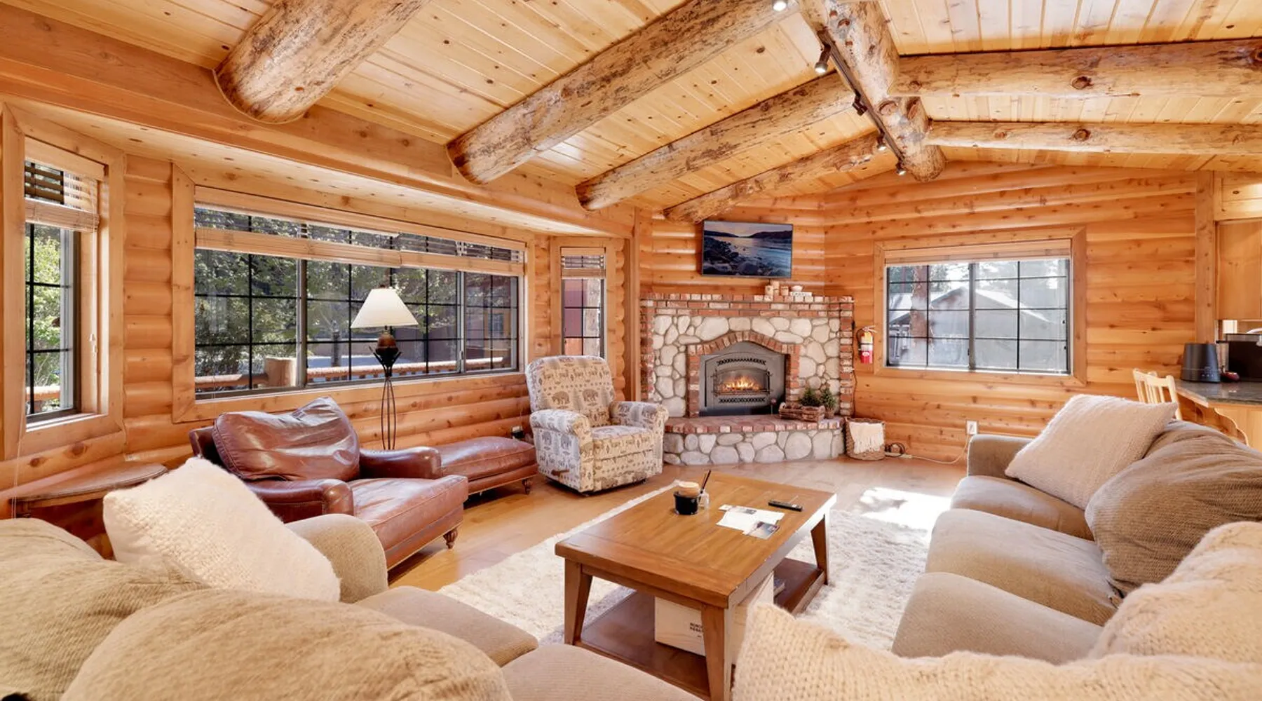 The Alps Lodge is the perfect four-season destination for any group visiting Big Bear, you will have all that you need for a memorable and relaxing visit to the mountains. Our single-story log cabin is the perfect escape for your trip, boasting ultra-modern and comfortable furnishings paired with added relaxation and serenity. The spacious tree-lined central lot sits within a short walk from Lake or a quick drive to the ski slopes or downtown Village area for shopping and dining. The space The Alps Lodge | Central Log Cabin Retreat The Alps Lodge is the perfect four-season destination for any group visiting Big Bear, you will have all that you need for a memorable and relaxing visit to the mountains. Our single-story log cabin is the perfect escape for your trip, boasting ultra-modern and comfortable furnishings paired with added relaxation and serenity. The spacious tree-lined central lot sits within a short walk from Lake or a quick drive to the ski slopes or downtown Village area for shopping and dining. Also features a fully fenced yard providing security and privacy for the kids or Fido. Boasting modern amenities and furnishings you will feel as if you have your own private lodge to yourselves the moment you enter into the warm and relaxing family room area, forced central heat keeps your group cozy no matter the season you choose to visit while the beautiful hardwood floors pair perfectly with the knotty pine vaulted ceilings. You will love the comfortable sitting couches sat in front of the toasty easy to light fireplace, with a flat-screen streaming TV, and complimentary WIFI provided for your convenience, this is the perfect space to snuggle up in front of the fire and enjoy a movie night or watch the snow fall through the big open windows. The awesome open floor plan allows the chef of your group to visit with your family and friends while whipping up your home-cooked meals in the updated kitchen, the oak cabinets are stocked full with all that you will need including cookware and utensils. General appliances and even a dishwasher are available for your convenience making your meal prep and cleanup here a breeze. A breakfast nook bar is a great place for enjoying meals or drinks, and there is a game/dining table in a separate sunroom with its own wood-burning fireplace to keep you toasty as the snow falls all around you outside. All three of your sleeping quarters are made up for your vacation with warm linens, blankets, and fresh shower towels in each bathroom. You will love the spacious master suite which offers an open full bathroom and flat-screen streaming TV. The two other guest rooms boast terrific views of the meadows and mountains. Venture out from the dining room area to find the spacious back sun deck and fenced back yard, boasting outdoor patio furnishings and a fire pit for your enjoyment. You will love relaxing here or firing up the propane BBQ after a day of adventures out on the mountain and enjoying the peaceful, beautiful views. It is the perfect spot for sipping your first cup of coffee in the mornings among the birds. The Alps Lodge has it all pairing the comforts from home with modern cabin décor and bonus amenities plus a prime central location, this cabin is the ultimate destination for your next mountain vacation! Don't miss your chance at the vacation of a lifetime by booking this chalet for your next alpine vacation to Big Bear!! Sleeping Arrangements: Bedroom 1: King Bed, Streaming TV, Private 3/4 Bath (Shower Only) Bedroom 2: King Bed + Full Futon Bedroom 3: Full Murphy Bed Bathroom Arrangements: Bathroom 1: Private 3/4 Bath (Shower Only)- Bedroom 1 Bathroom 2: Hallway Full Bath -Sleeps 7 -3 Cars Driveway Parking -2 Pets Welcome w/ Additional Fee -1,448 Total Square Feet City Permit #: VRR-2024-0550 Guest access Once checked in, guests can enjoy sole access to their private property for the duration of their booked dates. Registration Details 2024-0550