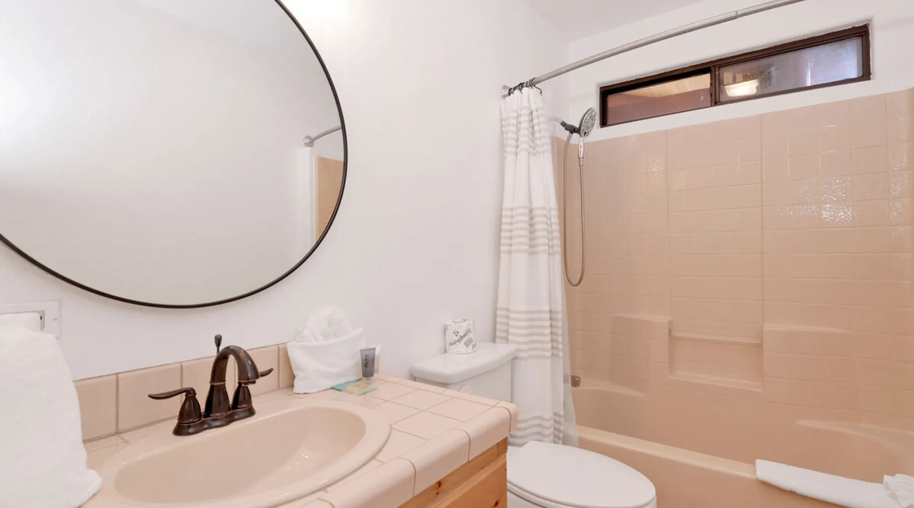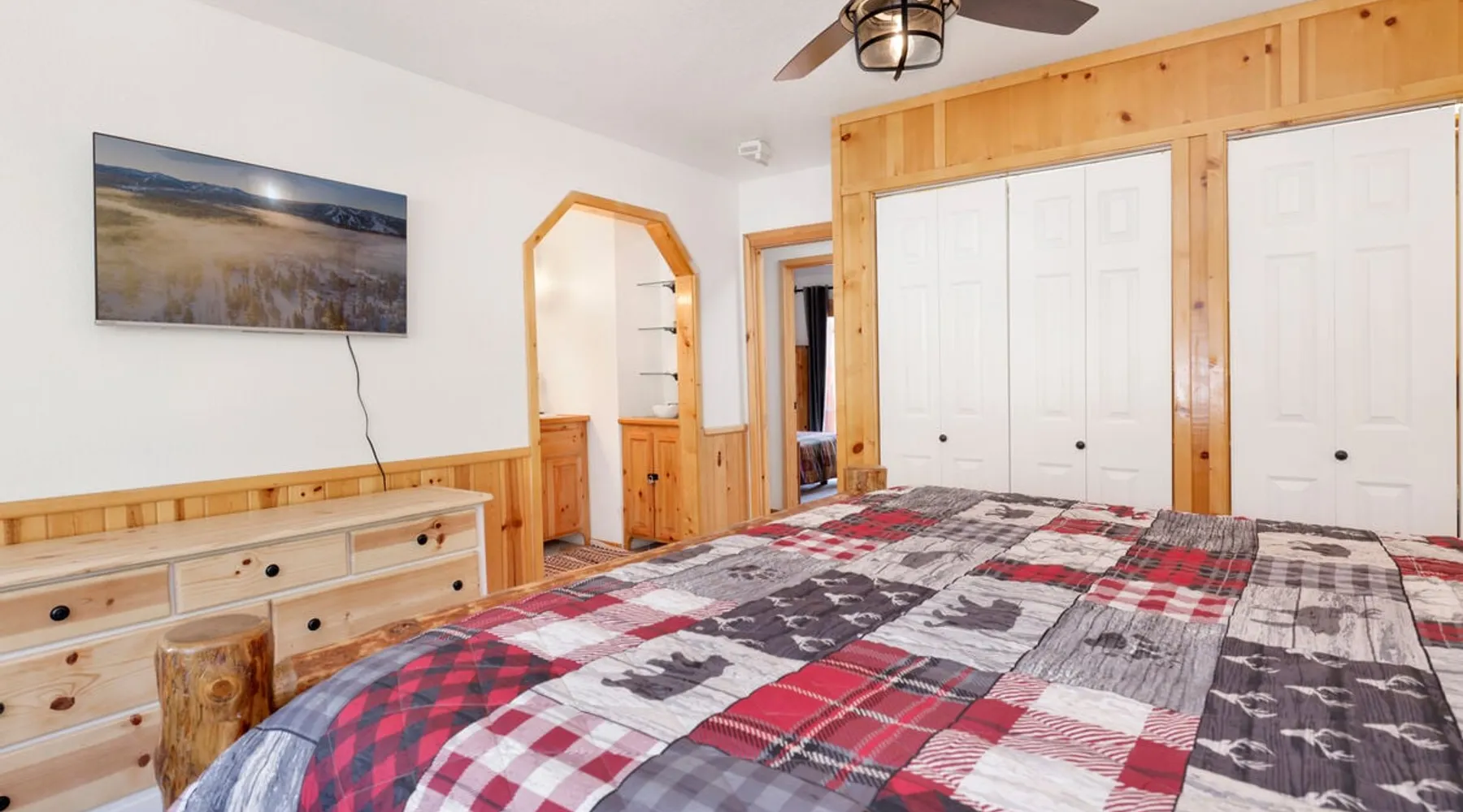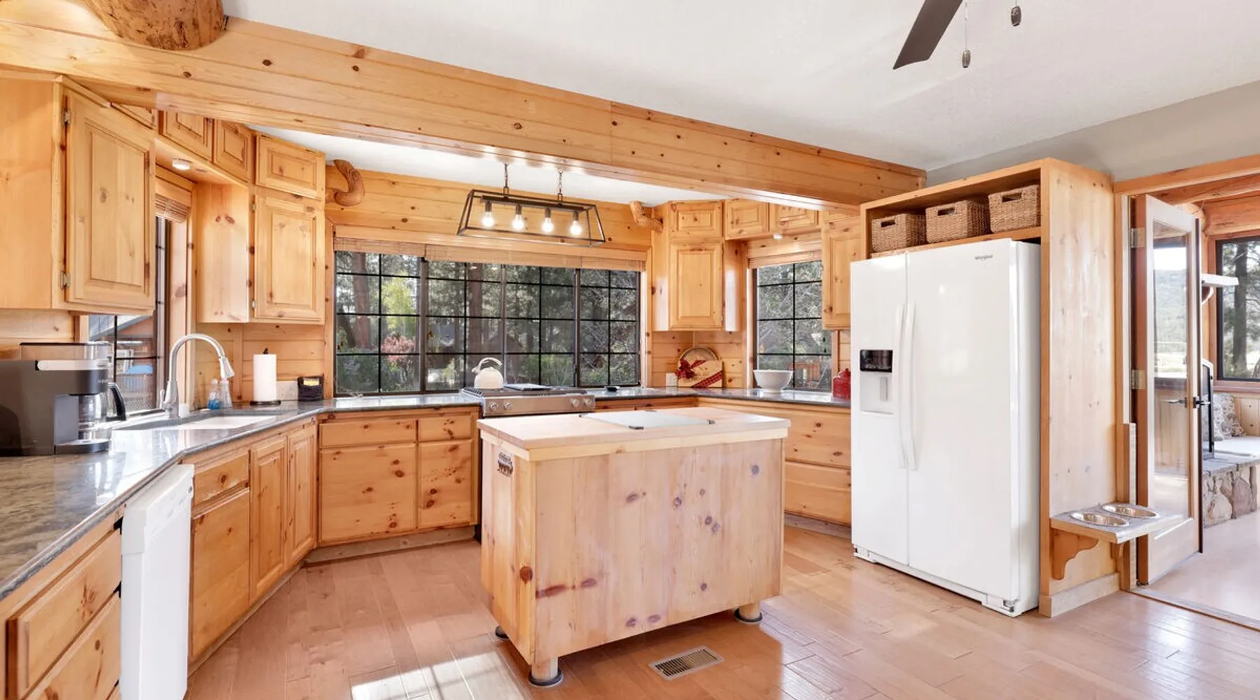 The Alps Lodge is the perfect four-season destination for any group visiting Big Bear, you will have all that you need for a memorable and relaxing visit to the mountains. Our single-story log cabin is the perfect escape for your trip, boasting ultra-modern and comfortable furnishings paired with added relaxation and serenity. The spacious tree-lined central lot sits within a short walk from Lake or a quick drive to the ski slopes or downtown Village area for shopping and dining. The space The Alps Lodge | Central Log Cabin Retreat The Alps Lodge is the perfect four-season destination for any group visiting Big Bear, you will have all that you need for a memorable and relaxing visit to the mountains. Our single-story log cabin is the perfect escape for your trip, boasting ultra-modern and comfortable furnishings paired with added relaxation and serenity. The spacious tree-lined central lot sits within a short walk from Lake or a quick drive to the ski slopes or downtown Village area for shopping and dining. Also features a fully fenced yard providing security and privacy for the kids or Fido. Boasting modern amenities and furnishings you will feel as if you have your own private lodge to yourselves the moment you enter into the warm and relaxing family room area, forced central heat keeps your group cozy no matter the season you choose to visit while the beautiful hardwood floors pair perfectly with the knotty pine vaulted ceilings. You will love the comfortable sitting couches sat in front of the toasty easy to light fireplace, with a flat-screen streaming TV, and complimentary WIFI provided for your convenience, this is the perfect space to snuggle up in front of the fire and enjoy a movie night or watch the snow fall through the big open windows. The awesome open floor plan allows the chef of your group to visit with your family and friends while whipping up your home-cooked meals in the updated kitchen, the oak cabinets are stocked full with all that you will need including cookware and utensils. General appliances and even a dishwasher are available for your convenience making your meal prep and cleanup here a breeze. A breakfast nook bar is a great place for enjoying meals or drinks, and there is a game/dining table in a separate sunroom with its own wood-burning fireplace to keep you toasty as the snow falls all around you outside. All three of your sleeping quarters are made up for your vacation with warm linens, blankets, and fresh shower towels in each bathroom. You will love the spacious master suite which offers an open full bathroom and flat-screen streaming TV. The two other guest rooms boast terrific views of the meadows and mountains. Venture out from the dining room area to find the spacious back sun deck and fenced back yard, boasting outdoor patio furnishings and a fire pit for your enjoyment. You will love relaxing here or firing up the propane BBQ after a day of adventures out on the mountain and enjoying the peaceful, beautiful views. It is the perfect spot for sipping your first cup of coffee in the mornings among the birds. The Alps Lodge has it all pairing the comforts from home with modern cabin décor and bonus amenities plus a prime central location, this cabin is the ultimate destination for your next mountain vacation! Don't miss your chance at the vacation of a lifetime by booking this chalet for your next alpine vacation to Big Bear!! Sleeping Arrangements: Bedroom 1: King Bed, Streaming TV, Private 3/4 Bath (Shower Only) Bedroom 2: King Bed + Full Futon Bedroom 3: Full Murphy Bed Bathroom Arrangements: Bathroom 1: Private 3/4 Bath (Shower Only)- Bedroom 1 Bathroom 2: Hallway Full Bath -Sleeps 7 -3 Cars Driveway Parking -2 Pets Welcome w/ Additional Fee -1,448 Total Square Feet City Permit #: VRR-2024-0550 Guest access Once checked in, guests can enjoy sole access to their private property for the duration of their booked dates. Registration Details 2024-0550