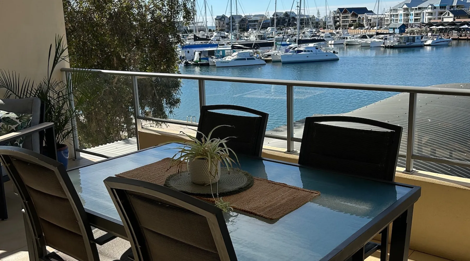 Mandurah Dolphin Quay Apartment is securely located on the first floor in Mandurah Ocean Marina. It boasts a protected swimming beach complete with children's playground. This apartment has superb marina views, and is fully self-contained with two bedrooms & two bathrooms. It has a fully equipped granite kitchen & hidden laundry. The living area has a flat screen TV/DVD & complimentary Wifi & Foxtel. Great location & great views. You might get lucky and get a visit from the local dolphins. Guest access Entire apartment & one underground parking space. Parking height restrictions 1.93m Registration Details STRA6210CPNSHTVB