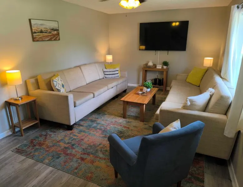 Spacious Accommodations: 15 Mins to Columbia Airport - Win-Some At Wynnsum in Lexington offers a spacious holiday home with four bedrooms and two bathrooms. The property includes a living room and a private entrance. Modern Amenities: Guests enjoy free WiFi, air-conditioning, a washing machine, and a fully equipped kitchen with a dishwasher, microwave, and oven. Additional amenities include a patio, barbecue, and a TV. Convenient Location: Located 5 mi from Columbia Metropolitan Airport, the property is close to attractions such as EdVenture Children's Museum (11 mi) and Riverbanks Zoo & Garden (13 mi). Free on-site parking is available. Guests will find a stovetop, a refrigerator, a dishwasher and kitchenware in the well-equipped kitchen. The holiday home also features a barbecue. The spacious air-conditioned holiday home offers a TV, a washing machine, a private entrance and a tea and coffee maker. The unit has 8 beds.