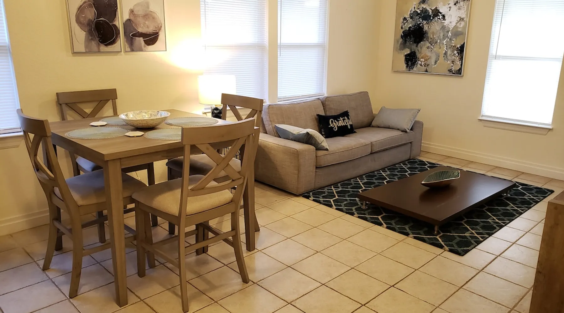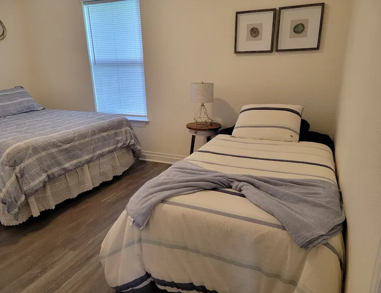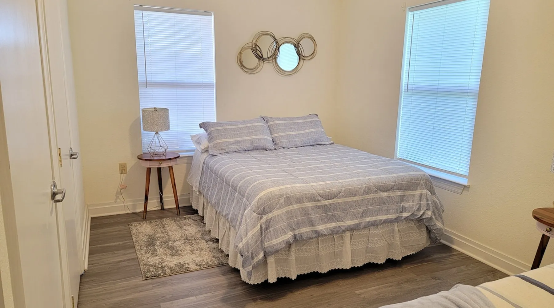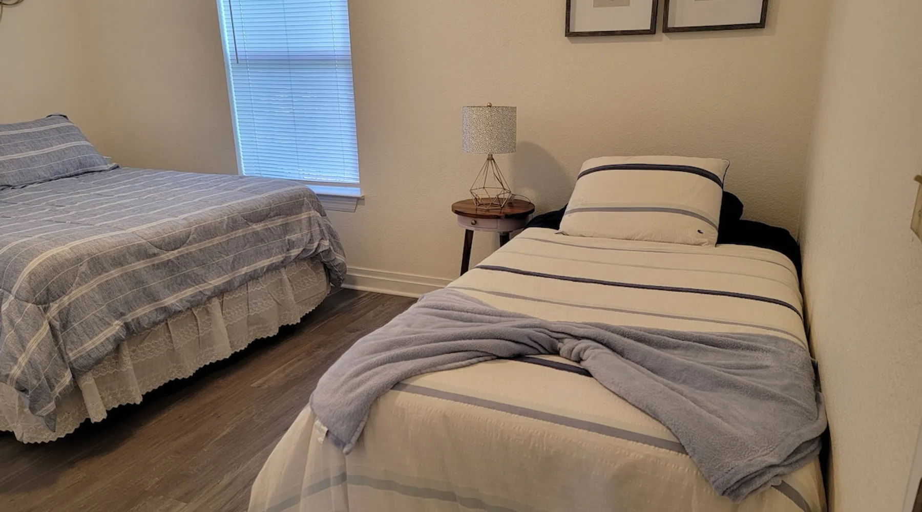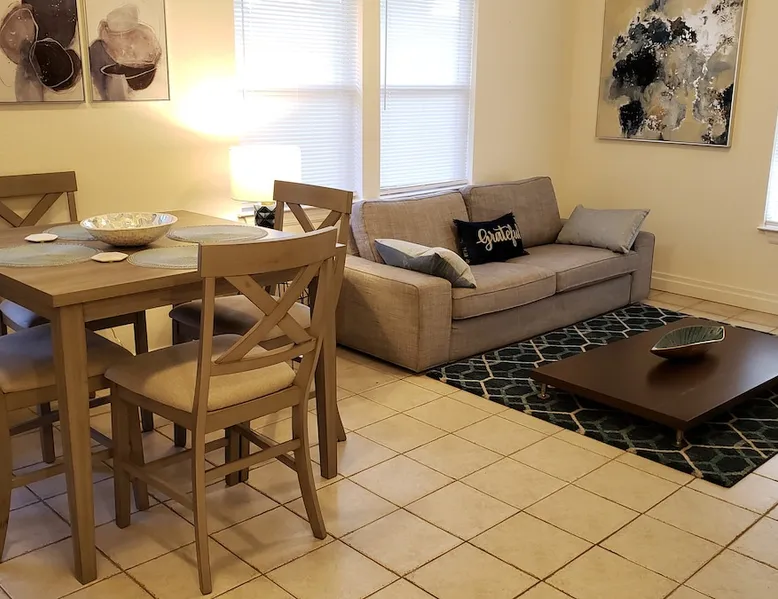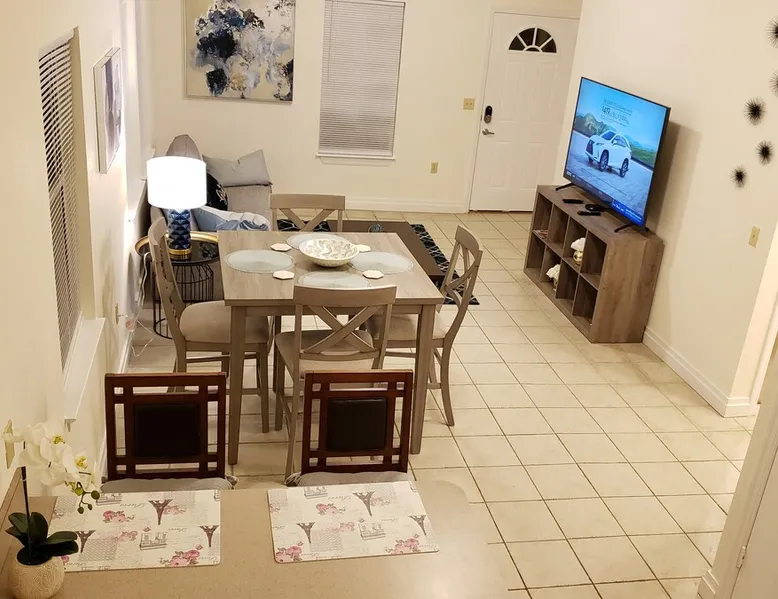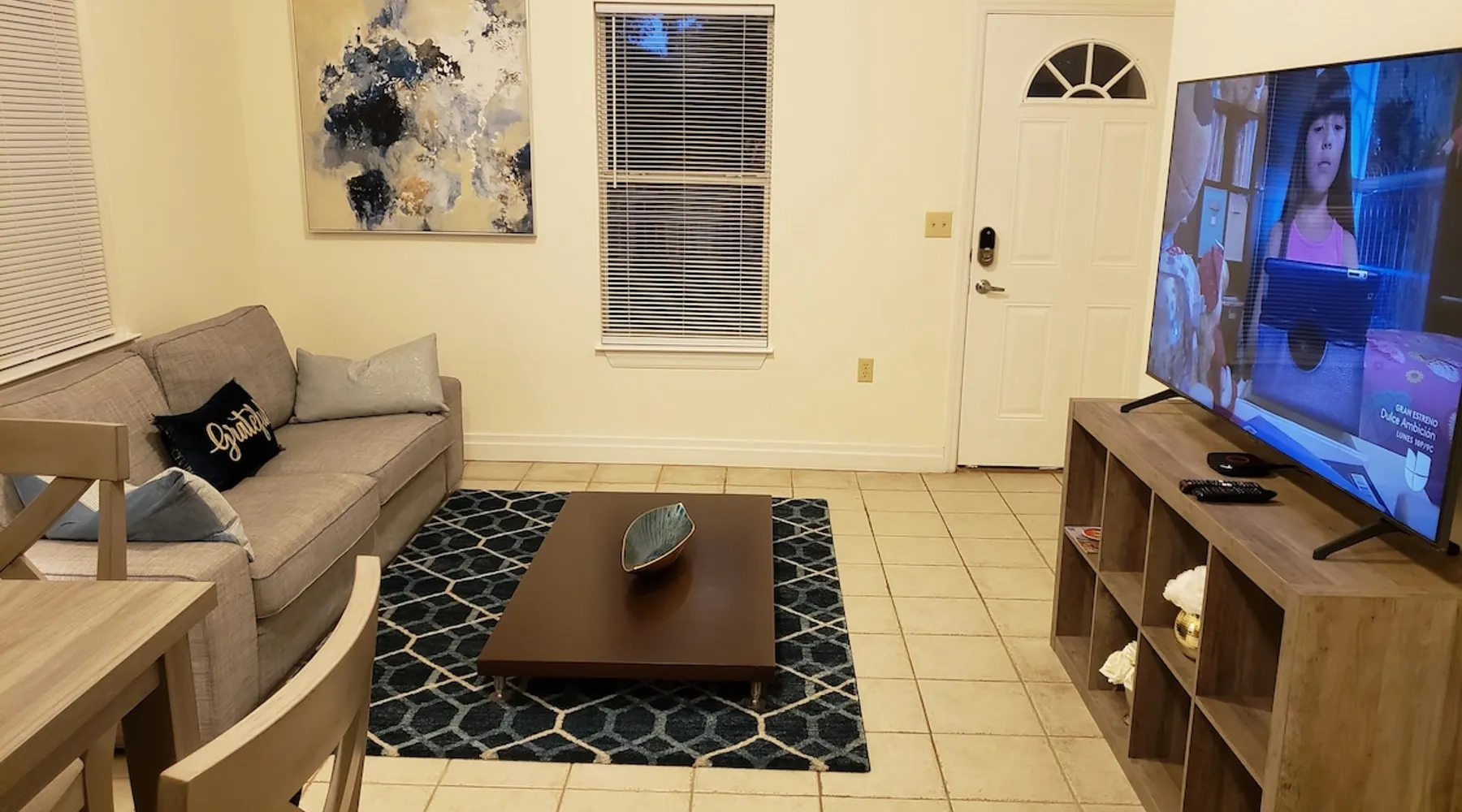 This beautiful and modern duplex, Unit A, is perfectly situated in the heart of Gainesville, FLβ¨ Just minutes from downtown, Depot Park, and the University of Florida π, it offers the perfect blend of convenience and comfort. With easy access to the VA, restaurants π΄, shopping ποΈ, grocery stores π, and public transportation via the RTS bus system π, this home is ideal for those seeking a peaceful and stylish living space π‘ while staying close to all the city's top amenities and attractions The space This cozy Duplex Unit A boasts 2 spacious bedrooms ποΈ, 1 full bathroom π, a comfortable living room ποΈ, a fully equipped kitchen π³, and a convenient laundry area π§Ί. The property is designed to provide maximum comfort, with a beautifully landscaped front yard π³πΈ that features outdoor furniture, perfect for relaxing and entertaining πͺπΉ. Additionally, guests will have access to high-speed internet πΆ with 500 Mbps, 4 comfortable beds ποΈποΈποΈποΈ and a sofa ποΈ, and a smart TV πΊ, ensuring all the comforts of home while staying here. Whether you're visiting Gainesville for work or play, this house is an excellent choice for those seeking a comfortable and convenient accommodation. Guest access Guests will have full access to Duplex Unit A, located at 435 SE 6th Ter, Unit A, Gainesville, FL 32601, including: 2 Bedrooms ποΈ: Enjoy a restful stay in both spacious rooms. 1 Bathroom π: Fully equipped for your comfort. Living Room ποΈ: Relax in the cozy and inviting space. Kitchen π³: A fully equipped kitchen for your cooking needs. Laundry Area π§Ί: Convenient laundry facilities during your stay. Front Yard π³: A beautifully landscaped space with outdoor furniture for relaxing or entertaining. The entire duplex unit is exclusively for the guests' use, providing you with privacy and full access to all amenities and features. Enjoy a comfortable and hassle-free experience! Self-check-in: Enjoy seamless self-check-in any time after 3 PM using our contactless Yale smart lock, designed for your convenience. Each guest is provided with a unique and personalized 4-digit code, ensuring security and ease of access throughout your stay. Other things to note Other Details to Note Check-in & Check-out: Check-in and check-out times are flexible. Please communicate your expected arrival and departure times in advance to ensure a smooth check-in process. Kitchen: A fully equipped kitchen π³ is provided for guests' use, but guests will need to bring their own food and supplies. Toiletries: Basic toiletries such as towels π, bed linens ποΈ, and soap π§΄ are provided. Guests may want to bring additional items if they have specific needs. Parking: Parking π is available on the premises for guests' use. Suitability: The house is suitable for families, couples π, and business travelers π. Smoking: No smoking is allowed inside the house π, but guests are welcome to smoke in the front yard π³. Quiet Hours: Quiet hours π are from 10 PM to 8 AM to ensure a peaceful environment for everyone. Security: The property is monitored by a Ring floodlight camera πΉ outside, providing enhanced security for your safety and peace of mind. Host Availability: Any questions or concerns during your stay can be addressed to the host, who is available 24/7 for assistance. We look forward to hosting you and ensuring you have a comfortable and enjoyable stay!