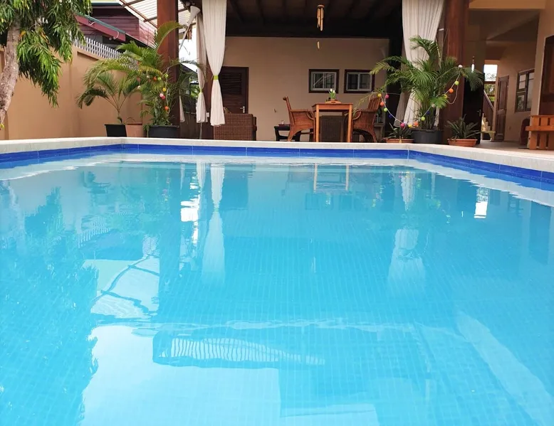 Amalia Apartments in Paramaribo-North is located near the historic city centre of Paramaribo and many other hotspots. In the immediate vicinity there are various facilities such as supermarkets and restaurants. Our guests have access to a swimming pool, terrace, kitchen, living room, bedroom, bathroom and toilet. Also included: WiFi, TV, air conditioning, laundry, iron and more. The apartments are completely smoke-free. If desired, additional arrangements (e.g. cot) can be made. The space The apartments at Amalia Apartments are cosy and tastefully decorated. Each apartment features a terrace where you can blow out and enjoy the tropics. Guest access Guests have access to a swimming pool, upstairs and downstairs terrace and laundry room. Other things to note The apartment complex is well secured and is located in a tidy, quiet, but central neighborhood.