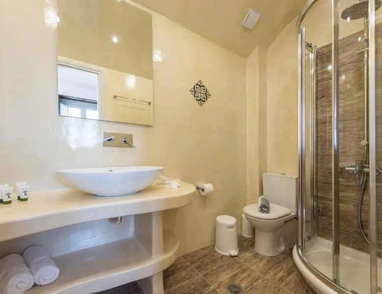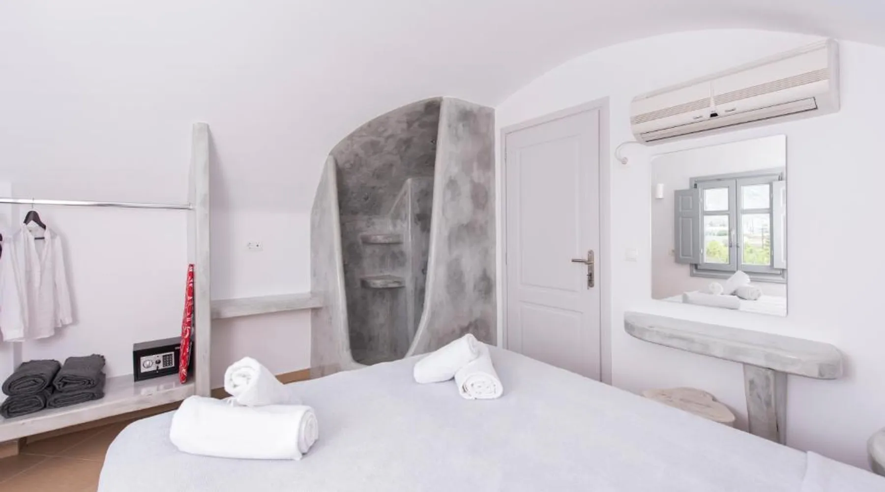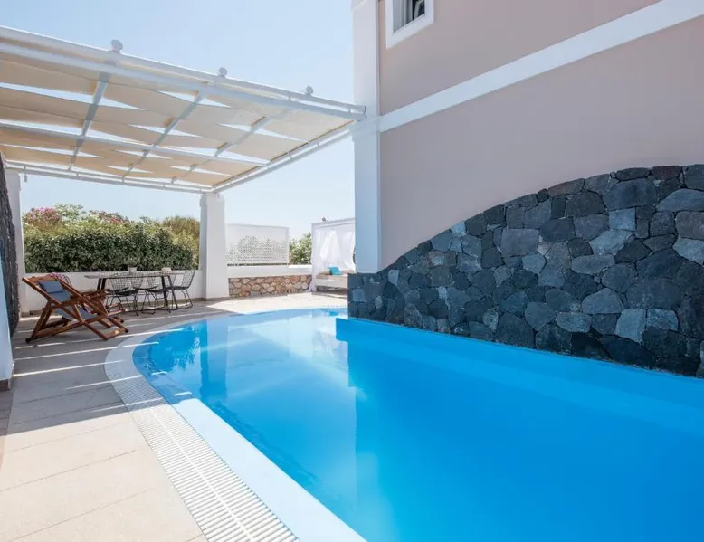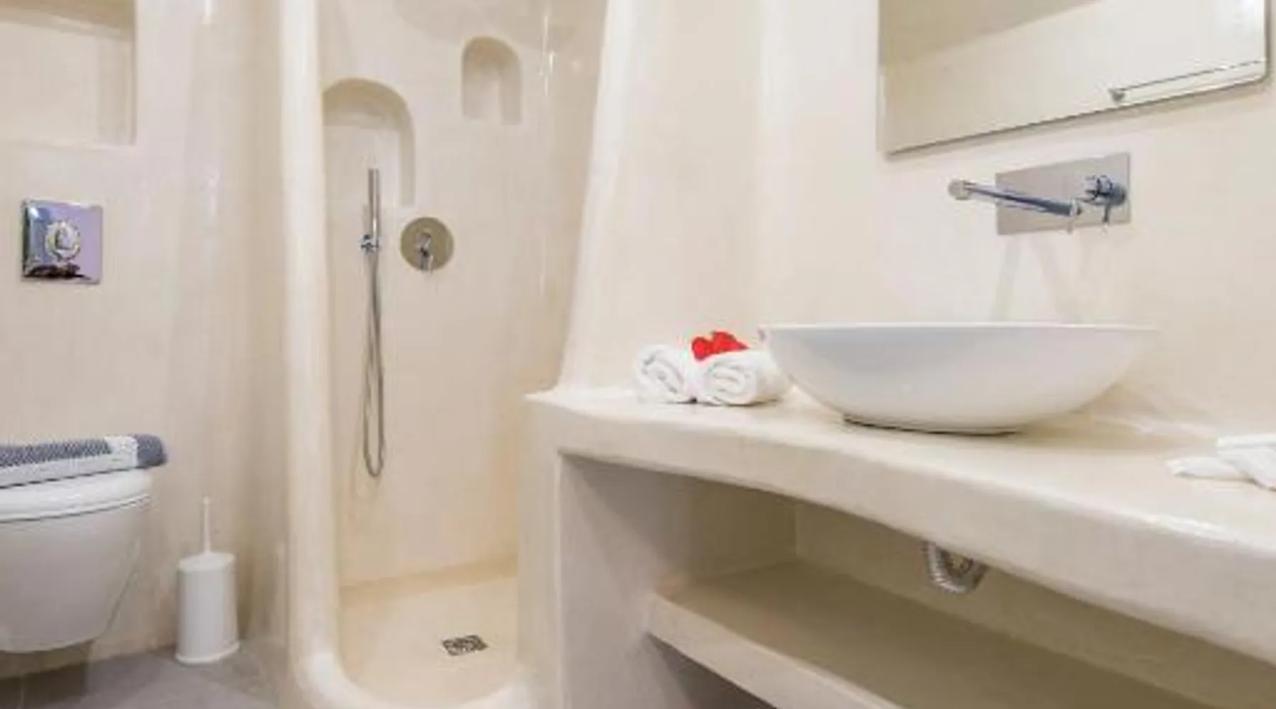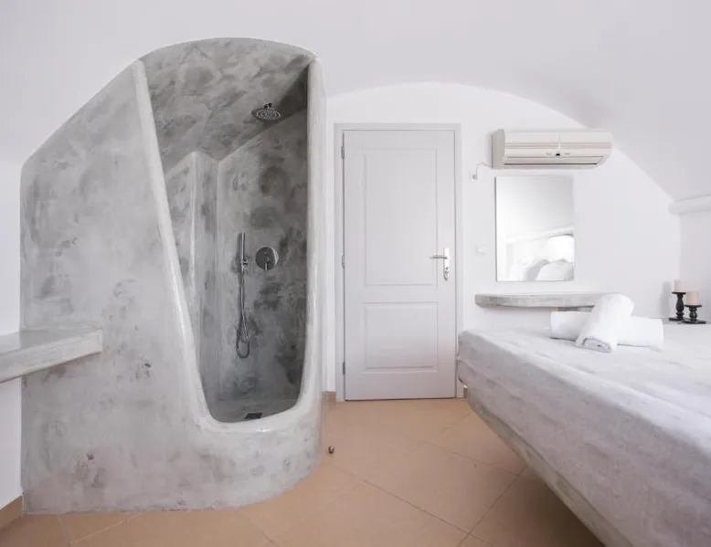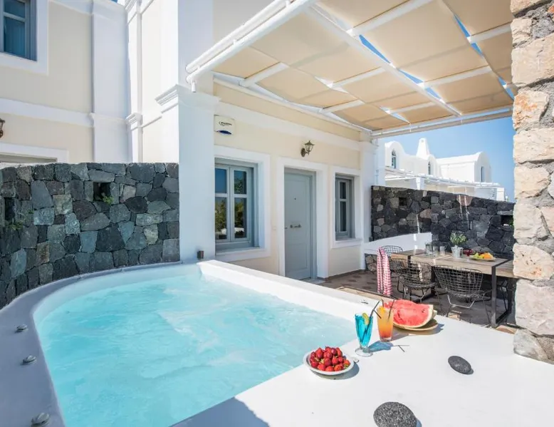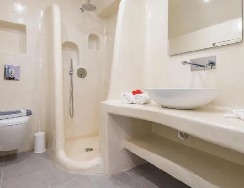Offering accommodations with a private outdoor pool, or hot tub, Secret Earth Santorini is located in the area of Kamari, on Santoríni island, 656 feet from Kamari Beach. Free WiFi is offered The accommodations units include a kitchen and a parlor, as well as verandas. Each villa comes with living, dining and reception areas. Guests can enjoy a drink at the on-site bar. The property also offers grocery delivery. Ideal for plane spotting, the property is only 1.2 mi away from Santorini Airport. Transfer from airport to our property provided under request for an extra charge. You can engage in various activities, such as horse riding, windsurfing and fishing. The elegant design of this villa includes traditional materials combined with cutting edge technology. You will enjoy a private outdoor hot tub, a kitchen on the ground floor, 2 bedrooms and a bathroom on the first floor. There are also living, dining and and reception areas. The basement includes a bedroom and another bathroom with a shower.