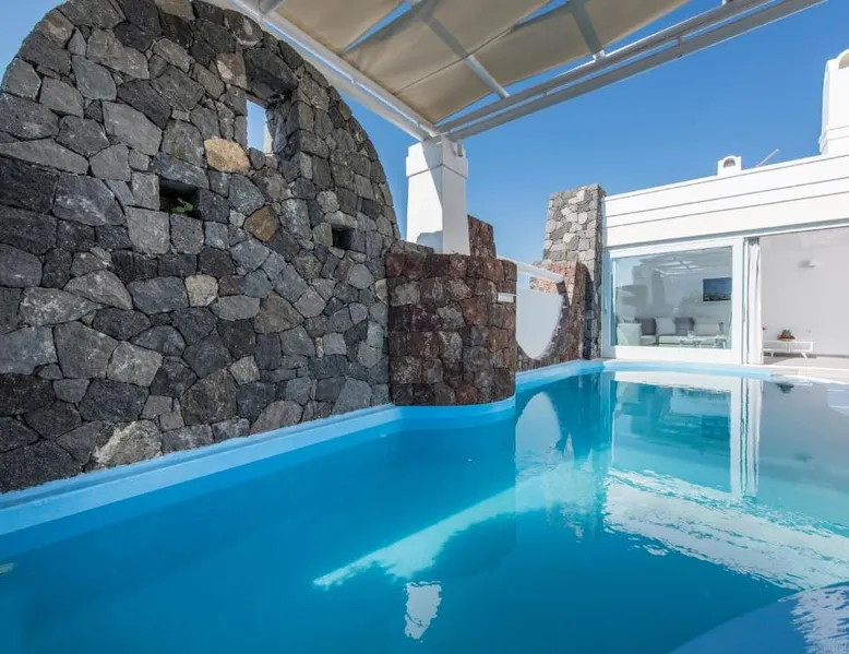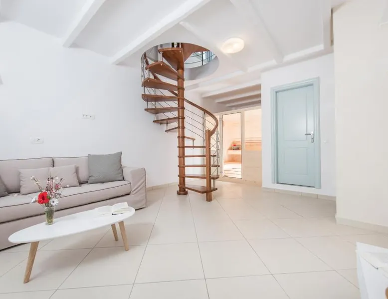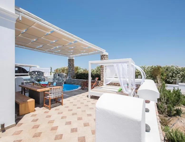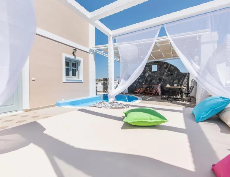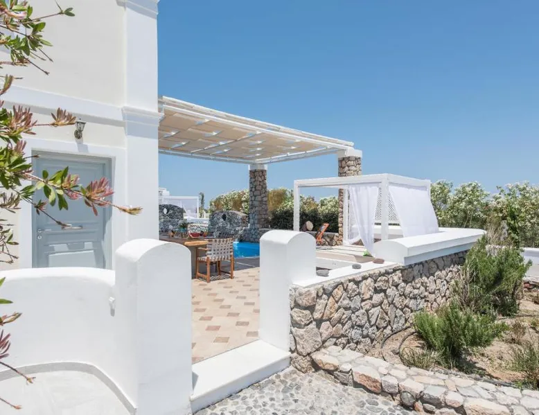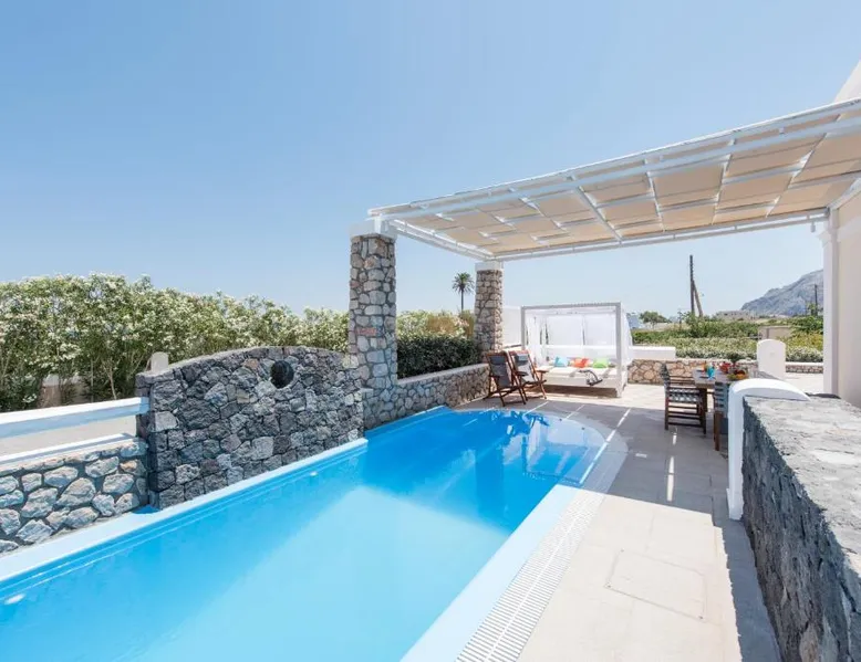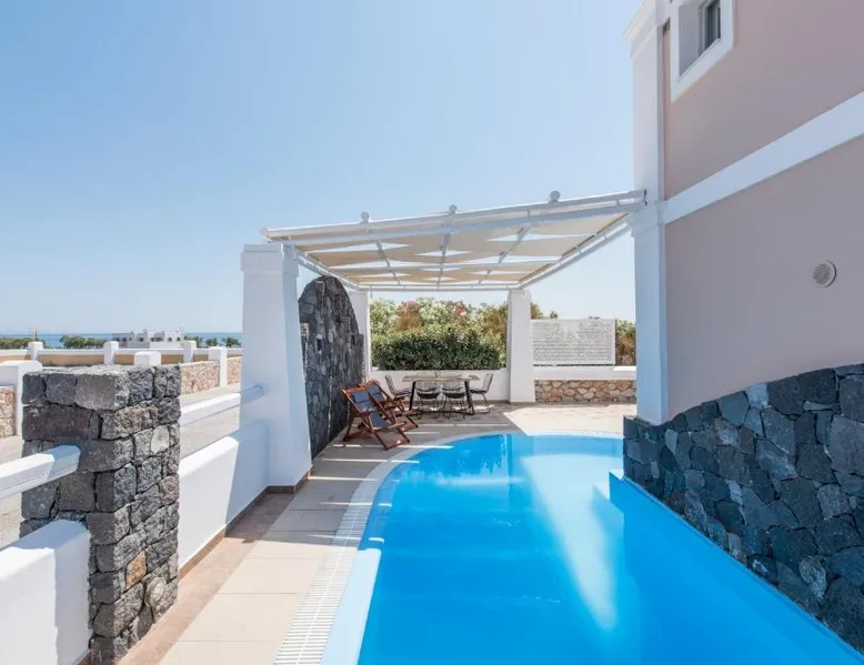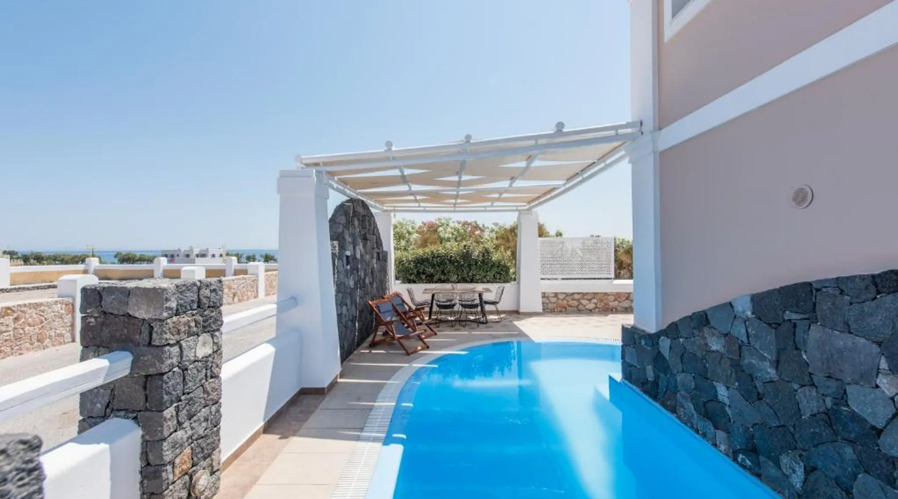Offering accommodations with a private outdoor pool, or hot tub, Secret Earth Santorini is located in the area of Kamari, on Santoríni island, 656 feet from Kamari Beach. Free WiFi is offered The accommodations units include a kitchen and a parlor, as well as verandas. Each villa comes with living, dining and reception areas. Guests can enjoy a drink at the on-site bar. The property also offers grocery delivery. Ideal for plane spotting, the property is only 1.2 mi away from Santorini Airport. Transfer from airport to our property provided under request for an extra charge. You can engage in various activities, such as horse riding, windsurfing and fishing. The elegant design of this villa includes traditional materials combined with cutting edge technology. You will enjoy a private outdoor hot tub, a kitchen on the ground floor, 2 bedrooms and a bathroom on the first floor. There are also living, dining and and reception areas. The basement includes a bedroom and another bathroom with a shower.