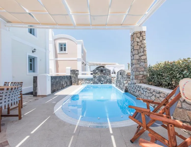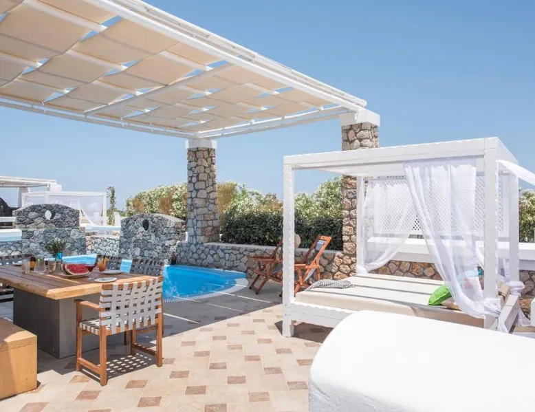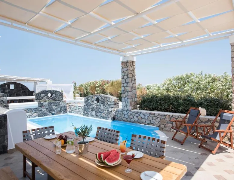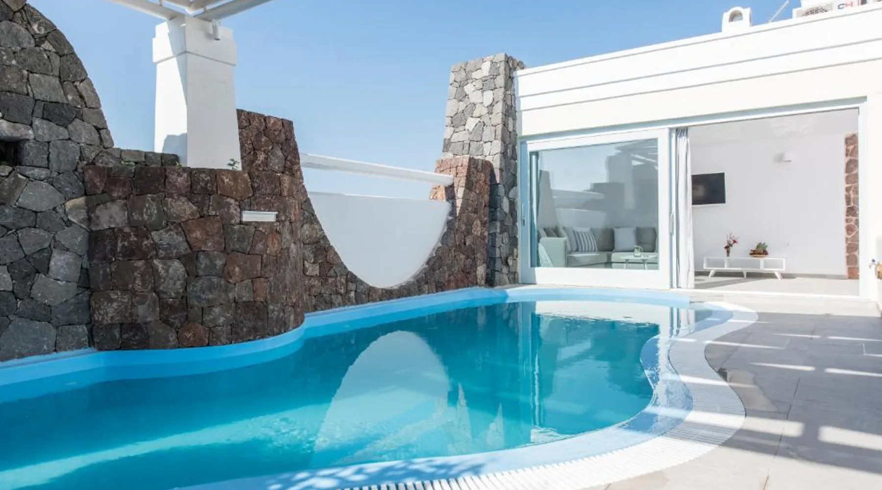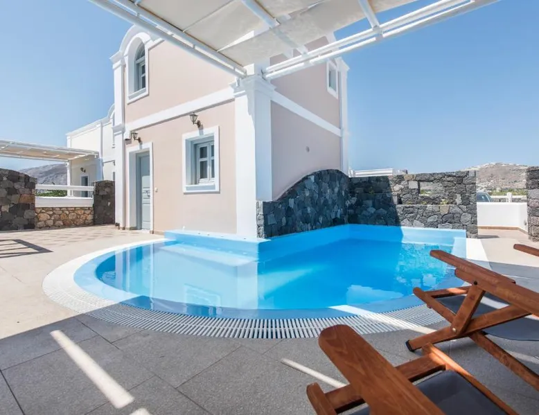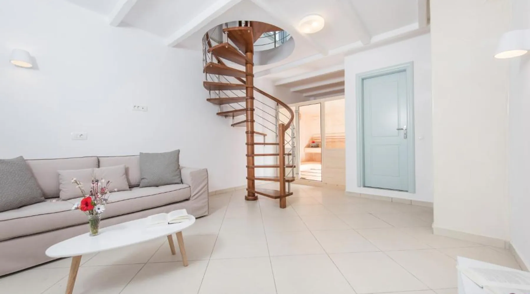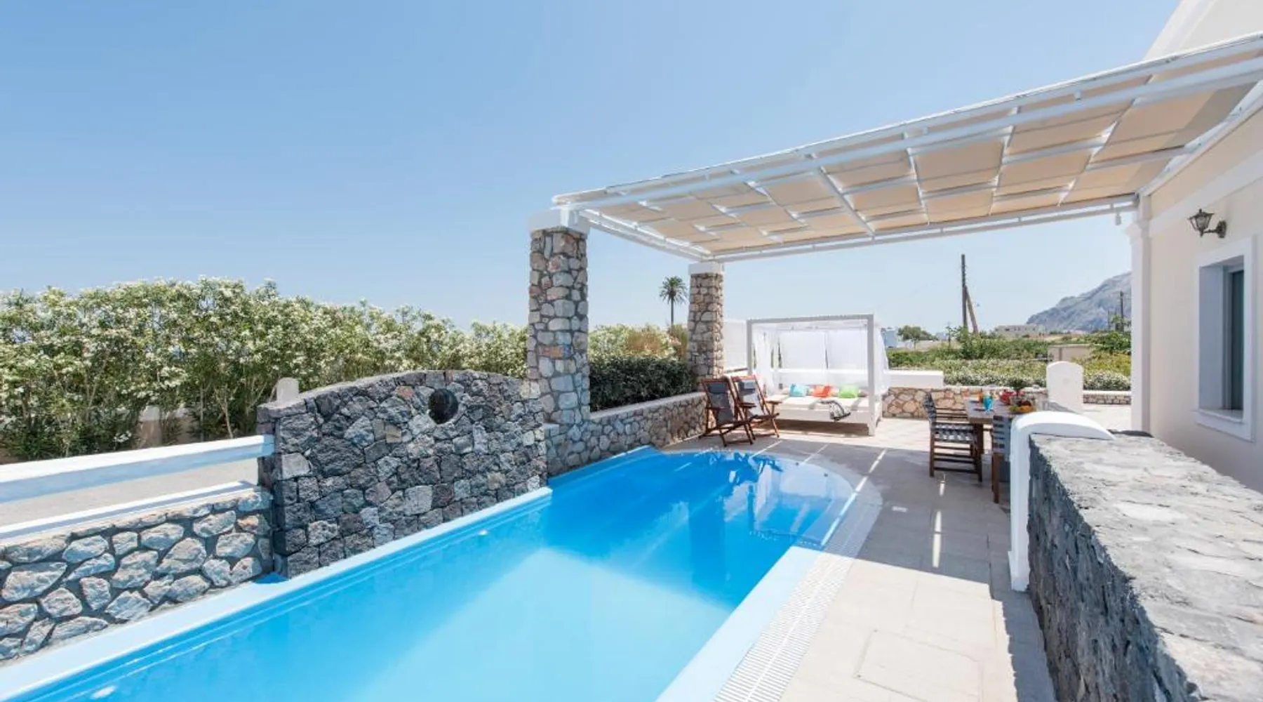 Offering accommodations with a private outdoor pool, or hot tub, Secret Earth Santorini is located in the area of Kamari, on Santoríni island, 656 feet from Kamari Beach. Free WiFi is offered The accommodations units include a kitchen and a parlor, as well as verandas. Each villa comes with living, dining and reception areas. Guests can enjoy a drink at the on-site bar. The property also offers grocery delivery. Ideal for plane spotting, the property is only 1.2 mi away from Santorini Airport. Transfer from airport to our property provided under request for an extra charge. You can engage in various activities, such as horse riding, windsurfing and fishing. The elegant design of this villa includes traditional materials combined with cutting edge technology. You will enjoy a private outdoor hot tub, a kitchen on the ground floor, 2 bedrooms and a bathroom on the first floor. There are also living, dining and and reception areas. The basement includes a bedroom and another bathroom with a shower.