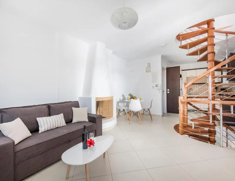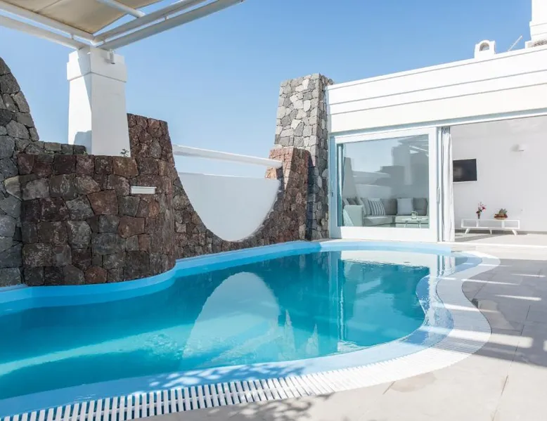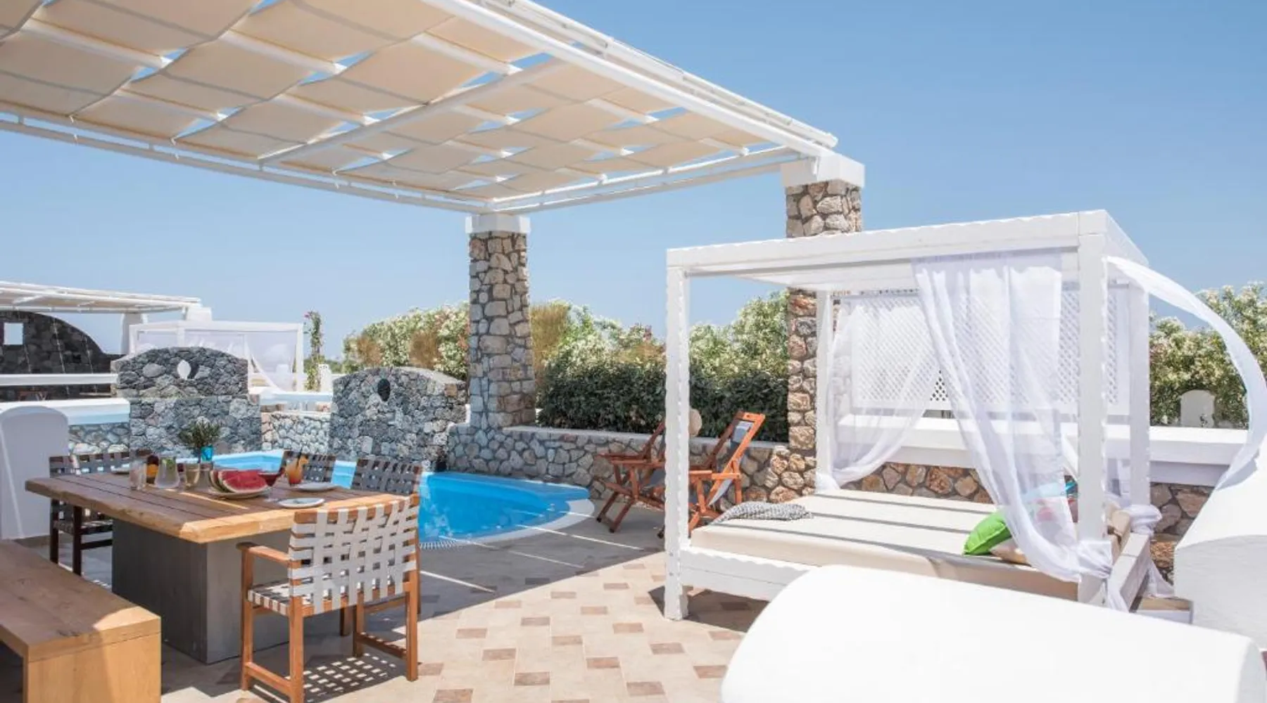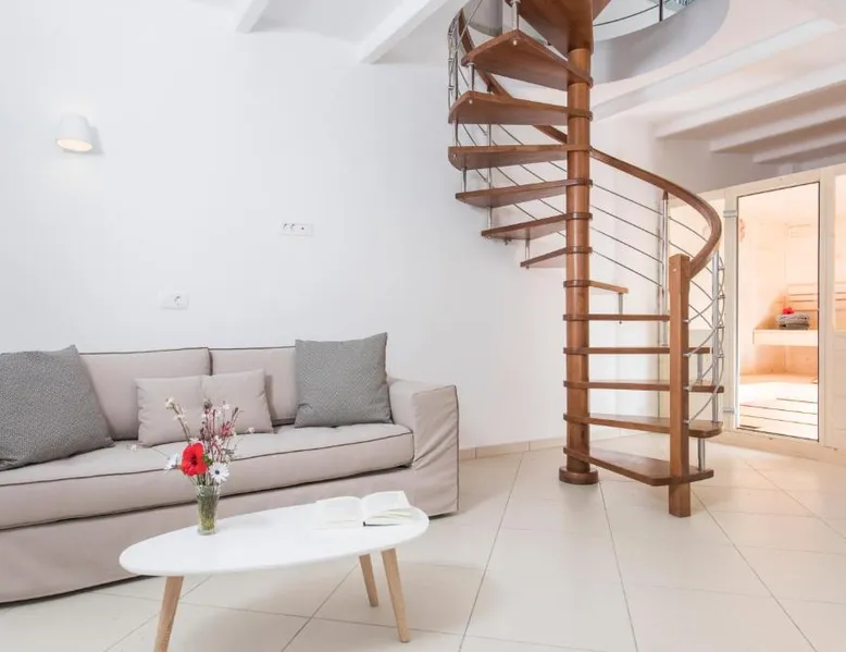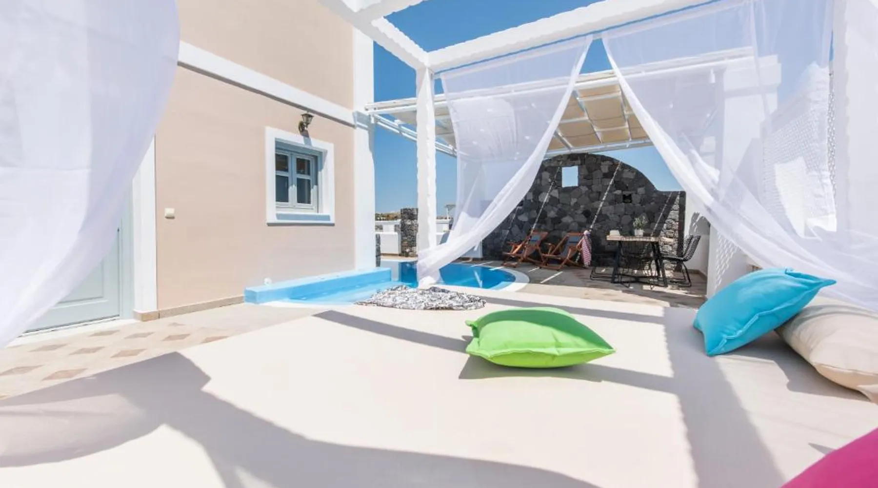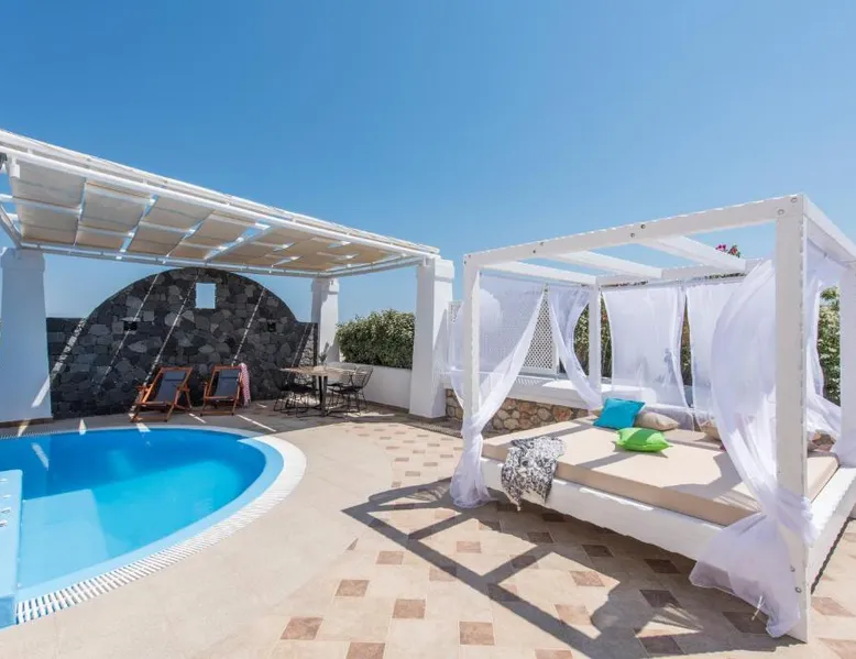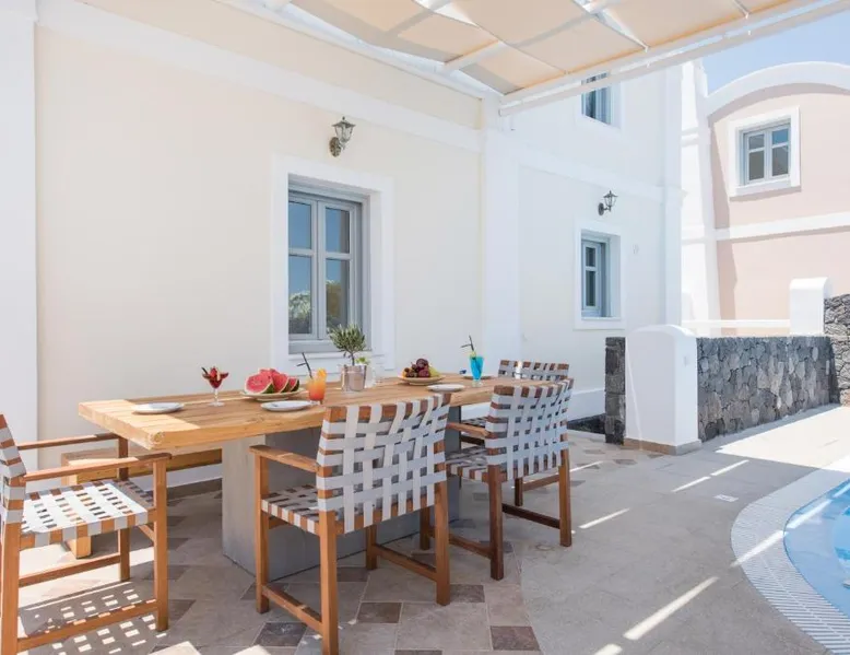 Offering accommodations with a private outdoor pool, or hot tub, Secret Earth Santorini is located in the area of Kamari, on Santoríni island, 656 feet from Kamari Beach. Free WiFi is offered The accommodations units include a kitchen and a parlor, as well as verandas. Each villa comes with living, dining and reception areas. Guests can enjoy a drink at the on-site bar. The property also offers grocery delivery. Ideal for plane spotting, the property is only 1.2 mi away from Santorini Airport. Transfer from airport to our property provided under request for an extra charge. You can engage in various activities, such as horse riding, windsurfing and fishing. The elegant design of this villa includes traditional materials combined with cutting edge technology. You will enjoy a private outdoor hot tub, a kitchen on the ground floor, 2 bedrooms and a bathroom on the first floor. There are also living, dining and and reception areas. The basement includes a bedroom and another bathroom with a shower.