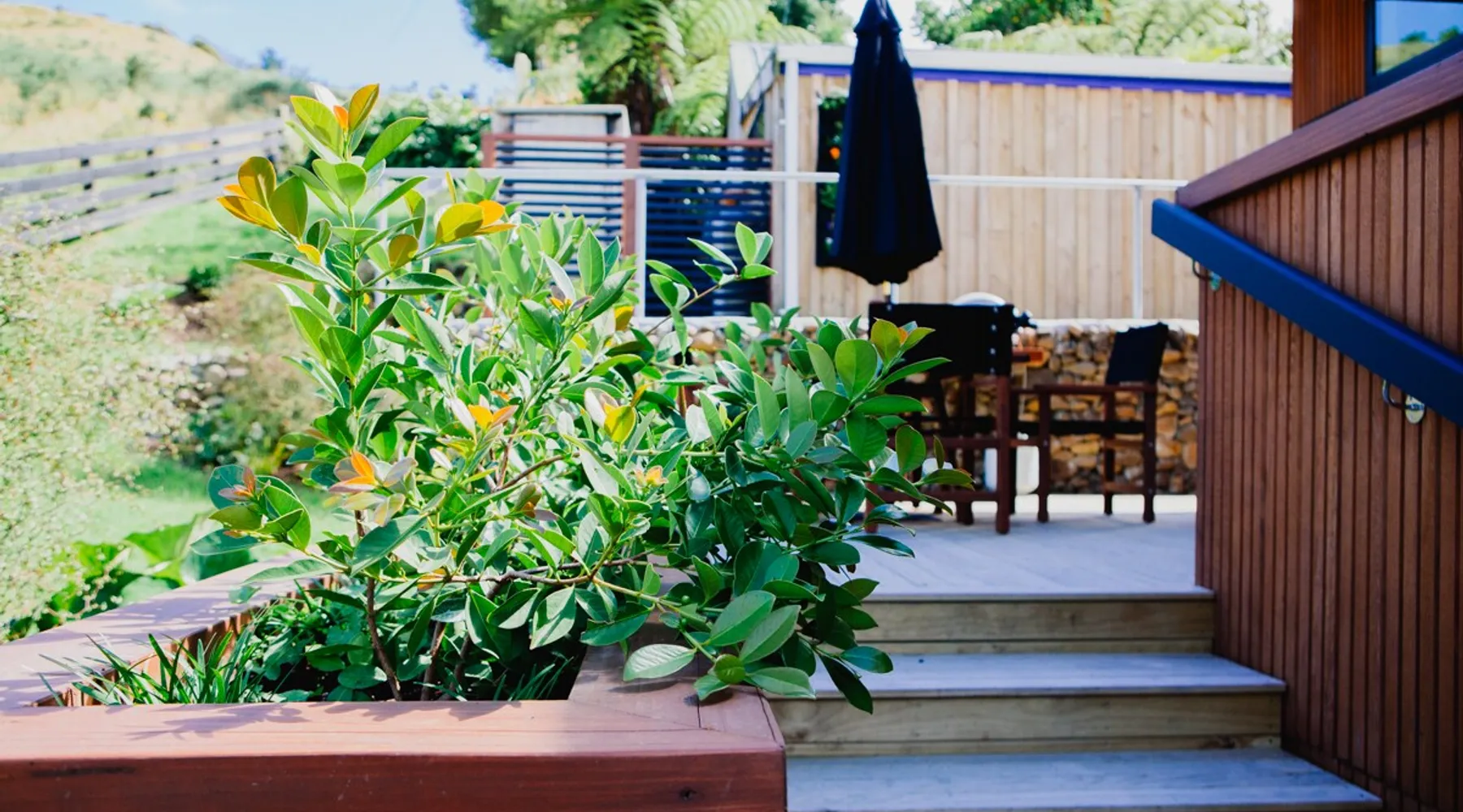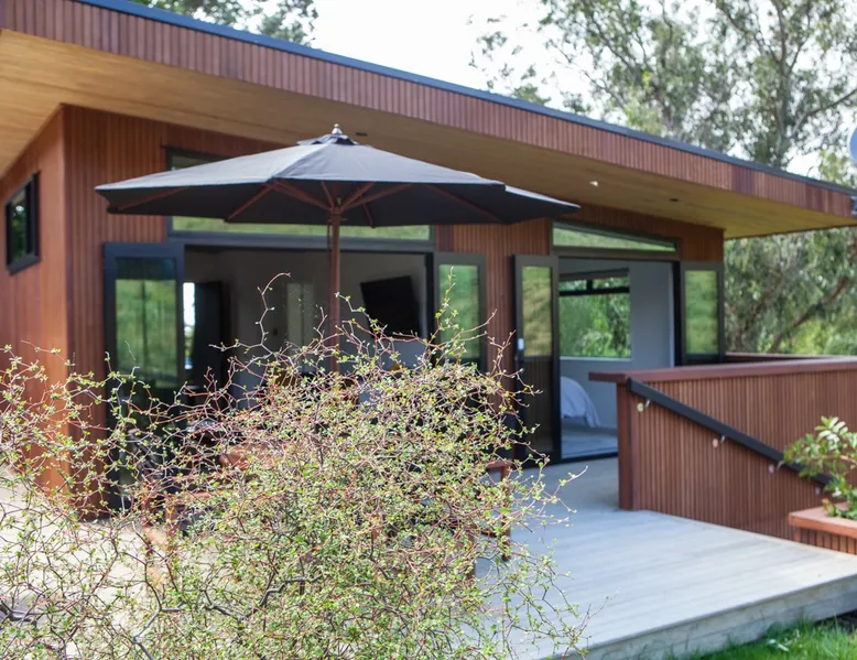 We offer you a luxury retreat in a peaceful native bush setting. Located in a private corner of one acre of established gardens, our brand new chalet will provide you with a tranquil and unique escape just five minutes' walk to the beach. The space Private space with amazing views out to the valley and lush gardens. Complete with outdoor bath and shower on a private balcony. Guest access Guests have access to all of this private dwelling.
