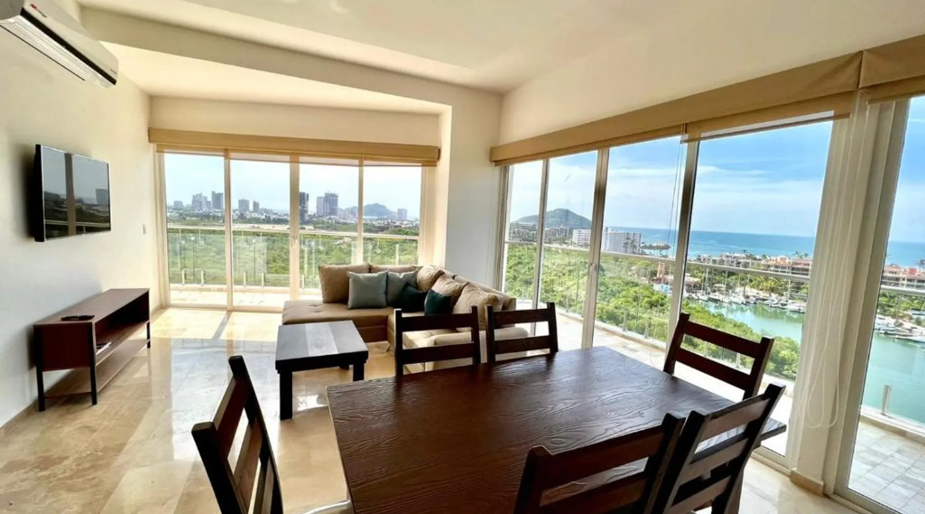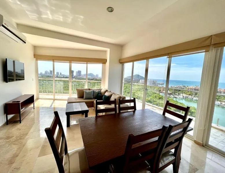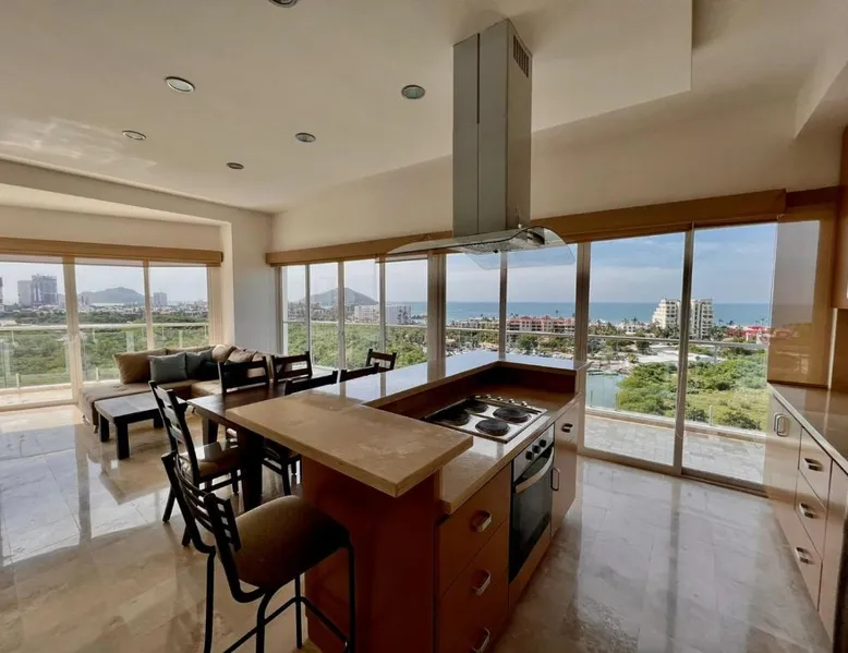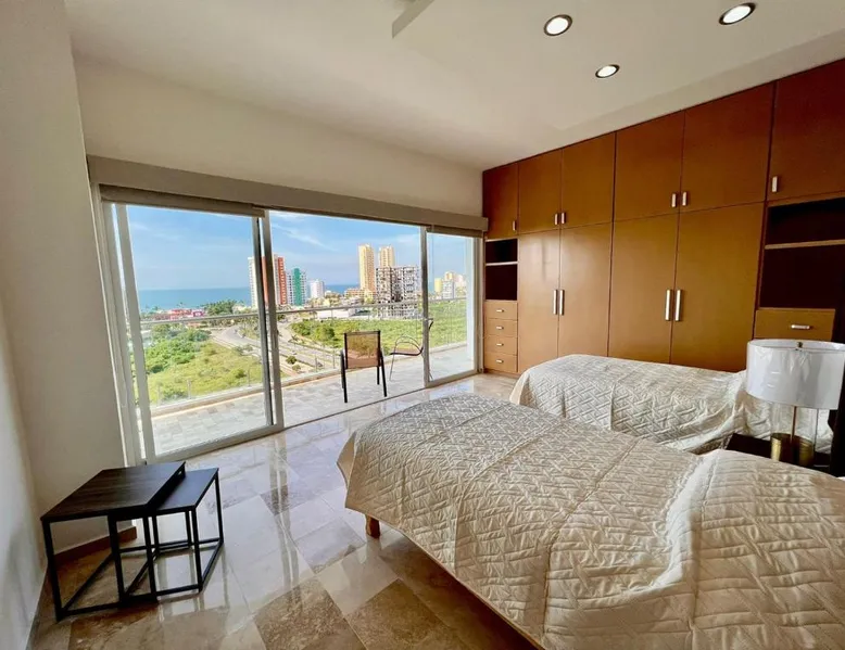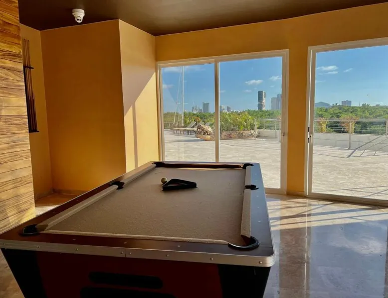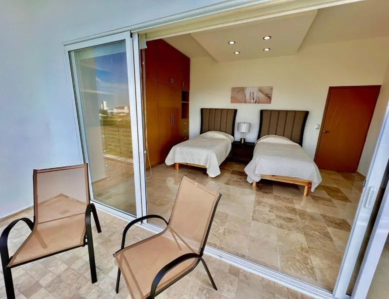 Spacious Accommodations: Marina Platino Plus vista panoramica al mar in Mazatlán offers a spacious apartment with three bedrooms and two bathrooms. The property features a fully equipped kitchen, terrace, balcony, and garden views. Exceptional Facilities: Guests can enjoy an infinity swimming pool, fitness center, sun terrace, and a lush garden. Additional amenities include a pool bar, solarium, games room, and free WiFi throughout the apartment. Convenient Location: Located 22 mi from General Rafael Buelna International Airport, the apartment is a 7-minute walk from Pato Blanco Beach. Nearby attractions include Plazuela Machado (8.7 mi) and Mazatlan Lighthouse (11 mi). Guests will have a special experience as the apartment offers a private pool. The apartment's kitchen is available for cooking and storing food. The spacious apartment provides air conditioning, a washing machine, a mini-bar as well as a terrace with garden views. The unit offers 5 beds.
