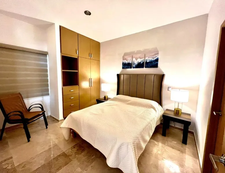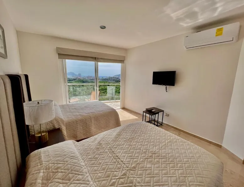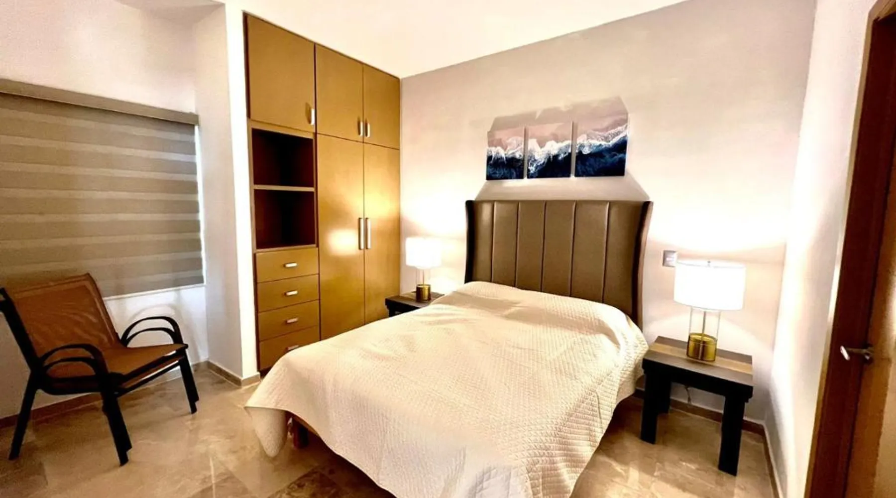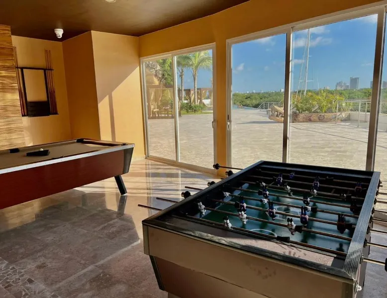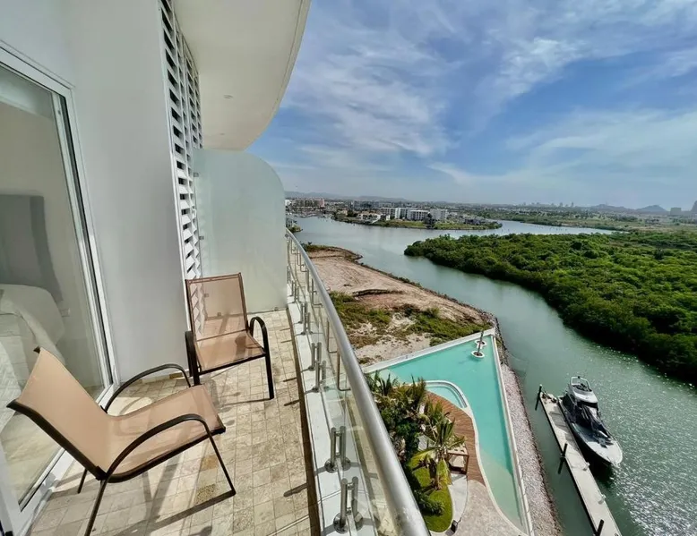 Spacious Accommodations: Marina Platino Plus vista panoramica al mar in Mazatlán offers a spacious apartment with three bedrooms and two bathrooms. The property features a fully equipped kitchen, terrace, balcony, and garden views. Exceptional Facilities: Guests can enjoy an infinity swimming pool, fitness center, sun terrace, and a lush garden. Additional amenities include a pool bar, solarium, games room, and free WiFi throughout the apartment. Convenient Location: Located 22 mi from General Rafael Buelna International Airport, the apartment is a 7-minute walk from Pato Blanco Beach. Nearby attractions include Plazuela Machado (8.7 mi) and Mazatlan Lighthouse (11 mi). Guests will have a special experience as the apartment offers a private pool. The apartment's kitchen is available for cooking and storing food. The spacious apartment provides air conditioning, a washing machine, a mini-bar as well as a terrace with garden views. The unit offers 5 beds.