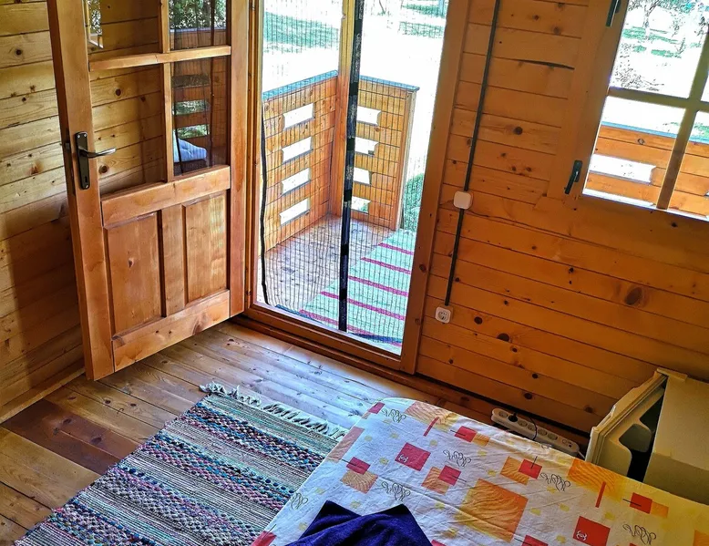 Look for something different than the usual accommodation and come meet a simple, but relaxing and charming experience, at the foothill of Retezat Mountains, in Ţara Haţegului. Bathed by the gentle rays of the morning sun, the hut unveils mesmerizing views and sounds. This is for those who want to reconnect with nature, and are looking for eco-friendly experiences. Being quite small, it encourages its visitors to spend time outside and enjoy a very large number of outdoor activities. The space The hut is positioned in a big camping area, with very young trees and lot of grass around. It's fully made of wood, having one room and a small terrace. Please note that the private bathroom consists of an outdoor shared shower and toilet, which are about 50m away from the cabin. The shower and the toilet are not available in the winter. The hut is compact, simply furnished, aiming to make you relax and explore beautiful Transylvania and Retezat Mountains. Since this is a camping area, tents/campers may be close by. Find out more: visitretezat[dot]com Other things to note Basic amenities are provided, as the hut is quite compact. Therefore, basic facilities such as electric power sockets, electric lighting, and a small refrigerator are included. However, running water is not provided and the bathroom is an outdoor one, with four cabins (two with a toilet and two with a shower). The water from the shower is heated using a solar panel. The outdoor bathroom is not available on winter. Although the yard is suitable for pets, we would like to agree the details prior to your visit. Based on our experience, the hut is not suitable for all pets, on all weather conditions.