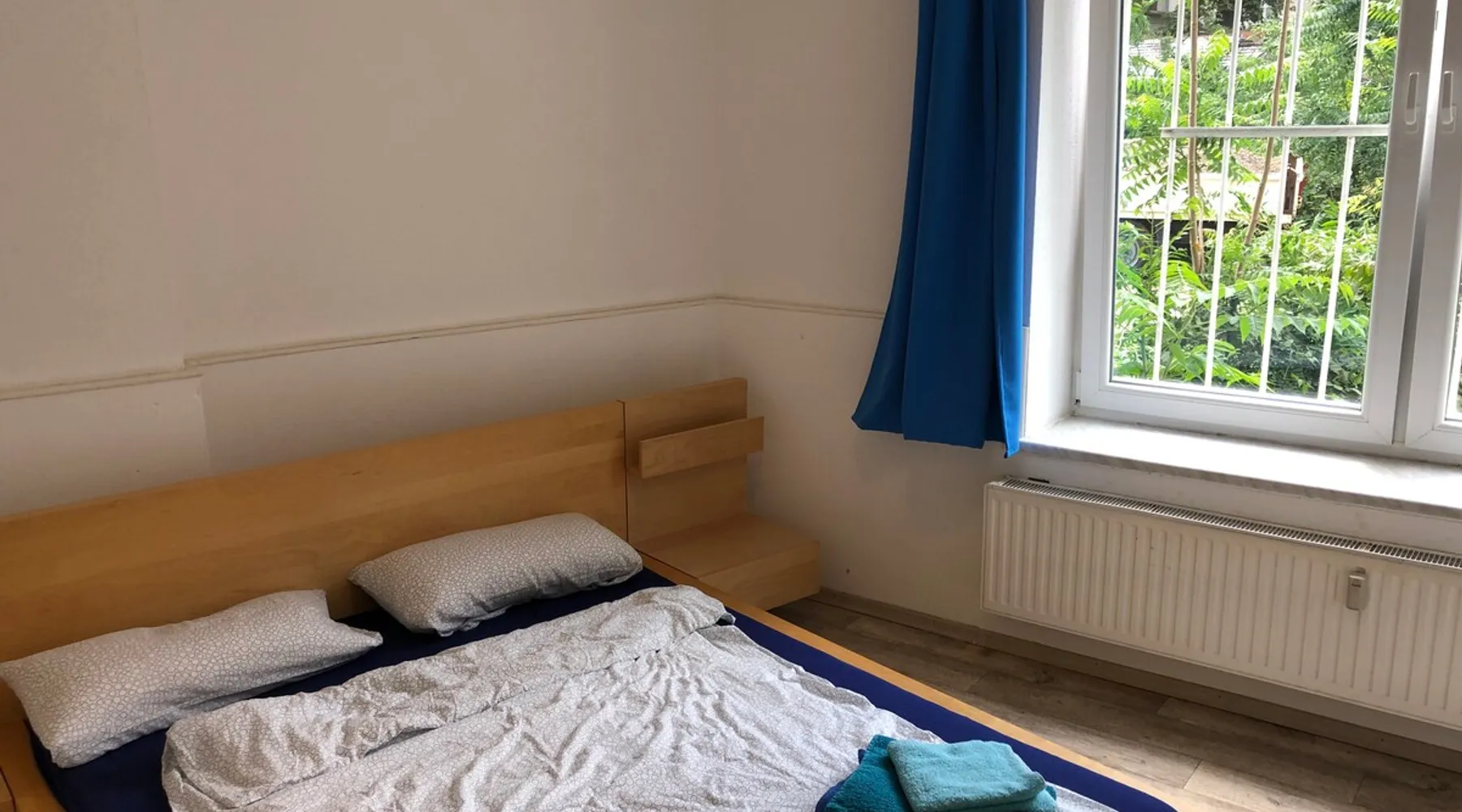 2 bedroom flat in the rear building right next to the Castle Giebichenstein. A perfect fit for families and couples, who want to visit the lively student town of Halle with a quick access to the main sights. The tramway stop next to the house allows reaching the central station and the city center easily. Shops, coffee bars, a broad variety of restaurants ranging from take away to upper class are located in walking distance. In addition the programme of Netflix is at your offer. The space 2 bedroom flat ful of atmosphere which sleeps up to 4 persons. The master bedroom has a double bed (160*200cm) and the livingroom offers an extendable sleeping couch. Bed linen and towels are provided. Cable TV with Netflix and WIFI are ready for use. The kitchen is fully equipped with fridge/freezer, oven, microwave, coffee machine and dishwasher. A washing Maschine is placed in the bathroom. Guest access The flat on groundfloor is placed at your disposal.