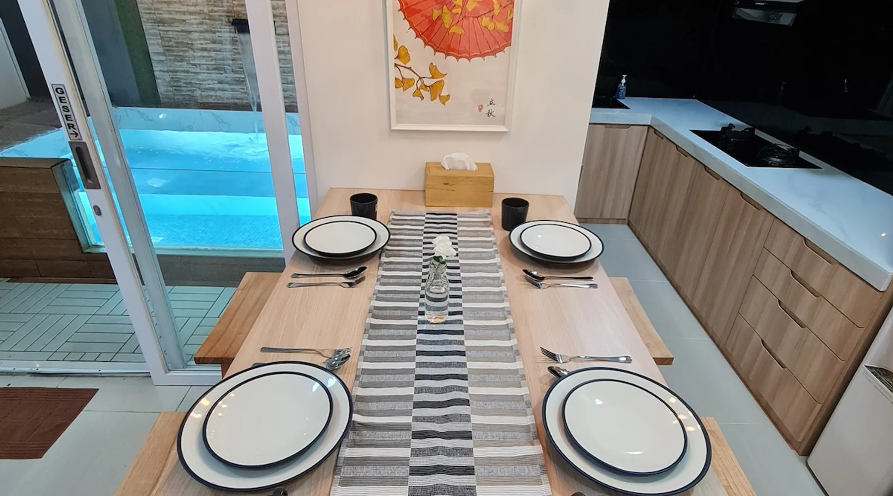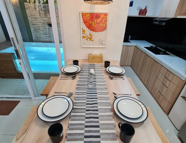 Cozy and new minimalist house, it has 24 hour security, it is also very peacefull and quite, the house has 2 bed rooms it is very clean.complete with kitchen and washing machine. It has a swimming pool for kids, also in the neighborhood there is a bigger swimming pool and sport club.convenience store nearby.Down town only 15min drive.free parking available. The space occasionally dog noise or gardener cutting grass will be heard. Guest access The guess will be given a password for entering the house . Other things to note Please rembember to keep the house clean.We provide everything you need to clean the house.NO PARTY ALLOWED.The house capacity is 4 adult and maksimum 2 children under 12 years old.We also dont provide extrabed.No exception to check in and check out times unless discussed with the host in advance.Damage Exceeding The Deposit Amount Will Be Billed To The Guest And Reported To Airbnb.Thank you
