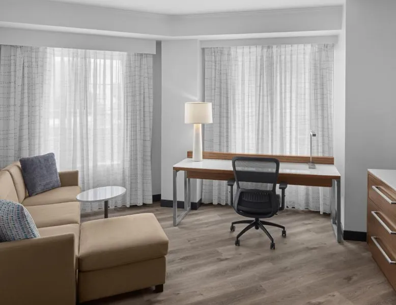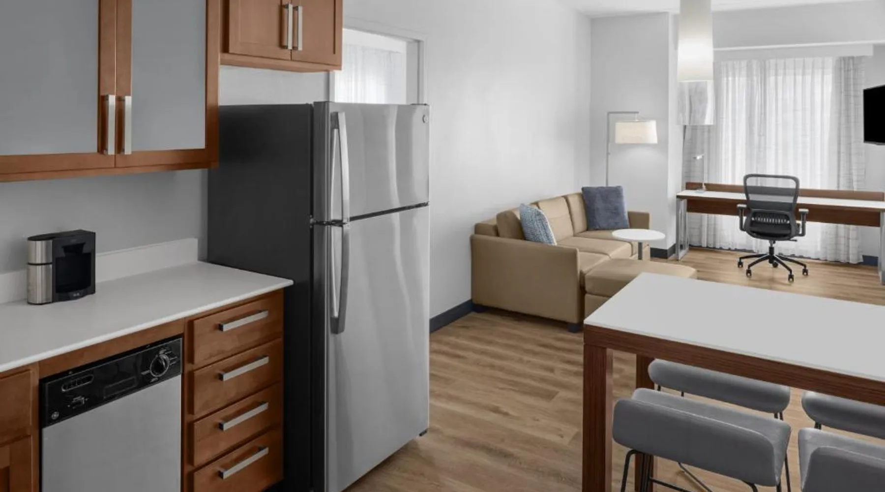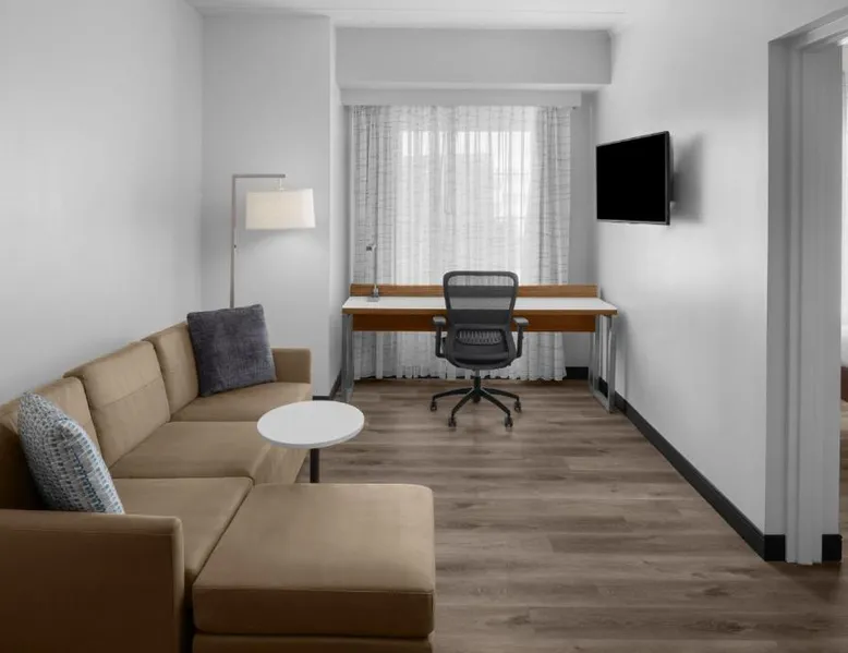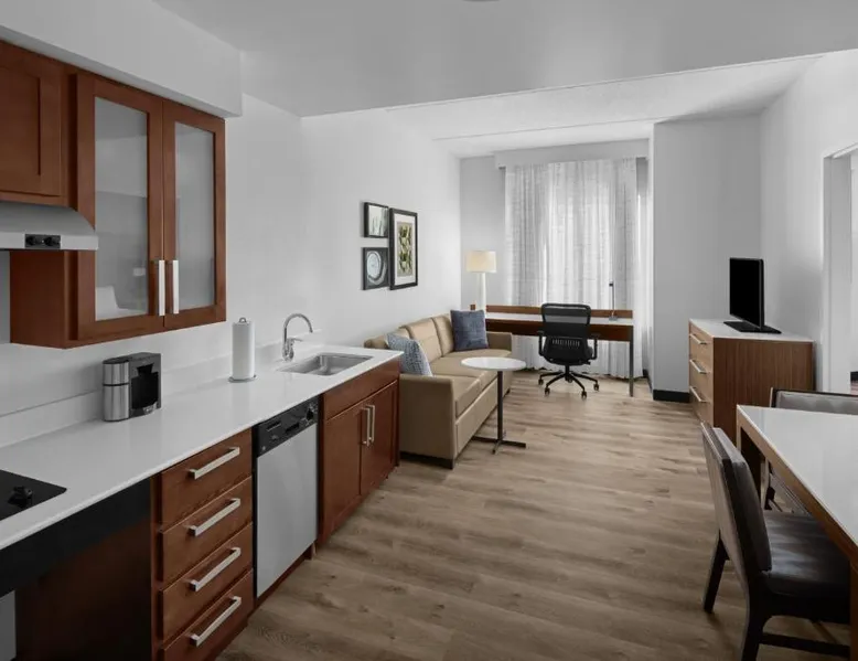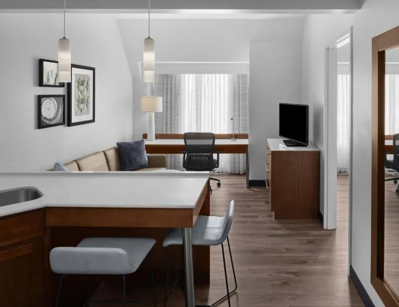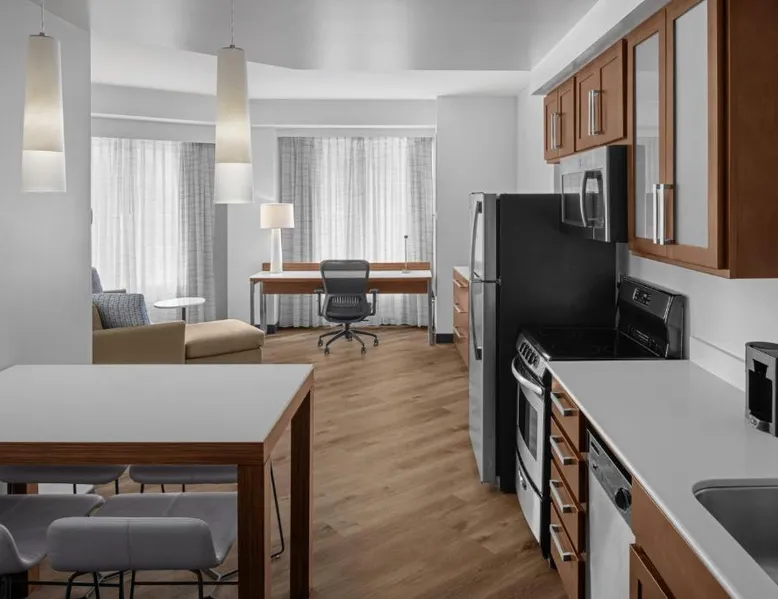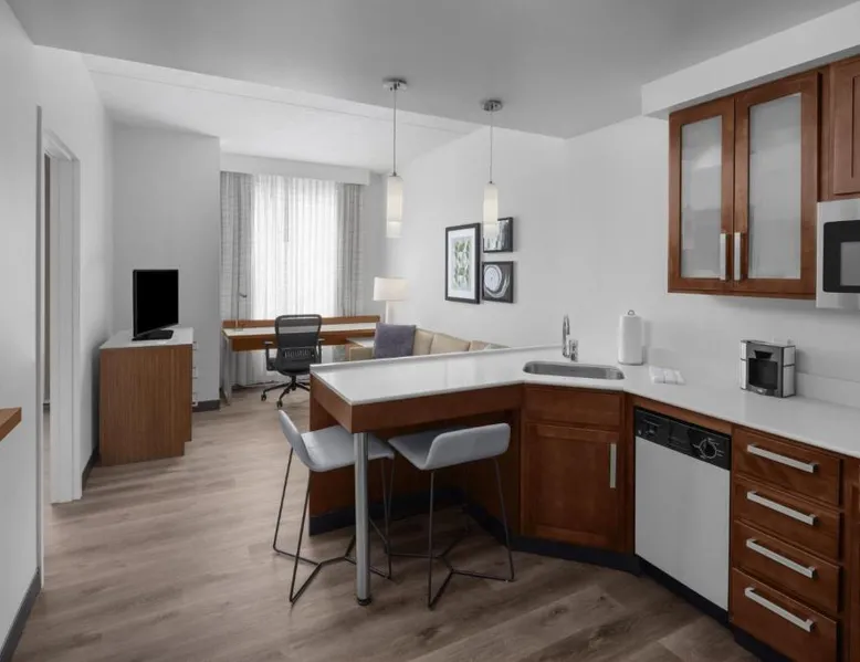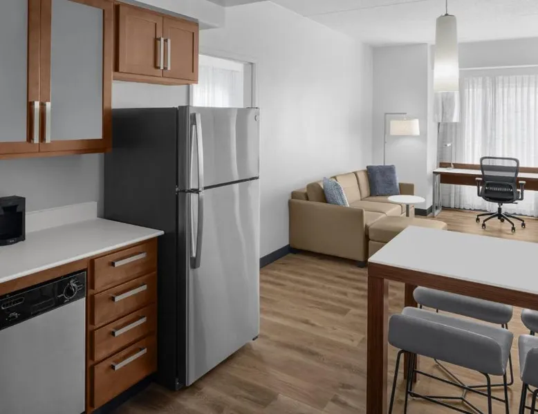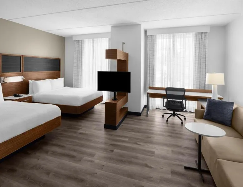 Comfortable Accommodations: Residence Inn by Marriott Durham Duke University Medical Center Area in Durham offers family rooms with air-conditioning, private bathrooms, and fully equipped kitchens. Each room includes a work desk, sofa, and TV, ensuring a pleasant stay. Exceptional Facilities: Guests can enjoy a fitness center, free use of bicycles, terrace, bar, and free WiFi. Additional amenities include a shuttle service, lounge, outdoor fireplace, and business area. The property also provides a minimarket, grocery delivery, and car hire services. Prime Location: Located 15 mi from Raleigh-Durham International Airport, the hotel is a 16-minute walk from American Tobacco Campus. Nearby attractions include Duke University (2.5 mi) and Umstead State Park (14 mi). Guests appreciate the convenient location, room comfort, and breakfast provided by the property. The unit offers 2 beds.