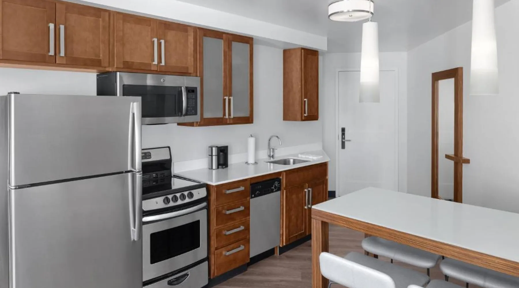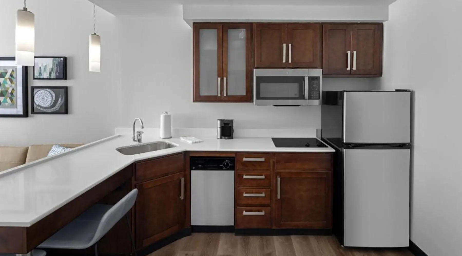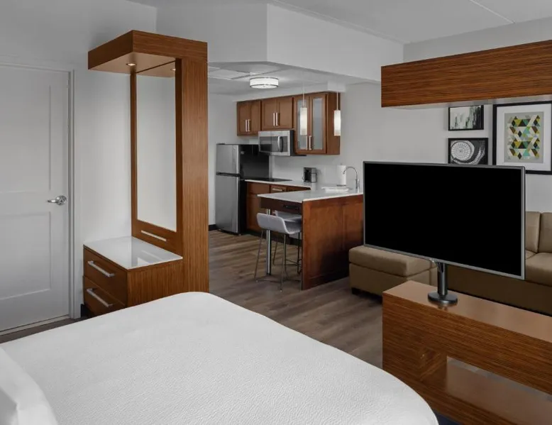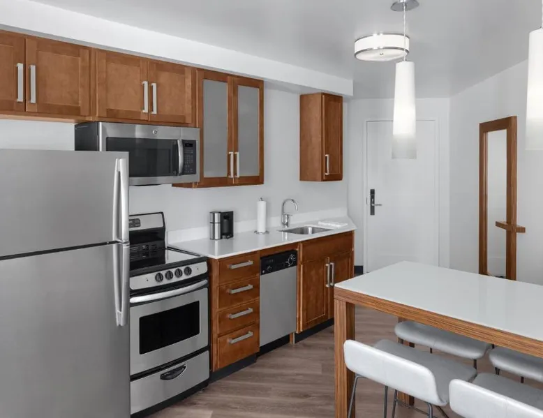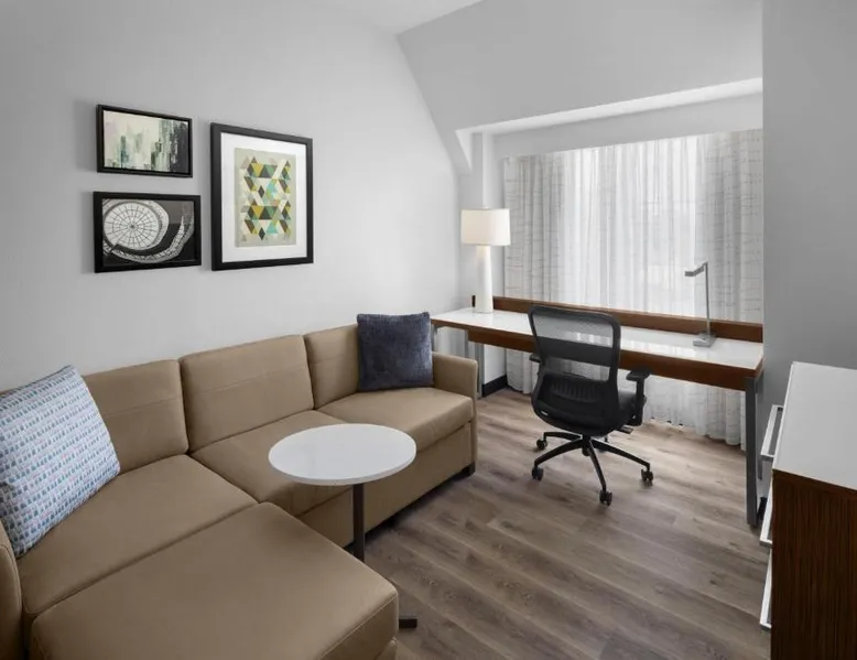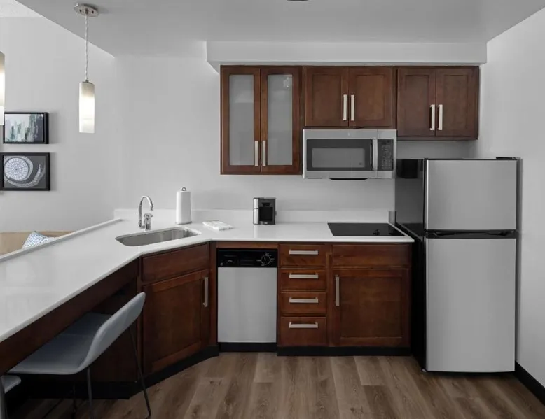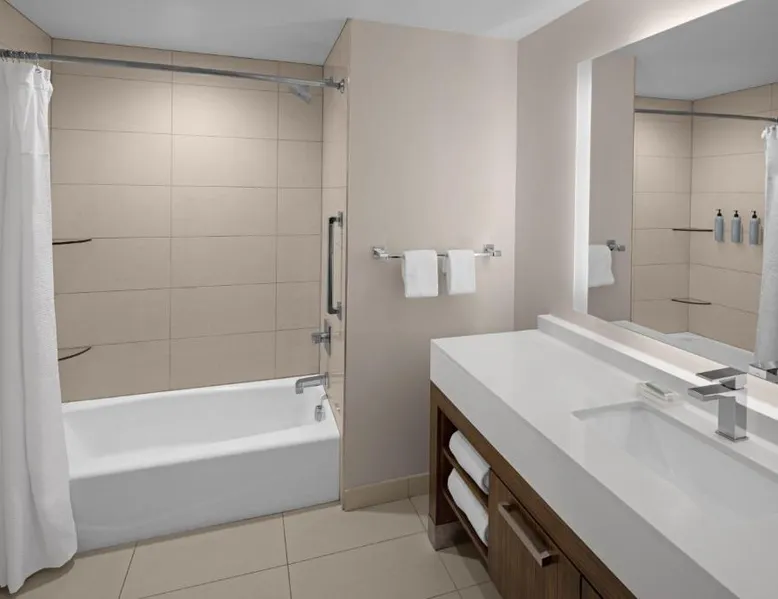 Comfortable Accommodations: Residence Inn by Marriott Durham Duke University Medical Center Area in Durham offers family rooms with air-conditioning, private bathrooms, and fully equipped kitchens. Each room includes a work desk, sofa, and TV, ensuring a pleasant stay. Exceptional Facilities: Guests can enjoy a fitness center, free use of bicycles, terrace, bar, and free WiFi. Additional amenities include a shuttle service, lounge, outdoor fireplace, and business area. The property also provides a minimarket, grocery delivery, and car hire services. Prime Location: Located 15 mi from Raleigh-Durham International Airport, the hotel is a 16-minute walk from American Tobacco Campus. Nearby attractions include Duke University (2.5 mi) and Umstead State Park (14 mi). Guests appreciate the convenient location, room comfort, and breakfast provided by the property. The unit offers 2 beds.