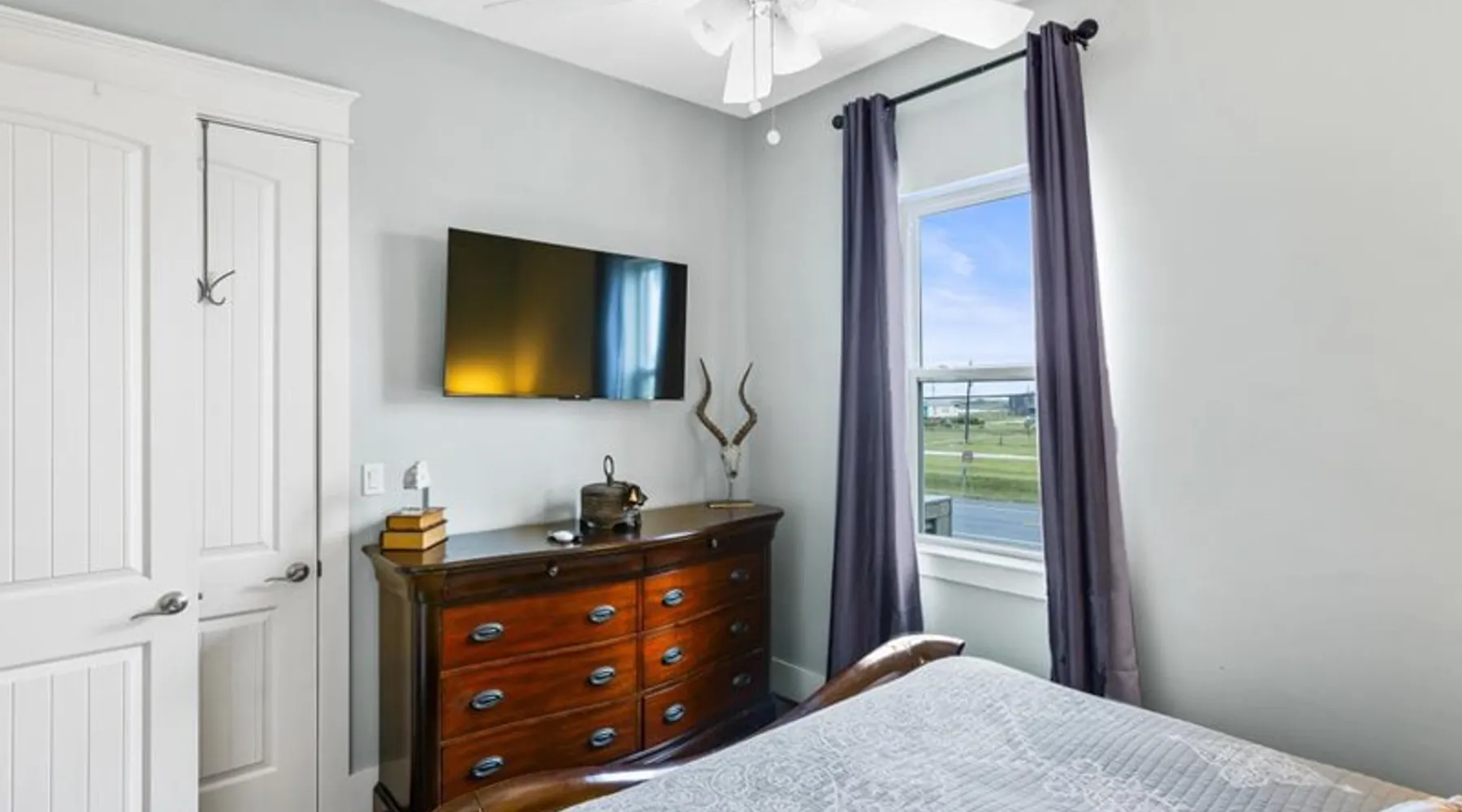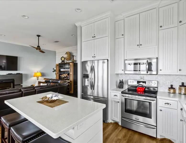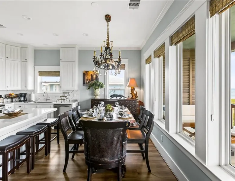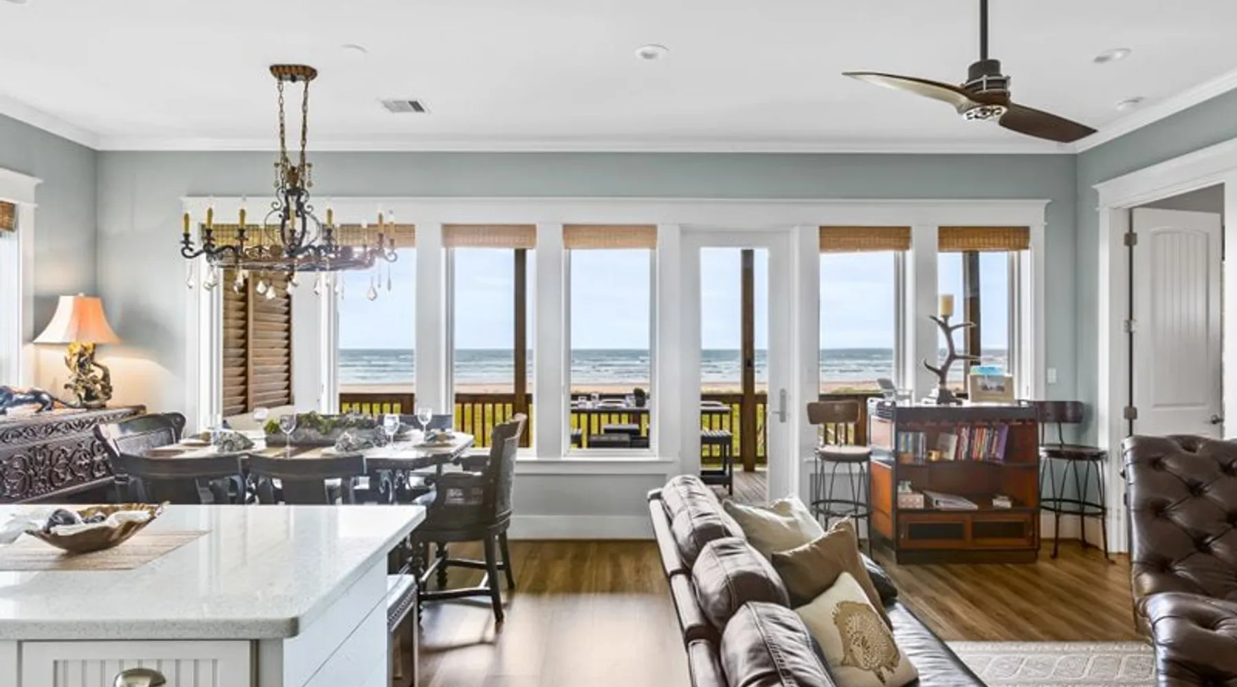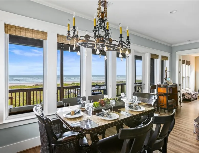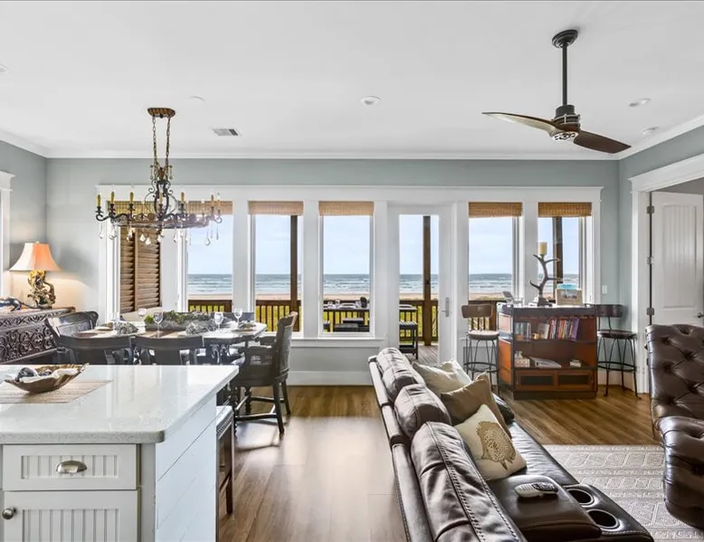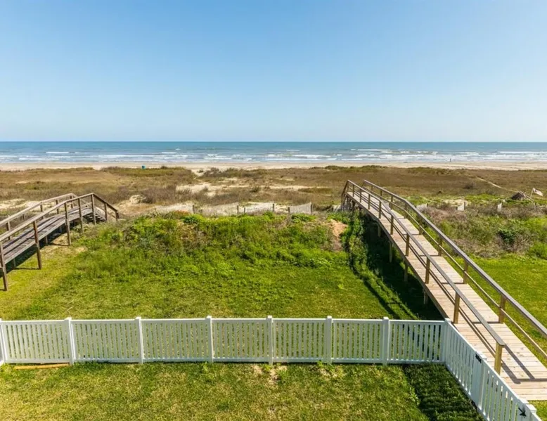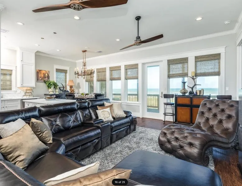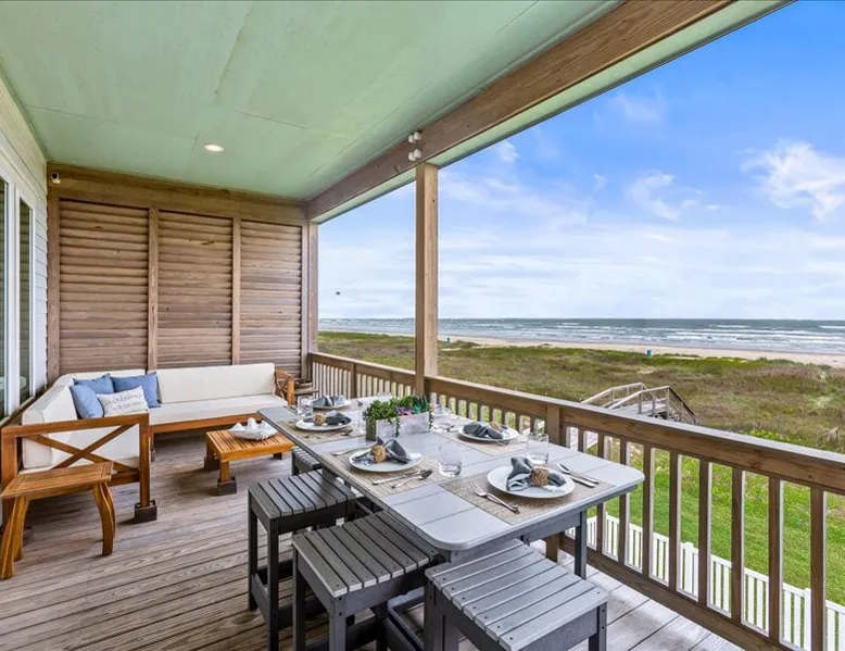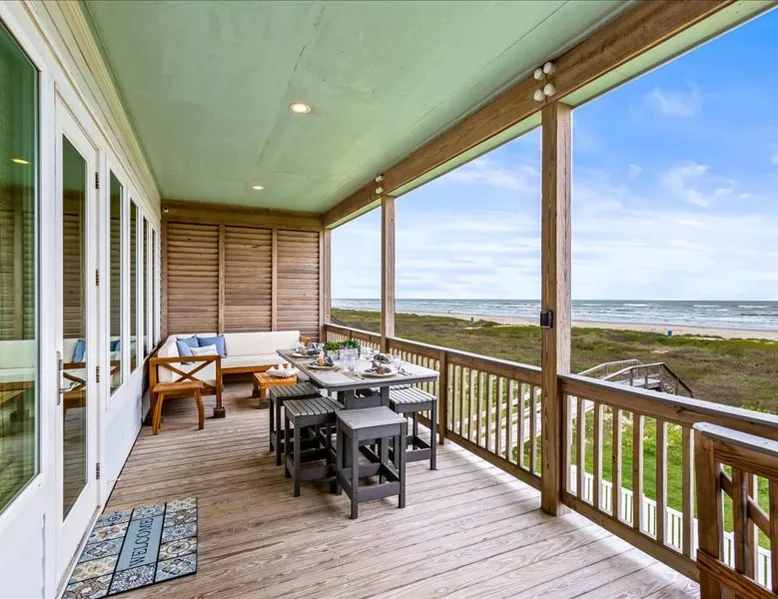 4 Bedrooms, 2.5 Baths, Sleeps 8 in 3 King & 1 Queen Beds, No Pets. Meticulously maintained and appointed with luxurious furniture and decor, Beachfront Bliss is a 4BR/2.5BA Galveston home that was featured on HGTV. From the moment you wake up in the morning, you can take in the beach views. When you are ready to get out and enjoy the sand and surf, just follow your private walkway to the shore. You'll love the open floor plan with plush leather furniture in the living room and home chefs will The space Welcome to "Beachfront Bliss" (kindly named by our producer from HGTV!) Yes we were on HGTV! Our show aired on Sept 16, 2018, on Beachfront Bargain Hunt! My husband and I have been dreaming about owning a vacation rental for the last 20+ years. We have been renting vacation homes since we got married as we preferred to have our own private space. And over those years of renting, we have learned so much. We have taken all of those experiences and now have created our own vacation home rental experience for our guests. I still remember when my kids were young, I wished the beach homes we rented had a fenced-in yard or closed-off balcony so our boys could play freely and safely. Those are the types of details we have built into our beach home. We have made sure the kitchen is fully stocked with everything you would need including high-end appliances. And what's a kitchen without baking pans to make cookies and cakes! We also made sure that all of our bedrooms have high-end mattresses for a comfy night's sleep. I love seeing the reviews when guests comment on the mattresses of all things. The decor of our home is also very cozy and inviting. And then there is the location- right on the beach! It doesn't get any better than this unless we were in the Caribbean! ;) We also have a guest book in the home and take every comment for improvement very seriously and have made changes accordingly. For example, one guest asked that we leave throw blankets out during the winter (done). Another guest asked that we fix one of the doors that squeaked (done). The guest over the summer suggested we add an outdoor cooler to the patio (done). And then there was the guest that asked for a hot tub....LOL- not so done! For the most part, our guests don't ask for much and that's because we have really tried to think of everything for families to have the best time in our beach home. We can't wait to host you! Leena & Pravin RULES TO BOOK THIS HOUSE: 1. The rental agreement needs to be filled out within 48 hours of booking this home and a copy of a valid government-issued ID will need to be uploaded as a file when filling out the rental agreement (per insurance requirements). The rental agreement will be emailed to you immediately after booking if you book on an online booking site. 2. This home has a strict NO SMOKING and NO EVENTS/PARTY POLICY 3. Maximum number of guests is 8 and only limited to those listed on the rental agreement. 4. Minimum age of primary renter is 25 5. NO PETS 6. Please note, exterior cameras are located at each entrance of the property (front gate, backyard gate and front door. COMMUNITY POOLS: To help you make the most of your vacation, we’re pleased to inform you about two nearby community pools available for your use: Jamaica Beach Community Pool: Located 7 miles from Beachfront Bliss at 16721 Jolly Roger, Jamaica Beach, TX 77554, this pool is ideal for guests staying at Beachfront Bliss. Lasker Community Pool: Situated at 2016 43rd St, Galveston, TX 77550, Lasker Community Pool is just half a mile from Sapphire Shells and 3 miles from Turquoise Shells. You will receive an email with links to both pools in your check-in instructions. Please review the information for pool hours, fees, and other important details as they may vary throughout the year. Other things to note 4 Bedrooms, 2.5 Baths, Sleeps 8 in 3 King and 1 Queen Beds, No Pets. Featured on HGTV! Beachfront Bliss is meticulously maintained and appointed with luxurious furniture and decor. From the moment you wake up in the morning, you can take in the beach views. When you are ready to get out and enjoy the sand and surf, just follow your private walkway to the shore. You'll love the open floor plan with plush leather furniture in the living room and home chefs will appreciate the beautiful gourmet kitchen. We are one of the few homes that have a privacy/wind wall on both sides of the patio. The parking area and staircase are also covered, which comes in handy on a rainy day. ABOUT THE HOUSE A wall of windows across the front of the house allows you to enjoy the gulf views from the posh living room, kitchen, and master suite. Lounge on the leather sectional or chaise while watching the 60" flat-screen TV. An electric fireplace creates a warm ambiance on cool winter nights. Brew yourself a cup of joe at the coffee/wine bar equipped with a Keurig machine. A chef's dream, the kitchen boasts white quartz countertops, beadboard cabinets, and stainless steel appliances, including a French-door fridge. The center island offers extra prep space and seating. This home is equipped with all the cooking utensils you need to whip up a fresh gourmet meal for family and friends. The dining table sits in front of picture windows overlooking the water. The adjacent high-top bar/game table seats two more guests and there are also three seats around the island. Pour yourself a drink and head out to the balcony, where you can listen to the relaxing waves and enjoy the ocean breezes. The home sleeps eight guests total in four bedrooms. The luxurious master bedroom has a king bed, water views, a 50" flat-screen TV and an electric fireplace. The stunning en-suite bathroom boasts a dual vanity, a spacious walk-in shower, and a large walk-in closet. Decorated with sleek black and white bedding, the second bedroom has a comfy king-size bed. The third bedroom comes with a queen bed, while the fourth bedroom has a king bed. These rooms share a full bath wi