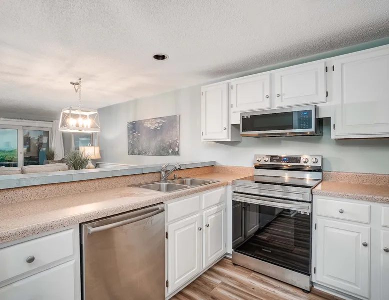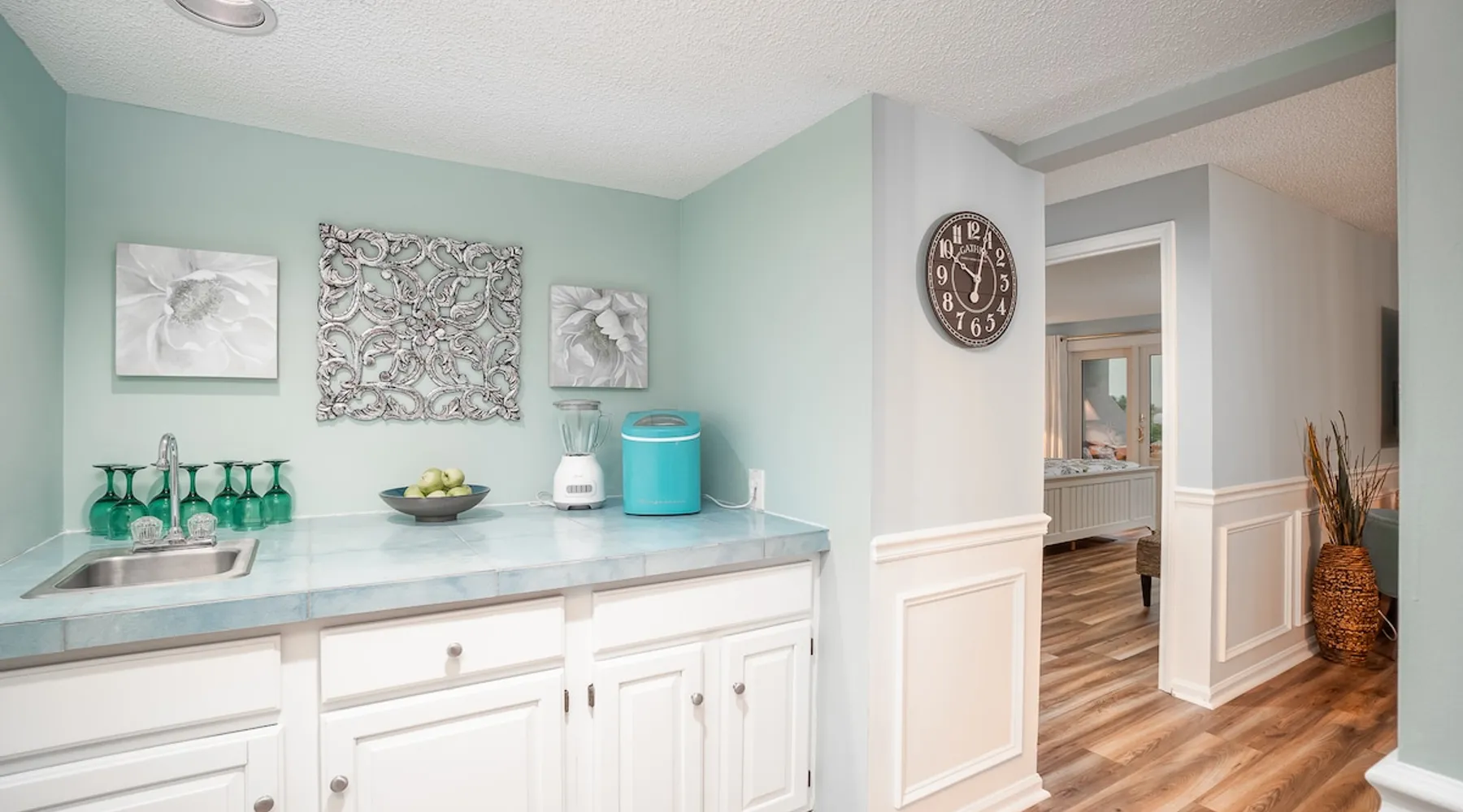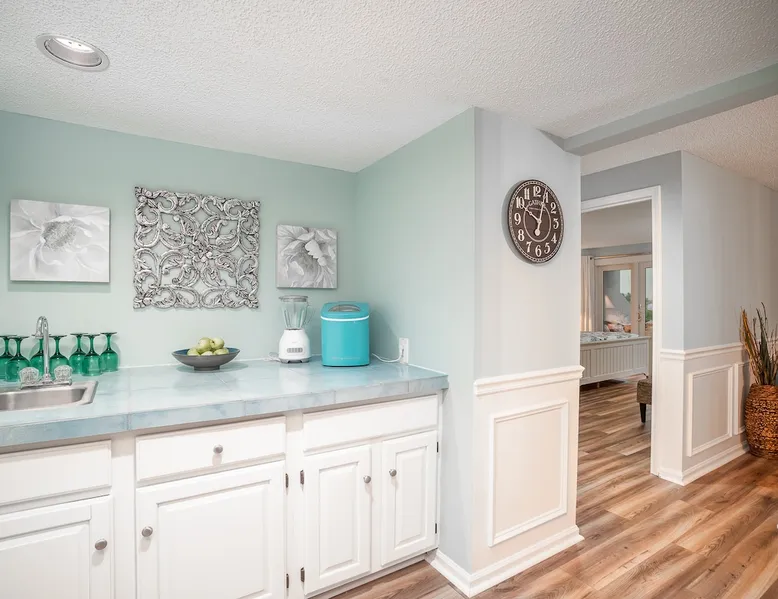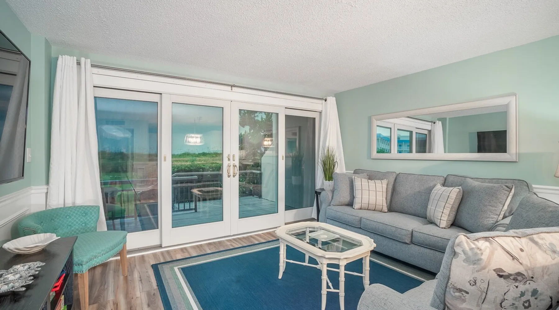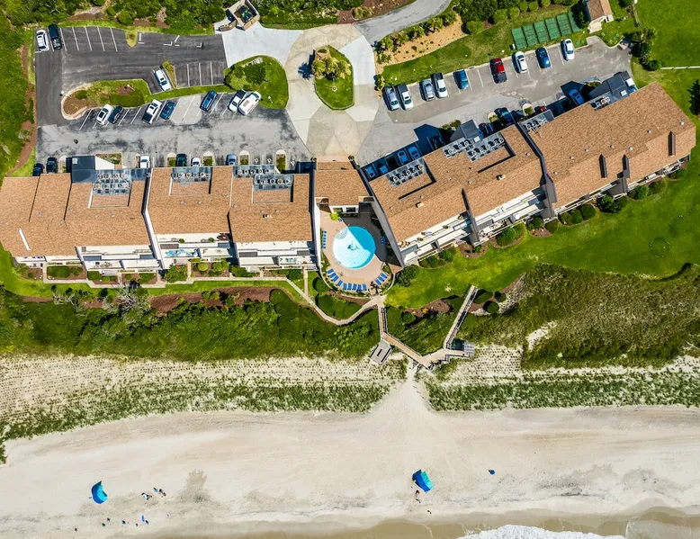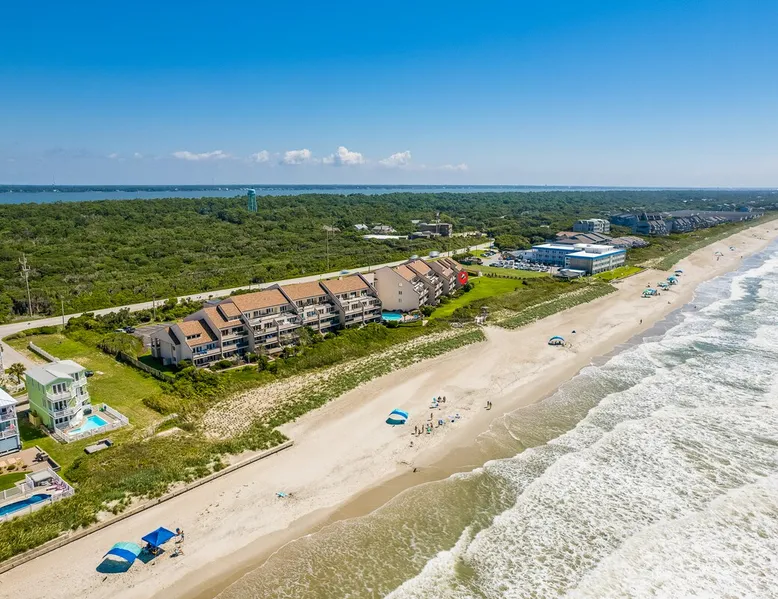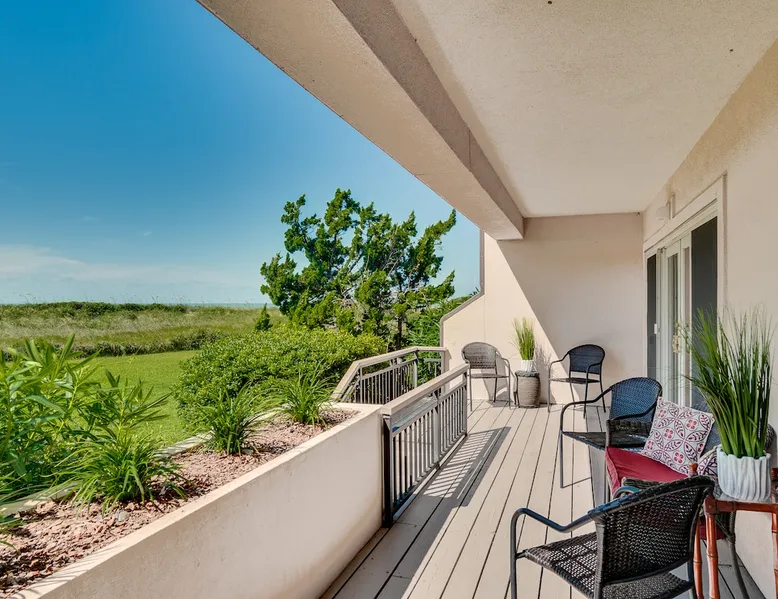 STEPS TO THE BEACH! - "Unwind" from the hustle & bustle in this beautiful ground floor beachfront home. Up to 8 guests with a full bath for each room! Easy access to the beach or pool. Guests love the deck that steps to the lawn--perfect for bocce or kids play! Smart TV in 3 rooms. Stocked kitchen includes crock pot, Keurig, ice maker & Margarita maker! Pool, beachside deck for those awesome sunsets! Close to miniature golf, golf courses, Historic Beaufort, Restaurants, Shopping and more! The space Wonderful decor and comfortable accommodations. Fully stocked kitchen. Master suite with private entrance. Deck with tall bar table and chairs. "Share box" with beach toys. Outdoor swimming pool and charcoal grill. Large beachside deck and tables. Easy, short walk to the beach. Great fishing and wave riding. Low tidal pools for the little ones! Our guests love it here! Guest access Community outdoor pool. Open May 1 to September 30. Other things to note Free wifi. Smart TVs. Electronic (keyless) access. Free parking.