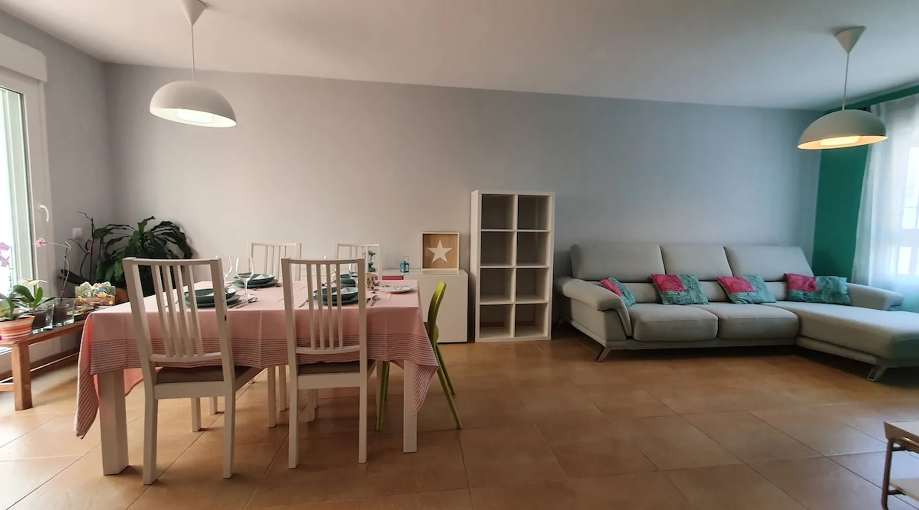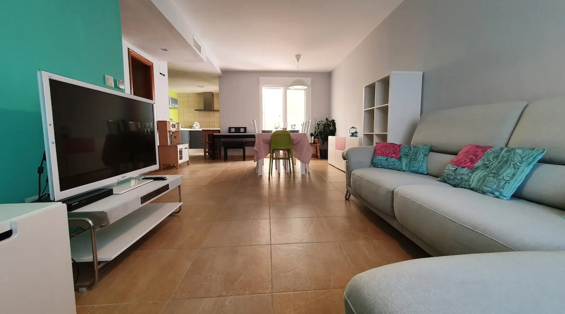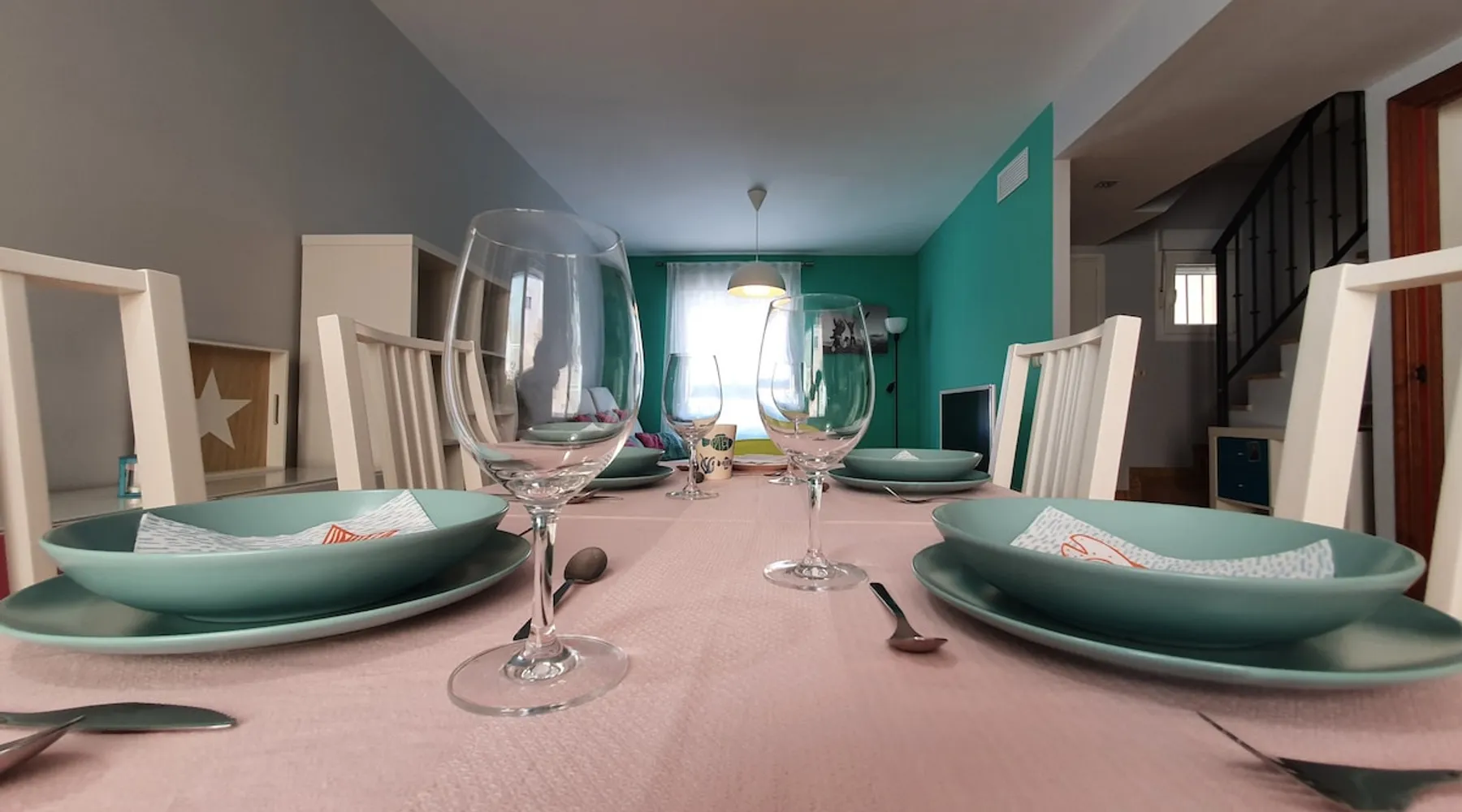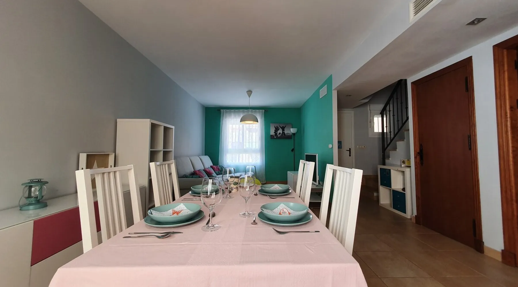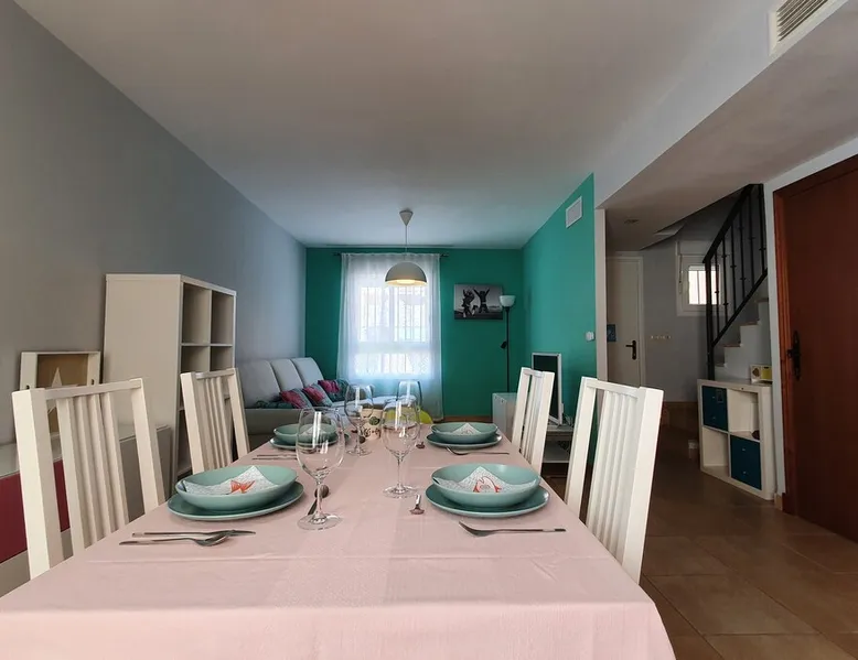 Spectacular 3-storey townhouse in one of the best urbanizations in Tarifa. 2 swimming pools and common gardens. About 200 yards from the Lances beach. The townhouse has 4 bedrooms, 2 bathrooms, 1 toilet, living room and fully equipped kitchen, interior patio and entrance porch on the ground floor and terrace on the upper floor, as well as a garage space in the community parking. Take the whole family to this fantastic home that has plenty of room to have fun! The space On the ground floor we enter through a private porch with table and wooden chairs to spend pleasant moments outdoors. This entrance takes us to the spacious dining room, which is connected to the modern kitchen with a silestone countertop, fully equipped with everything you could want: ceramic, oven, microwave, dishwasher, washing machine, dryer, toaster, capsule and espresso machine, kettle, pots and pans, dishes and everything you need to cook and feel at ease. On the ground floor we also find a private patio and a toilet. On the first floor there are three bedrooms. The master bedroom has a large double bed, with a balcony in the street, built in wardrobes, it has an ensuite bathroom, with double sink, large shower with screen and toilet. The second bedroom is that of a child, with a 200x90cm high bed, built-in closet and window to the patio (you can put a second mattress downstairs in the bunk bed for two children). The third bedroom has a trundle bed, which can be extended to a double bed (200x160cm), also with built-in closet and patio window. On the first floor we find another full bathroom with a bathtub. On the second floor is the fourth bedroom quite spacious with a sofa bed, where two people can sleep. This bedroom leads to the terrace, overlooking the street. In the basement there is a garage space, which belongs to the house. We appreciate not having to look for parking in the summer. Guest access The entire townhouse is at your disposal. Fully renovated pools for the season stand out in the common areas. A large swimming pool, and a small one, which is not very deep for the little ones. There is also a large lawn area for lying down and a very nice plant area. There's free and unlimited wifi at the house. There are linens and bath towels in the house. Other things to note Parties, and bachelor parties are not allowed, as it is a quiet and family friendly development. Registration Details Andalucia - Regional registration number VFT/CA/14712