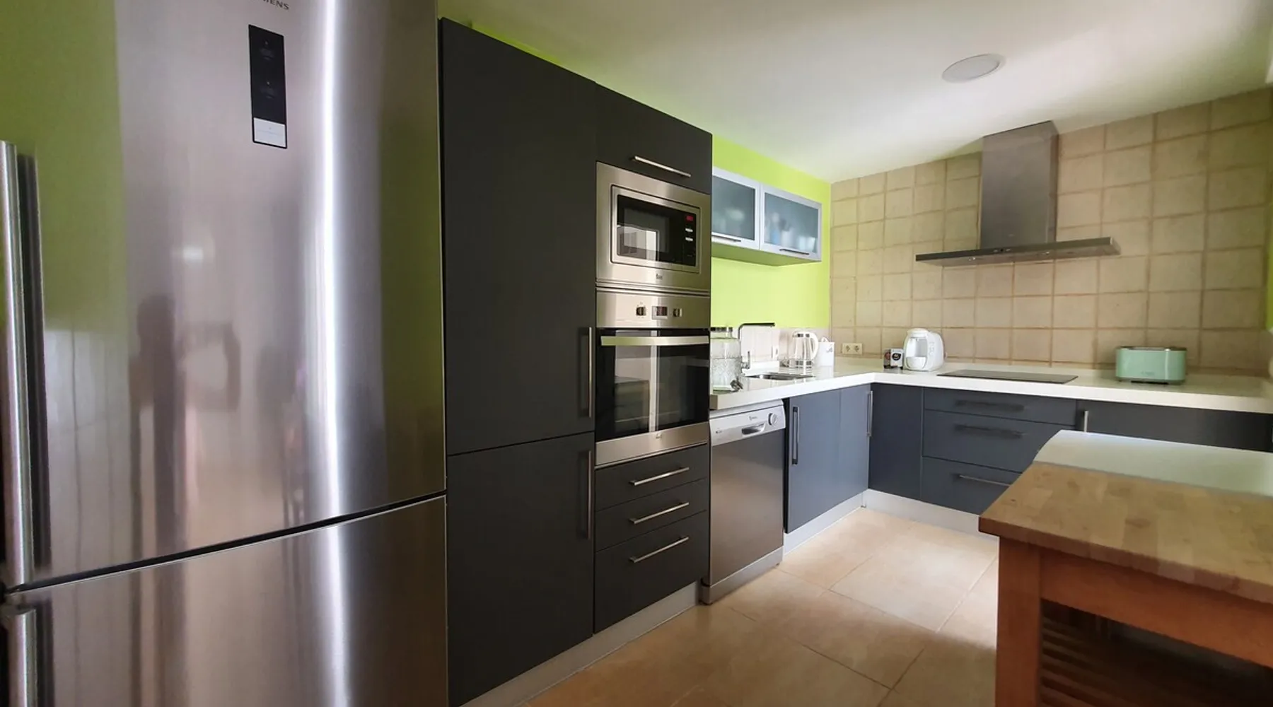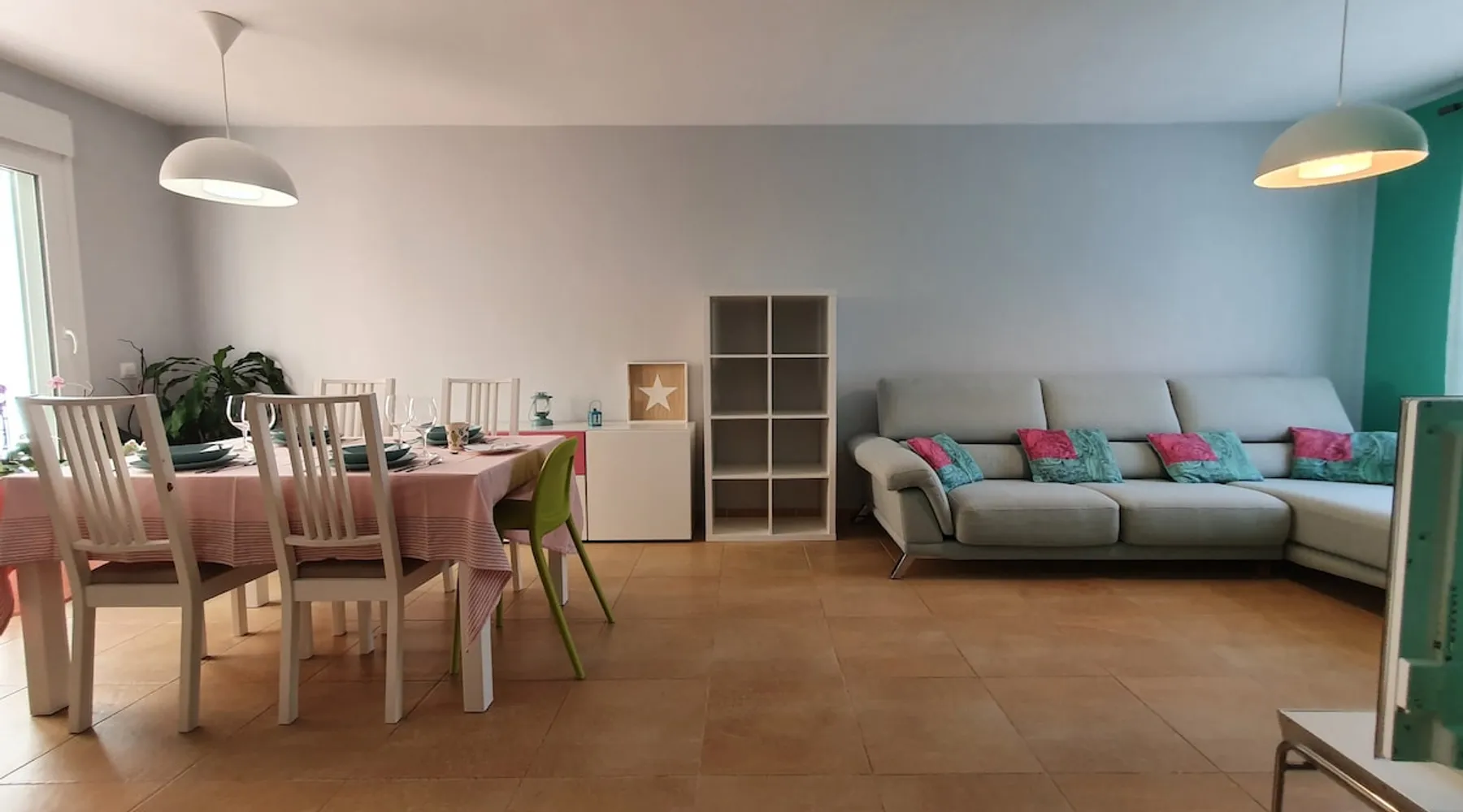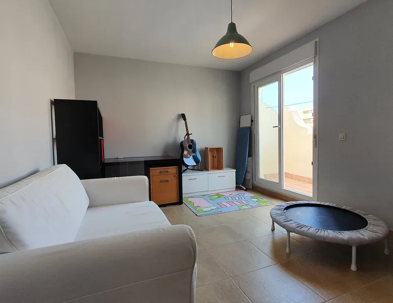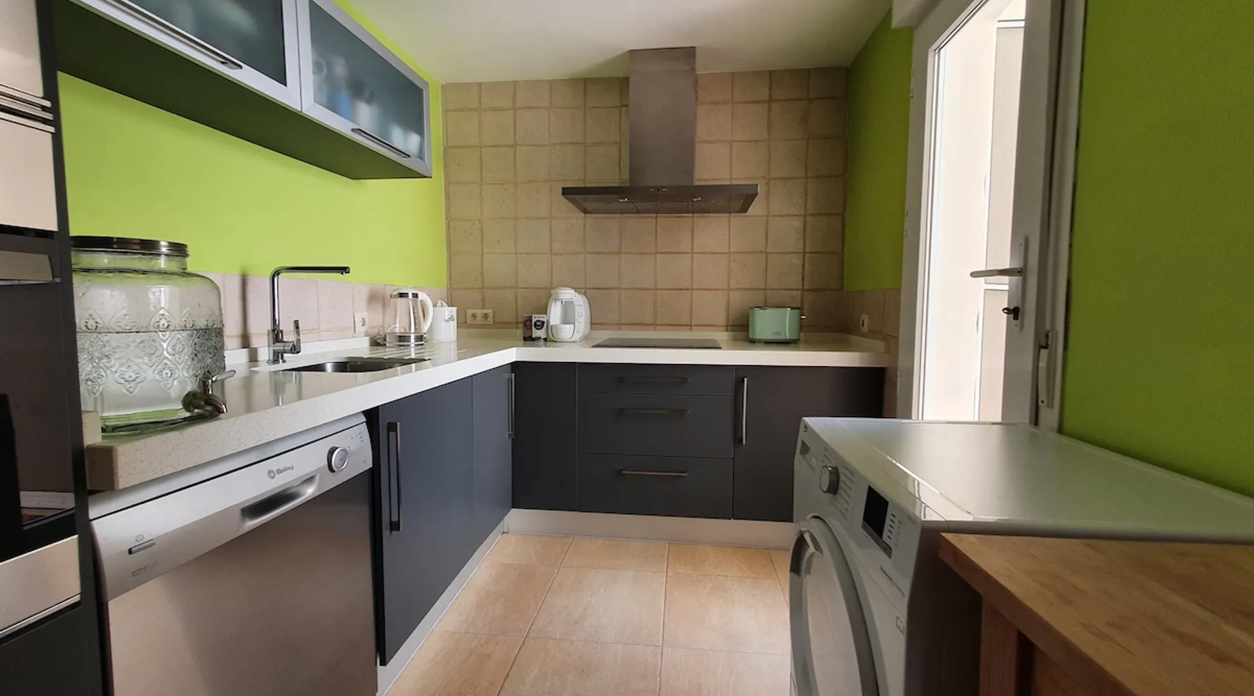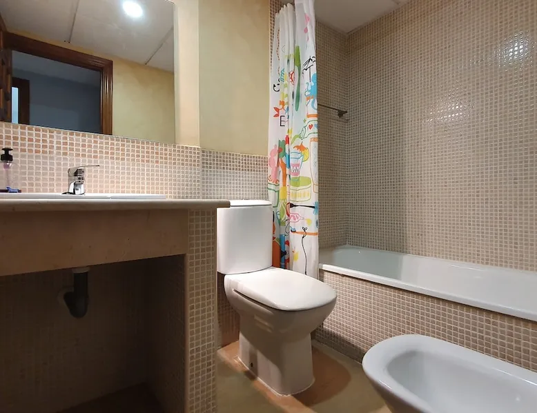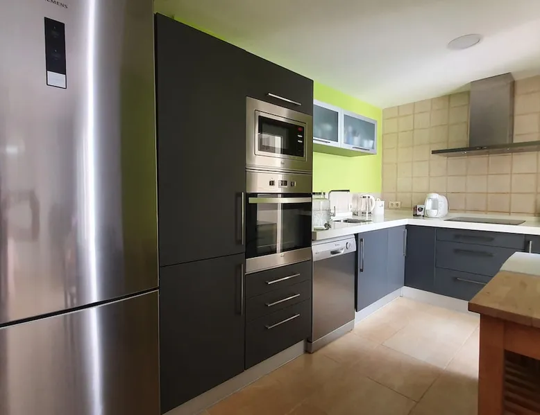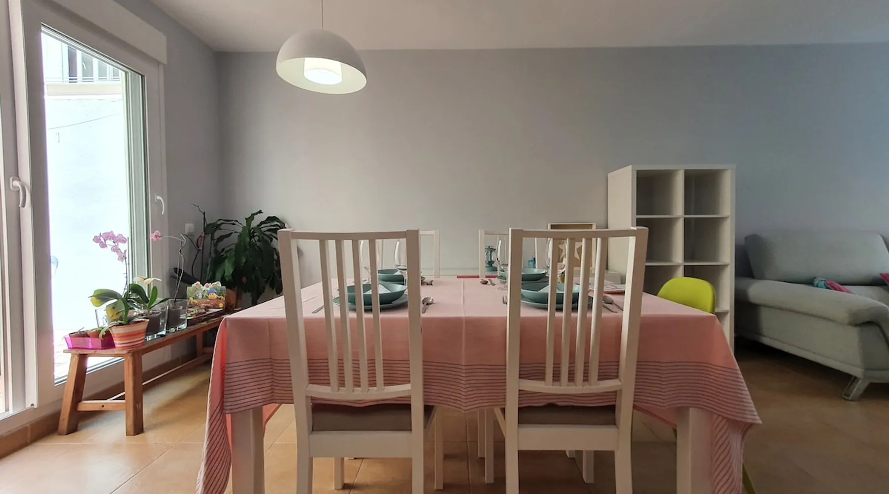 Spectacular 3-storey townhouse in one of the best urbanizations in Tarifa. 2 swimming pools and common gardens. About 200 yards from the Lances beach. The townhouse has 4 bedrooms, 2 bathrooms, 1 toilet, living room and fully equipped kitchen, interior patio and entrance porch on the ground floor and terrace on the upper floor, as well as a garage space in the community parking. Take the whole family to this fantastic home that has plenty of room to have fun! The space On the ground floor we enter through a private porch with table and wooden chairs to spend pleasant moments outdoors. This entrance takes us to the spacious dining room, which is connected to the modern kitchen with a silestone countertop, fully equipped with everything you could want: ceramic, oven, microwave, dishwasher, washing machine, dryer, toaster, capsule and espresso machine, kettle, pots and pans, dishes and everything you need to cook and feel at ease. On the ground floor we also find a private patio and a toilet. On the first floor there are three bedrooms. The master bedroom has a large double bed, with a balcony in the street, built in wardrobes, it has an ensuite bathroom, with double sink, large shower with screen and toilet. The second bedroom is that of a child, with a 200x90cm high bed, built-in closet and window to the patio (you can put a second mattress downstairs in the bunk bed for two children). The third bedroom has a trundle bed, which can be extended to a double bed (200x160cm), also with built-in closet and patio window. On the first floor we find another full bathroom with a bathtub. On the second floor is the fourth bedroom quite spacious with a sofa bed, where two people can sleep. This bedroom leads to the terrace, overlooking the street. In the basement there is a garage space, which belongs to the house. We appreciate not having to look for parking in the summer. Guest access The entire townhouse is at your disposal. Fully renovated pools for the season stand out in the common areas. A large swimming pool, and a small one, which is not very deep for the little ones. There is also a large lawn area for lying down and a very nice plant area. There's free and unlimited wifi at the house. There are linens and bath towels in the house. Other things to note Parties, and bachelor parties are not allowed, as it is a quiet and family friendly development. Registration Details Andalucia - Regional registration number VFT/CA/14712