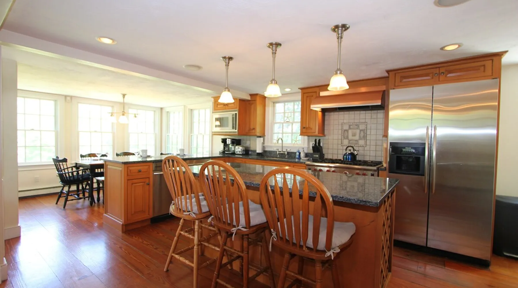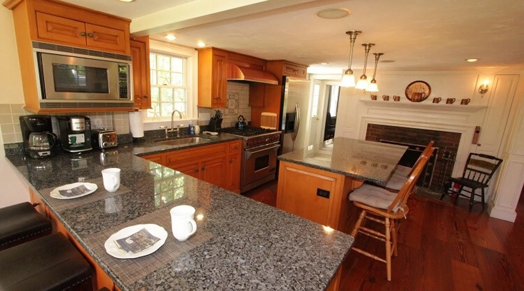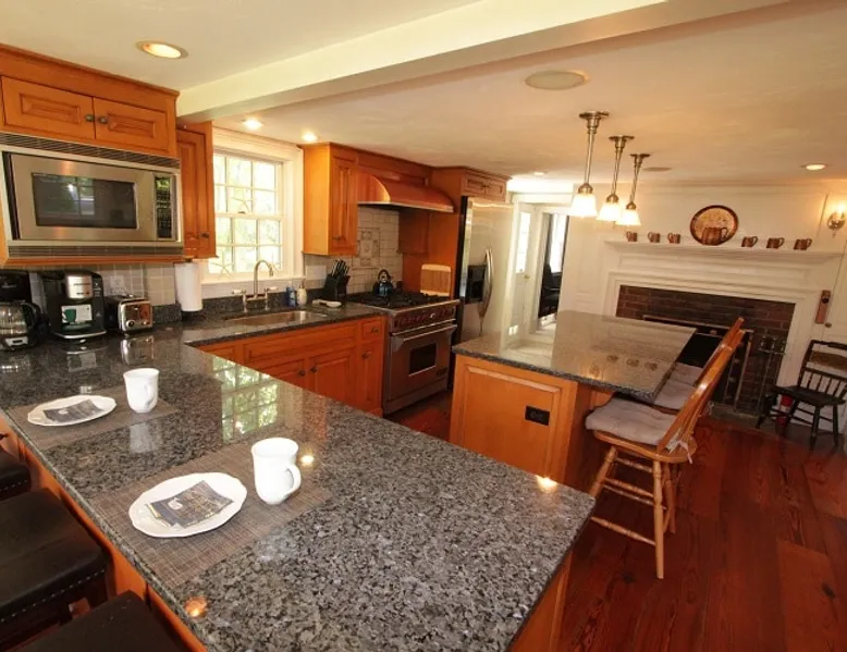 Large antique home on scenic Route 6A in Barnstable. Gorgeous landscape and updated interior make this the perfect family vacation! The space Welcome to the Ebenezer Hinckley House, a large antique home built in Circa 1690. Walk through the side entrance into a massive updated kitchen with center island, counter seating, granite counter tops and a 6 burner gourmet stove! Kitchen table over looks the beautiful Cape Cod landscape. Half bath off the kitchen. Two doors off the back of the house open to a large expansive deck. Walk into the main sitting room with oversized fireplace and baby grand piano. Two bedrooms are just around the corner, one with a Queen bed and one with 2 Twin Beds. You will find three additional bedrooms on the 2nd floor. All bedrooms feature a fireplace, but Sorry, NOT FOR USE! The master bedroom is large and has a Queen sizedbed, it's own fireplace (again for looks only) and a bathroom with large shower. There are 2 additional bedrooms on 2nd floor, 1 with Queen beds and one will a full sized bed. You will find another full bathroom for those bedrooms to share with tub and shower. This large renovated antique is the perfect spot for you and your family to enjoy all Cape Cod has to offer. 7 A/C Units - Kitchen, Sitting Room and all Bedrooms Bedroom 1 - First Floor Queen Bed Bedroom 2 - First Floor 2 Twins Bedroom 3 - 2nd floor Queen Bed Bedroom 4 - 2nd Floor Master Bedroom Queen Bed Bedroom 5 - 2nd Floor Full sized bed Other things to note Sheets, towels, and beach towels are included. Includes beach pass