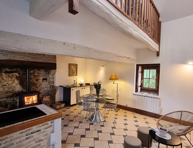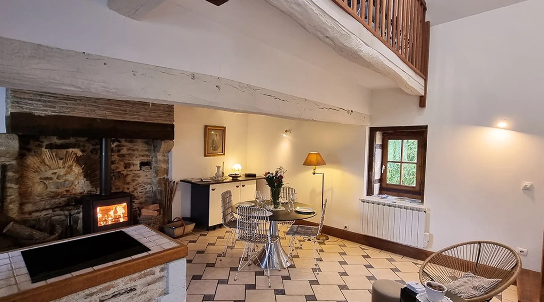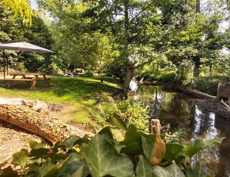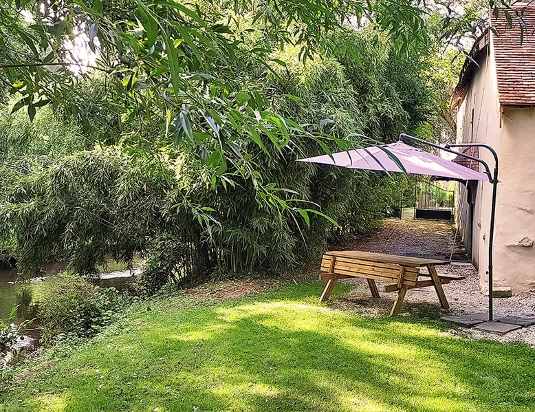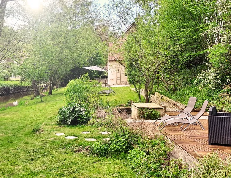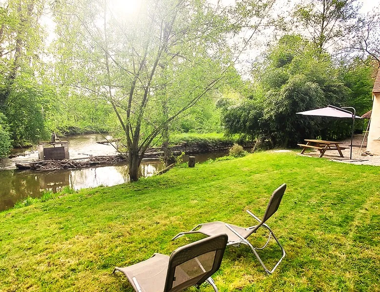 Located in NOHANT, less than 5 minutes from the Romanesque chapels & medieval castles but also less than 5 minutes from the amenities offered by the city of La CHATRE, the REPAIRE du MOULIN NEUF has the distinction of having its doorstep at the foot of the trail that George SAND & her famous friends took in search of rejuvenation on the banks of the river. Formerly an outbuilding of the mill, the 18th century Berry house, refurbished in the "21st century style", is bathed in a luminous green setting bordered by the millstream and the INDRE. The space A privileged access route to absolute tranquility, the typical Berry cottage offers a furniture and use setting that matches its remarkable environment. Heatable all year round to electricity and in autumn-winter with wood, the dwelling, with an area of 70 m2, extends over 3 levels. • the ground floor: with main entrance leading to the LIVING ROOM around the panoramic wood-burning stove – the equipped kitchen open to the living room(dining area + relaxation area) • mezzanine: with bedroom 1 (1 double bed) & bedroom 2 (2 adult beds) • upstairs: with the lounge area "Reading, HiFi & TV" (sofa click-clac, poufs) and the bathroom (toilet, sink, multijet shower cubicle, washing machine). In addition to a 2nd service entrance in the basement on the garden side, the accommodation also has a beautiful "storage & laundry" space (sink + dryer, ironing kit/2nd refrigerator-freezer). The dwelling leads directly to its outdoor amenities areas: the private parking and the spacious bucolic garden with "barbecue & picnic table under umbrella", terrace "relaxing sunbathing" & shaded terrace "alfresco living room". Aligned with the spirit of ambient serenity uncovered by the cottage, the accommodation service of the LAIR of the NEW MILL includes: • reasonable and reasonable power consumption (up to 12kW/day may 15-September 30 September, up to 30kWday from 1st october to May 14 - the overrun will be paid on site to the hosts) • from October 1 to May 15, additional heating with access to the use of the wood stove and supply of firewood (fire starter, "small firewood" and 8 logs 50 cm/day) • Internet access via ETHERNET & WiFi • provision of KITCHEN LINENS, BED & BATH linens for 4 people, • loan and assembly on request no later than the day before the arrival of a bed & high chair for toddlers Guest access Exclusive access to the entire house, garden, private parking Other things to note - The garden is not fenced on the "head race & river" side. Adults should closely supervise children who approach the water.