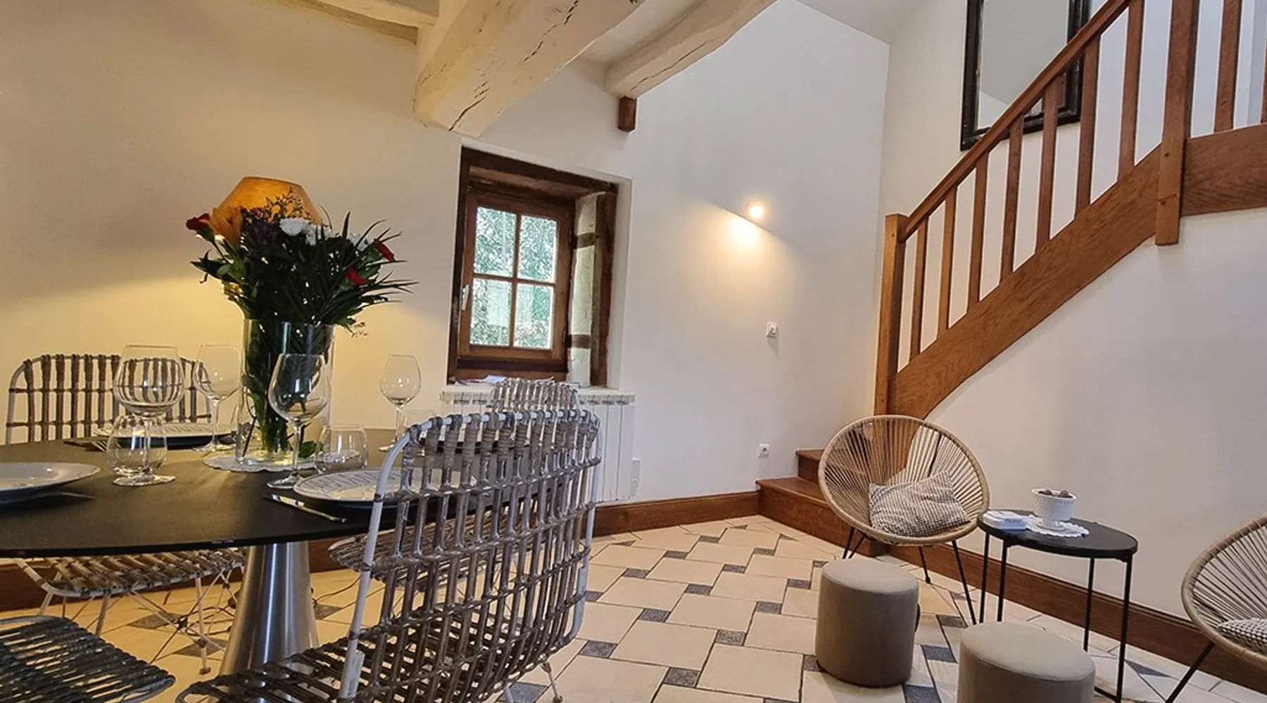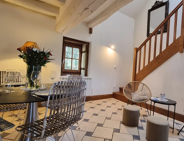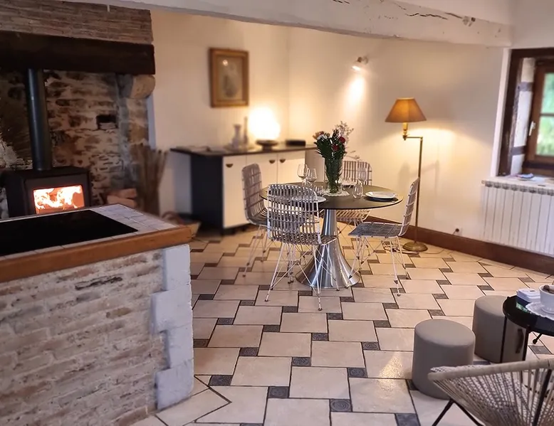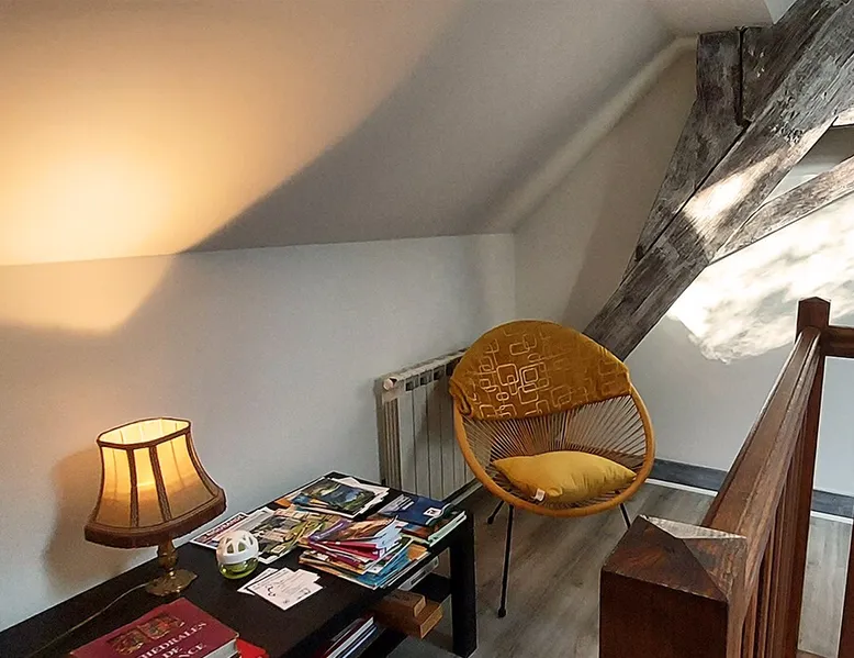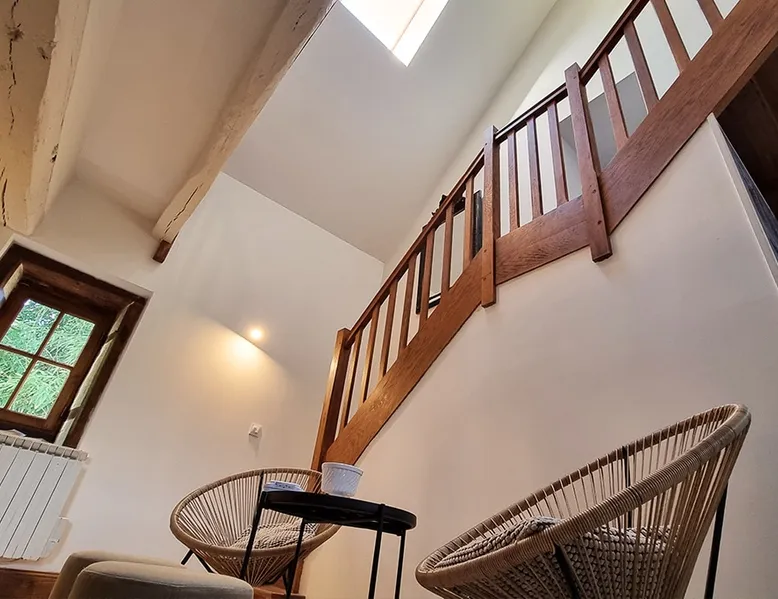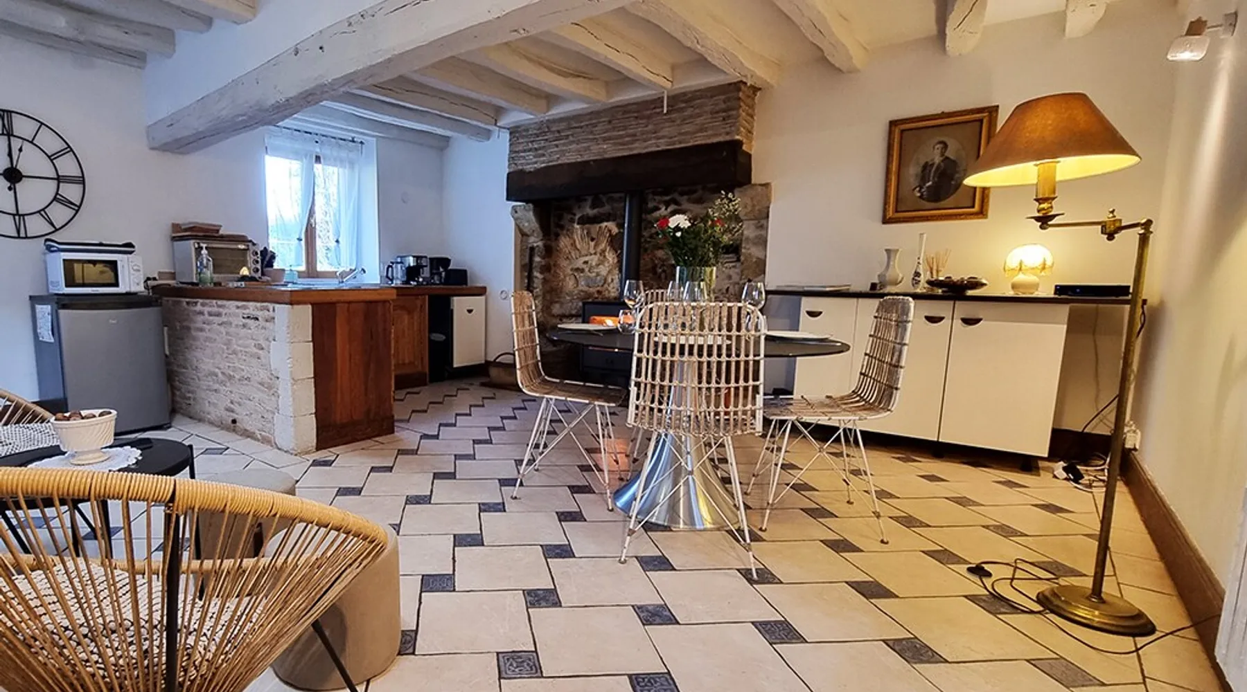 Located in NOHANT, less than 5 minutes from the Romanesque chapels & medieval castles but also less than 5 minutes from the amenities offered by the city of La CHATRE, the REPAIRE du MOULIN NEUF has the distinction of having its doorstep at the foot of the trail that George SAND & her famous friends took in search of rejuvenation on the banks of the river. Formerly an outbuilding of the mill, the 18th century Berry house, refurbished in the "21st century style", is bathed in a luminous green setting bordered by the millstream and the INDRE. The space A privileged access route to absolute tranquility, the typical Berry cottage offers a furniture and use setting that matches its remarkable environment. Heatable all year round to electricity and in autumn-winter with wood, the dwelling, with an area of 70 m2, extends over 3 levels. • the ground floor: with main entrance leading to the LIVING ROOM around the panoramic wood-burning stove – the equipped kitchen open to the living room(dining area + relaxation area) • mezzanine: with bedroom 1 (1 double bed) & bedroom 2 (2 adult beds) • upstairs: with the lounge area "Reading, HiFi & TV" (sofa click-clac, poufs) and the bathroom (toilet, sink, multijet shower cubicle, washing machine). In addition to a 2nd service entrance in the basement on the garden side, the accommodation also has a beautiful "storage & laundry" space (sink + dryer, ironing kit/2nd refrigerator-freezer). The dwelling leads directly to its outdoor amenities areas: the private parking and the spacious bucolic garden with "barbecue & picnic table under umbrella", terrace "relaxing sunbathing" & shaded terrace "alfresco living room". Aligned with the spirit of ambient serenity uncovered by the cottage, the accommodation service of the LAIR of the NEW MILL includes: • reasonable and reasonable power consumption (up to 12kW/day may 15-September 30 September, up to 30kWday from 1st october to May 14 - the overrun will be paid on site to the hosts) • from October 1 to May 15, additional heating with access to the use of the wood stove and supply of firewood (fire starter, "small firewood" and 8 logs 50 cm/day) • Internet access via ETHERNET & WiFi • provision of KITCHEN LINENS, BED & BATH linens for 4 people, • loan and assembly on request no later than the day before the arrival of a bed & high chair for toddlers Guest access Exclusive access to the entire house, garden, private parking Other things to note - The garden is not fenced on the "head race & river" side. Adults should closely supervise children who approach the water.