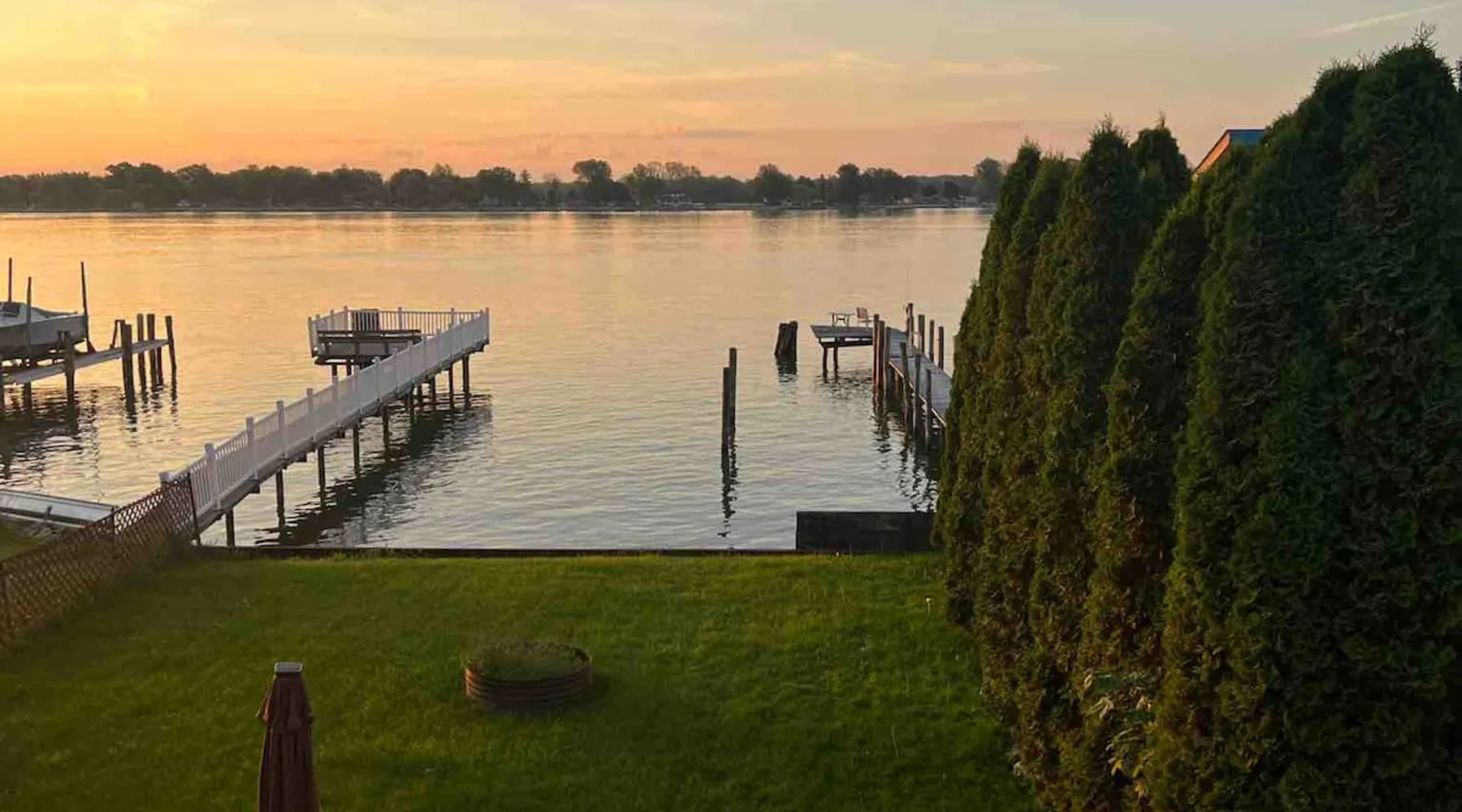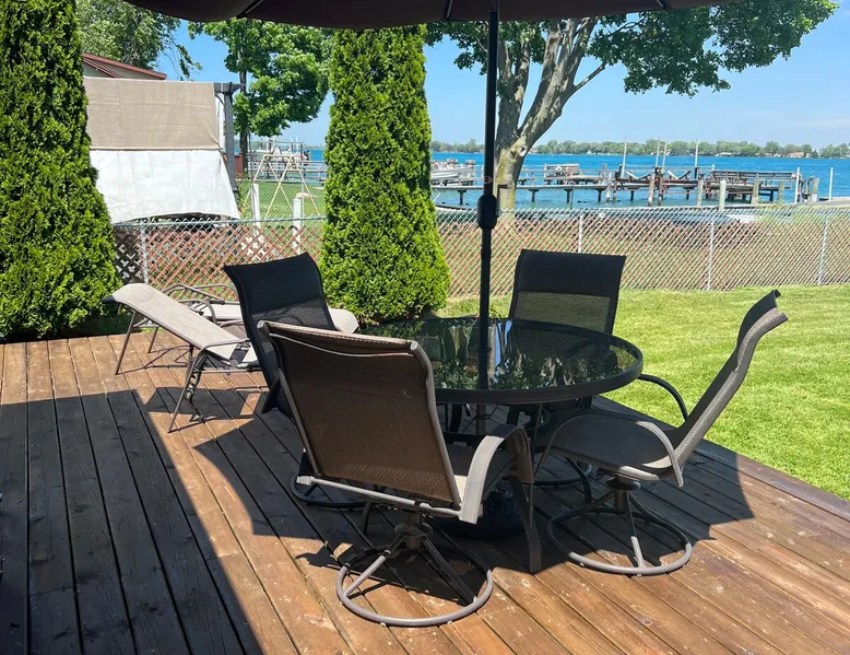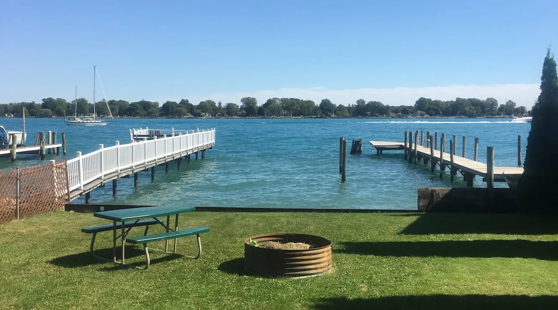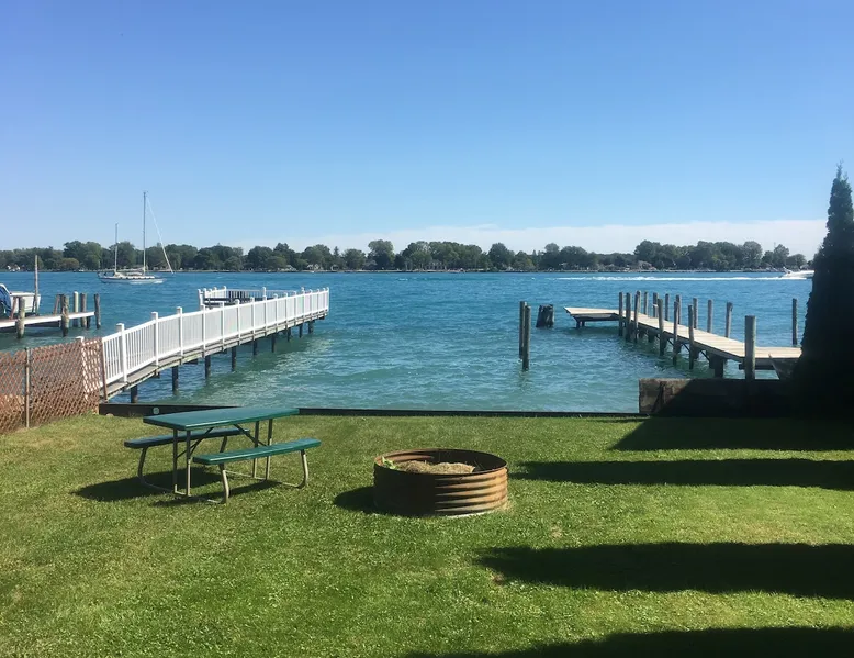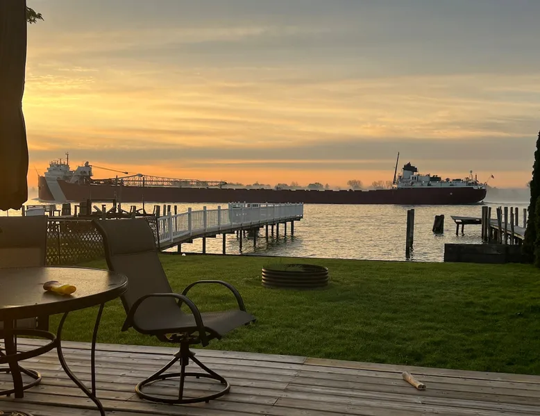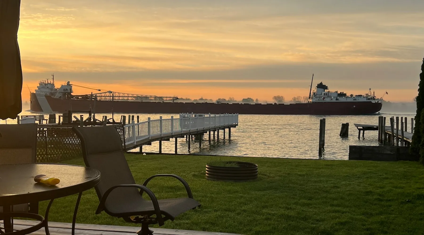 Open Floor plan with Island kitchen, Large Living Room with 2-8 ft sliding Doors for a Great view of the River and Freighters. Full bath downstairs, 2 Lg Bedrooms upstairs with Master Bath. 2 Queen Beds in 1 Room and King size bed in the Master bedroom, With a Great view of Canada. 1500 sq ft, 26x12 ft Deck for enjoying & relaxing outside. Boat Slip available for Docking and Plenty of Parking space for many vehicles. Great for Fishermen because we have boat slips , The space King Bed in Master Bedroom 2 Queen beds in 2nd Bedroom Full Bathroom Downstairs Full Bathroom Upstairs Washer & Dryer WiFi Air Conditioning Guest access House Yard Boat Slip Parking