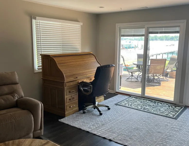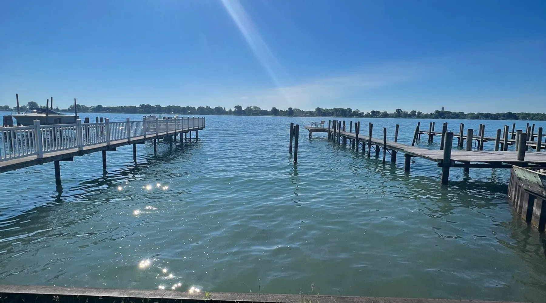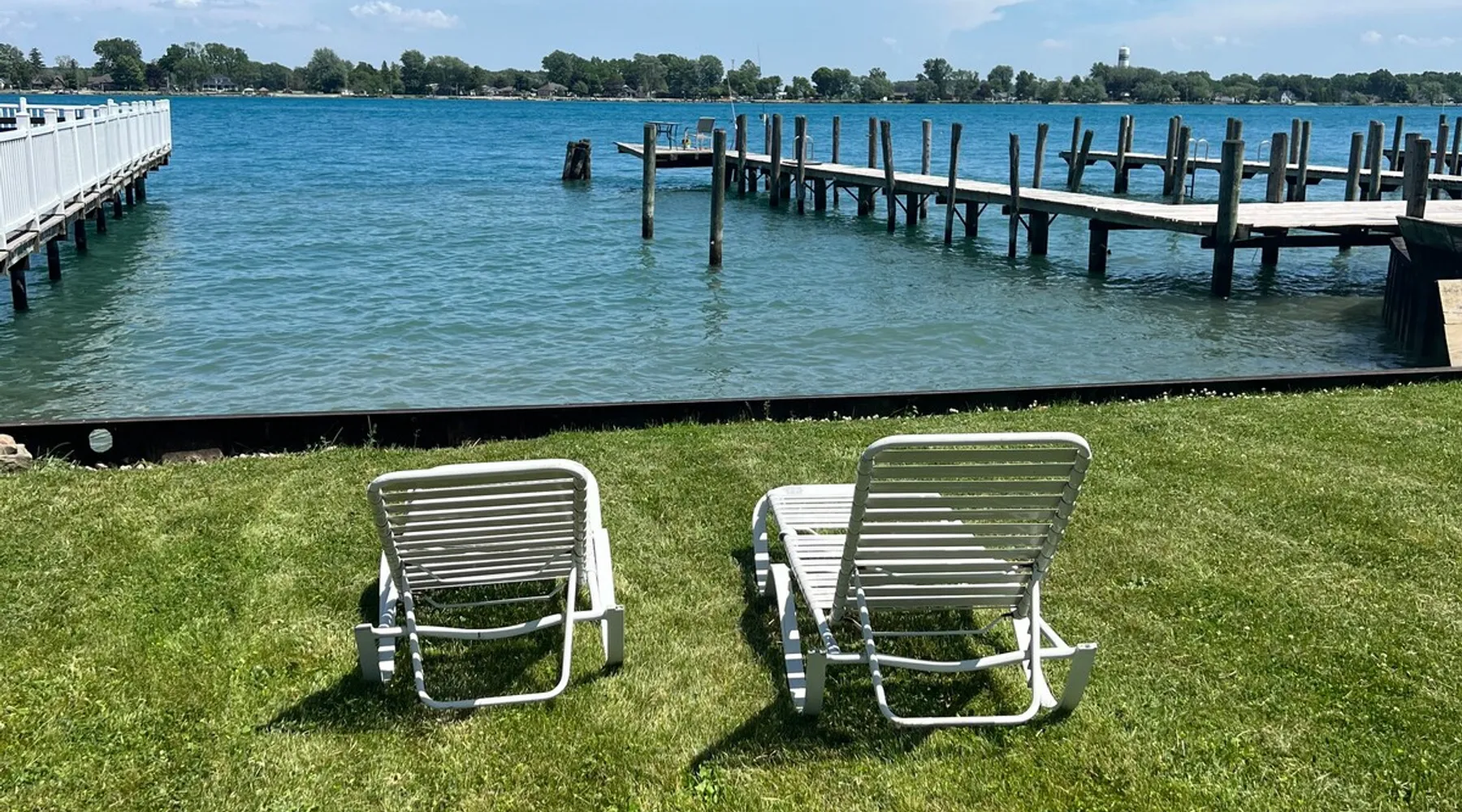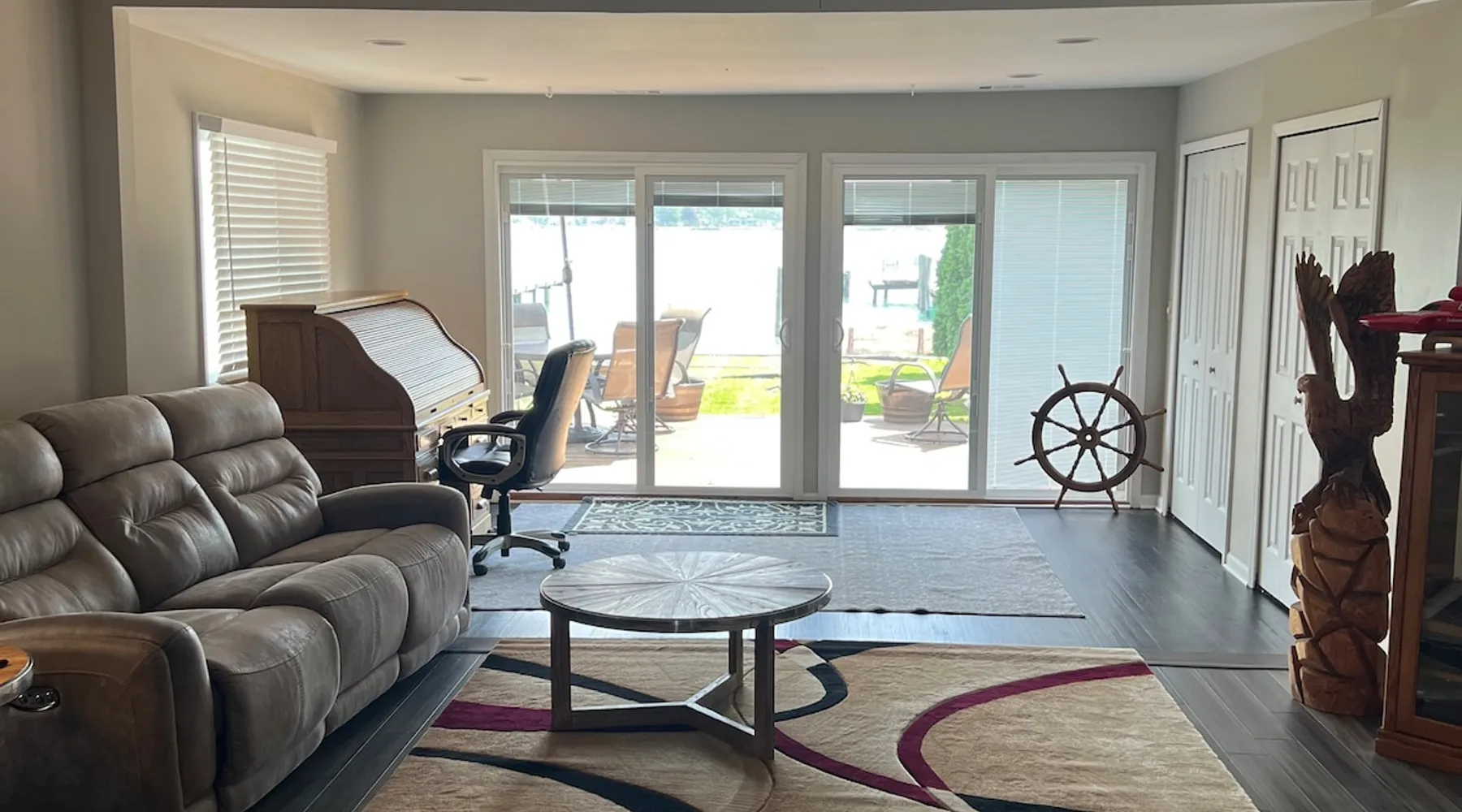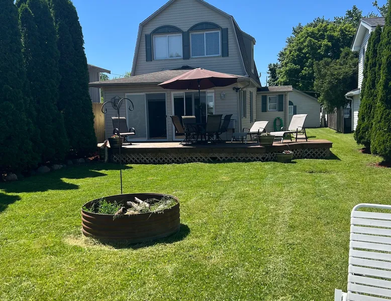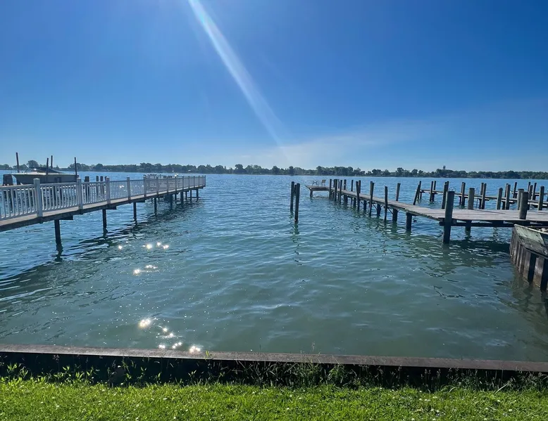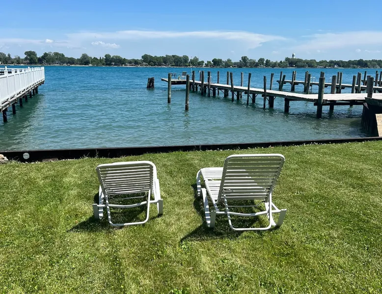 Open Floor plan with Island kitchen, Large Living Room with 2-8 ft sliding Doors for a Great view of the River and Freighters. Full bath downstairs, 2 Lg Bedrooms upstairs with Master Bath. 2 Queen Beds in 1 Room and King size bed in the Master bedroom, With a Great view of Canada. 1500 sq ft, 26x12 ft Deck for enjoying & relaxing outside. Boat Slip available for Docking and Plenty of Parking space for many vehicles. Great for Fishermen because we have boat slips , The space King Bed in Master Bedroom 2 Queen beds in 2nd Bedroom Full Bathroom Downstairs Full Bathroom Upstairs Washer & Dryer WiFi Air Conditioning Guest access House Yard Boat Slip Parking