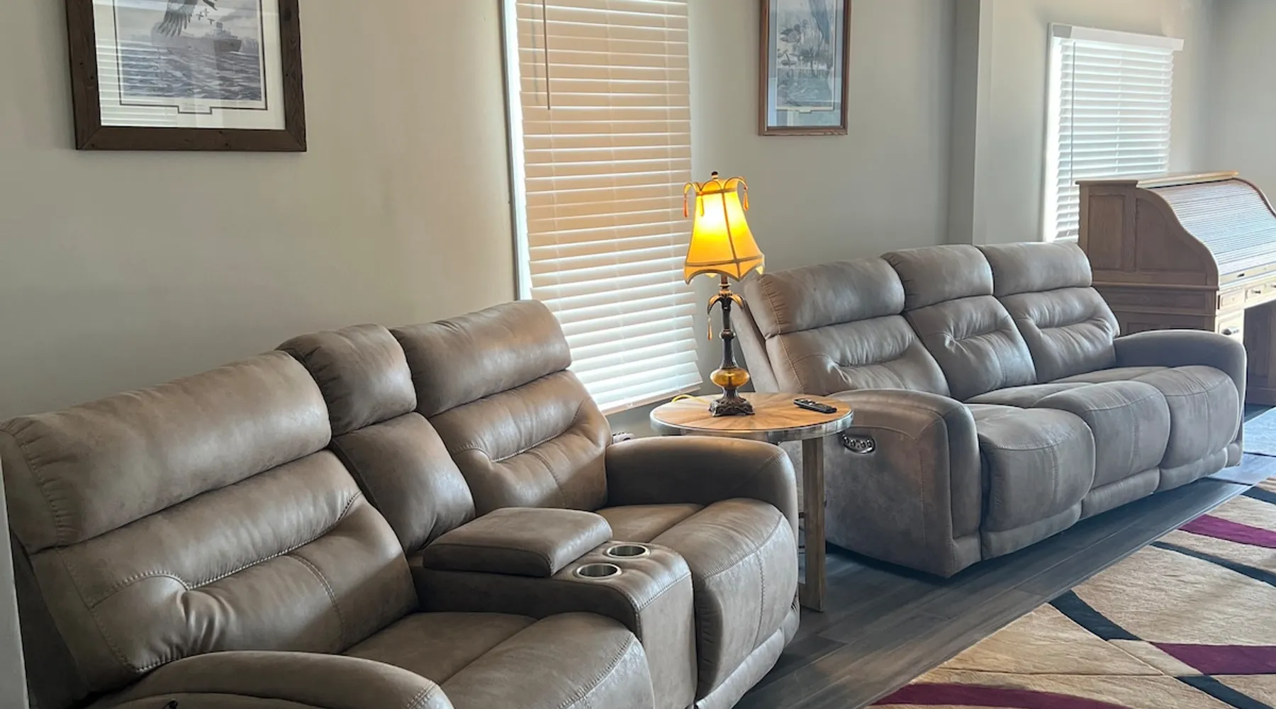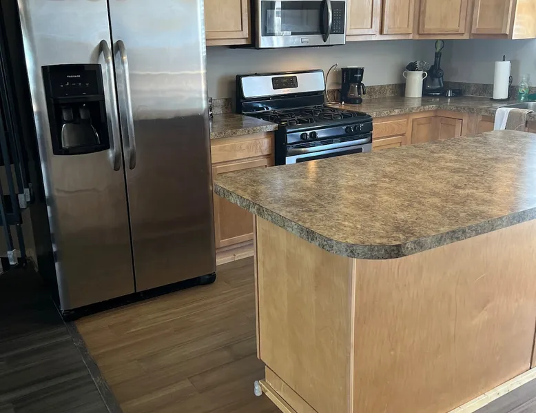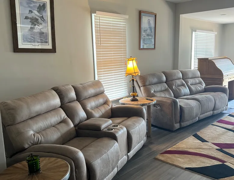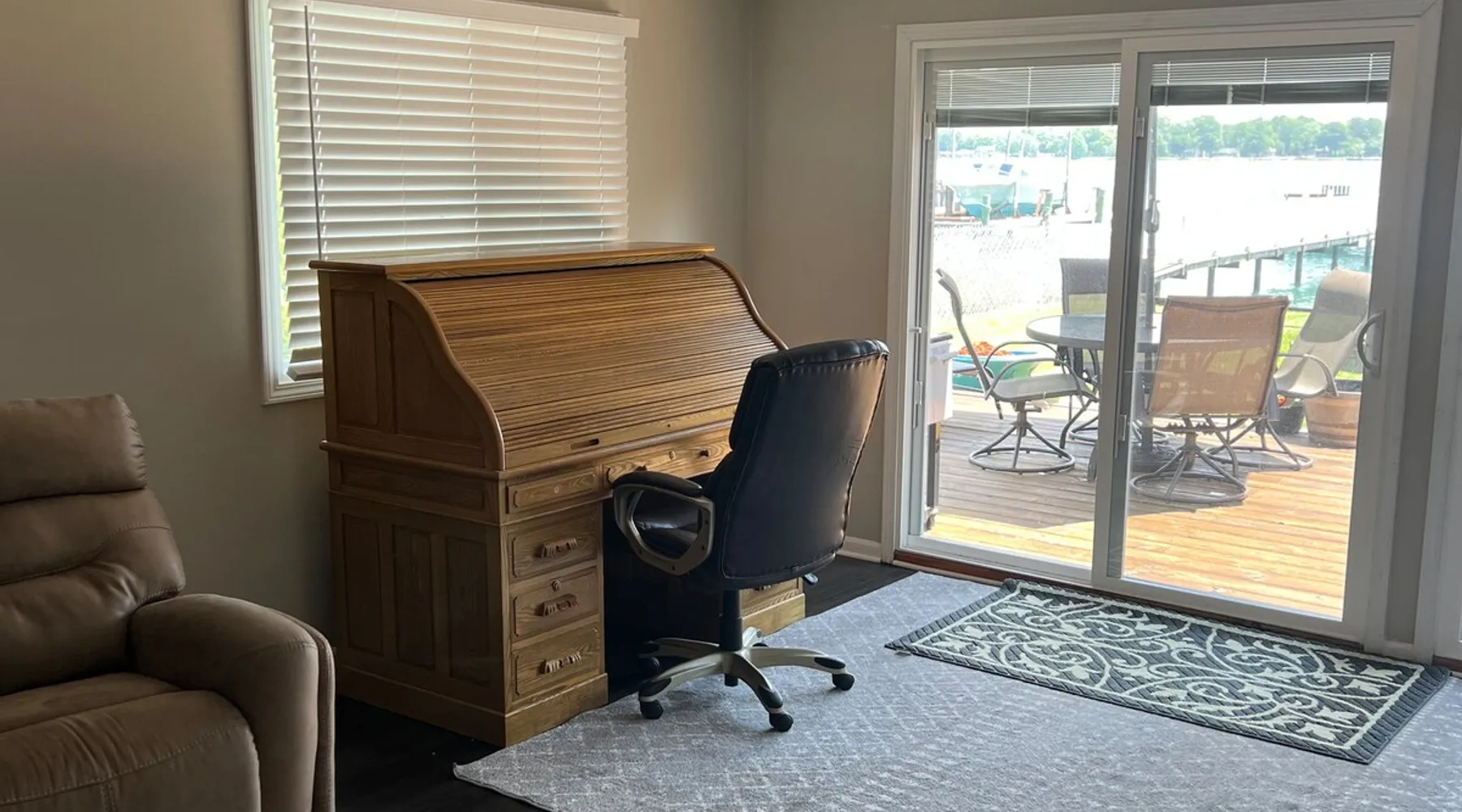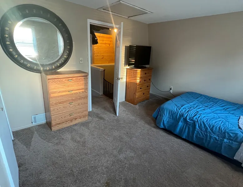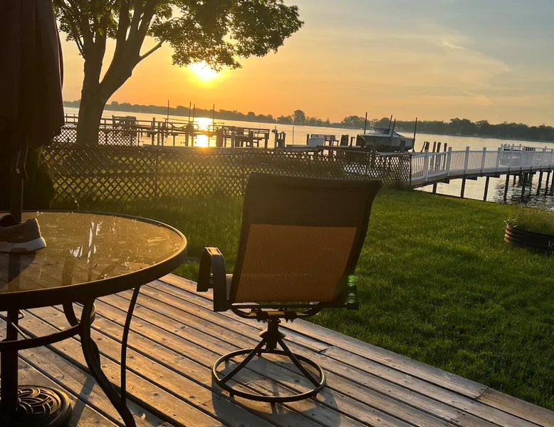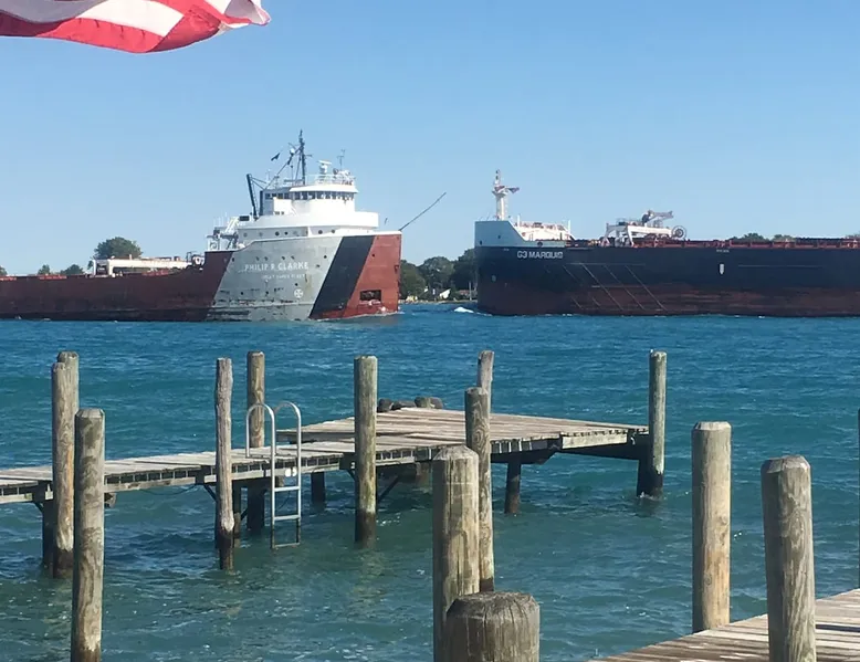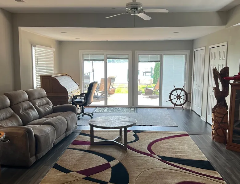 Open Floor plan with Island kitchen, Large Living Room with 2-8 ft sliding Doors for a Great view of the River and Freighters. Full bath downstairs, 2 Lg Bedrooms upstairs with Master Bath. 2 Queen Beds in 1 Room and King size bed in the Master bedroom, With a Great view of Canada. 1500 sq ft, 26x12 ft Deck for enjoying & relaxing outside. Boat Slip available for Docking and Plenty of Parking space for many vehicles. Great for Fishermen because we have boat slips , The space King Bed in Master Bedroom 2 Queen beds in 2nd Bedroom Full Bathroom Downstairs Full Bathroom Upstairs Washer & Dryer WiFi Air Conditioning Guest access House Yard Boat Slip Parking