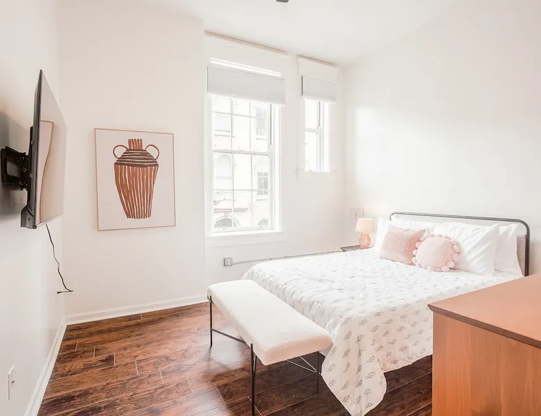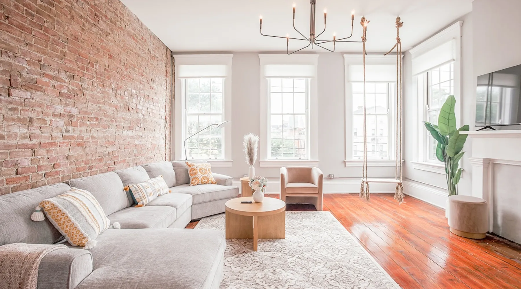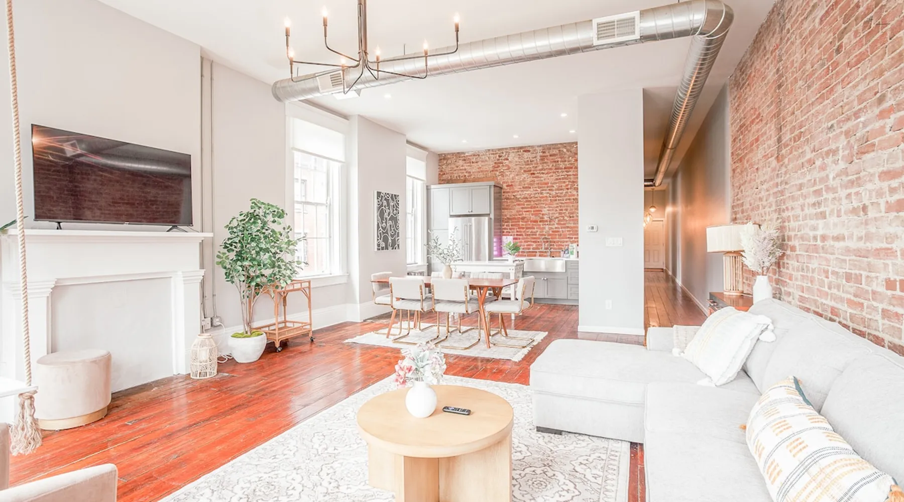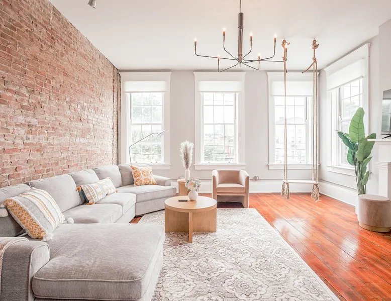 Light & Airy Downtown Condo Amazing city view 2 bedroom downtown condo with 2 full bath! This charming condo has original hardwood floors, exposed brick and all the modern updated amenities you love. Walking distance to restaurants, bars, Aronoff Center, OTR, downtown Cincinnati, Great American Ballpark, and stadiums. 10 min to UC Children's Hospital Free street parking The space This condo is on the 2nd floor so you will have to walk up 1 flight of stairs. The building still has original windows so please be careful with opening windows and you may hear noises from the street in the living room. Note: swing is decorative only and has a weight limit of 200 lbs. Condo Layout: The entire living area is on 1 floor. Primary bedroom has a KING memory foam mattress with connected bathroom + bathtub! There is a work desk if you need to work from the condo (with very fast WiFi). Second bedroom has a comfortable Queen memory foam mattress. We provide 100% cotton sheets and towels. The second bedroom also has a 50" Smart TV. The kitchen and bathrooms are fully updated with new appliances and cabinets. Washer and dryer are available in the master bedroom. We also provide Tide Pods for any emergency laundry needs that come up! Amenities: We use cotton or linen blend duvets and 100% cotton sheets on all the beds. bathroom - Charmin, Pantene/Head & Shoulders shampoo and Olay/Dove body wash kitchen - Dawn, Bounty, Cascade, & Keurig Starbucks k-cups all sheets washed in Tide Fast 500Mbps Internet & 55" Smart TV in the living room Additional add ons by request only with additional fee: -fridge stocked with your favorite items before arriving -pack n play, high chair, or other baby items ask us about anything else you would like, and we will try to accommodate as much as possible Guest access You will have access to the entire condo. Parking is along the street. Other things to note Note: swing is decorative only and has a weight limit of 200 lbs. Registration details 166352