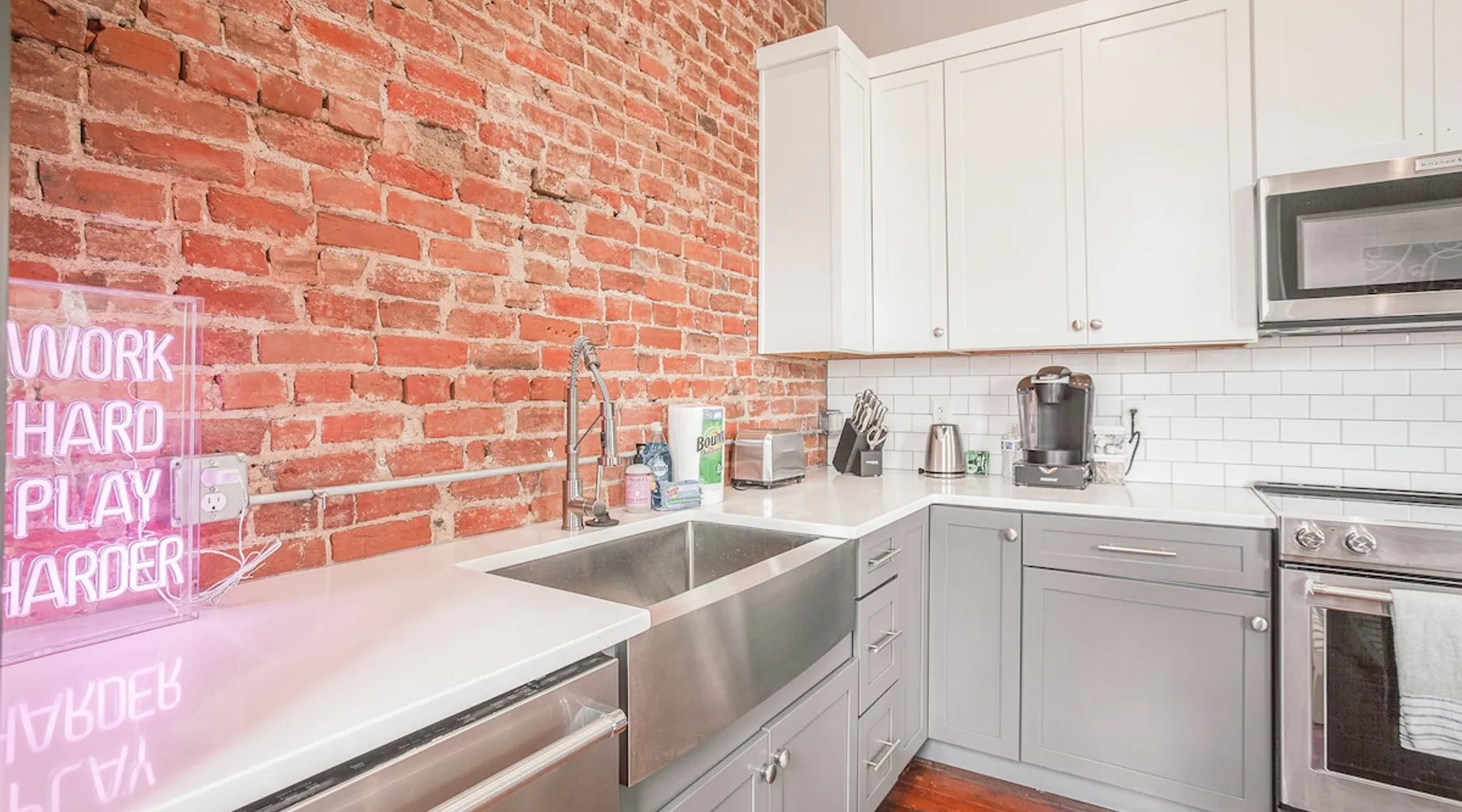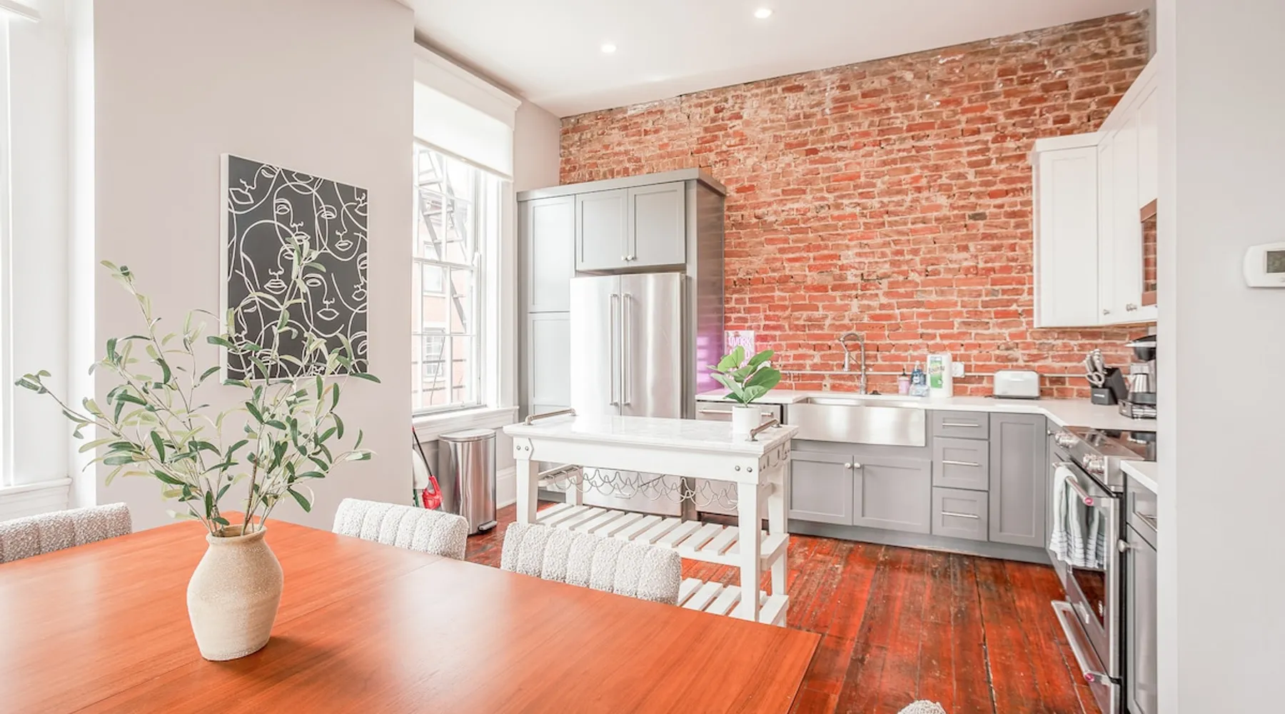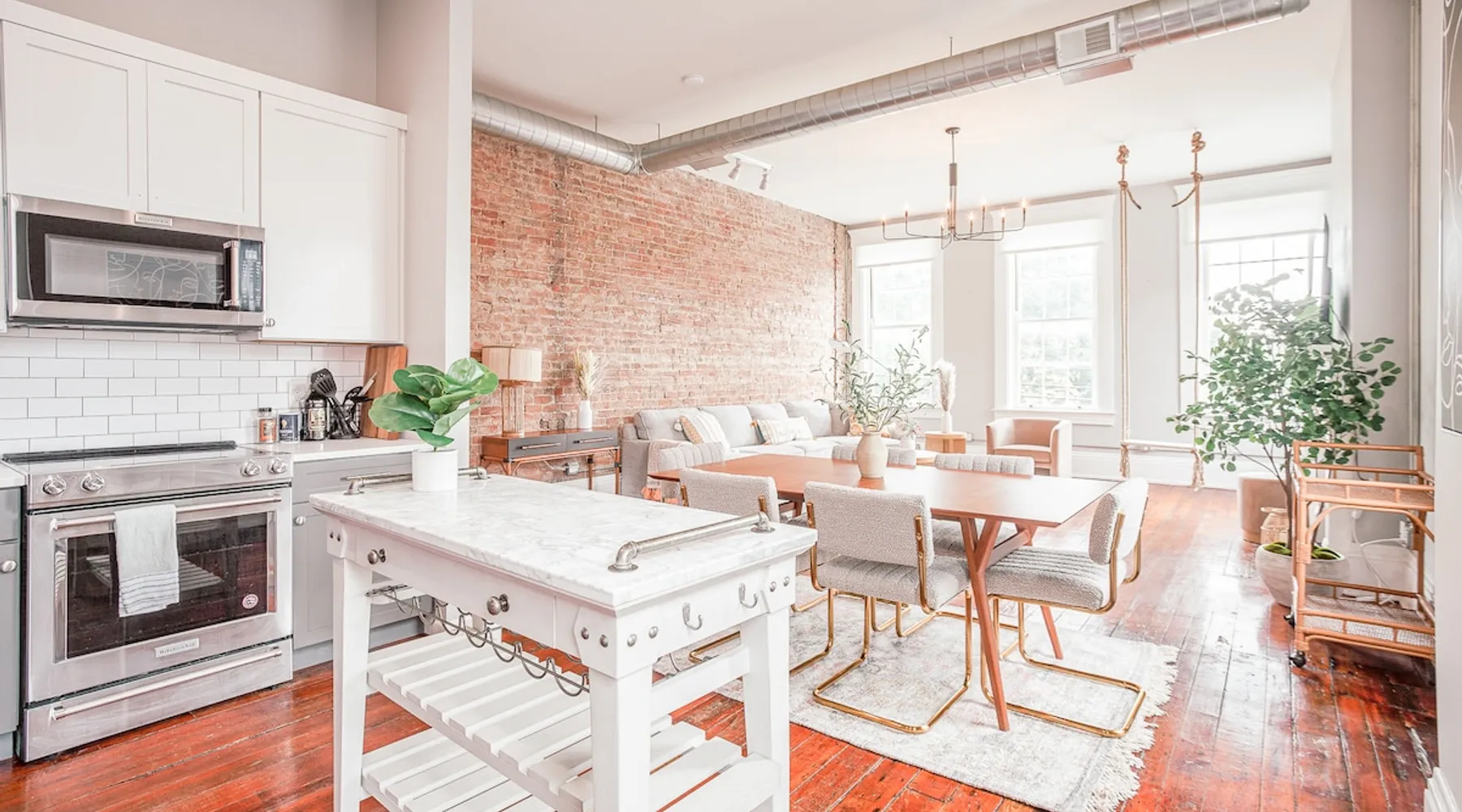 Light & Airy Downtown Condo Amazing city view 2 bedroom downtown condo with 2 full bath! This charming condo has original hardwood floors, exposed brick and all the modern updated amenities you love. Walking distance to restaurants, bars, Aronoff Center, OTR, downtown Cincinnati, Great American Ballpark, and stadiums. 10 min to UC Children's Hospital Free street parking The space This condo is on the 2nd floor so you will have to walk up 1 flight of stairs. The building still has original windows so please be careful with opening windows and you may hear noises from the street in the living room. Note: swing is decorative only and has a weight limit of 200 lbs. Condo Layout: The entire living area is on 1 floor. Primary bedroom has a KING memory foam mattress with connected bathroom + bathtub! There is a work desk if you need to work from the condo (with very fast WiFi). Second bedroom has a comfortable Queen memory foam mattress. We provide 100% cotton sheets and towels. The second bedroom also has a 50" Smart TV. The kitchen and bathrooms are fully updated with new appliances and cabinets. Washer and dryer are available in the master bedroom. We also provide Tide Pods for any emergency laundry needs that come up! Amenities: We use cotton or linen blend duvets and 100% cotton sheets on all the beds. bathroom - Charmin, Pantene/Head & Shoulders shampoo and Olay/Dove body wash kitchen - Dawn, Bounty, Cascade, & Keurig Starbucks k-cups all sheets washed in Tide Fast 500Mbps Internet & 55" Smart TV in the living room Additional add ons by request only with additional fee: -fridge stocked with your favorite items before arriving -pack n play, high chair, or other baby items ask us about anything else you would like, and we will try to accommodate as much as possible Guest access You will have access to the entire condo. Parking is along the street. Other things to note Note: swing is decorative only and has a weight limit of 200 lbs. Registration details 166352