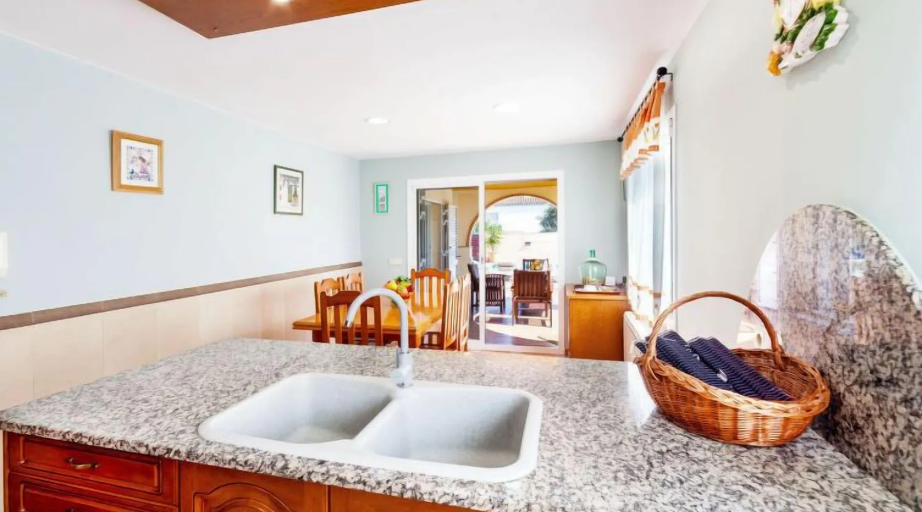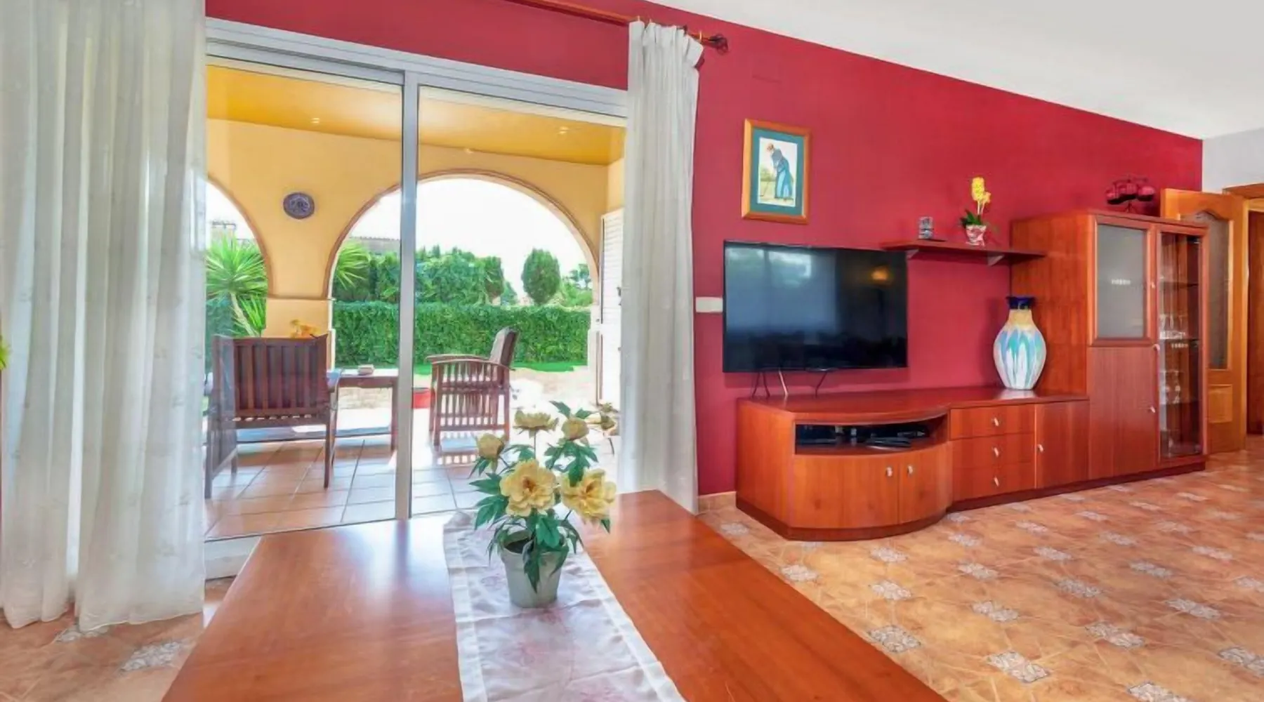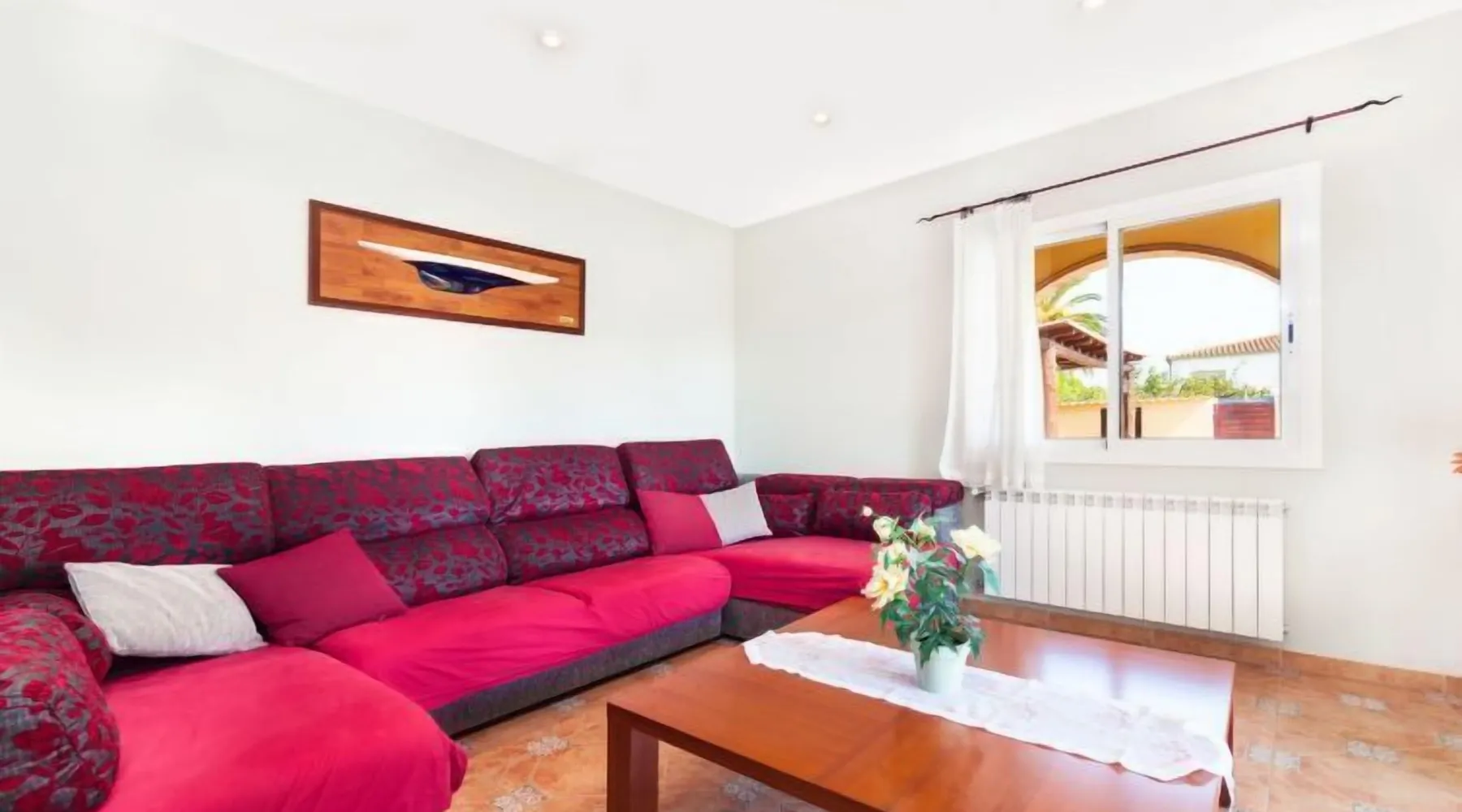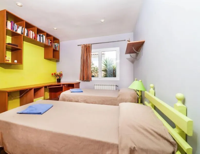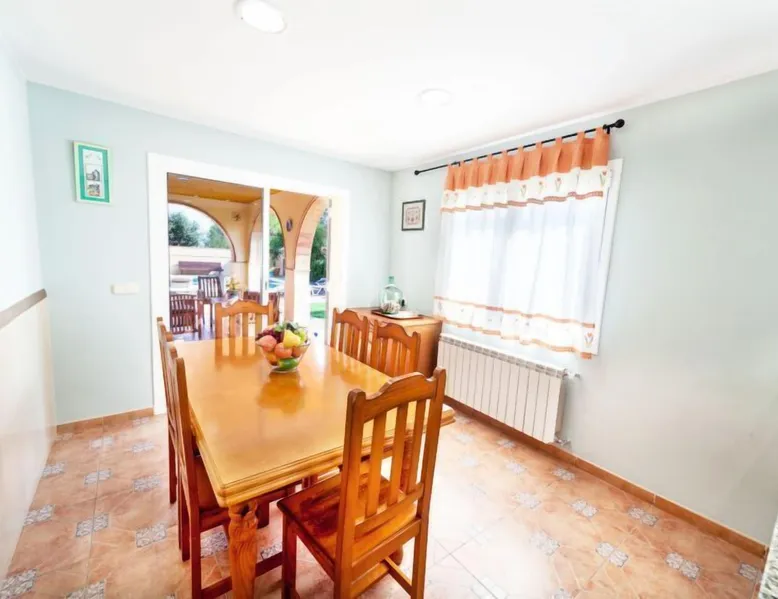 Puig ses forques 1 km from Sant Antoni de Calonge: Child friendly, comfortable house. In the resort 1 km from the centre of Sant Antoni de Calonge, in a sunny position, traffic calmed area, 1 km from the sea. Private: garden (fenced) with lawn and trees, swimming pool angular (8 x 4 m, depth 110 - 180 cm, seasonal availability: 01.May. - 31.Oct.) with internal staircase. Outdoor shower, pergola, garden furniture, barbecue, parking on the premises. Supermarket 1 km, restaurant 1 km, bar 1 km, bus stop 500 m, sandy beach "Sant Antoni de Calonge" 1 km. Sports harbour 4 km, golf course (18 hole) 6 km, riding stable 12 km. Nearby attractions: Water park Aquadiver 5 km. Please note: car recommended. Suitable for families. The owner does not accept any youth groups. "Mari", 5-room house 270 m2. Practical and cosy furnishings: living/dining room with satellite TV. Exit to the patio, to the swimming pool. 1 room with 2 beds (90 cm, length 190 cm). Large kitchen (oven, dishwasher, 4 ceramic glass hob hotplates, toaster, kettle, microwave) with dining table. Exit to the patio. Bath/shower/bidet/WC, double hand-basin. Oil heating. Upper floor: 1 room with 1 double bed (2 x 105 cm, length 200 cm). Exit to the terrace. 2 rooms, each room with 1 french bed (135 cm, length 190 cm). Shower/bidet/WC. Small terrace 6 m2, patio. Terrace furniture, barbecue, deck chairs (6), covered balcony. Facilities: washing machine, baby cot for up to 2 year olds. Internet (WiFi, free). Please note: suitable for families. Non-smoking house. HUTG-011771 Included in price: ERV cancellation insurance Final cleaning (Basic cleaning is always carried out by the guest) Laundry (initial supply of bed linen and towels) Interhome plants 100'000 m2 of flowering fields to save the bees Wireless internet access (WIFI) incl. in the price but needs to be booked beforehand: Cot (up to 2 years) Highchair #ES9458.422.1