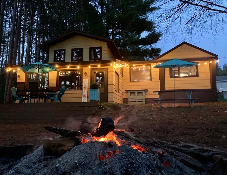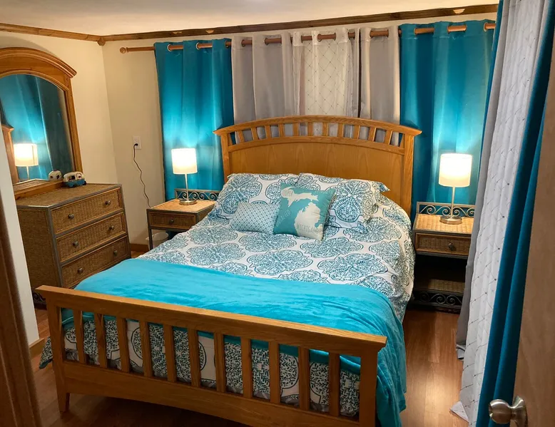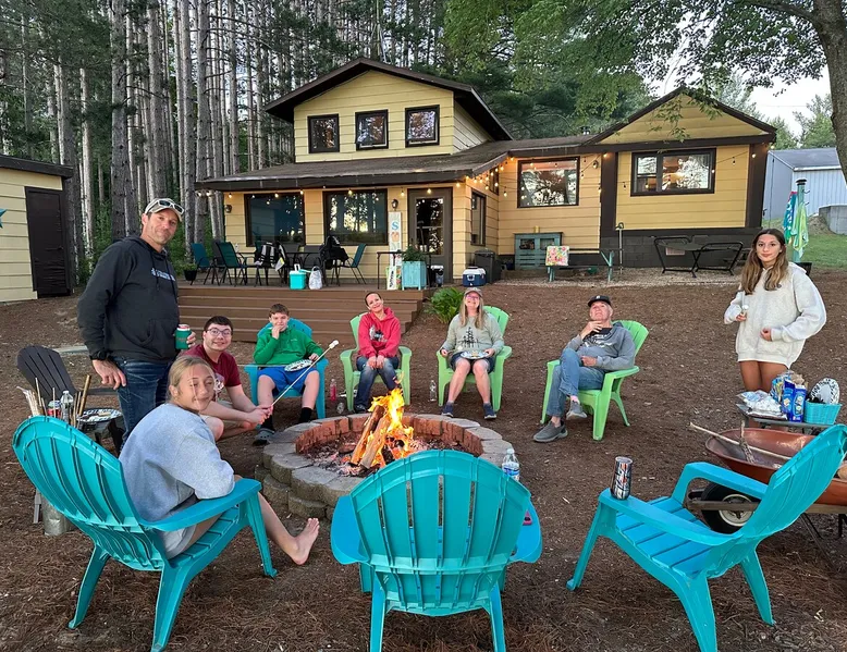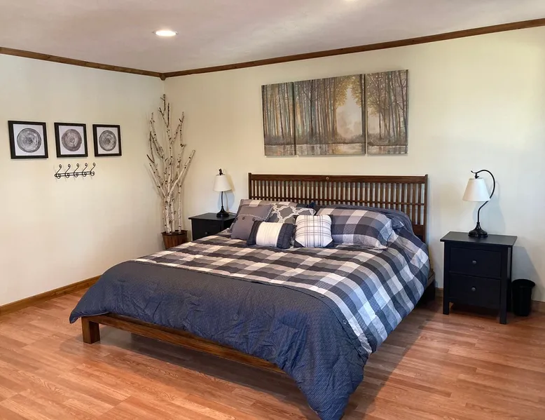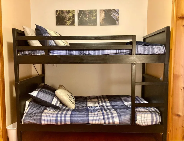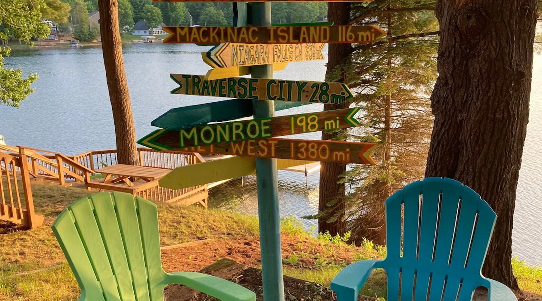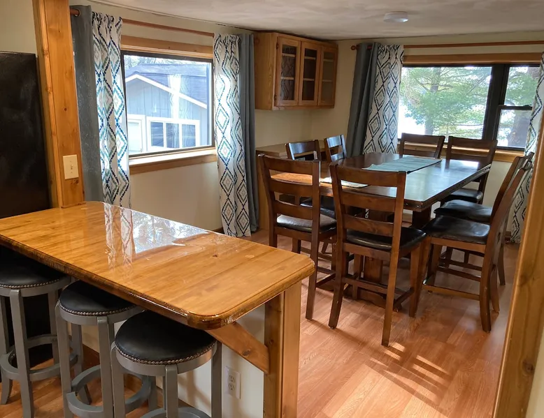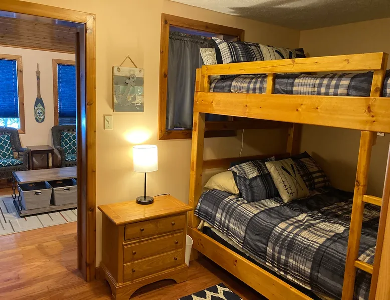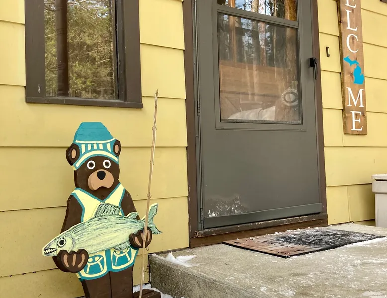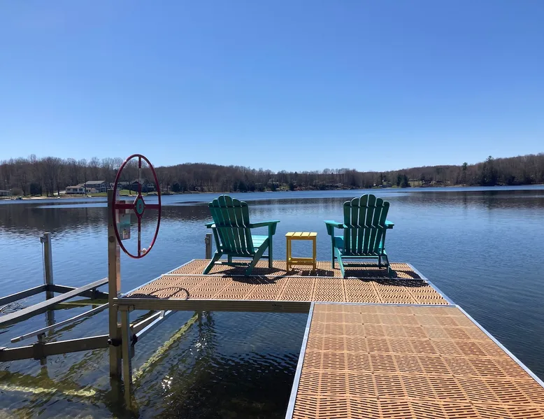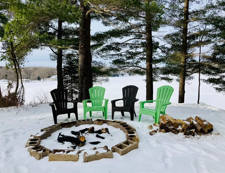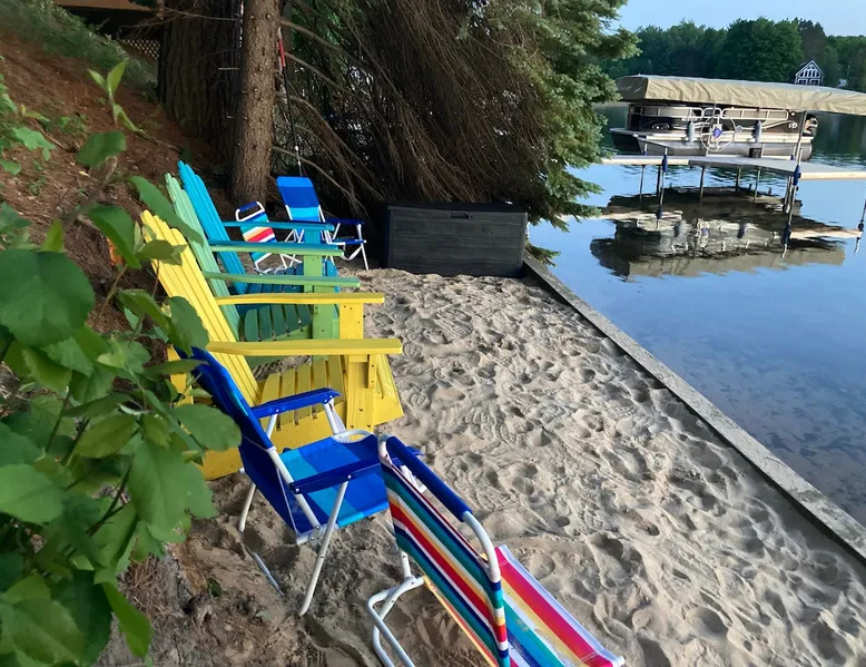 Calling all nature lovers! Experience the magic of all 4 seasons at this lakefront cabin situated on crystal clear "all-sports" Lake Meauwataka (10 mi N of Cadillac)! Open & spacious, this family friendly cabin is ideal for a multi-family get away. Unplug & relax amongst the majestic serene White Pines of the Manistee National Forest. An ALL SEASON destination for outdoor enthusiasts. Skiing, snowmobiling, snowshoeing, swimming, fishing, hunting, boating, scavenger hunts & more await! The space *25 Years old PREFERRED to book* *NOT A PARTY HOUSE* *NO PETS or PET REQUESTS* This countryside escape has a secluded and serene "Up North" feel, yet only a 10-15 min drive to shopping & restaurants in the City of Cadillac and only 1.5 miles away from the General Store which has almost everything you could need including delicious pizza, ice cream, alcohol & daily meal deals. Please Note: Our Cabin is located off a dirt road so if this doesn’t bother you keep reading….The property is surrounded by White Pines and perched upon 65 feet of lakefront sandy bottom access. Across the lake sits a township park, complete with a campground, hiking trails and sand dunes. There is also a 9-hole "volunteer-created" disc golf course. Location is well suited as a launch to many popular Michigan tourist destinations including Traverse City/Interlochen, Frankfort, Sleeping Bear Dunes National Lakeshore, Big Manistee River & the Ski/ Golf Resorts of Caberfae Peaks and Crystal Mountain. Hunters may inquire about local opportunities. This is a "Family-Friendly" Cabin. It is not high-end; however, it is lovingly cared for by the owners who use it often and take great pride in making it a fun and cozy place to make memories. It is 2000 square feet and features 2 FULL bathrooms. Sleeping: Sleeping Quarters include a Master Bedroom with gorgeous lakefront views (King & Single Bed Loft). The second bedroom (Queen) is tucked away and allows privacy and a bathroom nearby. The third bedroom (Bunkhouse) is the perfect spot to send the kids. Located on the lower level with it's own living area, this sleeping area features two sets of bunk beds (Full/Full & Twin/Twin). There are also sleeper sofas (great room/ lower living) twin futon in the laundry room, foldaway twin cot and pack & play. The open floor plan on the main level allows for lakefront views and interaction amongst guests in the kitchen, dining and great room areas. The great room features a wood burning stove, a large LED wall mounted Fire Feature & Smart TV. Wifi/TV: High speed internet for remote work. Smart TV with streaming options however you will need to use your own subscriptions for certain applications enabled through guest mode on the Roku TV. The TV also gets approximately 16 channels via antenna and there is a DVD player with many movie options to choose from. Many board games & crafty accessories are provided. Workspace: Desk with lake views in Master Bedroom. Kitchen: Our kitchen is fully equipped with all the appliances and tableware for your stay. There is a common pantry and spice basket. You are welcome to use any staples in the cabinets or condiments in the refrigerator if they are available, but we can't guarantee anything will be there for certain. It all depends on what people use and what people leave. Laundry Room: Washer/Dryer. Linens/Towels provided. Garage/Basement: Owner's private storage areas and not included in the rental. Shed: Open & available to use. Here you will find outdoor games, disc golf sets, campfire sticks, fishing poles etc.. Optional: Kids Clubhouse located above the garage. Inquire for Details. Heating/Cooling: The house has A/C in the master bedroom and Queen Bedroom. Tree cover, lake breezes and fans keep the rest of the house cool in the summer. The house has two furnaces, a wood burning stove and a propane stove. Backyard Amenities: Firepit, Dining Area, Pedal Boat, Kayak's (x3 Adult, x3 Youth), SUP's (x2), Tetherball, Corn Hole, fishing poles etc.. Seasonal Notes: The dock is removed Nov-April. Please inquire if booking during a transition period. Life Jackets Provided. Snow Removal: Removal service is triggered after an event causing more than 4 " accumulation since last removal. There will be occasions where there may be a few inches of snow on the driveway and walkway. A snow shovel and rock salt is provided. Please Note: There is an additional charge of $10 per night/Guest >6 guests to account for extra cleaning/laundry/septic charges. You will be communicating directly with the Property Owner and not a management company. Other things to note Pets are prohibited. Any evidence of pets will result in extra fees and potential rental termination. One exterior security camera monitors the front door.
