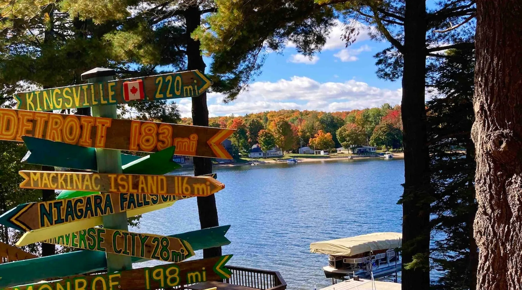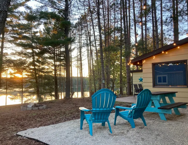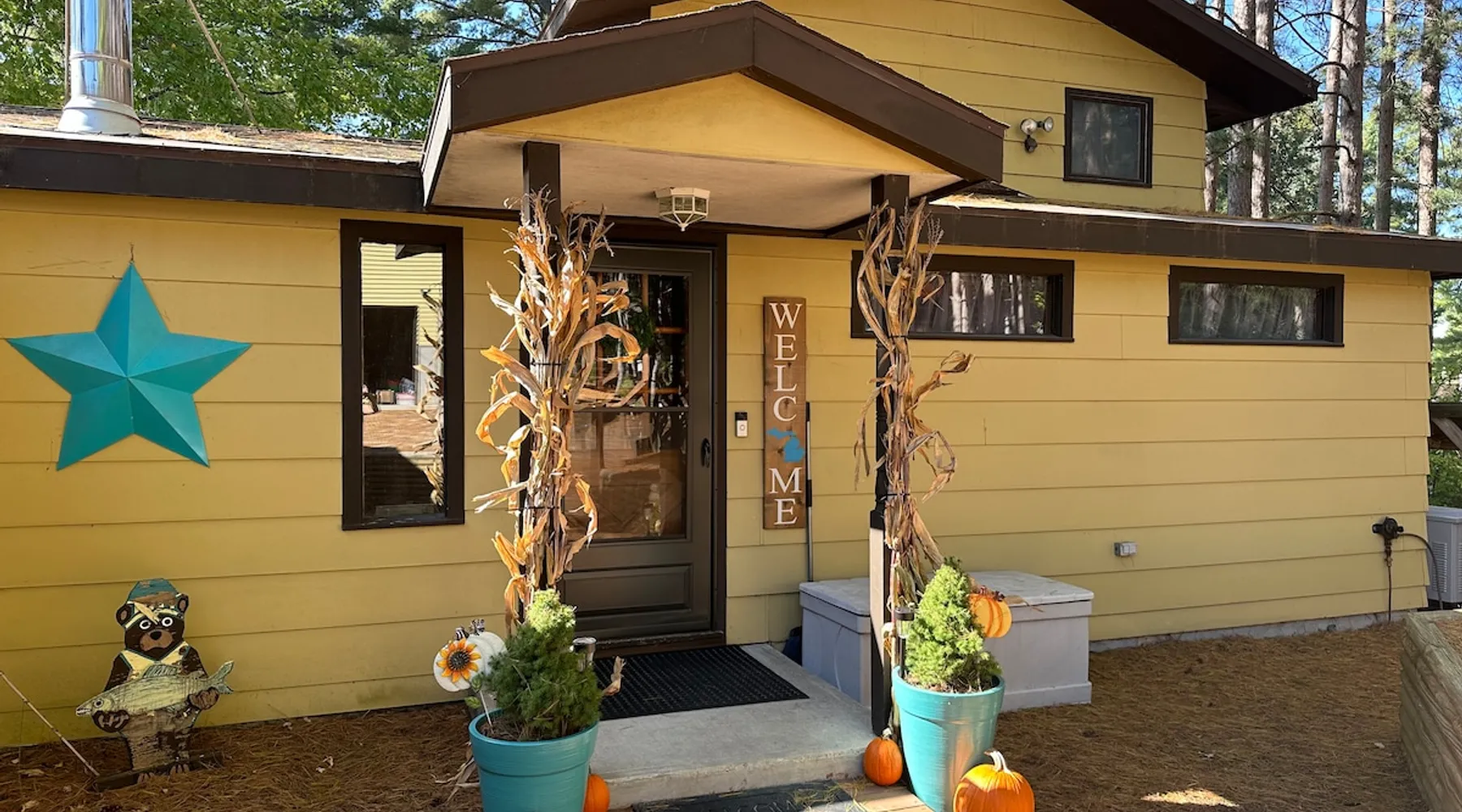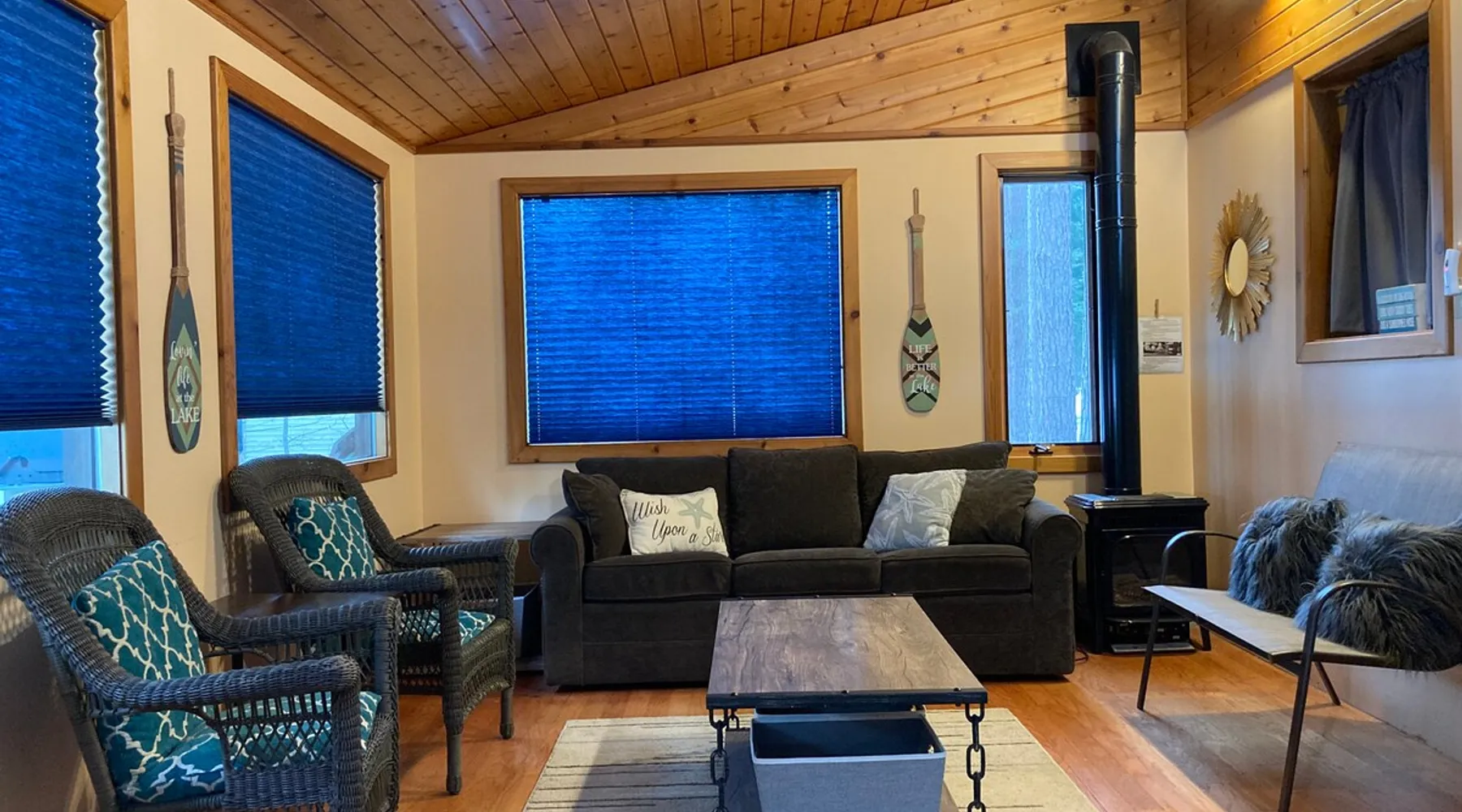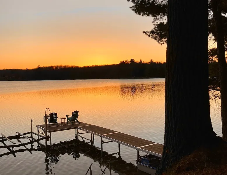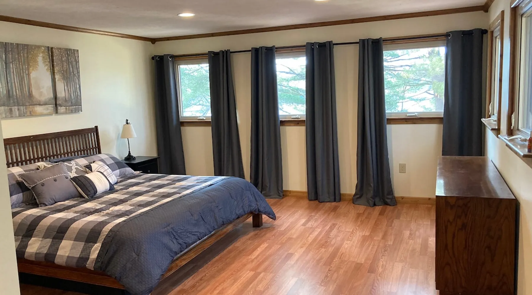 Calling all nature lovers! Experience the magic of all 4 seasons at this lakefront cabin situated on crystal clear "all-sports" Lake Meauwataka (10 mi N of Cadillac)! Open & spacious, this family friendly cabin is ideal for a multi-family get away. Unplug & relax amongst the majestic serene White Pines of the Manistee National Forest. An ALL SEASON destination for outdoor enthusiasts. Skiing, snowmobiling, snowshoeing, swimming, fishing, hunting, boating, scavenger hunts & more await! The space *25 Years old PREFERRED to book* *NOT A PARTY HOUSE* *NO PETS or PET REQUESTS* This countryside escape has a secluded and serene "Up North" feel, yet only a 10-15 min drive to shopping & restaurants in the City of Cadillac and only 1.5 miles away from the General Store which has almost everything you could need including delicious pizza, ice cream, alcohol & daily meal deals. Please Note: Our Cabin is located off a dirt road so if this doesn’t bother you keep reading….The property is surrounded by White Pines and perched upon 65 feet of lakefront sandy bottom access. Across the lake sits a township park, complete with a campground, hiking trails and sand dunes. There is also a 9-hole "volunteer-created" disc golf course. Location is well suited as a launch to many popular Michigan tourist destinations including Traverse City/Interlochen, Frankfort, Sleeping Bear Dunes National Lakeshore, Big Manistee River & the Ski/ Golf Resorts of Caberfae Peaks and Crystal Mountain. Hunters may inquire about local opportunities. This is a "Family-Friendly" Cabin. It is not high-end; however, it is lovingly cared for by the owners who use it often and take great pride in making it a fun and cozy place to make memories. It is 2000 square feet and features 2 FULL bathrooms. Sleeping: Sleeping Quarters include a Master Bedroom with gorgeous lakefront views (King & Single Bed Loft). The second bedroom (Queen) is tucked away and allows privacy and a bathroom nearby. The third bedroom (Bunkhouse) is the perfect spot to send the kids. Located on the lower level with it's own living area, this sleeping area features two sets of bunk beds (Full/Full & Twin/Twin). There are also sleeper sofas (great room/ lower living) twin futon in the laundry room, foldaway twin cot and pack & play. The open floor plan on the main level allows for lakefront views and interaction amongst guests in the kitchen, dining and great room areas. The great room features a wood burning stove, a large LED wall mounted Fire Feature & Smart TV. Wifi/TV: High speed internet for remote work. Smart TV with streaming options however you will need to use your own subscriptions for certain applications enabled through guest mode on the Roku TV. The TV also gets approximately 16 channels via antenna and there is a DVD player with many movie options to choose from. Many board games & crafty accessories are provided. Workspace: Desk with lake views in Master Bedroom. Kitchen: Our kitchen is fully equipped with all the appliances and tableware for your stay. There is a common pantry and spice basket. You are welcome to use any staples in the cabinets or condiments in the refrigerator if they are available, but we can't guarantee anything will be there for certain. It all depends on what people use and what people leave. Laundry Room: Washer/Dryer. Linens/Towels provided. Garage/Basement: Owner's private storage areas and not included in the rental. Shed: Open & available to use. Here you will find outdoor games, disc golf sets, campfire sticks, fishing poles etc.. Optional: Kids Clubhouse located above the garage. Inquire for Details. Heating/Cooling: The house has A/C in the master bedroom and Queen Bedroom. Tree cover, lake breezes and fans keep the rest of the house cool in the summer. The house has two furnaces, a wood burning stove and a propane stove. Backyard Amenities: Firepit, Dining Area, Pedal Boat, Kayak's (x3 Adult, x3 Youth), SUP's (x2), Tetherball, Corn Hole, fishing poles etc.. Seasonal Notes: The dock is removed Nov-April. Please inquire if booking during a transition period. Life Jackets Provided. Snow Removal: Removal service is triggered after an event causing more than 4 " accumulation since last removal. There will be occasions where there may be a few inches of snow on the driveway and walkway. A snow shovel and rock salt is provided. Please Note: There is an additional charge of $10 per night/Guest >6 guests to account for extra cleaning/laundry/septic charges. You will be communicating directly with the Property Owner and not a management company. Other things to note Pets are prohibited. Any evidence of pets will result in extra fees and potential rental termination. One exterior security camera monitors the front door.