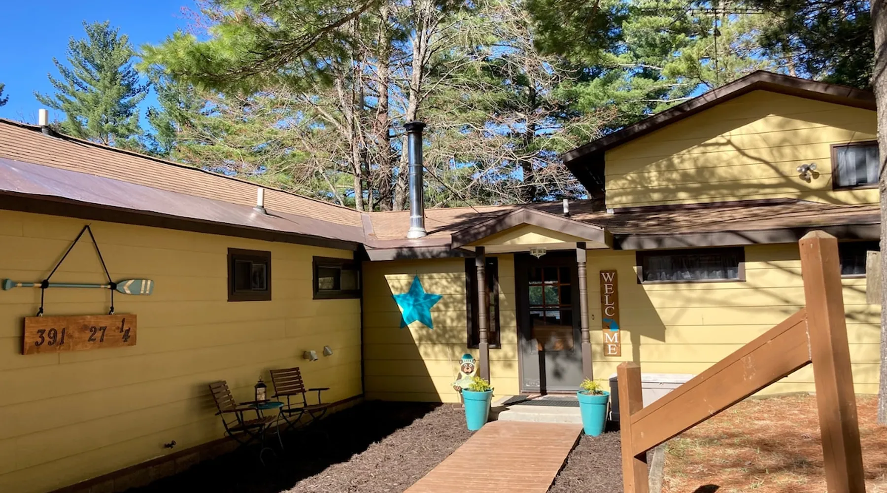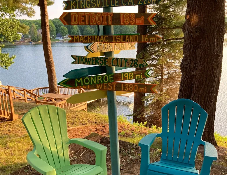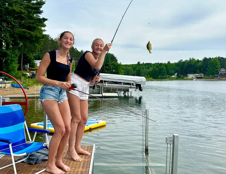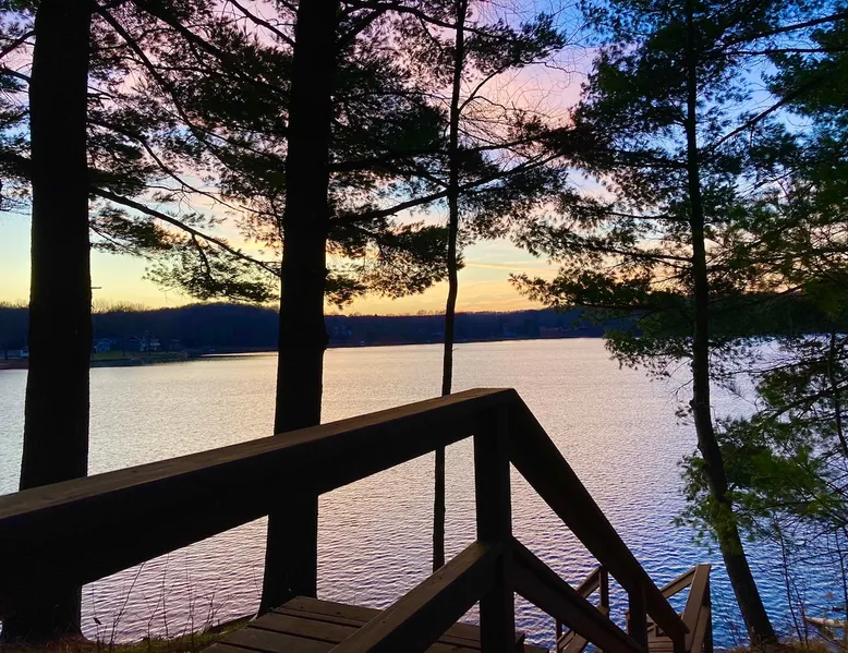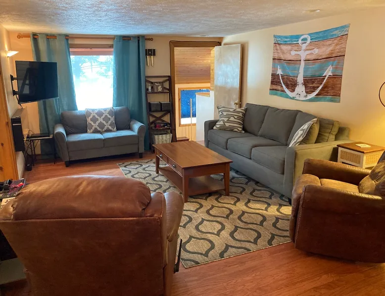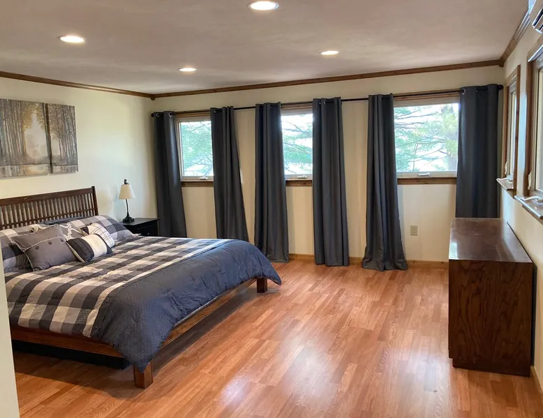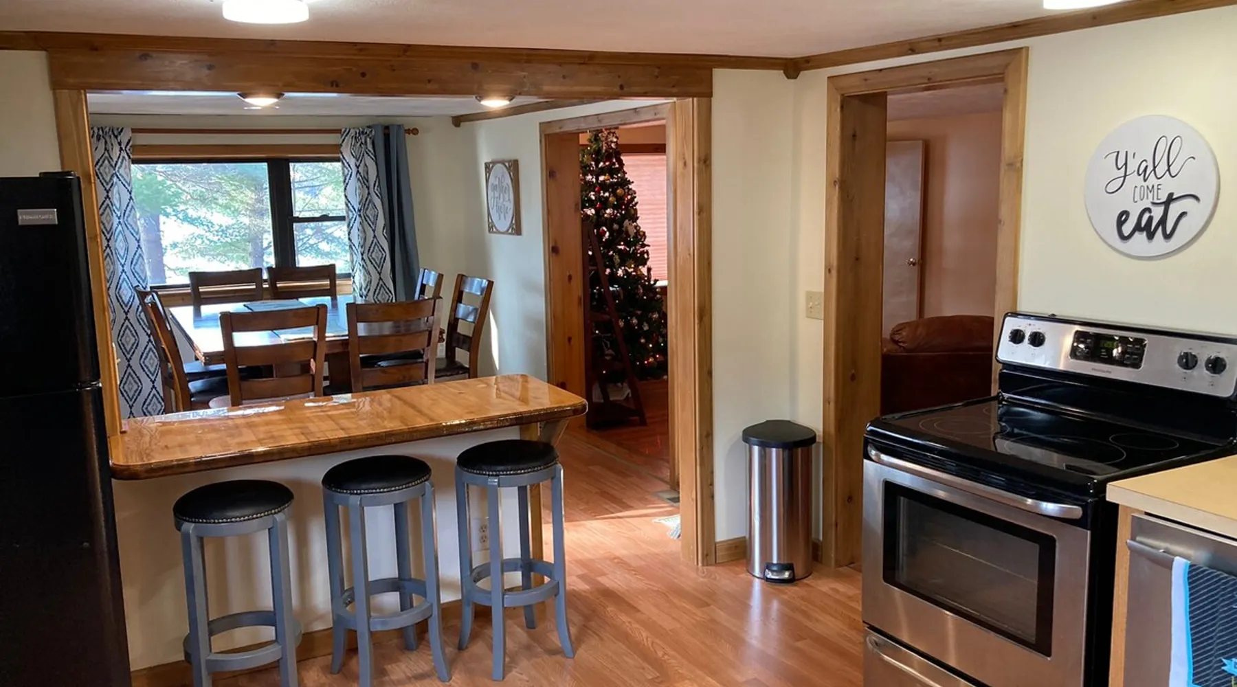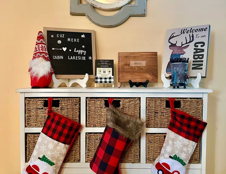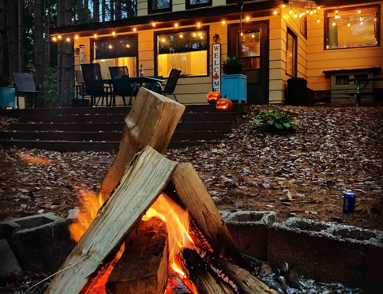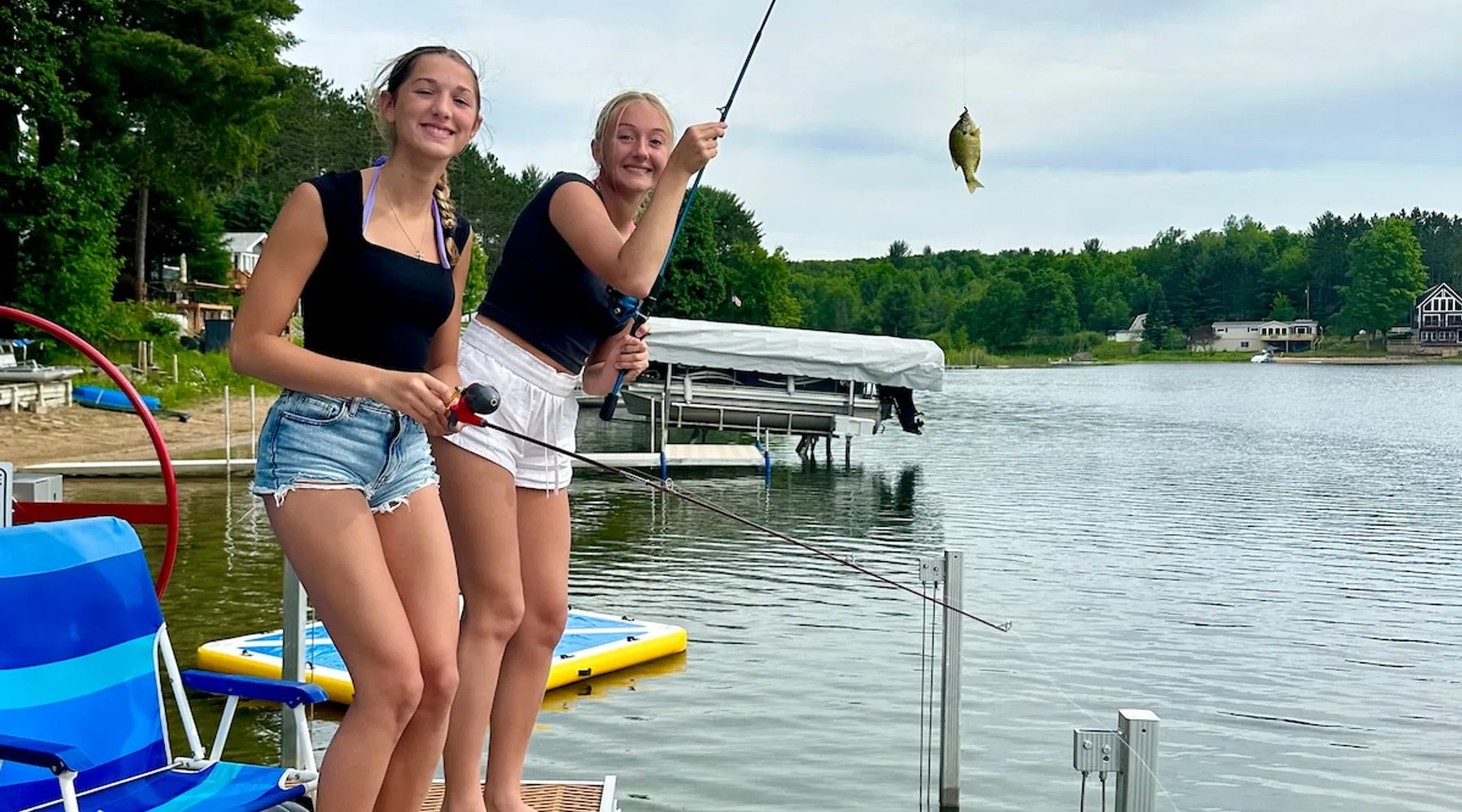 Calling all nature lovers! Experience the magic of all 4 seasons at this lakefront cabin situated on crystal clear "all-sports" Lake Meauwataka (10 mi N of Cadillac)! Open & spacious, this family friendly cabin is ideal for a multi-family get away. Unplug & relax amongst the majestic serene White Pines of the Manistee National Forest. An ALL SEASON destination for outdoor enthusiasts. Skiing, snowmobiling, snowshoeing, swimming, fishing, hunting, boating, scavenger hunts & more await! The space *25 Years old PREFERRED to book* *NOT A PARTY HOUSE* *NO PETS or PET REQUESTS* This countryside escape has a secluded and serene "Up North" feel, yet only a 10-15 min drive to shopping & restaurants in the City of Cadillac and only 1.5 miles away from the General Store which has almost everything you could need including delicious pizza, ice cream, alcohol & daily meal deals. Please Note: Our Cabin is located off a dirt road so if this doesn’t bother you keep reading….The property is surrounded by White Pines and perched upon 65 feet of lakefront sandy bottom access. Across the lake sits a township park, complete with a campground, hiking trails and sand dunes. There is also a 9-hole "volunteer-created" disc golf course. Location is well suited as a launch to many popular Michigan tourist destinations including Traverse City/Interlochen, Frankfort, Sleeping Bear Dunes National Lakeshore, Big Manistee River & the Ski/ Golf Resorts of Caberfae Peaks and Crystal Mountain. Hunters may inquire about local opportunities. This is a "Family-Friendly" Cabin. It is not high-end; however, it is lovingly cared for by the owners who use it often and take great pride in making it a fun and cozy place to make memories. It is 2000 square feet and features 2 FULL bathrooms. Sleeping: Sleeping Quarters include a Master Bedroom with gorgeous lakefront views (King & Single Bed Loft). The second bedroom (Queen) is tucked away and allows privacy and a bathroom nearby. The third bedroom (Bunkhouse) is the perfect spot to send the kids. Located on the lower level with it's own living area, this sleeping area features two sets of bunk beds (Full/Full & Twin/Twin). There are also sleeper sofas (great room/ lower living) twin futon in the laundry room, foldaway twin cot and pack & play. The open floor plan on the main level allows for lakefront views and interaction amongst guests in the kitchen, dining and great room areas. The great room features a wood burning stove, a large LED wall mounted Fire Feature & Smart TV. Wifi/TV: High speed internet for remote work. Smart TV with streaming options however you will need to use your own subscriptions for certain applications enabled through guest mode on the Roku TV. The TV also gets approximately 16 channels via antenna and there is a DVD player with many movie options to choose from. Many board games & crafty accessories are provided. Workspace: Desk with lake views in Master Bedroom. Kitchen: Our kitchen is fully equipped with all the appliances and tableware for your stay. There is a common pantry and spice basket. You are welcome to use any staples in the cabinets or condiments in the refrigerator if they are available, but we can't guarantee anything will be there for certain. It all depends on what people use and what people leave. Laundry Room: Washer/Dryer. Linens/Towels provided. Garage/Basement: Owner's private storage areas and not included in the rental. Shed: Open & available to use. Here you will find outdoor games, disc golf sets, campfire sticks, fishing poles etc.. Optional: Kids Clubhouse located above the garage. Inquire for Details. Heating/Cooling: The house has A/C in the master bedroom and Queen Bedroom. Tree cover, lake breezes and fans keep the rest of the house cool in the summer. The house has two furnaces, a wood burning stove and a propane stove. Backyard Amenities: Firepit, Dining Area, Pedal Boat, Kayak's (x3 Adult, x3 Youth), SUP's (x2), Tetherball, Corn Hole, fishing poles etc.. Seasonal Notes: The dock is removed Nov-April. Please inquire if booking during a transition period. Life Jackets Provided. Snow Removal: Removal service is triggered after an event causing more than 4 " accumulation since last removal. There will be occasions where there may be a few inches of snow on the driveway and walkway. A snow shovel and rock salt is provided. Please Note: There is an additional charge of $10 per night/Guest >6 guests to account for extra cleaning/laundry/septic charges. You will be communicating directly with the Property Owner and not a management company. Other things to note Pets are prohibited. Any evidence of pets will result in extra fees and potential rental termination. One exterior security camera monitors the front door.