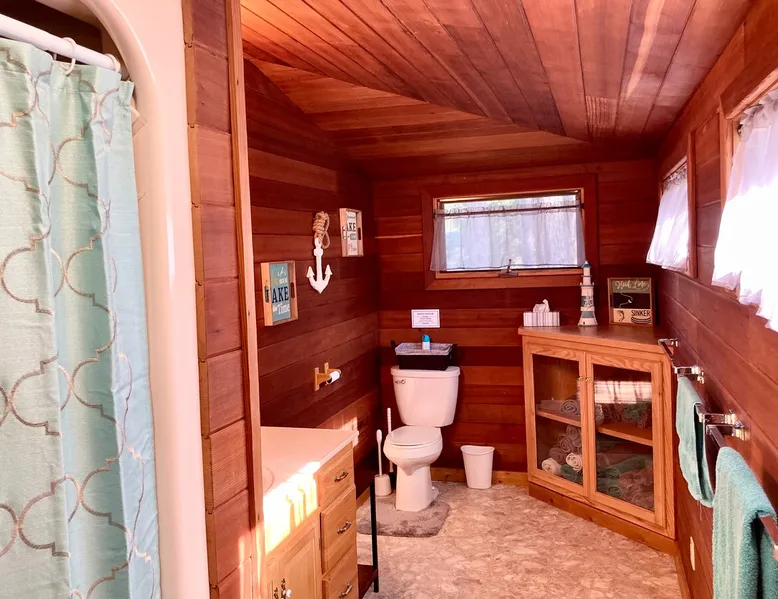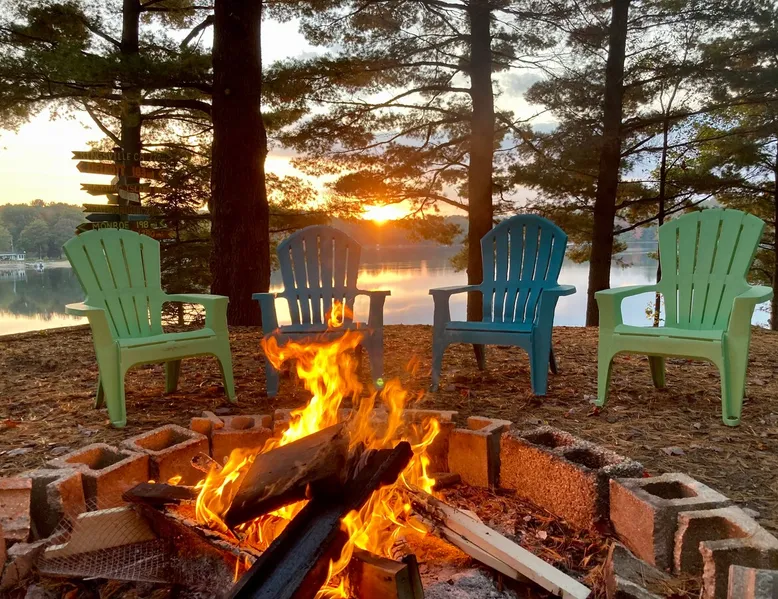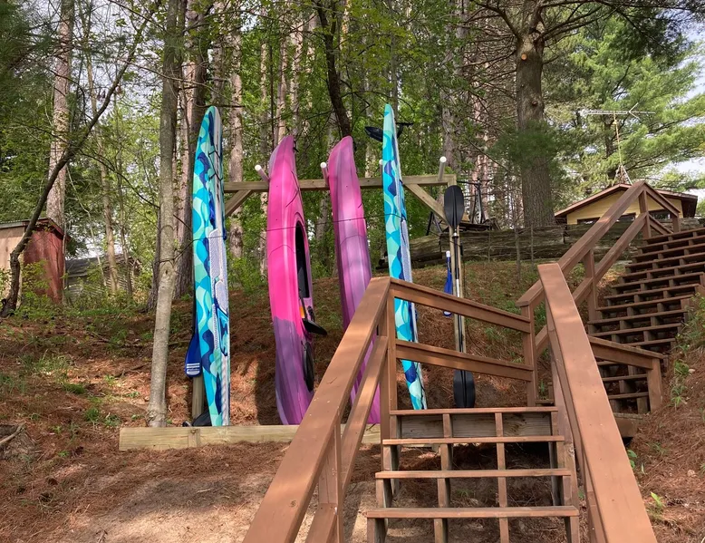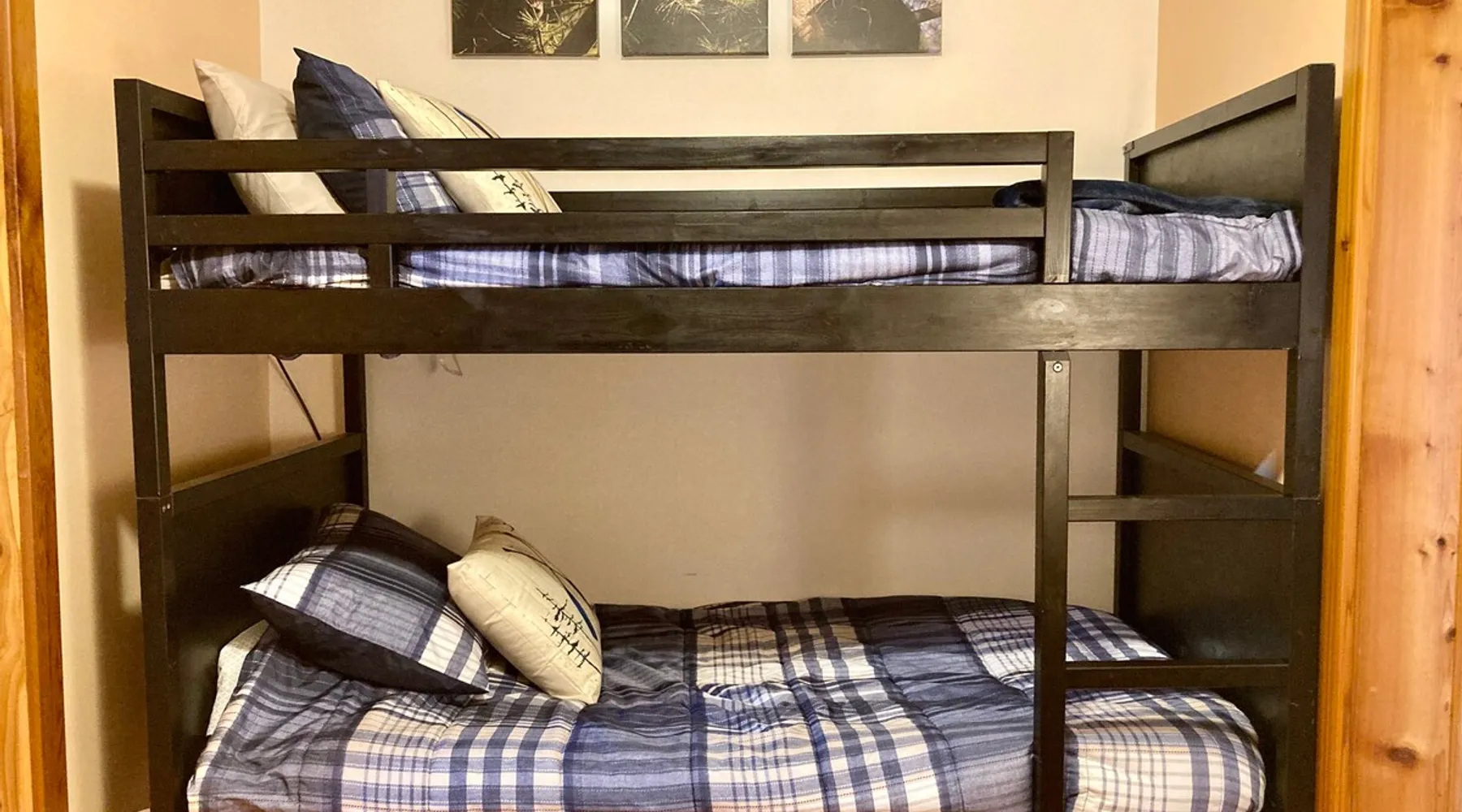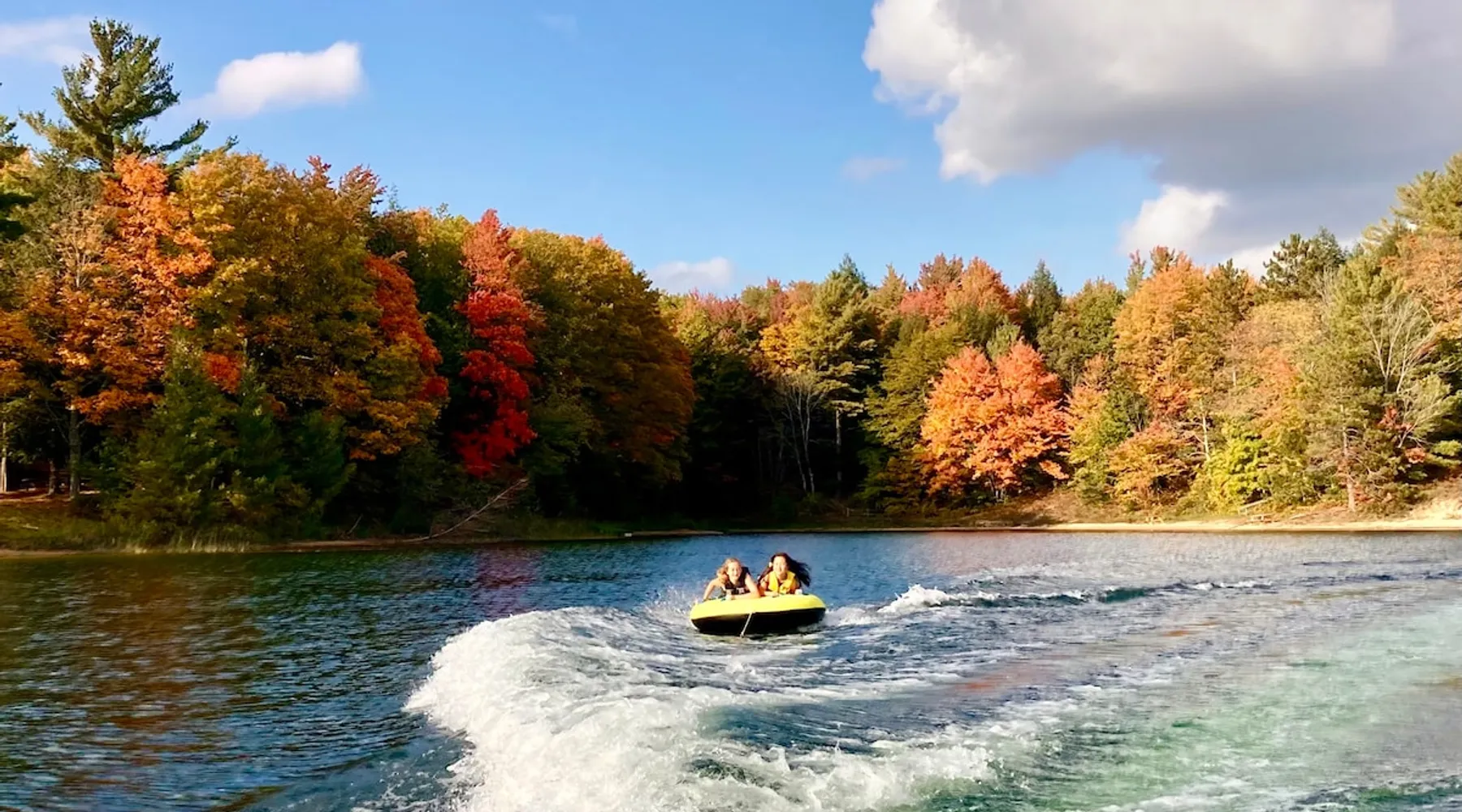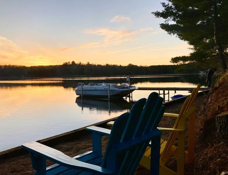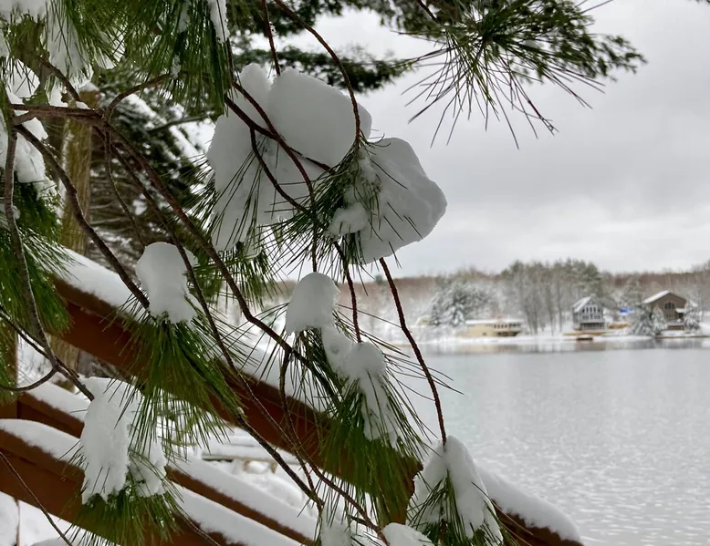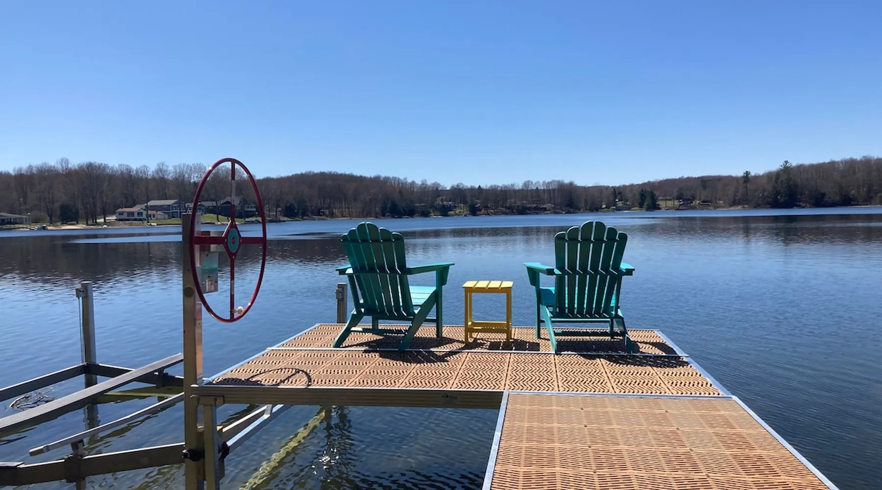 Calling all nature lovers! Experience the magic of all 4 seasons at this lakefront cabin situated on crystal clear "all-sports" Lake Meauwataka (10 mi N of Cadillac)! Open & spacious, this family friendly cabin is ideal for a multi-family get away. Unplug & relax amongst the majestic serene White Pines of the Manistee National Forest. An ALL SEASON destination for outdoor enthusiasts. Skiing, snowmobiling, snowshoeing, swimming, fishing, hunting, boating, scavenger hunts & more await! The space *25 Years old PREFERRED to book* *NOT A PARTY HOUSE* *NO PETS or PET REQUESTS* This countryside escape has a secluded and serene "Up North" feel, yet only a 10-15 min drive to shopping & restaurants in the City of Cadillac and only 1.5 miles away from the General Store which has almost everything you could need including delicious pizza, ice cream, alcohol & daily meal deals. Please Note: Our Cabin is located off a dirt road so if this doesn’t bother you keep reading….The property is surrounded by White Pines and perched upon 65 feet of lakefront sandy bottom access. Across the lake sits a township park, complete with a campground, hiking trails and sand dunes. There is also a 9-hole "volunteer-created" disc golf course. Location is well suited as a launch to many popular Michigan tourist destinations including Traverse City/Interlochen, Frankfort, Sleeping Bear Dunes National Lakeshore, Big Manistee River & the Ski/ Golf Resorts of Caberfae Peaks and Crystal Mountain. Hunters may inquire about local opportunities. This is a "Family-Friendly" Cabin. It is not high-end; however, it is lovingly cared for by the owners who use it often and take great pride in making it a fun and cozy place to make memories. It is 2000 square feet and features 2 FULL bathrooms. Sleeping: Sleeping Quarters include a Master Bedroom with gorgeous lakefront views (King & Single Bed Loft). The second bedroom (Queen) is tucked away and allows privacy and a bathroom nearby. The third bedroom (Bunkhouse) is the perfect spot to send the kids. Located on the lower level with it's own living area, this sleeping area features two sets of bunk beds (Full/Full & Twin/Twin). There are also sleeper sofas (great room/ lower living) twin futon in the laundry room, foldaway twin cot and pack & play. The open floor plan on the main level allows for lakefront views and interaction amongst guests in the kitchen, dining and great room areas. The great room features a wood burning stove, a large LED wall mounted Fire Feature & Smart TV. Wifi/TV: High speed internet for remote work. Smart TV with streaming options however you will need to use your own subscriptions for certain applications enabled through guest mode on the Roku TV. The TV also gets approximately 16 channels via antenna and there is a DVD player with many movie options to choose from. Many board games & crafty accessories are provided. Workspace: Desk with lake views in Master Bedroom. Kitchen: Our kitchen is fully equipped with all the appliances and tableware for your stay. There is a common pantry and spice basket. You are welcome to use any staples in the cabinets or condiments in the refrigerator if they are available, but we can't guarantee anything will be there for certain. It all depends on what people use and what people leave. Laundry Room: Washer/Dryer. Linens/Towels provided. Garage/Basement: Owner's private storage areas and not included in the rental. Shed: Open & available to use. Here you will find outdoor games, disc golf sets, campfire sticks, fishing poles etc.. Optional: Kids Clubhouse located above the garage. Inquire for Details. Heating/Cooling: The house has A/C in the master bedroom and Queen Bedroom. Tree cover, lake breezes and fans keep the rest of the house cool in the summer. The house has two furnaces, a wood burning stove and a propane stove. Backyard Amenities: Firepit, Dining Area, Pedal Boat, Kayak's (x3 Adult, x3 Youth), SUP's (x2), Tetherball, Corn Hole, fishing poles etc.. Seasonal Notes: The dock is removed Nov-April. Please inquire if booking during a transition period. Life Jackets Provided. Snow Removal: Removal service is triggered after an event causing more than 4 " accumulation since last removal. There will be occasions where there may be a few inches of snow on the driveway and walkway. A snow shovel and rock salt is provided. Please Note: There is an additional charge of $10 per night/Guest >6 guests to account for extra cleaning/laundry/septic charges. You will be communicating directly with the Property Owner and not a management company. Other things to note Pets are prohibited. Any evidence of pets will result in extra fees and potential rental termination. One exterior security camera monitors the front door.